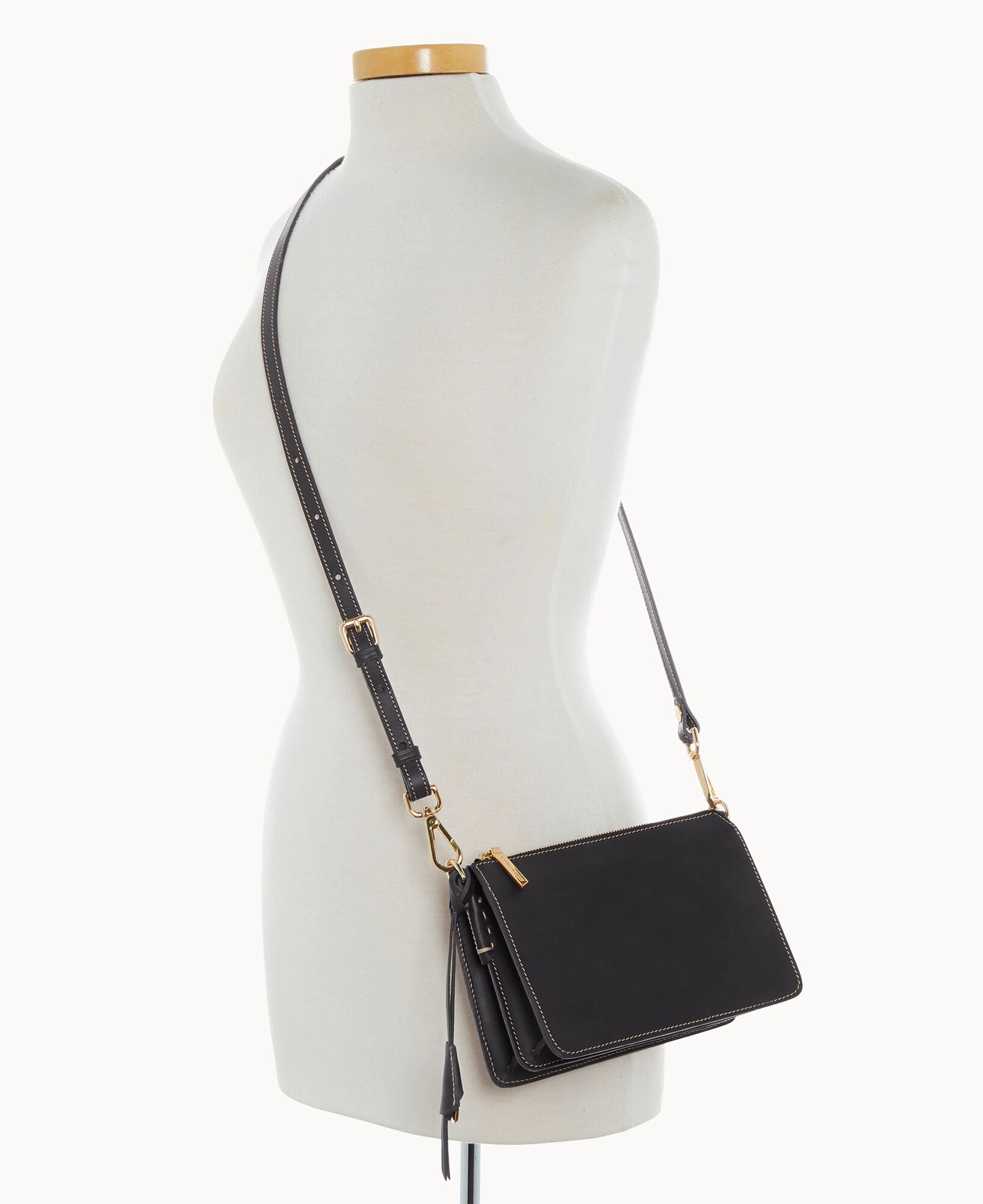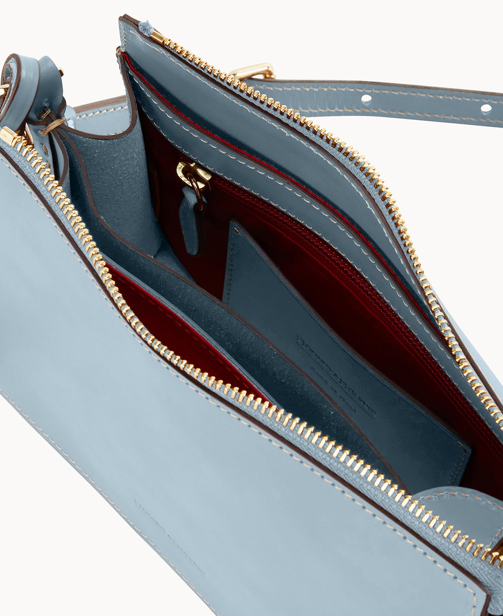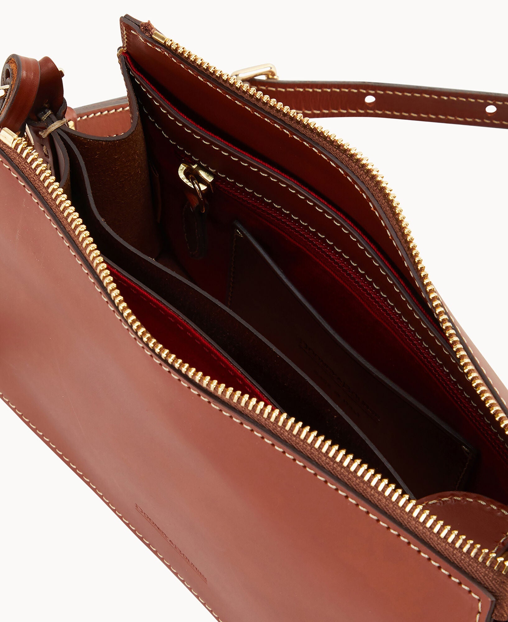 Two inside pockets. One inside zipper pocket. One inside credit card slot. Adjustable and detachable strap. Shoulder strap drop length 23.5". Removable medallion. Lined. Zipper closure.