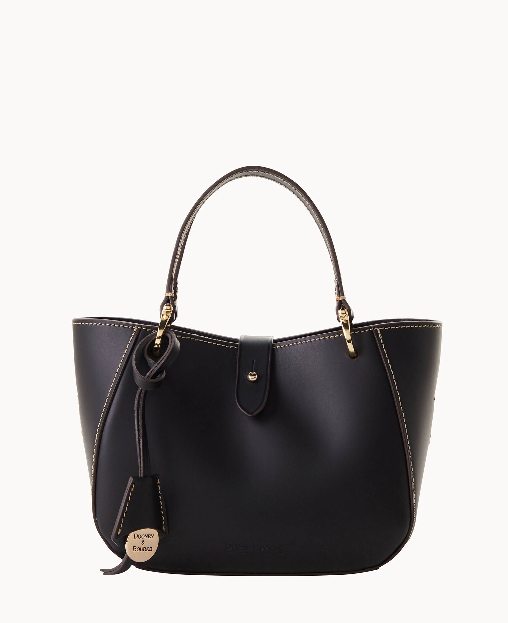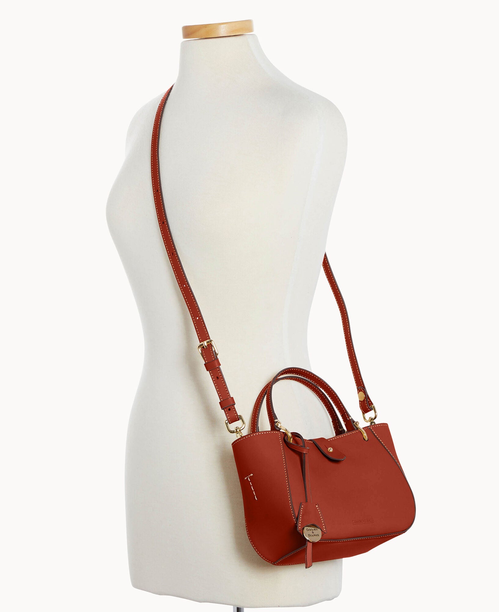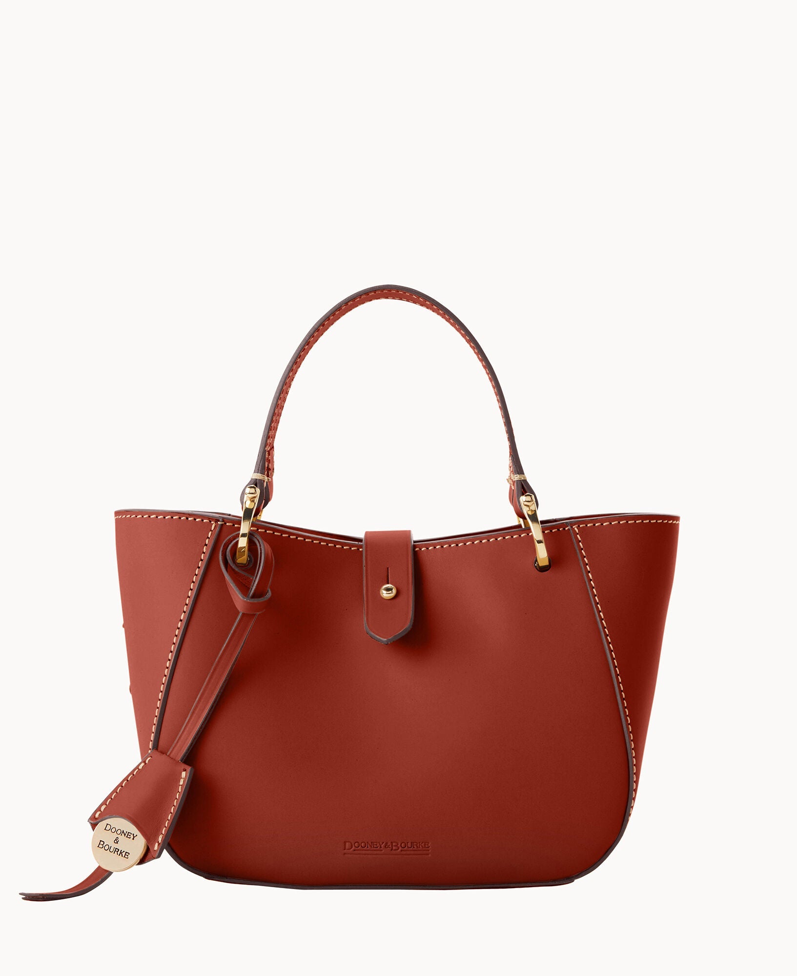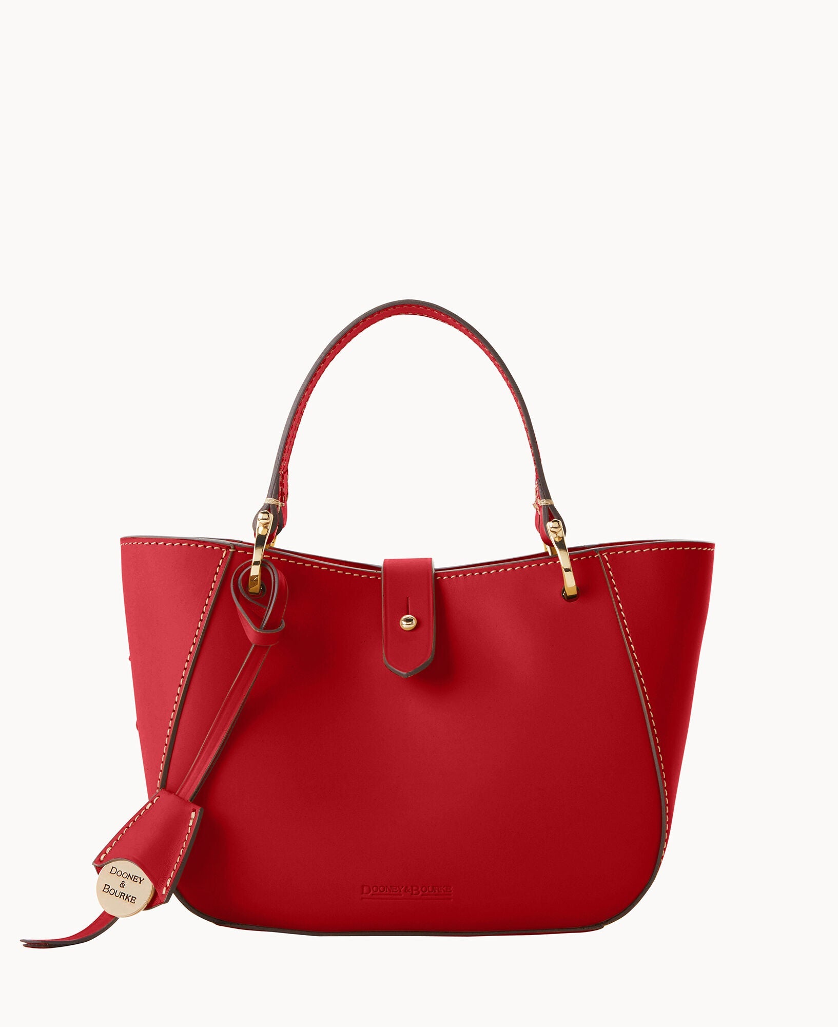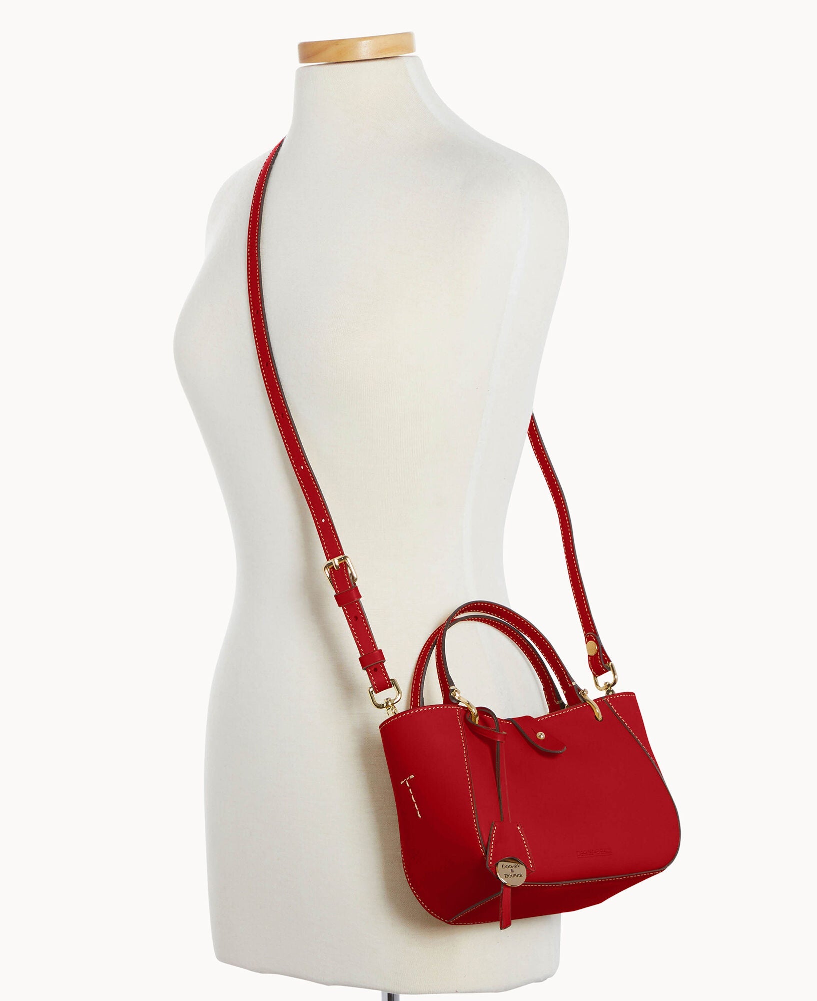 One inside zip pocket. Credit card slot. Handle drop length 4.5". Adjustable, detachable shoulder strap. Strap drop length 22.25". Tongue tab buckle closure.