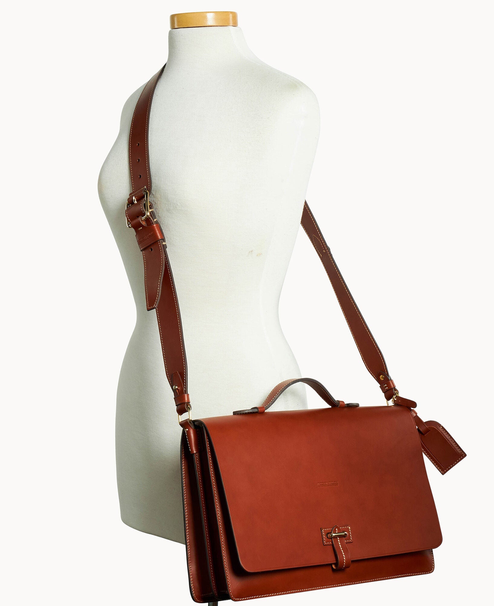 One outside slip pocket. Two pockets. One center zip pocket. One inisde slip pocket. One inside card slot. Shoulder strap drop length 22". Handle drop length 2". Adjustable strap. Lined. Tongue tab closure. Removable tag.