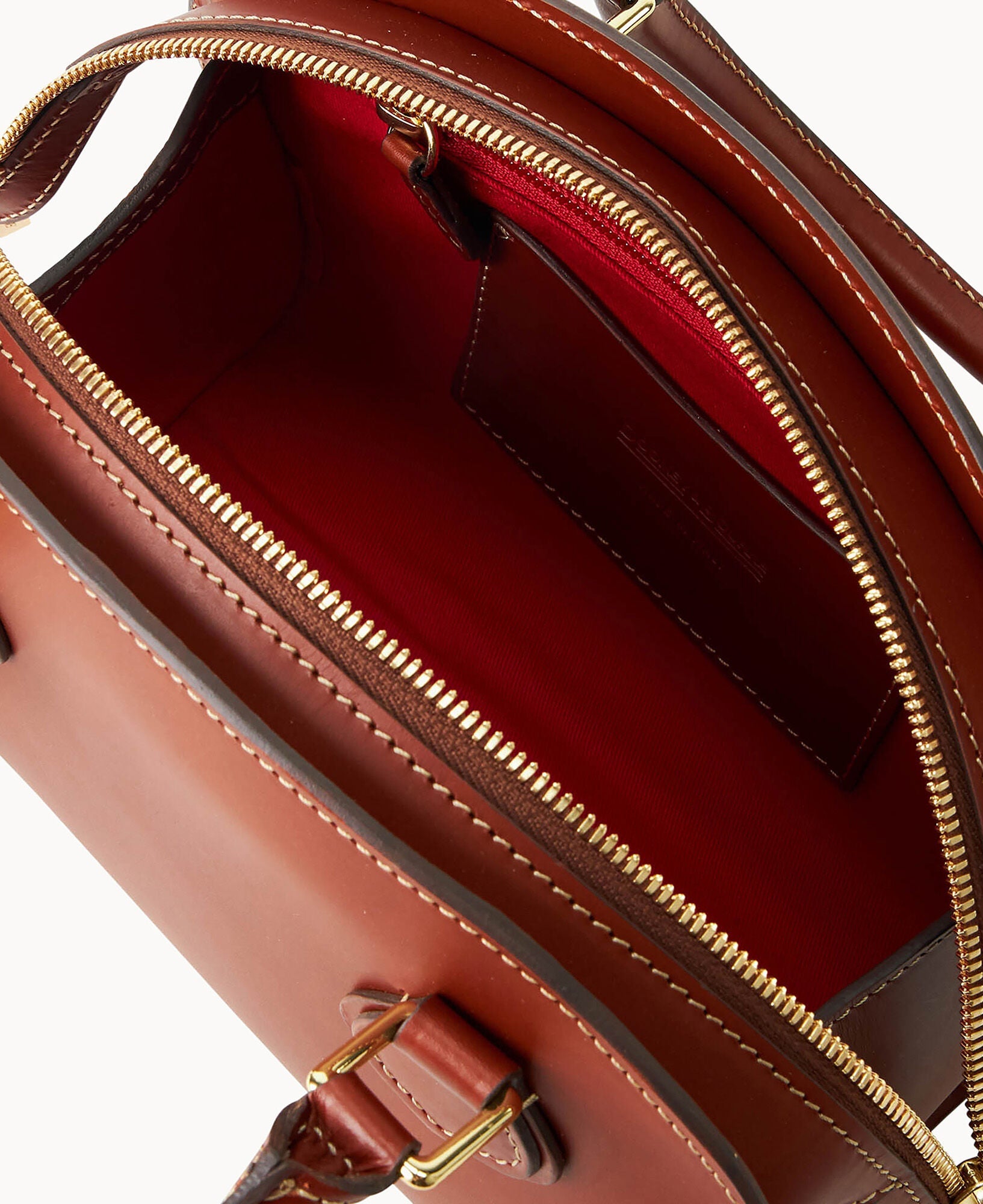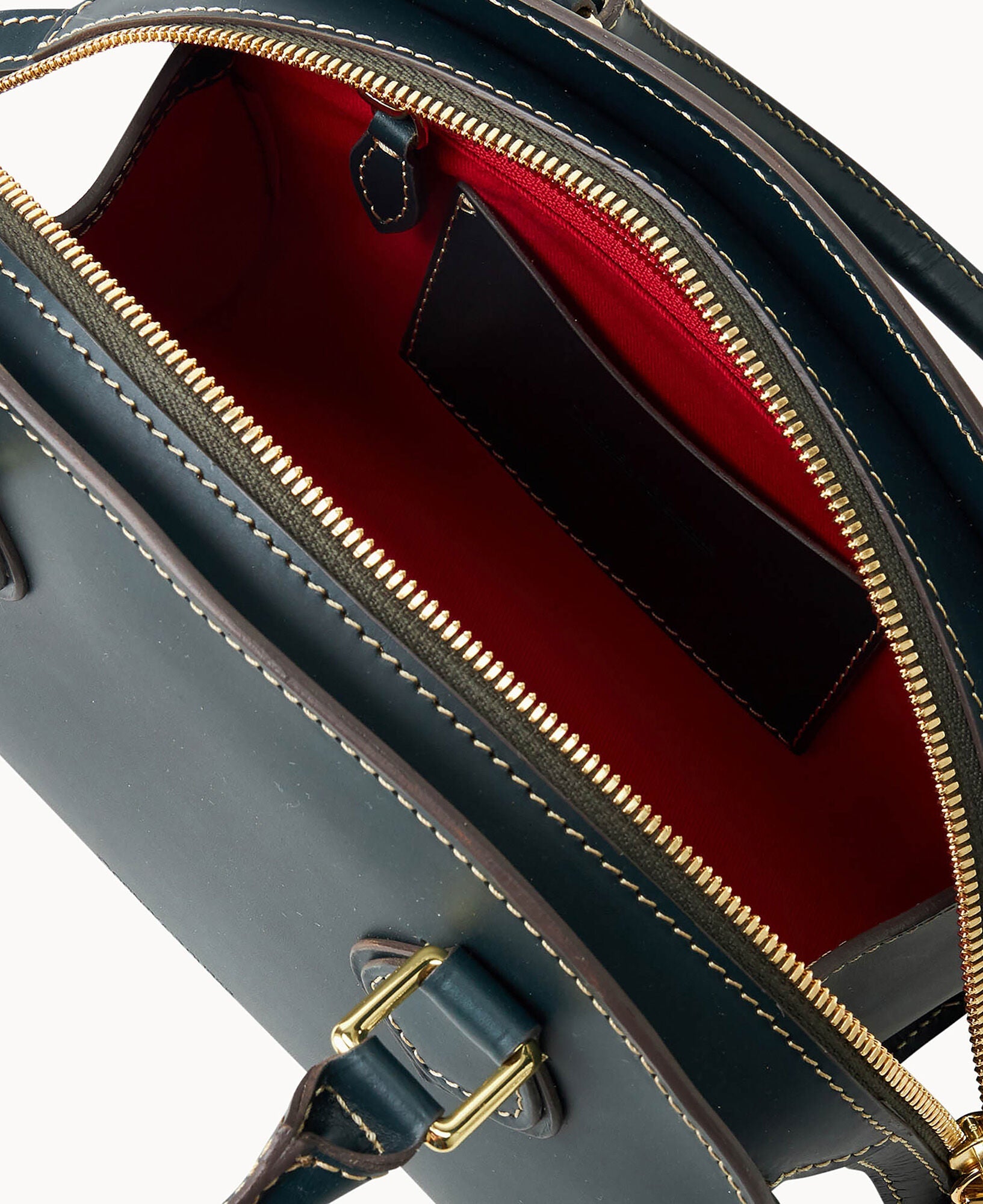 One inside zip pocket. One inisde slip pocket. One inside card slot. Shoulder strap drop length 24". Handle drop length 4". Adjustable and detachable strap. Lined. Feet. Zipper closure. Removable medallion.