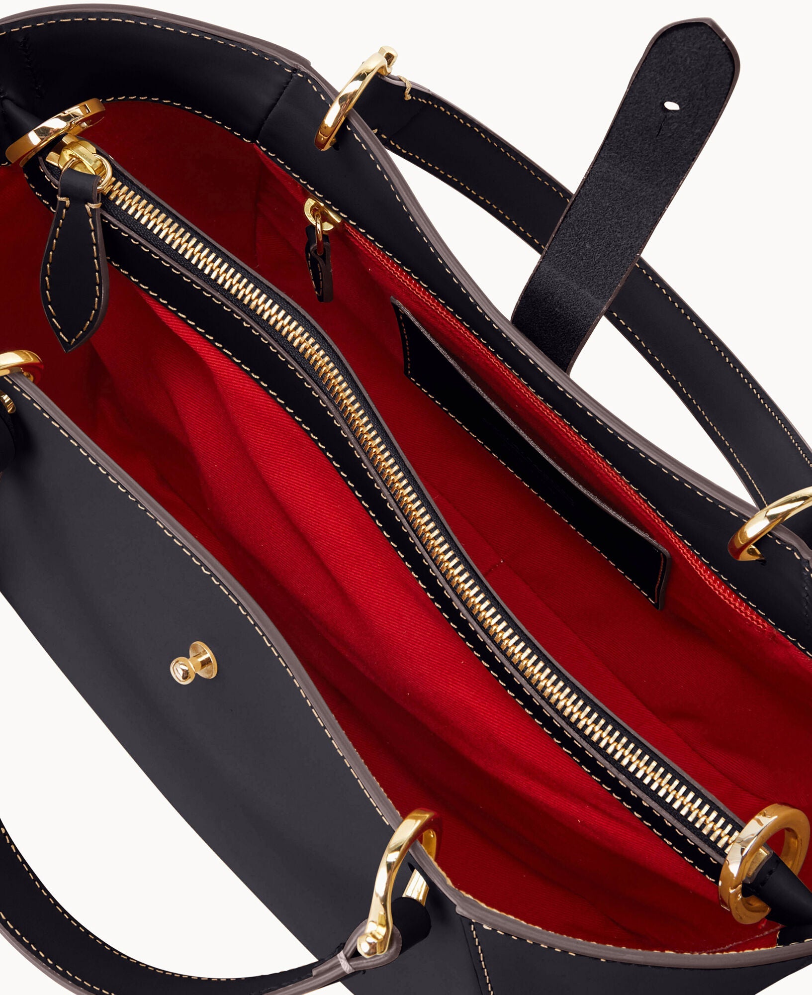 One inside zip pocket. One inside pocket. Credit card slot. Center zip divider compartment. Handle drop length 4.5". Adjustable, detachable shoulder strap. Strap drop length 24". Lined. Tongue tab buckle closure.