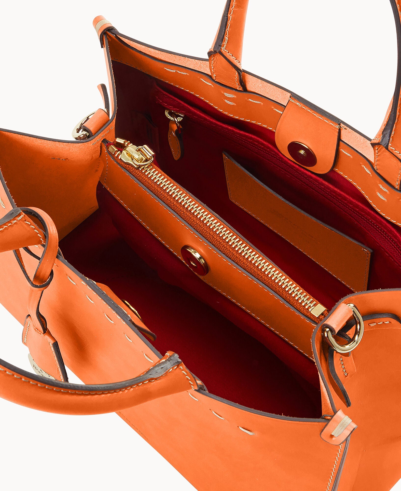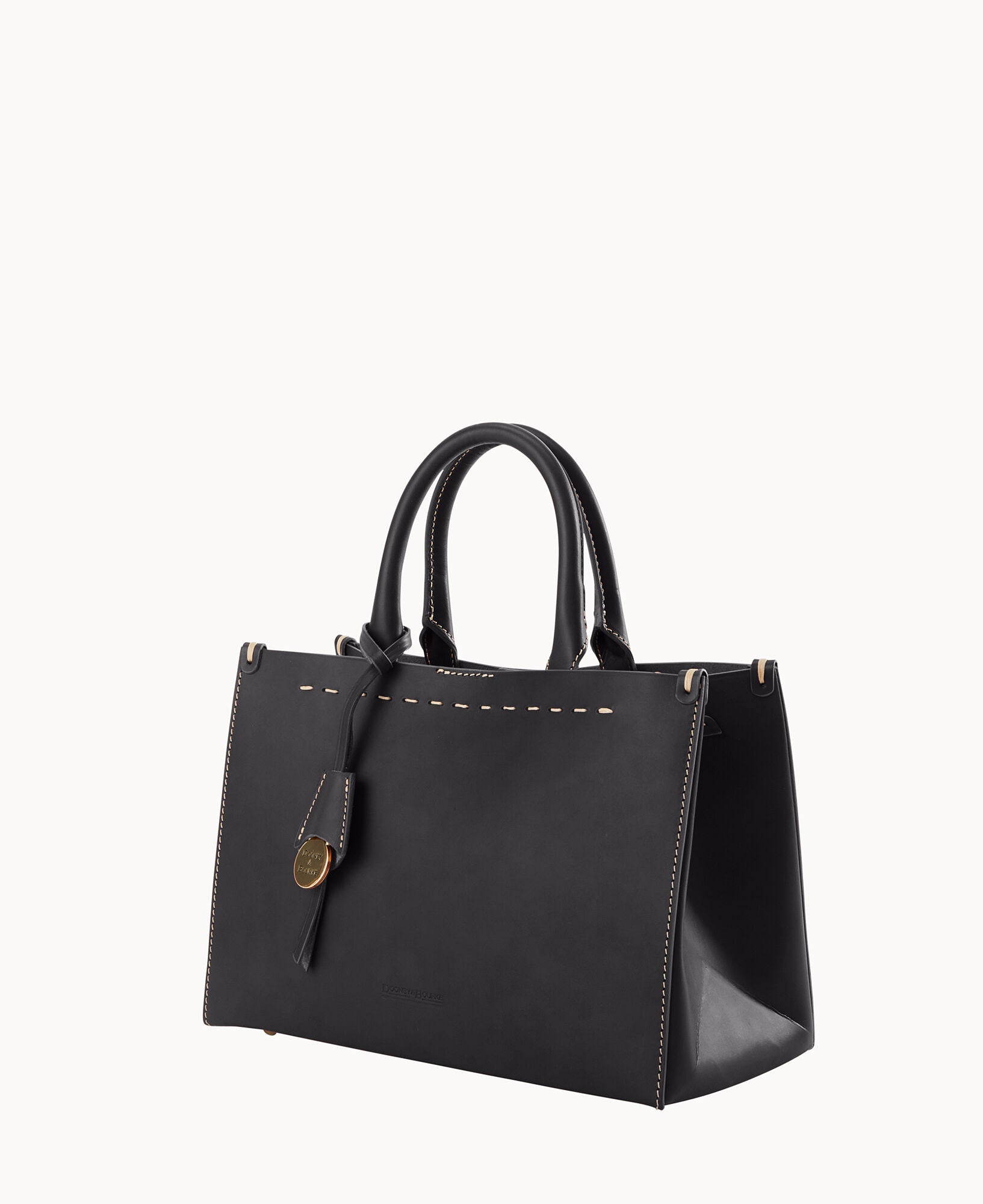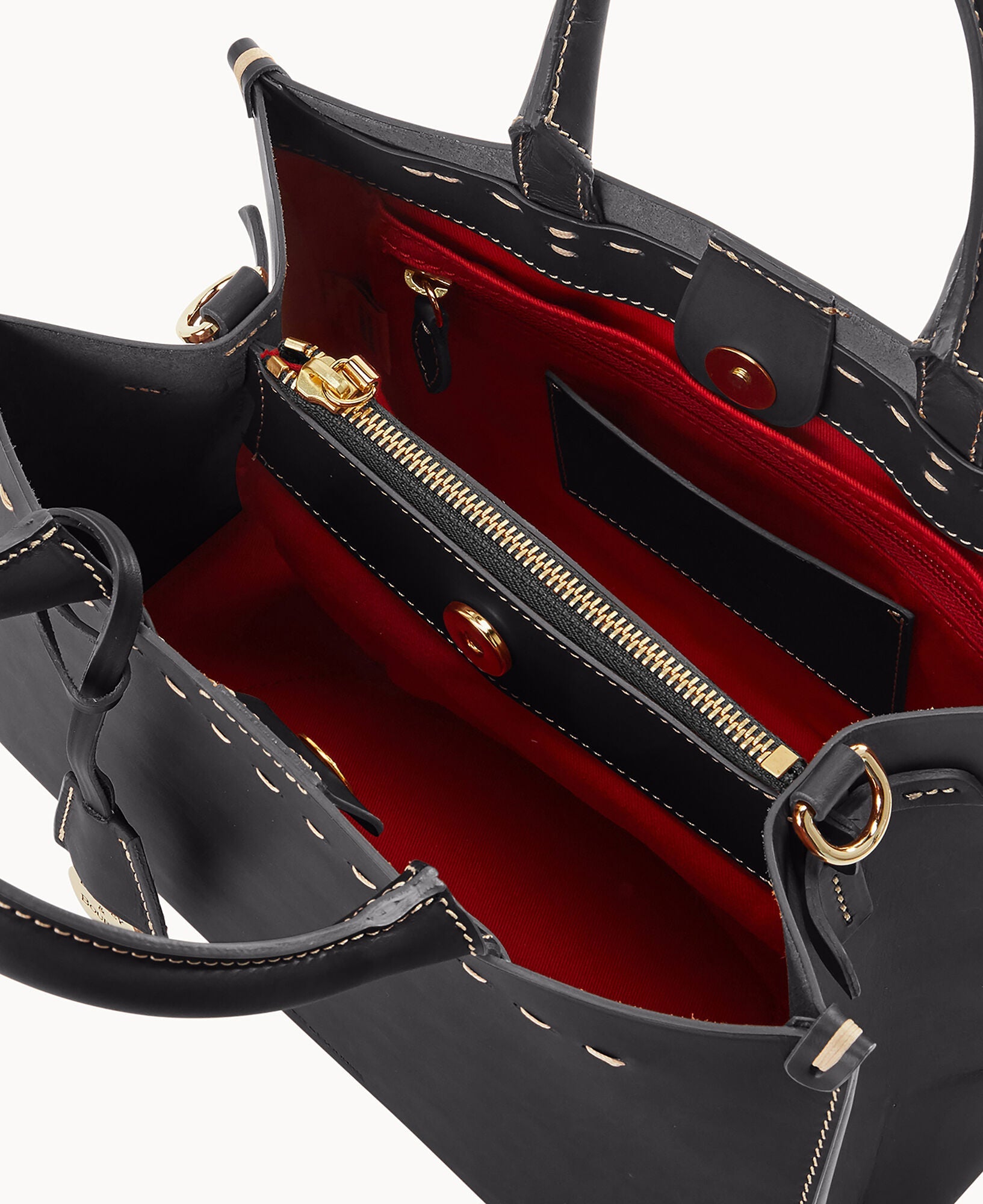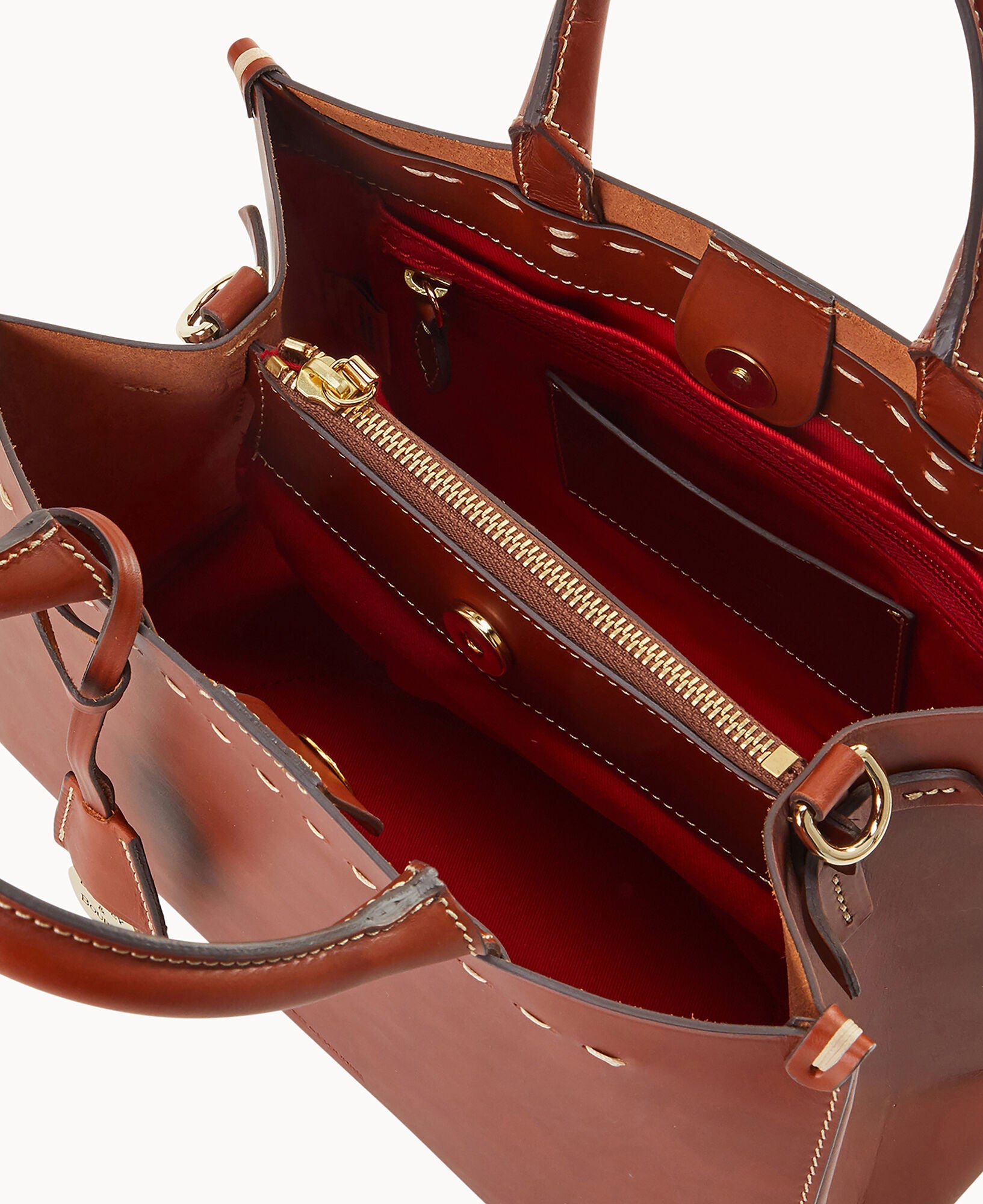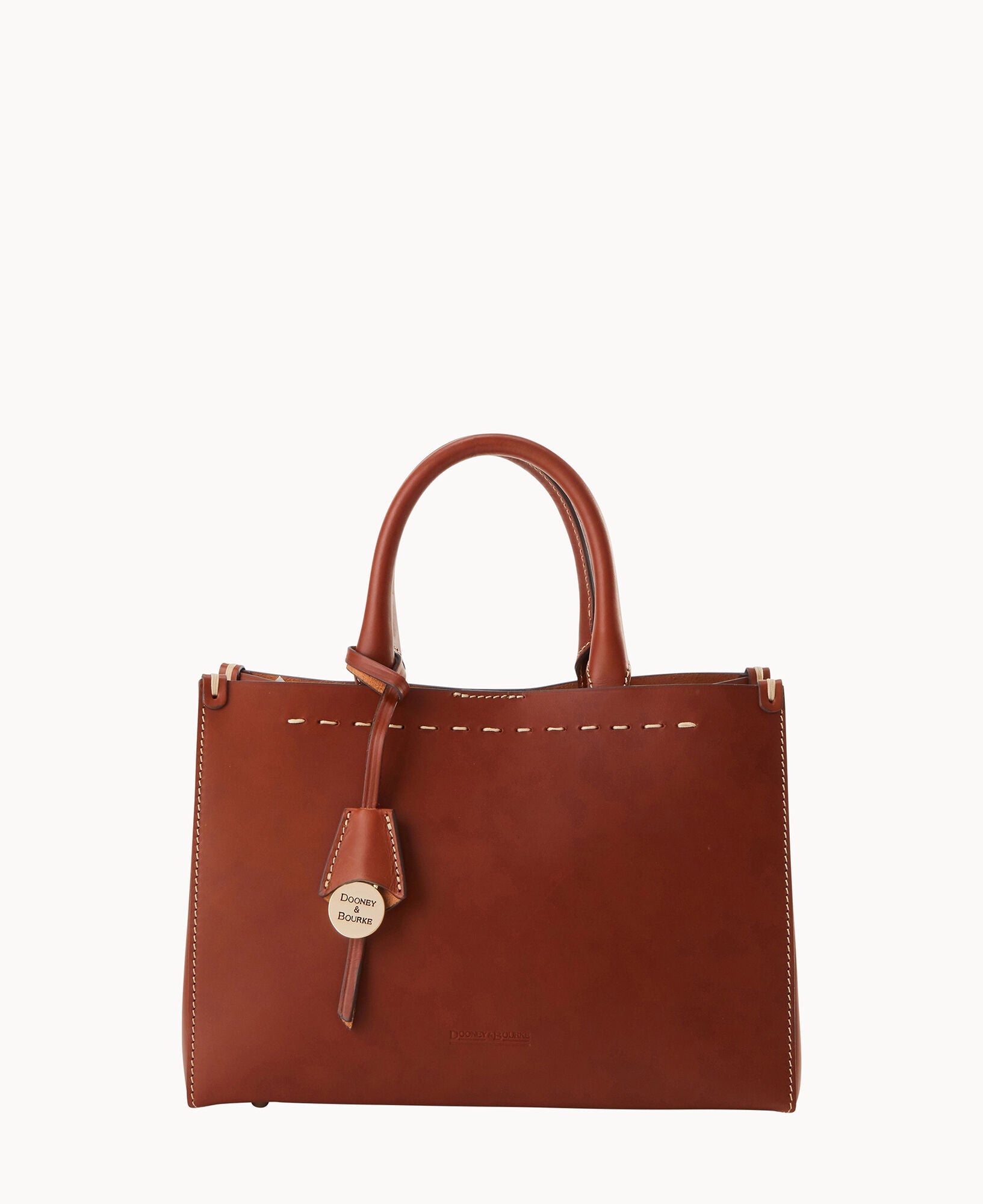 One inside pocket. One inside cellphone pocket. One inisde zipper pocket. Center zip compartment. Removable medallion. Adjustable and detachable strap. Shoulder strap drop length 24.5" Handle drop length 4.75". Lined. Feet. Magnetic snap closure.