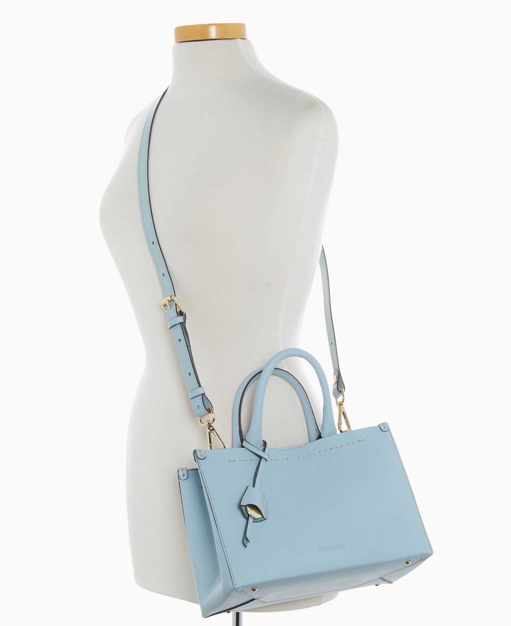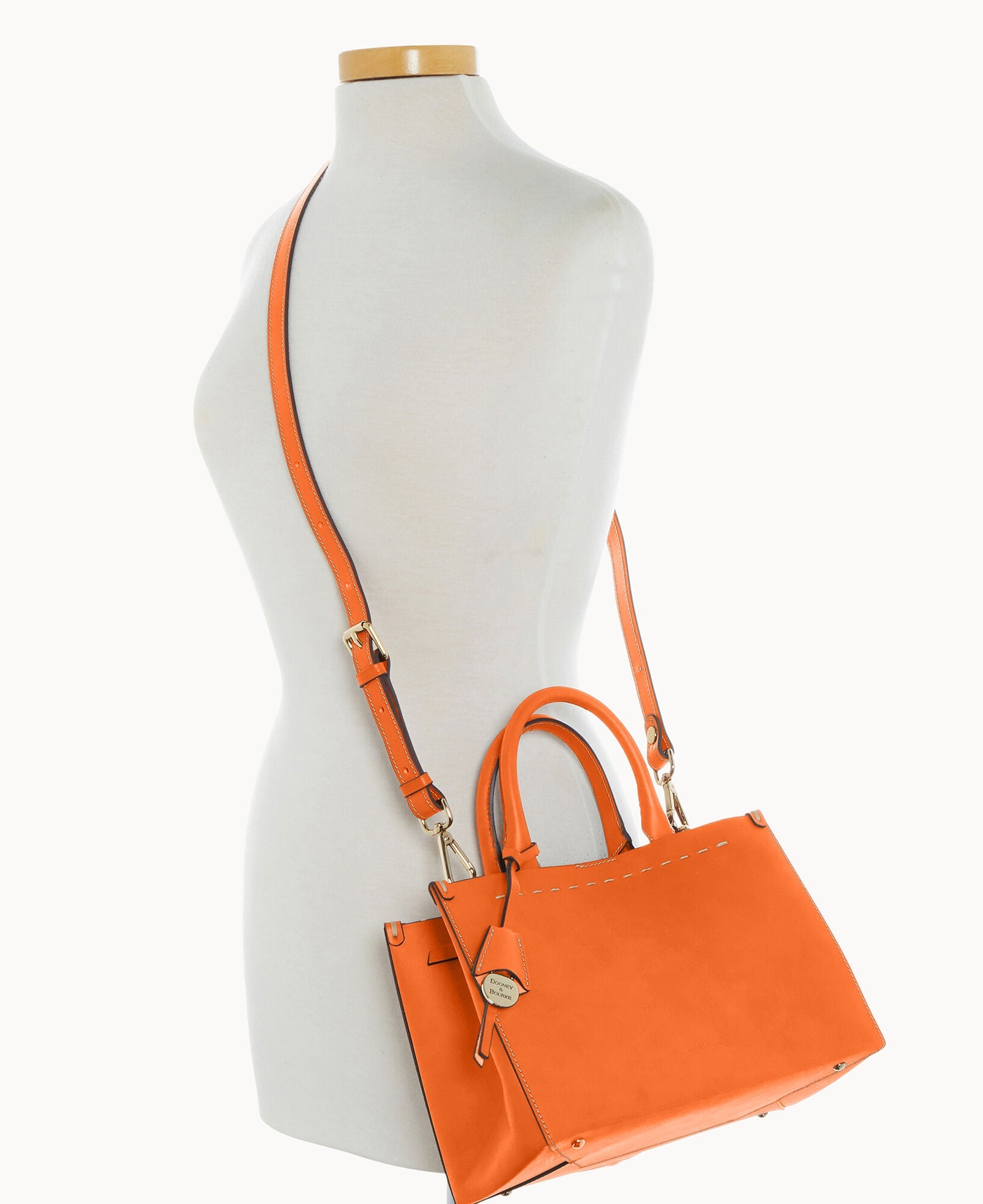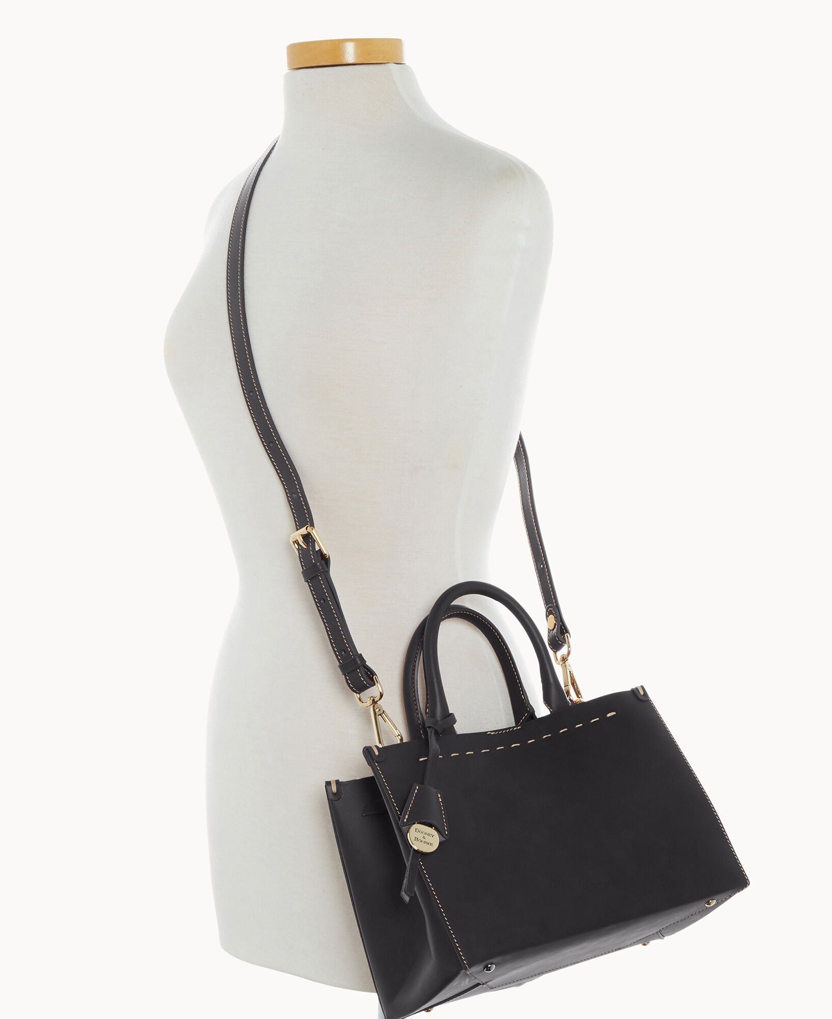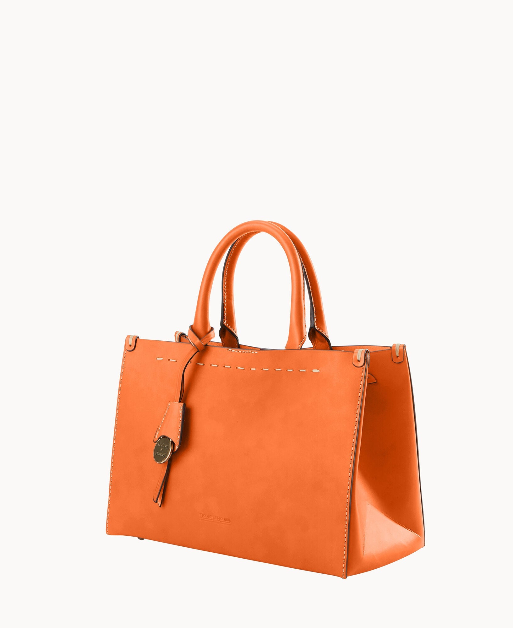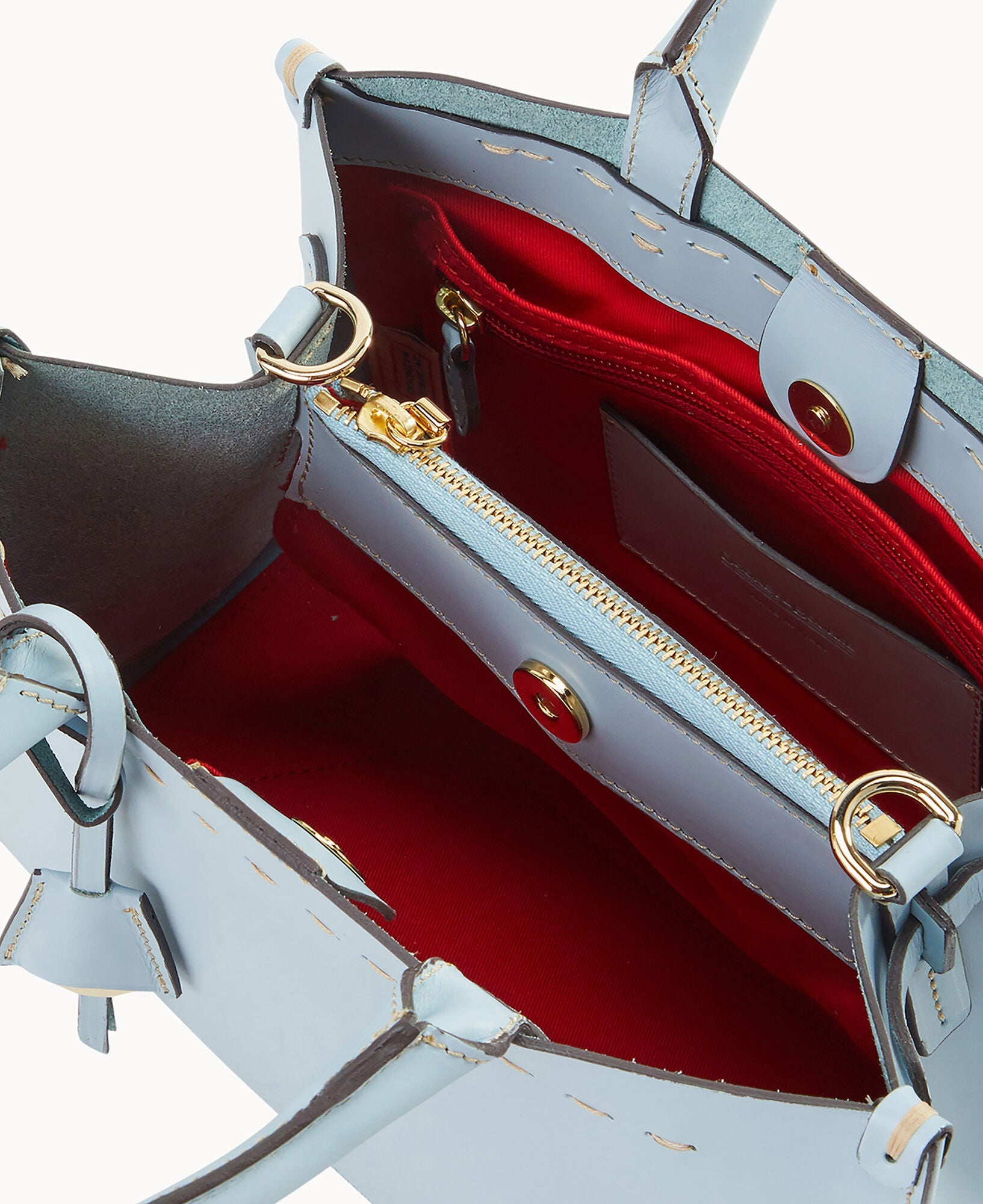 One inside pocket. One inside cellphone pocket. One inisde zipper pocket. Center zip compartment. Removable medallion. Adjustable and detachable strap. Shoulder strap drop length 24.5" Handle drop length 4.75". Lined. Feet. Magnetic snap closure.