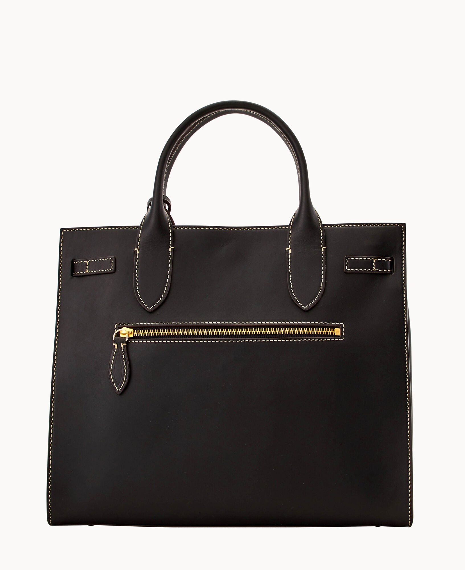 One inside pocket. Cell phone pocket. Handle drop length 4.5".