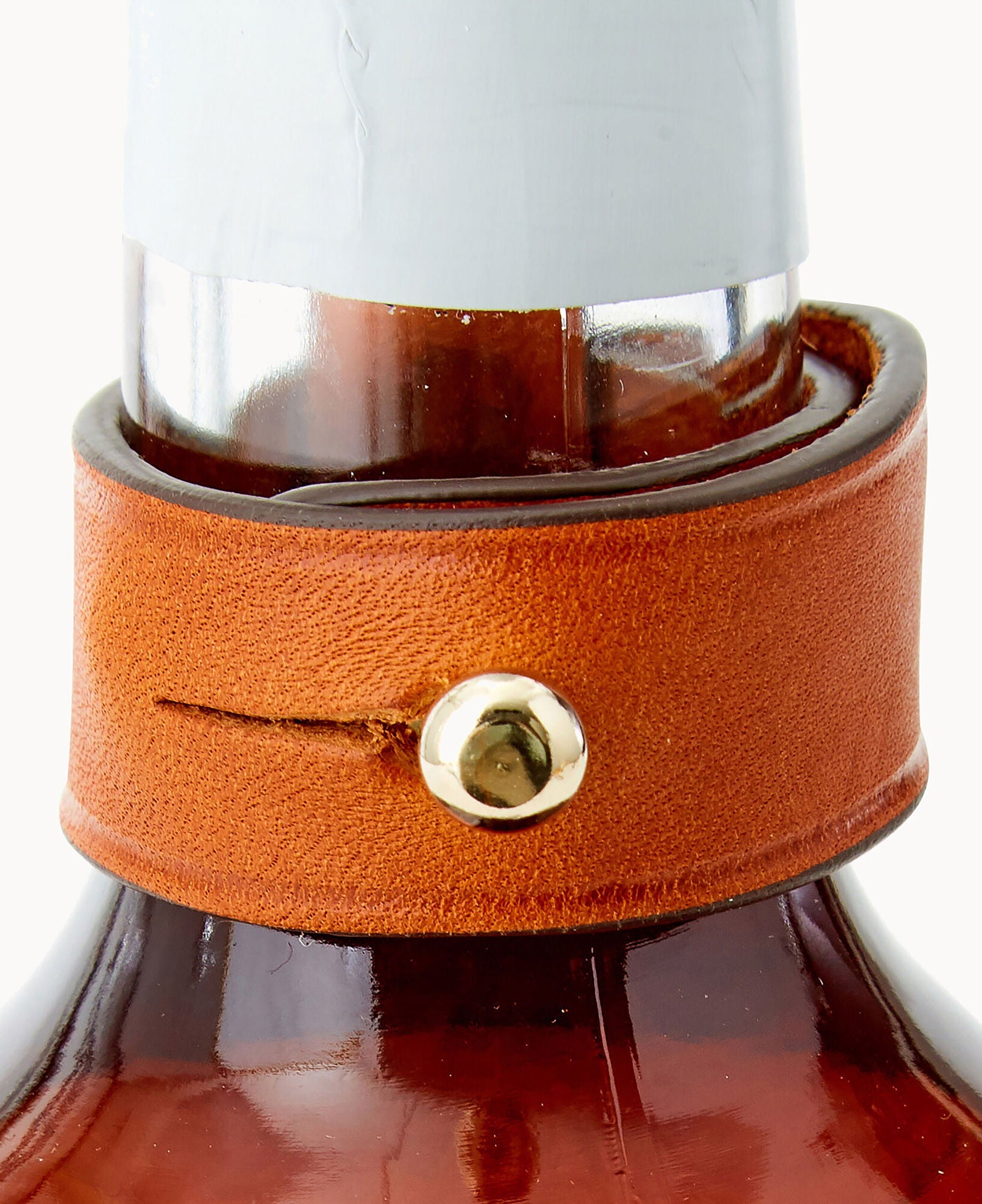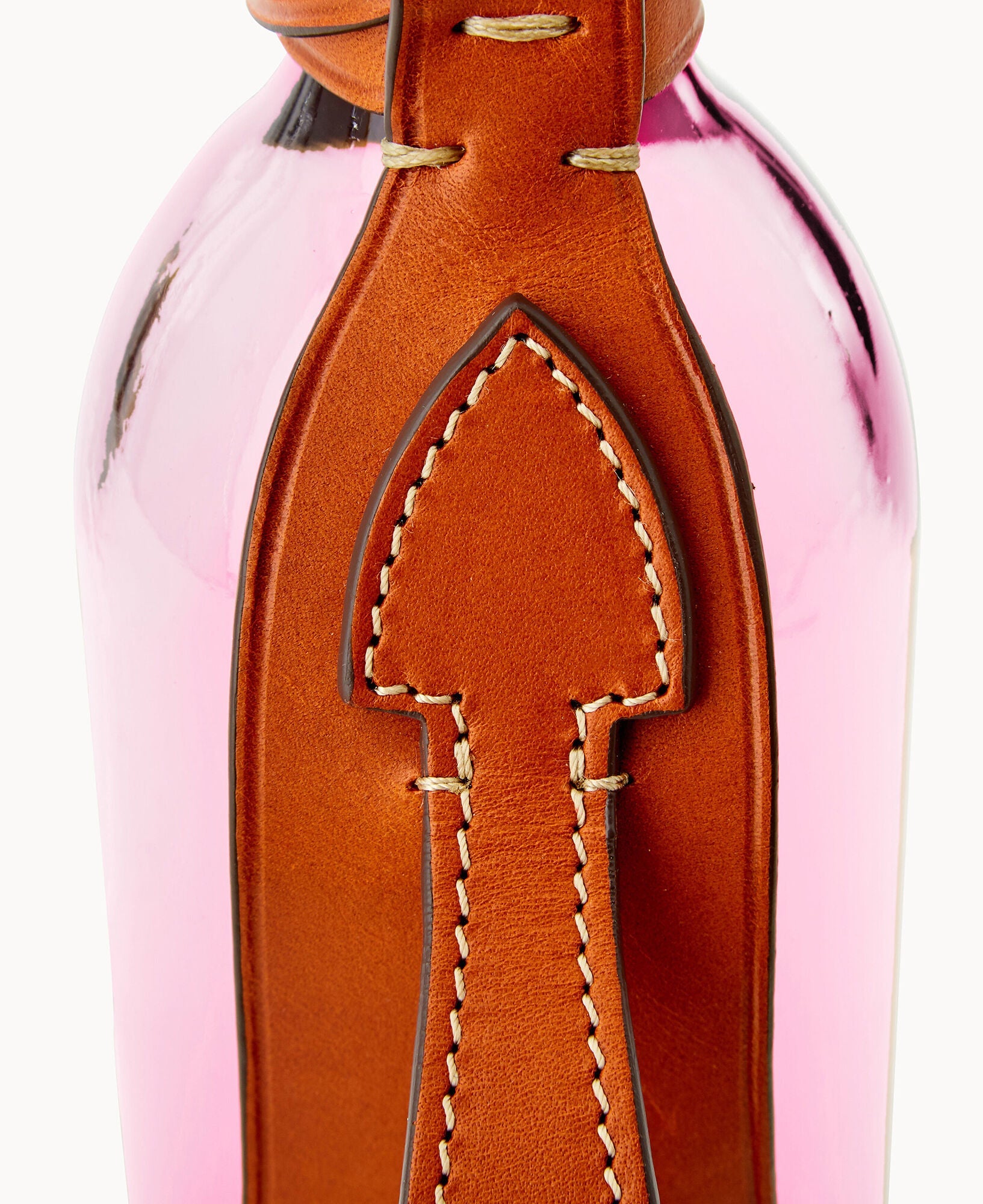 Hand stitched. Holds standard sized 750ml wine bottle. Handle for easy carry. Tongue tab buckle closure.