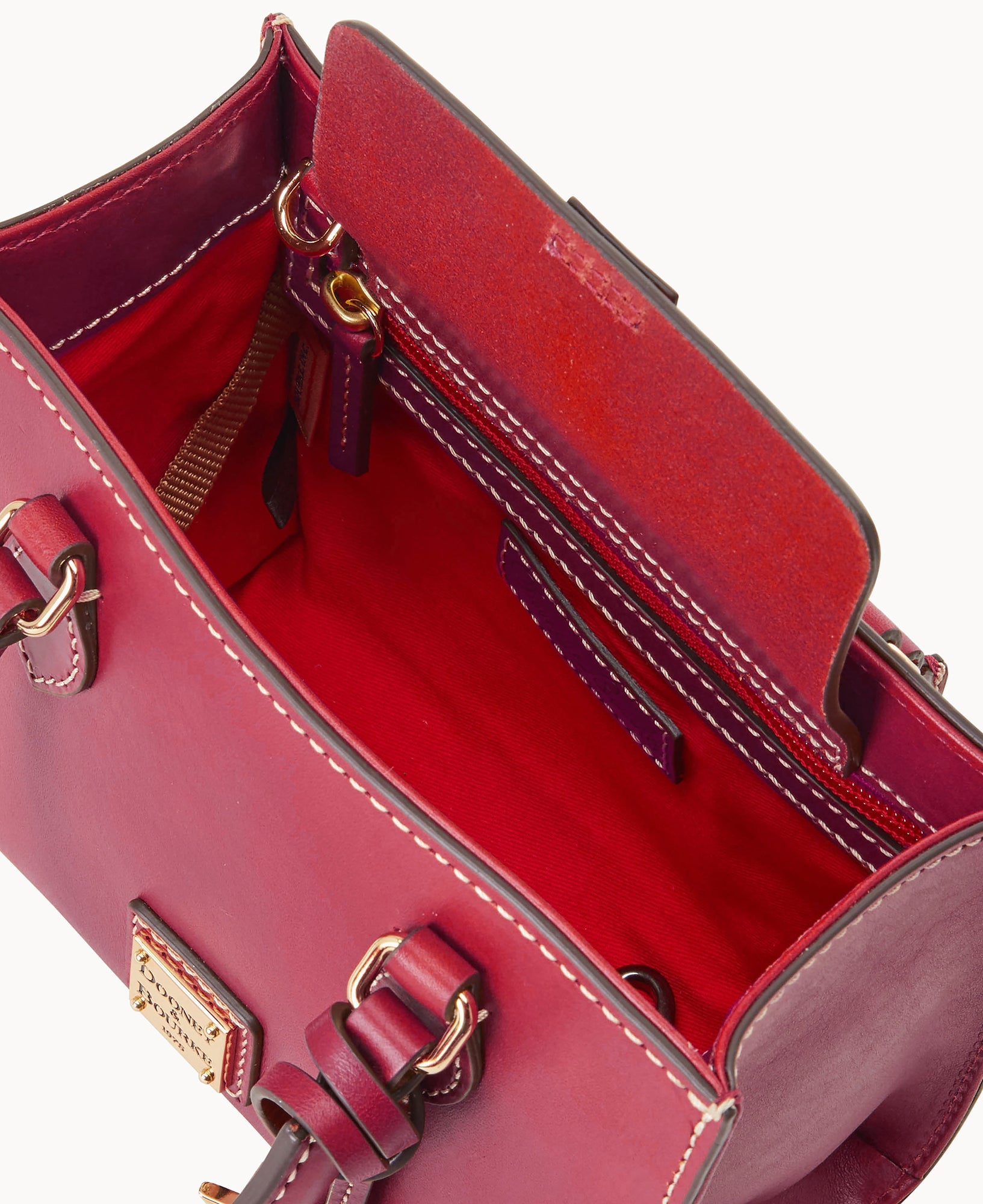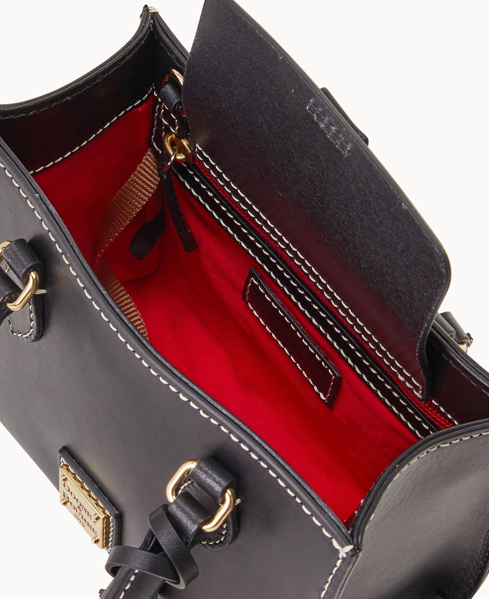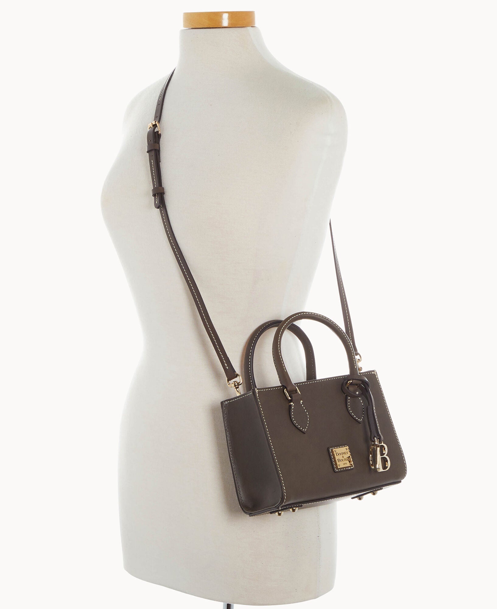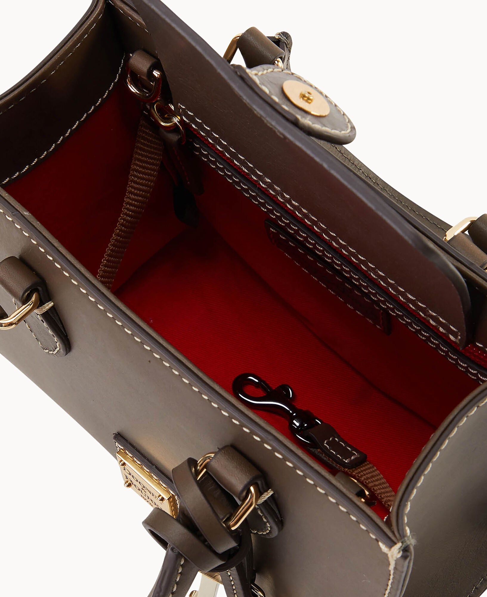One inside zip pocket. One inside pocket. Inside key hook. Handle drop length 3.75". Adjustable, detachable shoulder strap. Strap drop length 22.25". Lined. Feet. Magnetic snap flap closure.