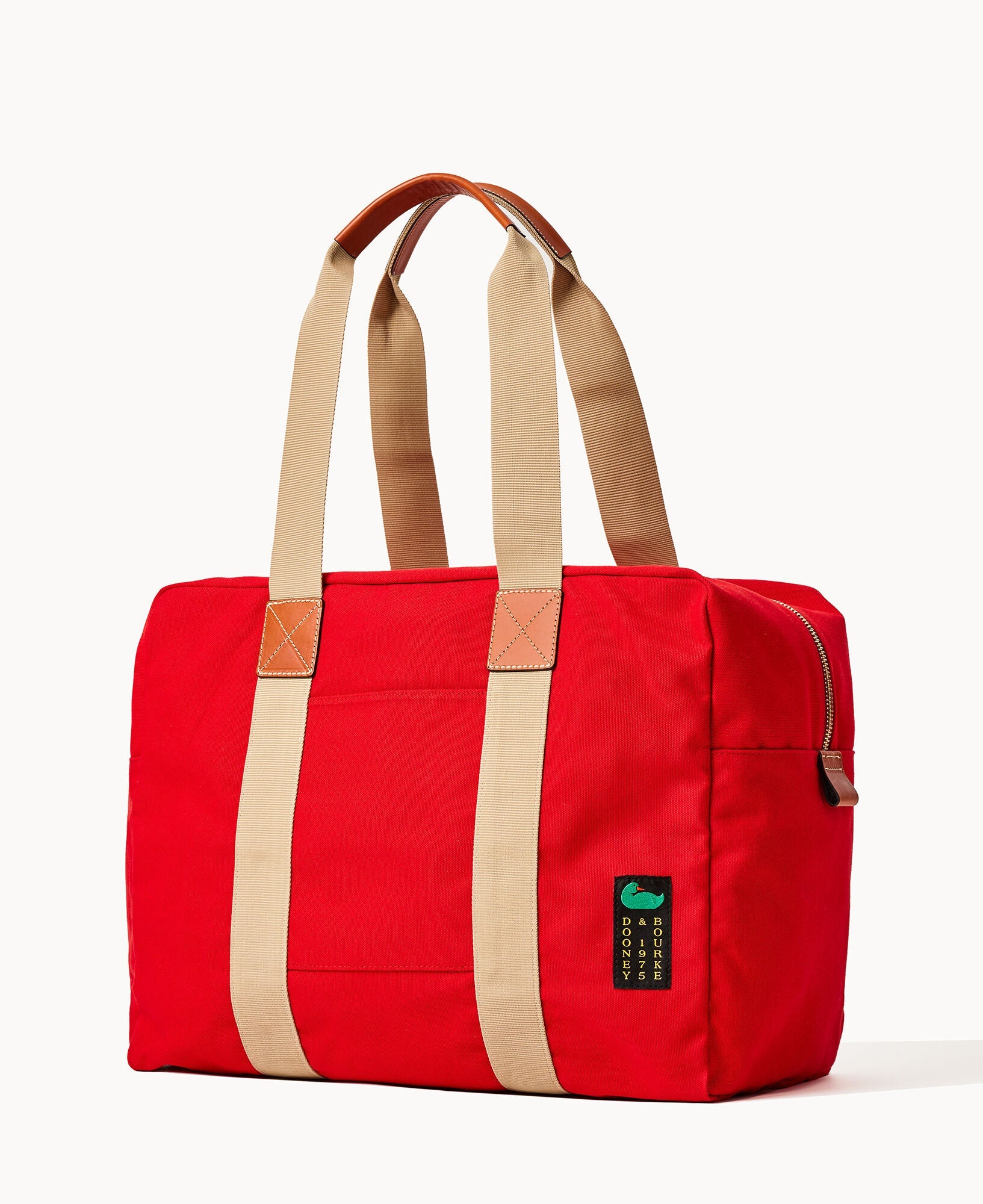 Two outside slip pockets. Two inside zip pockets. Strap drop length 12". Zipper closure.