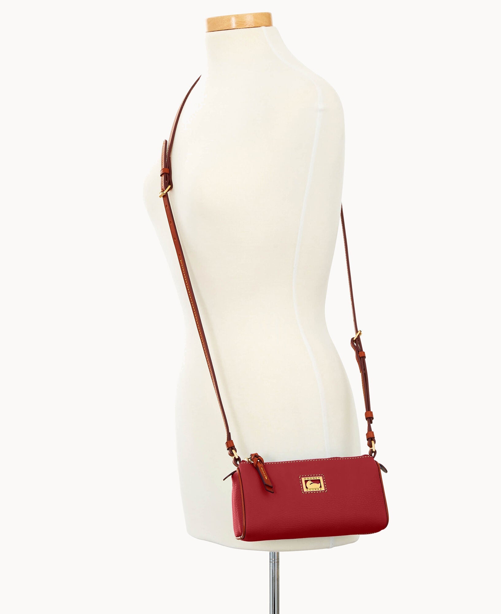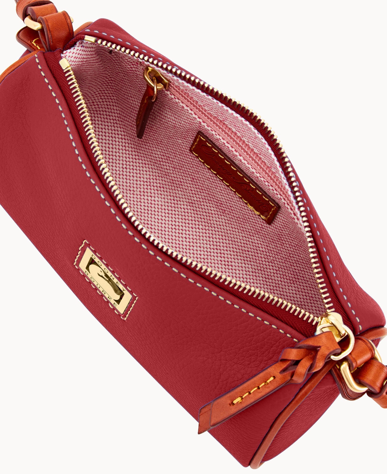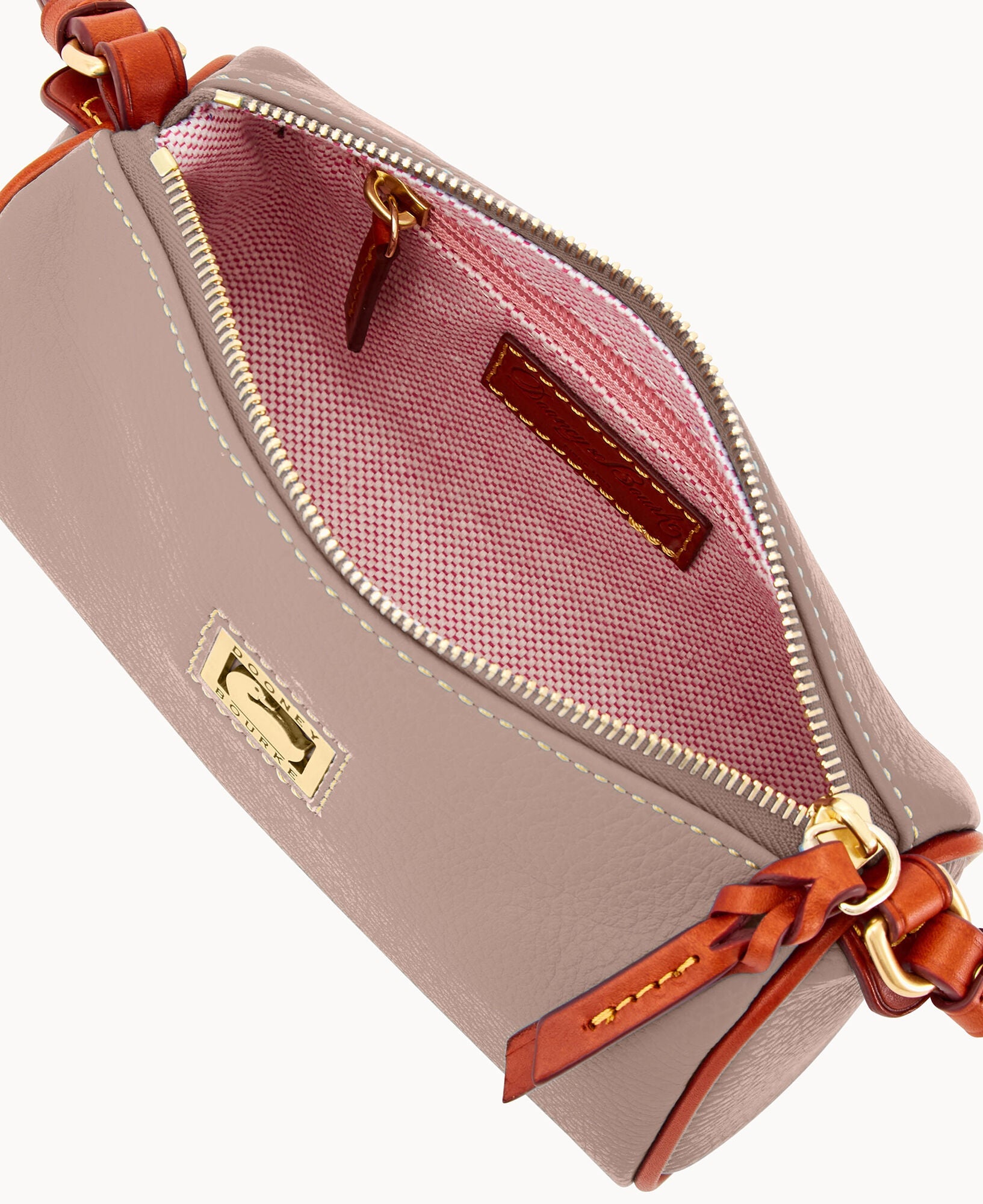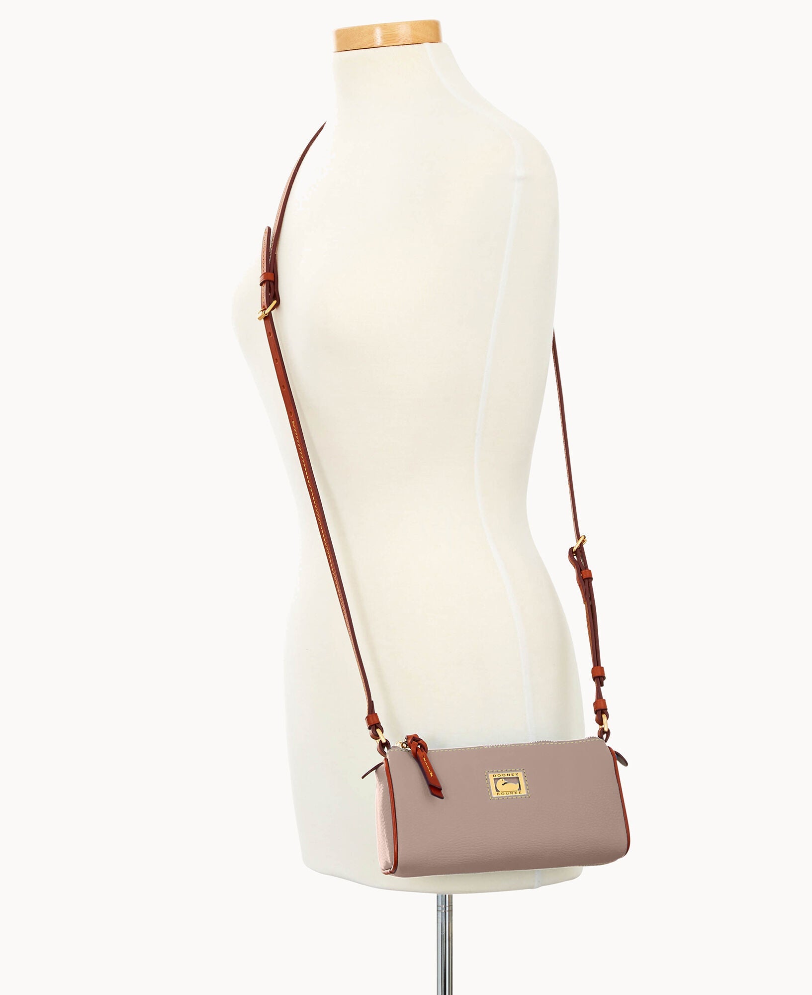 One inside zip pocket. One inside pocket. Inside key hook. Detachable shoulder strap. Strap drop length 26". Zipper closure.