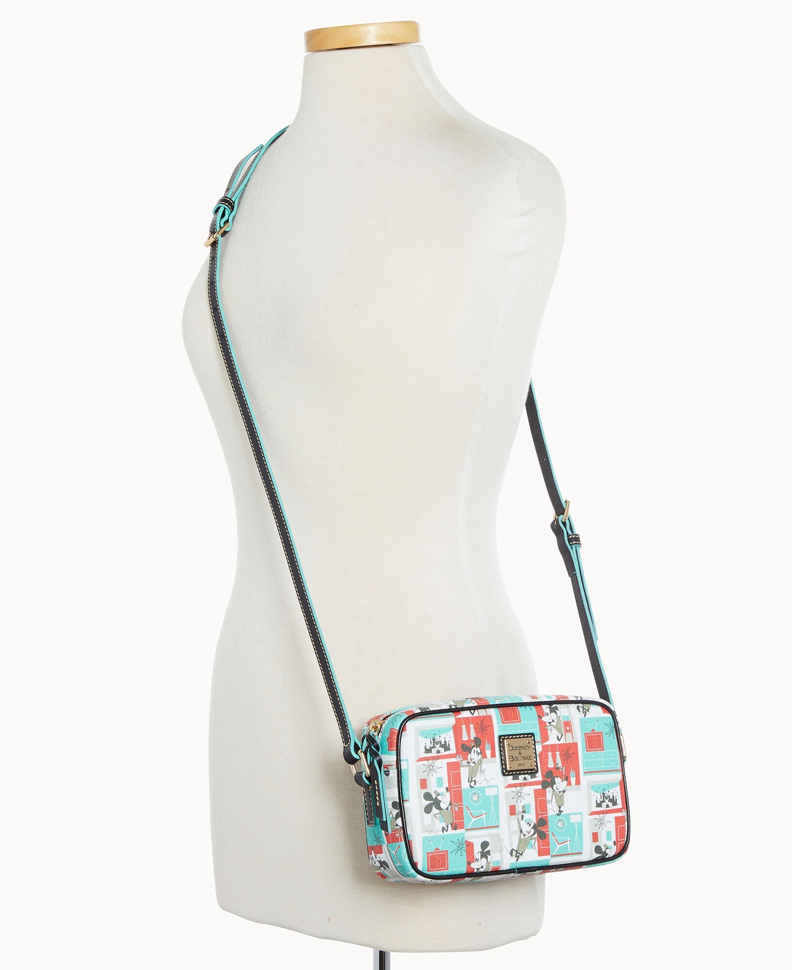 Two inside pockets. Inside key hook. Adjustable shoulder strap. Strap drop length 24.5". Lined. Zipper closure.