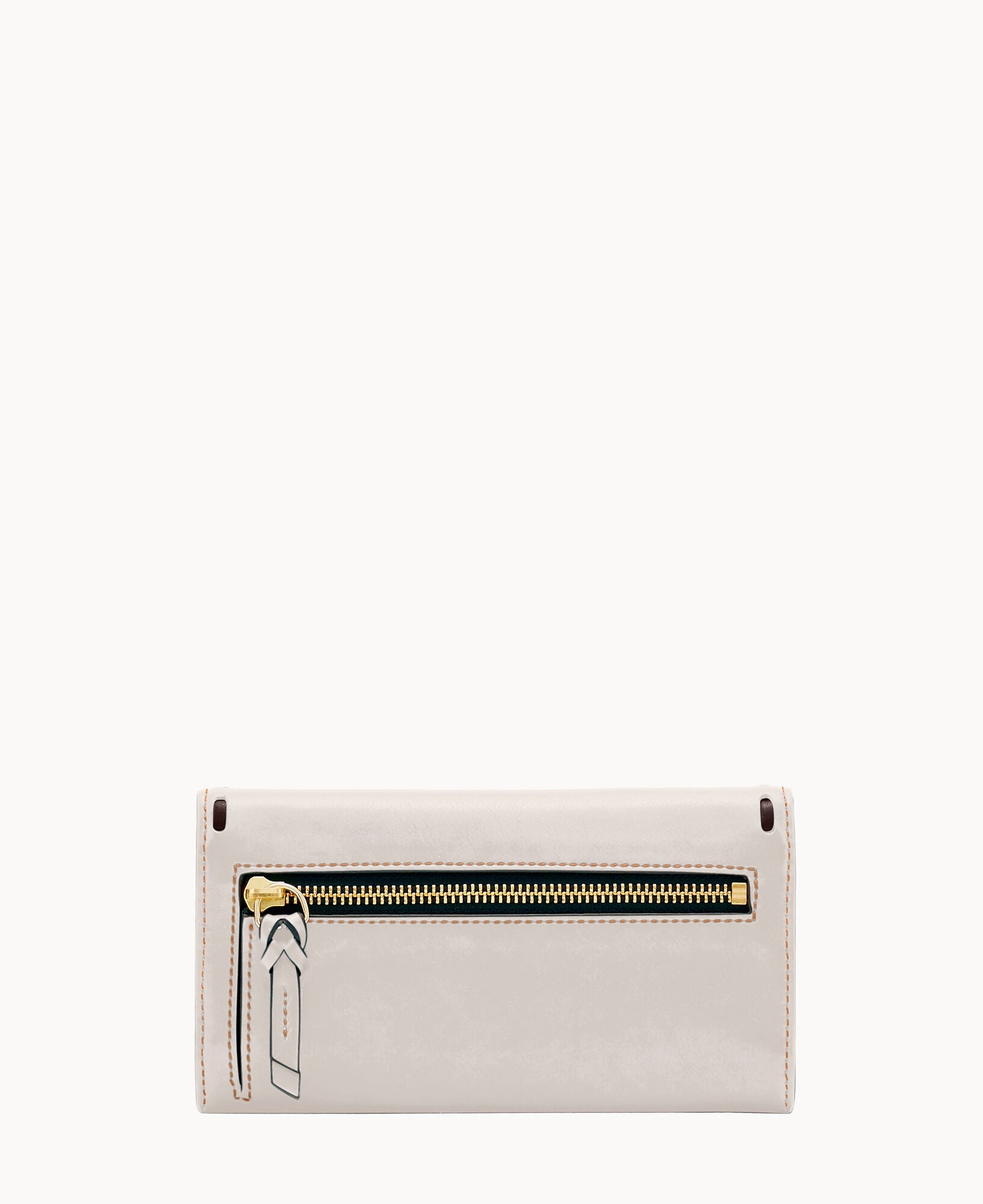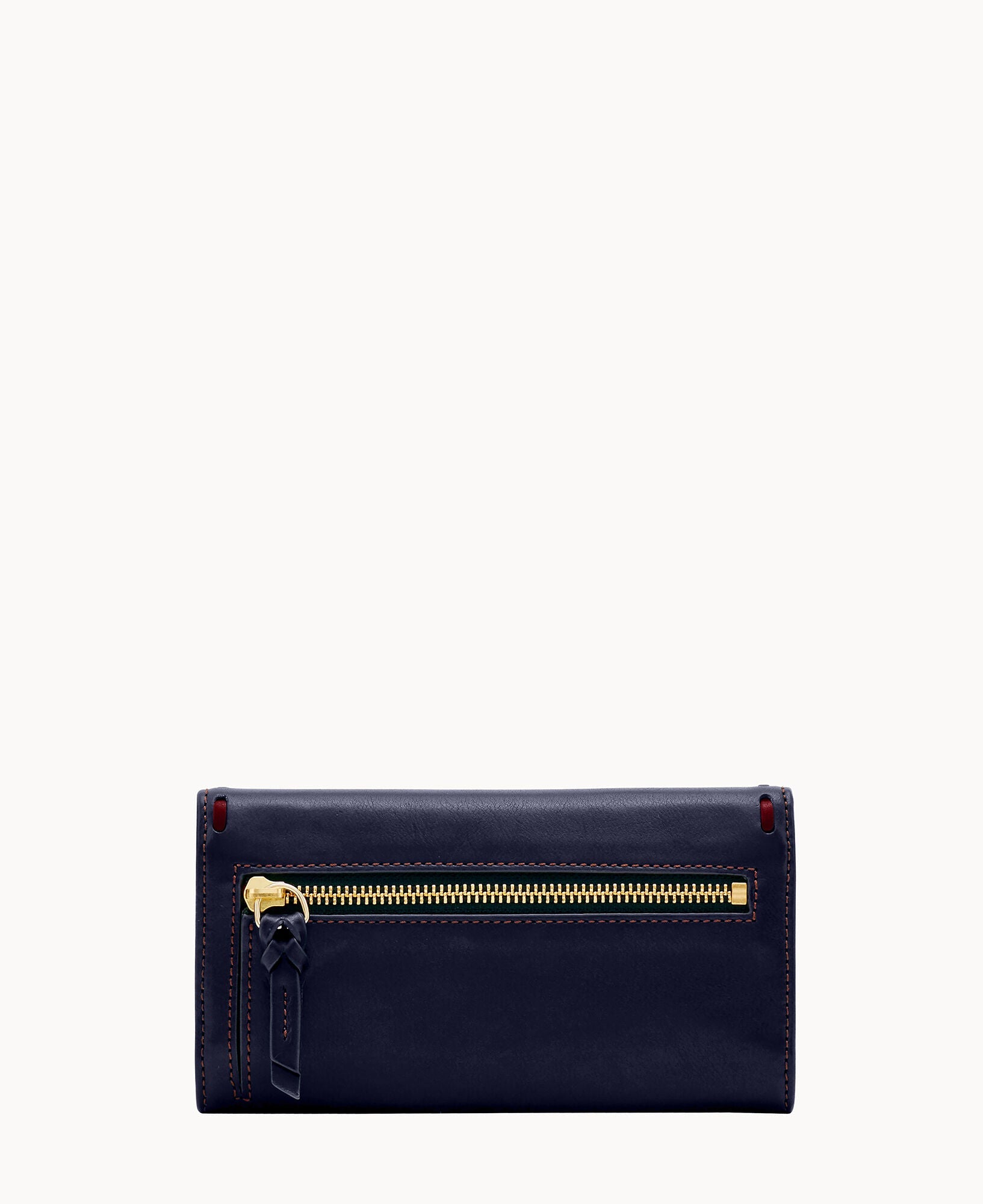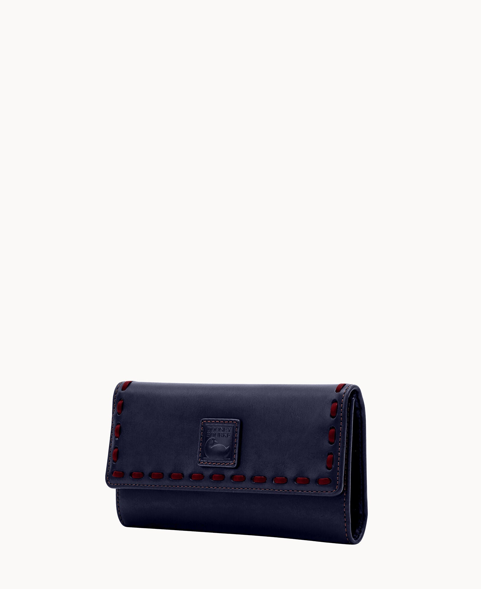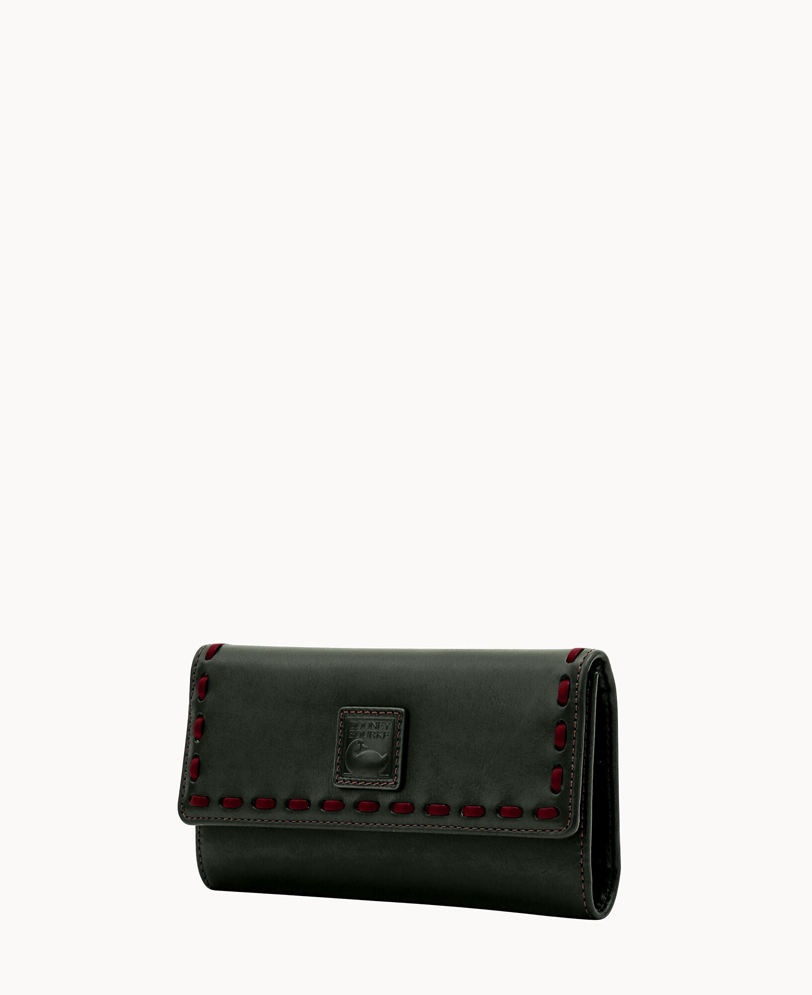 One outside zip pocket. Two inside pockets. Two bill compartments. License pocket with window. Seven credit card slots. Lined. Snap closure.