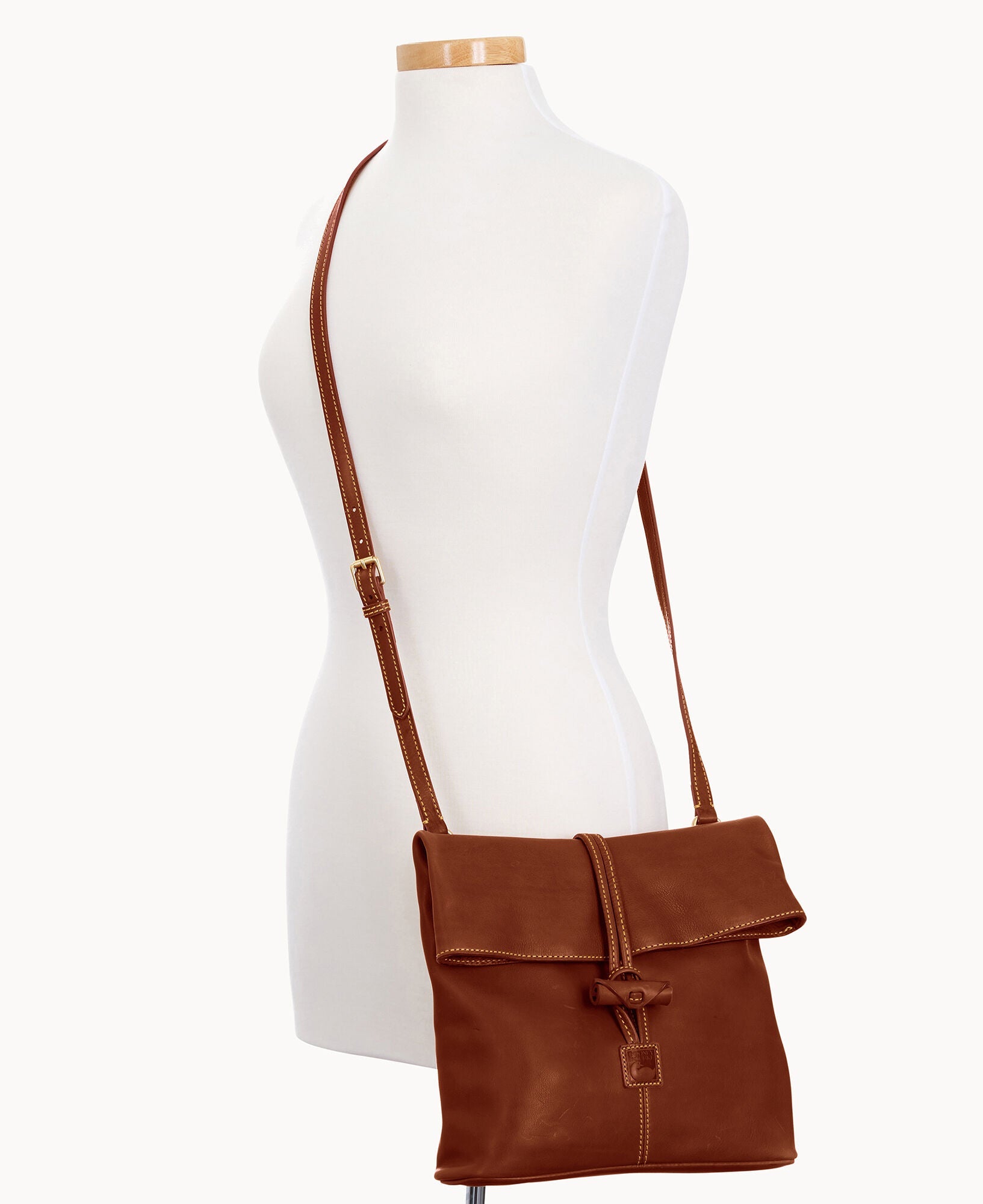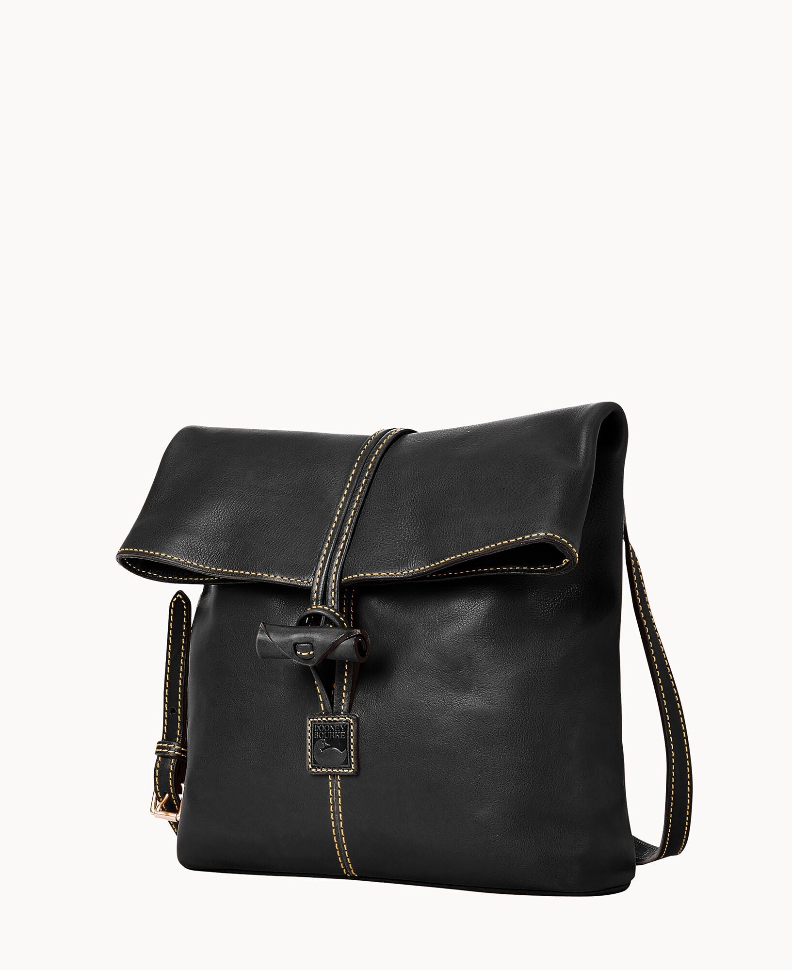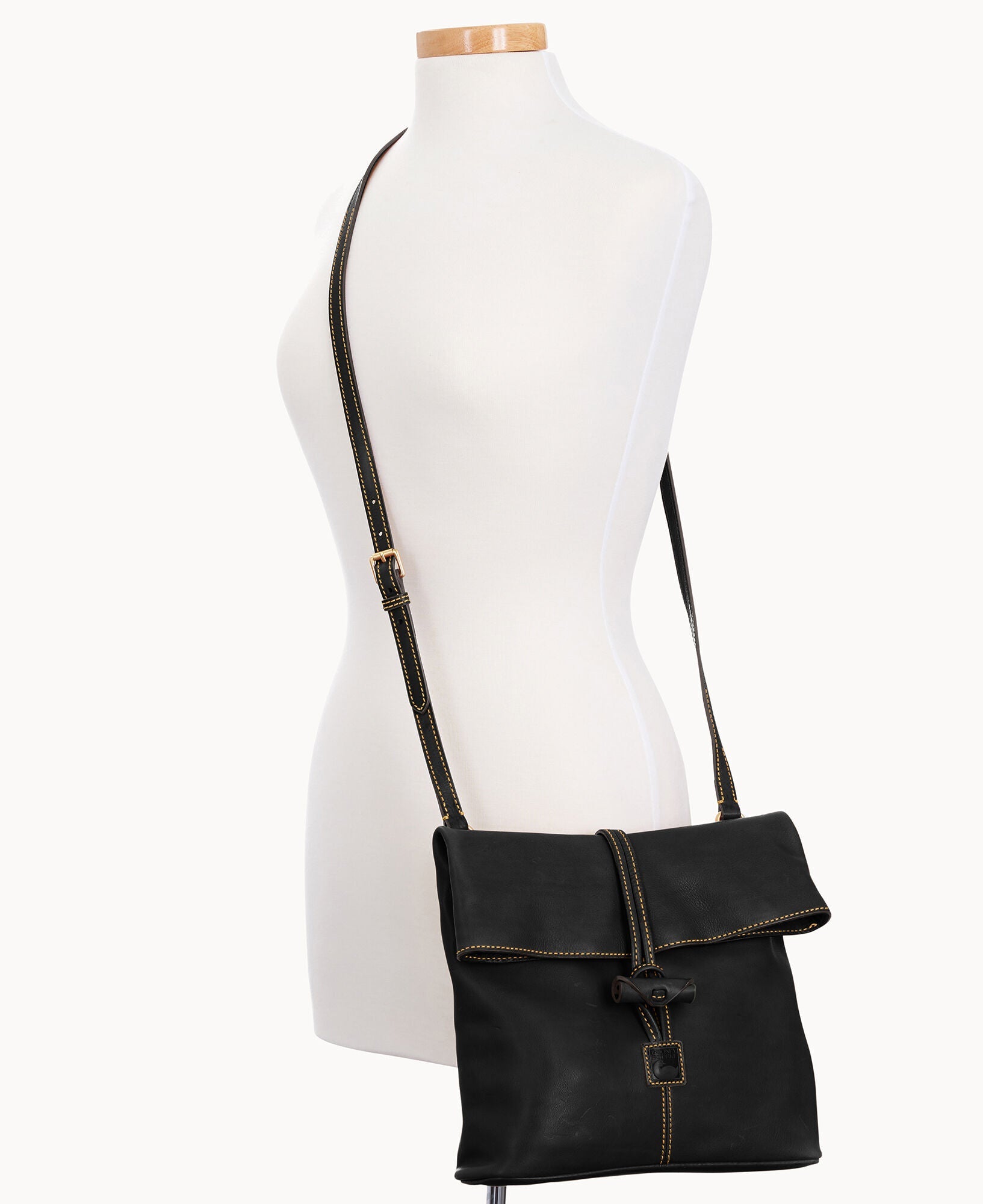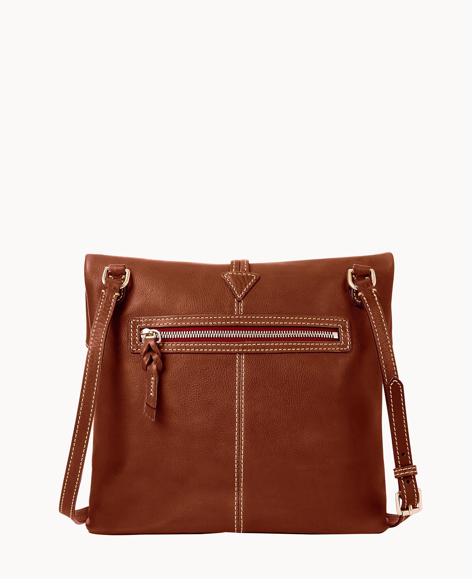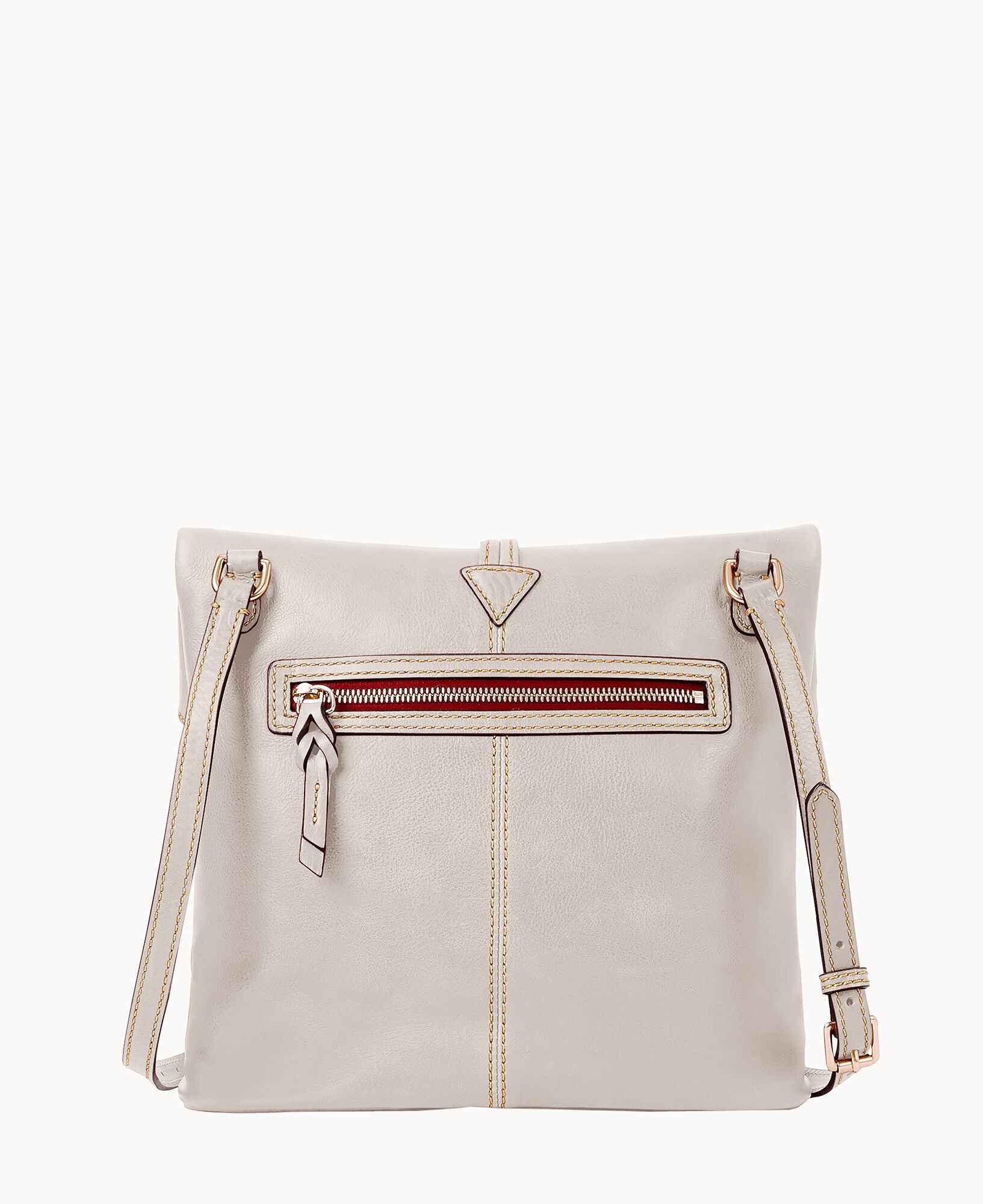 One outside zip pocket. One inside zip pocket. One inside pocket. Cell phone pocket. Inside key hook. Handle drop length 5". Adjustable shoulder strap. Strap drop length 24". Lined. Feet. Toggle closure.