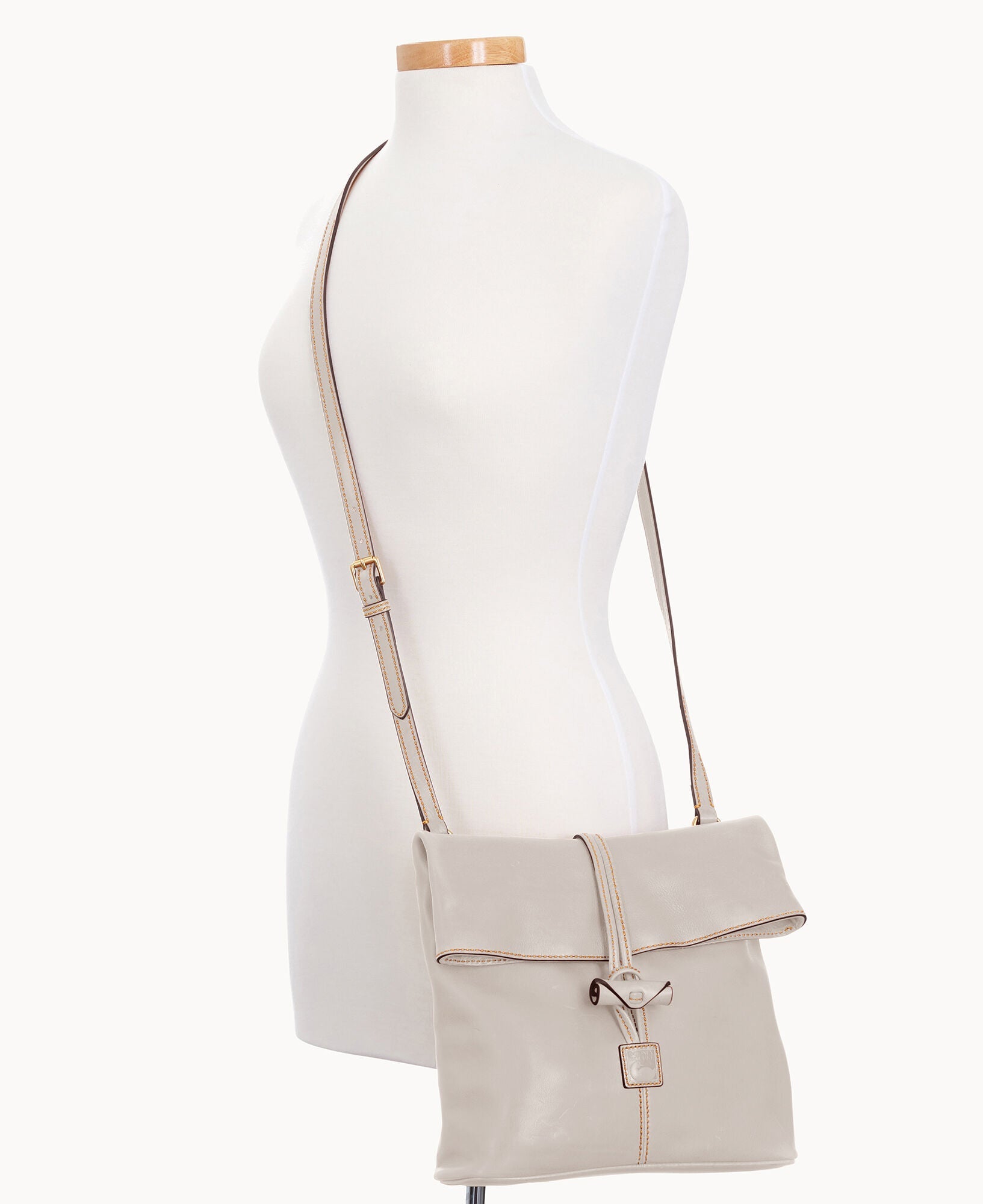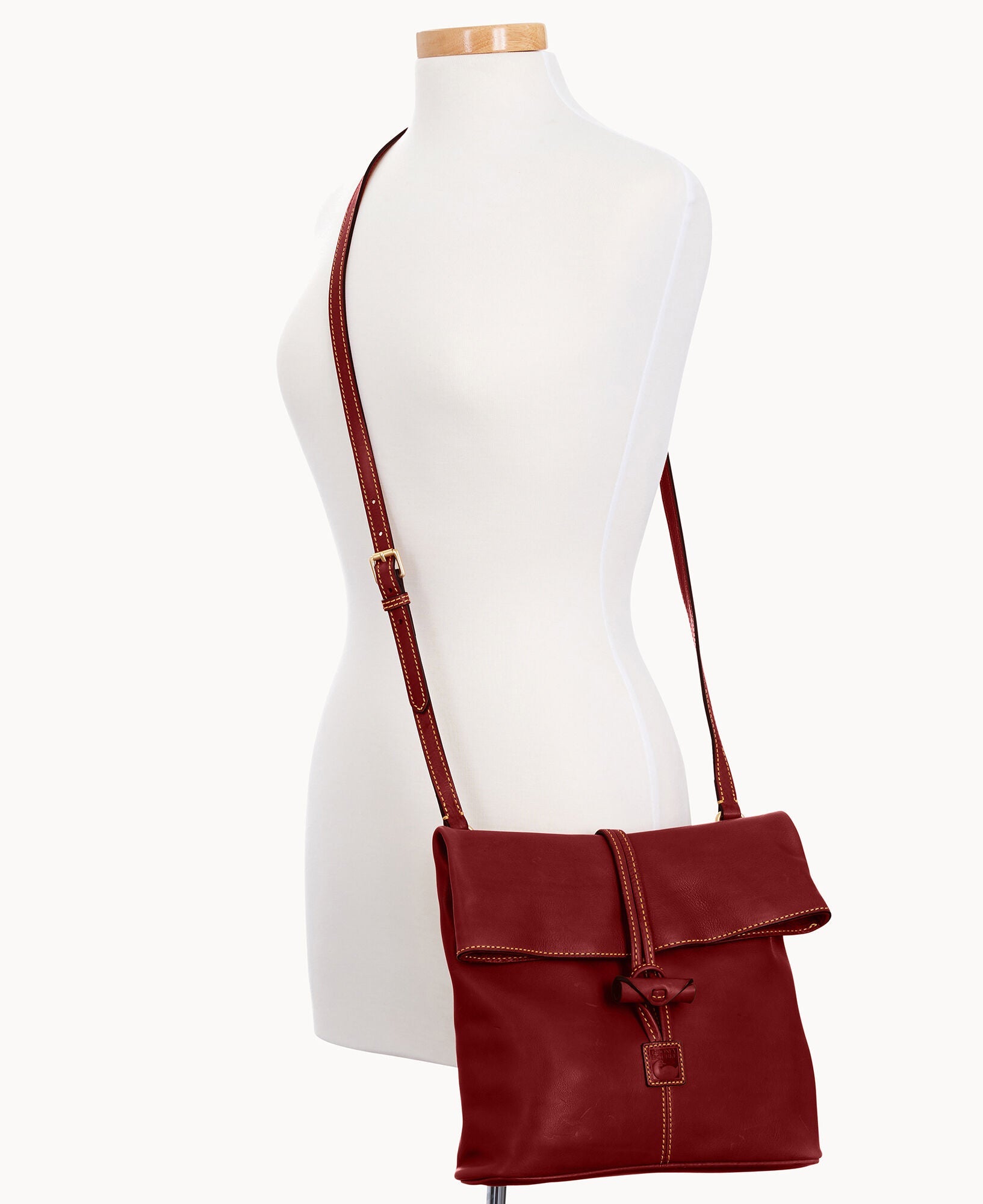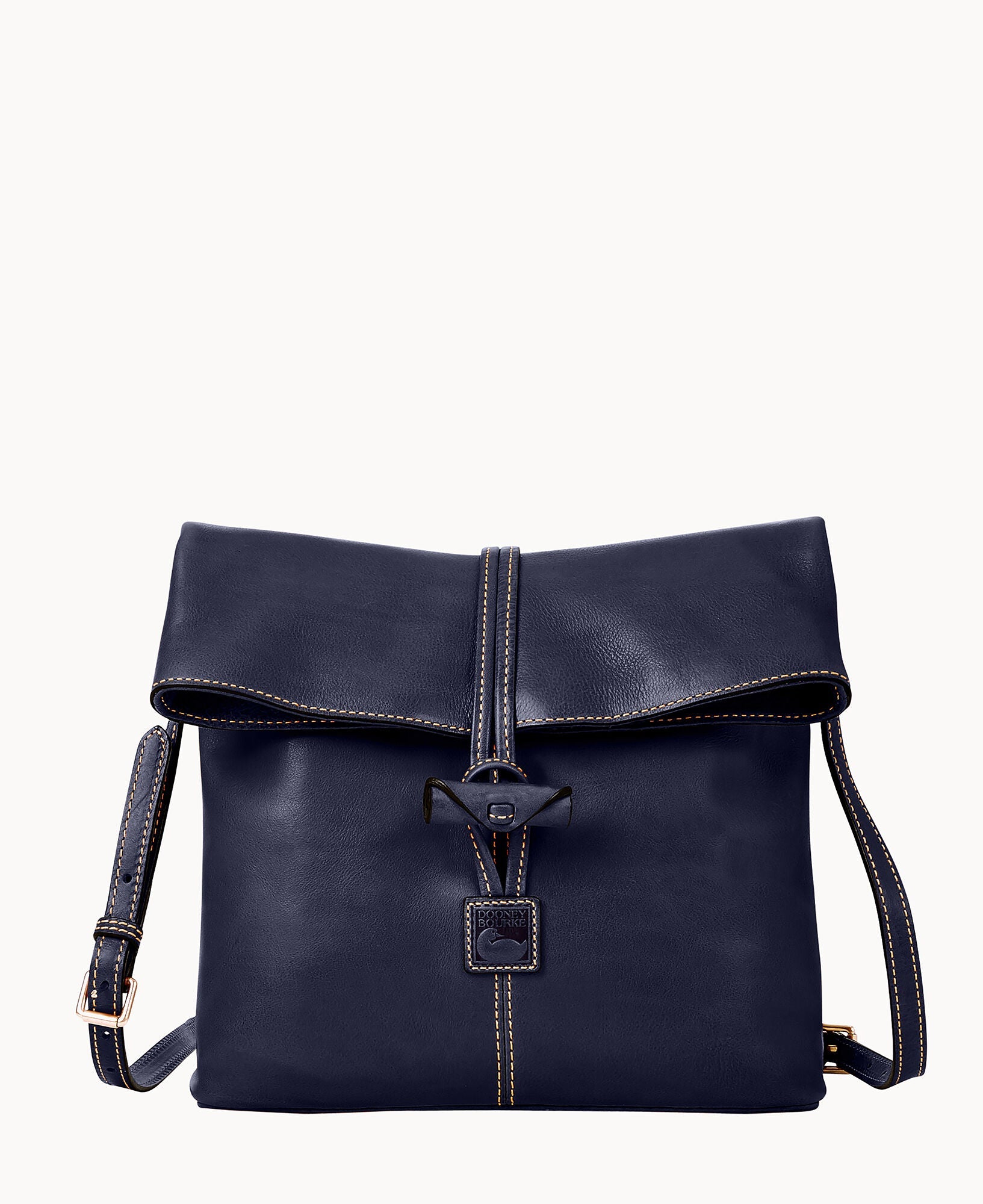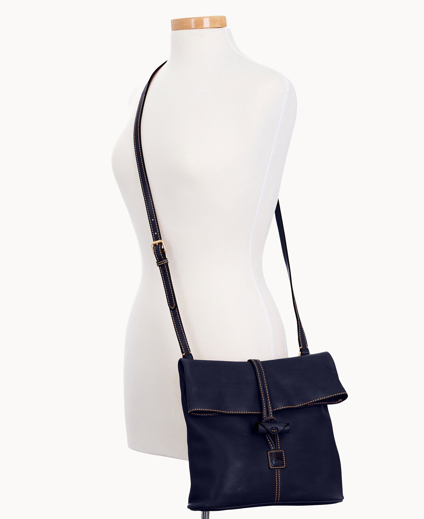 One outside zip pocket. One inside zip pocket. One inside pocket. Cell phone pocket. Inside key hook. Handle drop length 5". Adjustable shoulder strap. Strap drop length 24". Lined. Feet. Toggle closure.