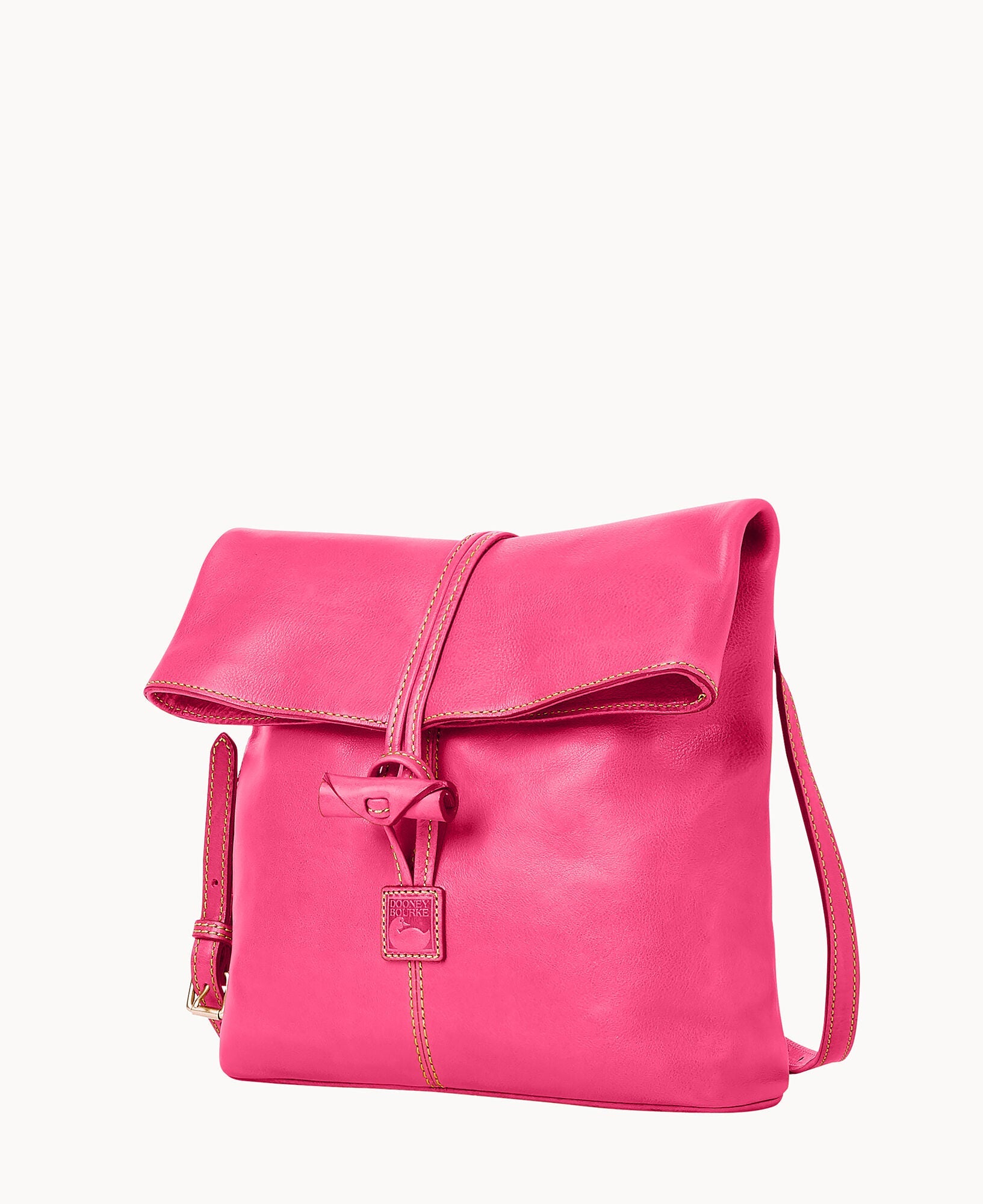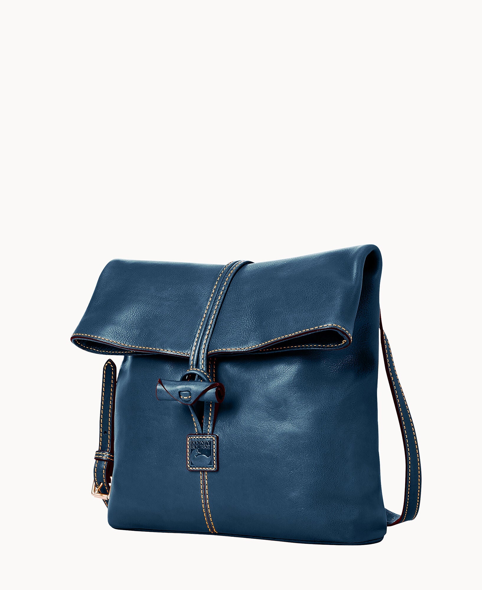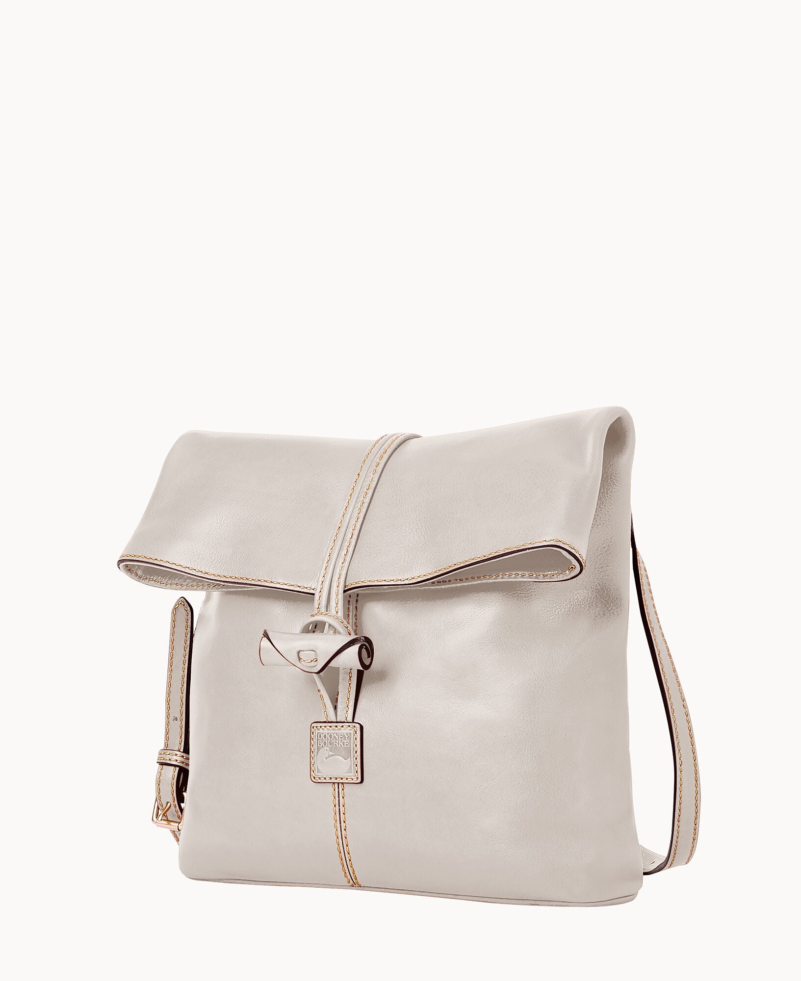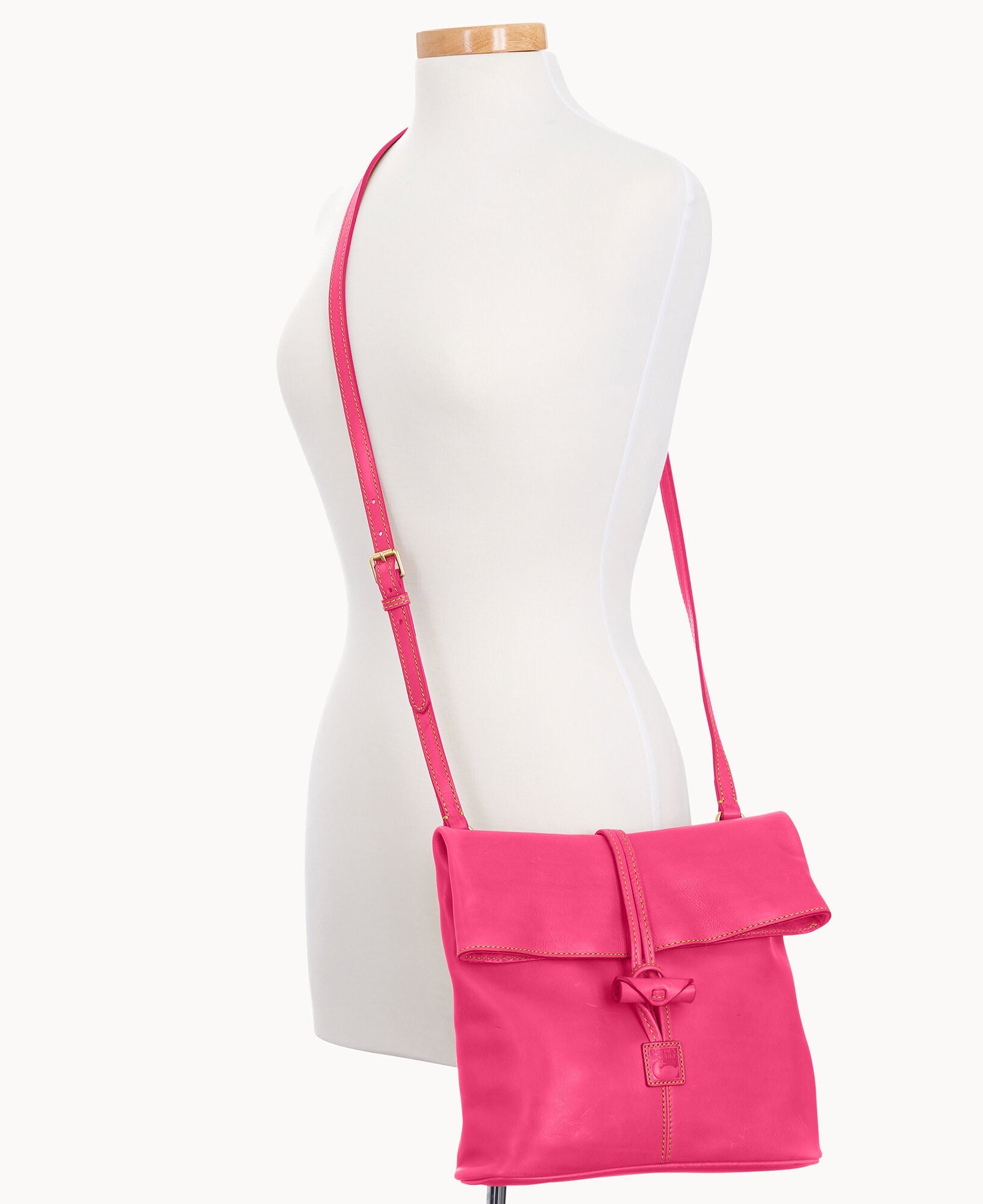 One outside zip pocket. One inside zip pocket. One inside pocket. Cell phone pocket. Inside key hook. Handle drop length 5". Adjustable shoulder strap. Strap drop length 24". Lined. Feet. Toggle closure.