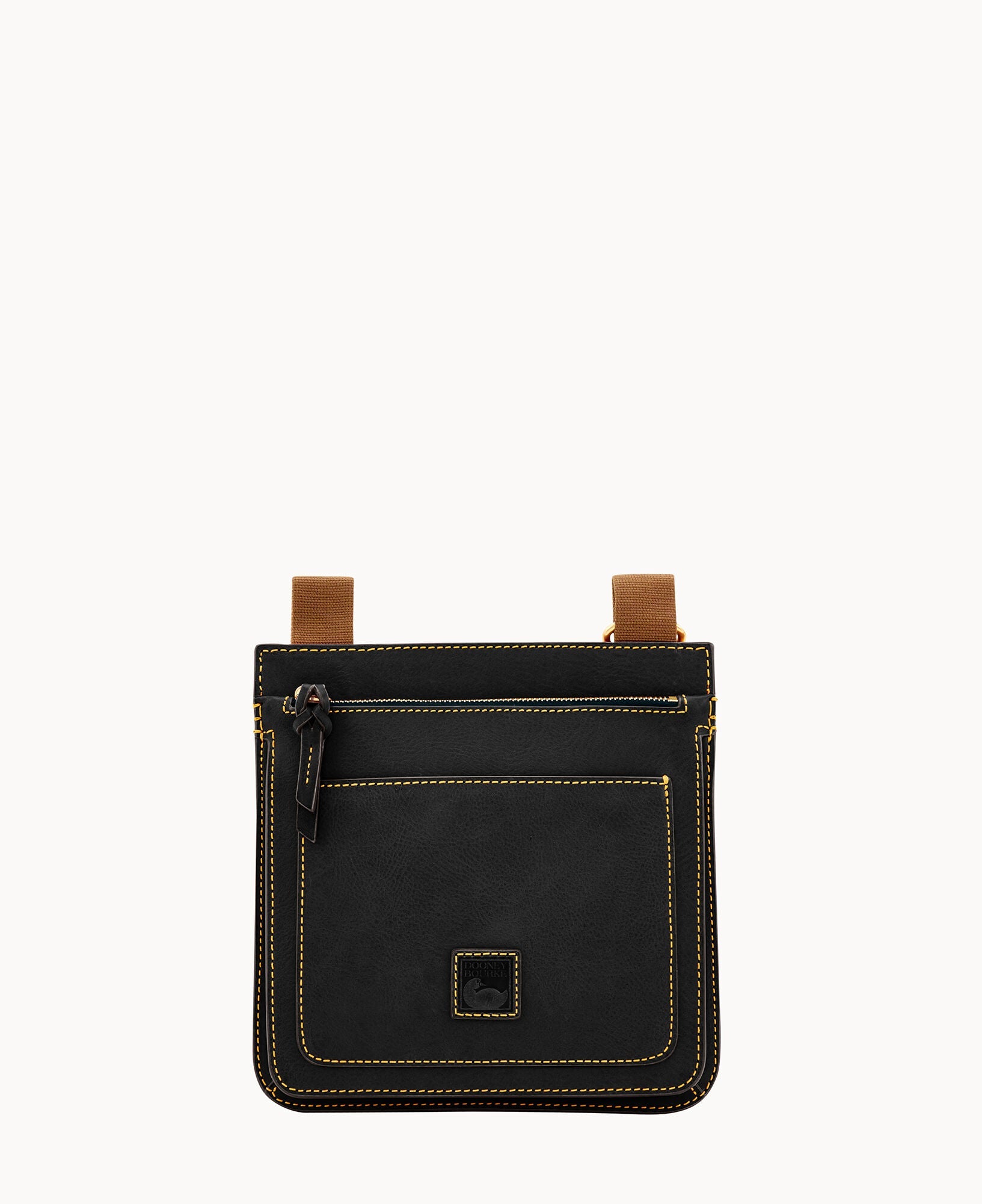 One outside pocket. One inside zip pocket. Two inside pockets. Inside key hook. Strap drop length 22". Lined. Zipper closure.