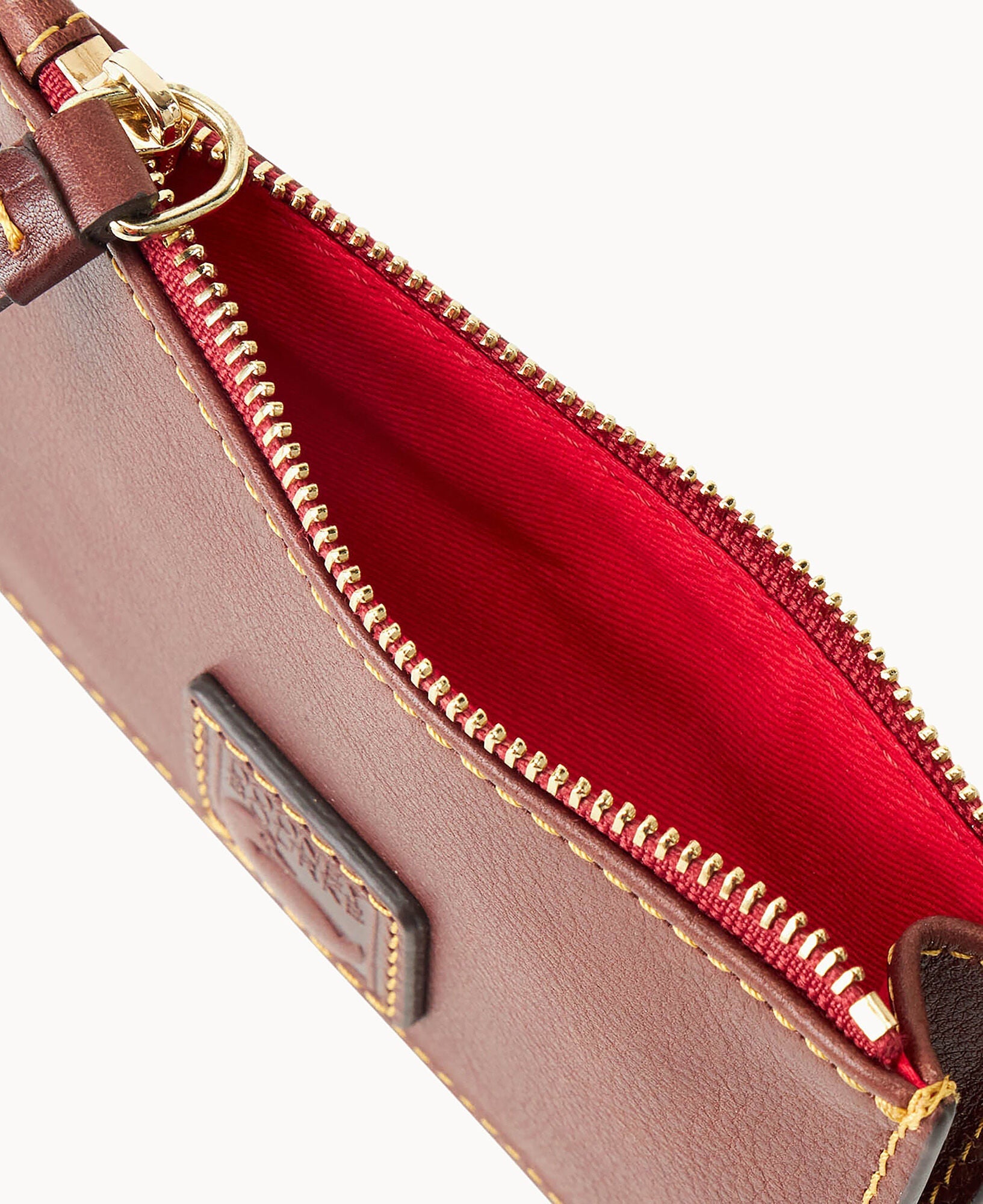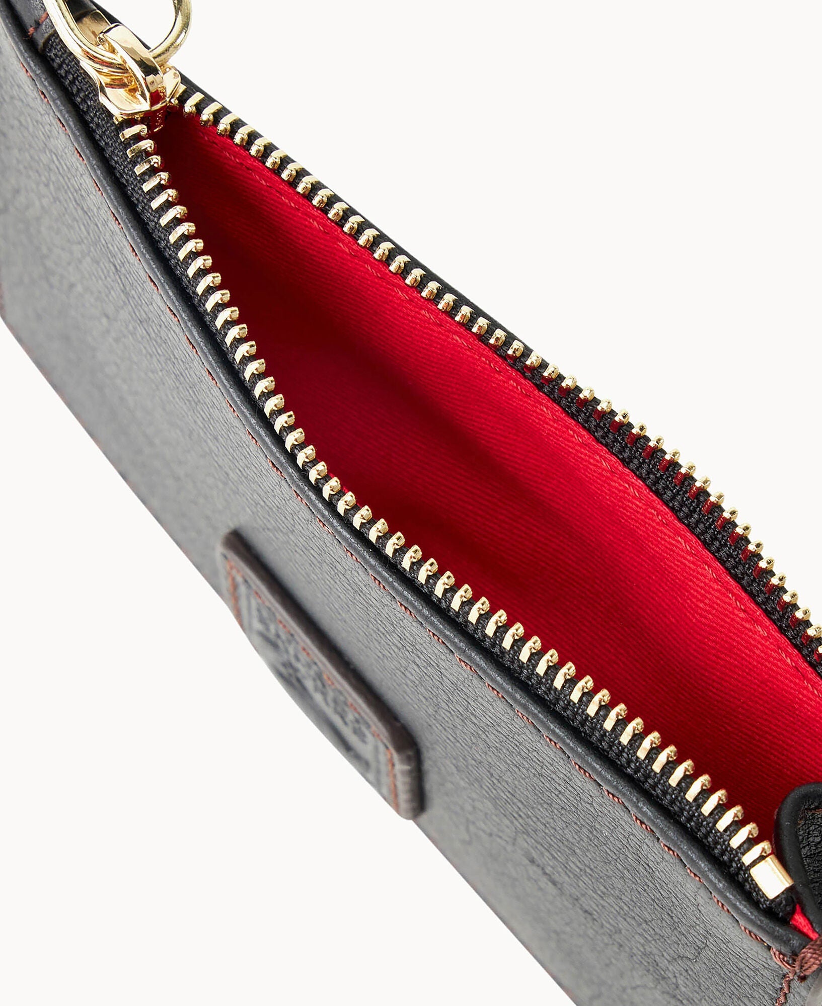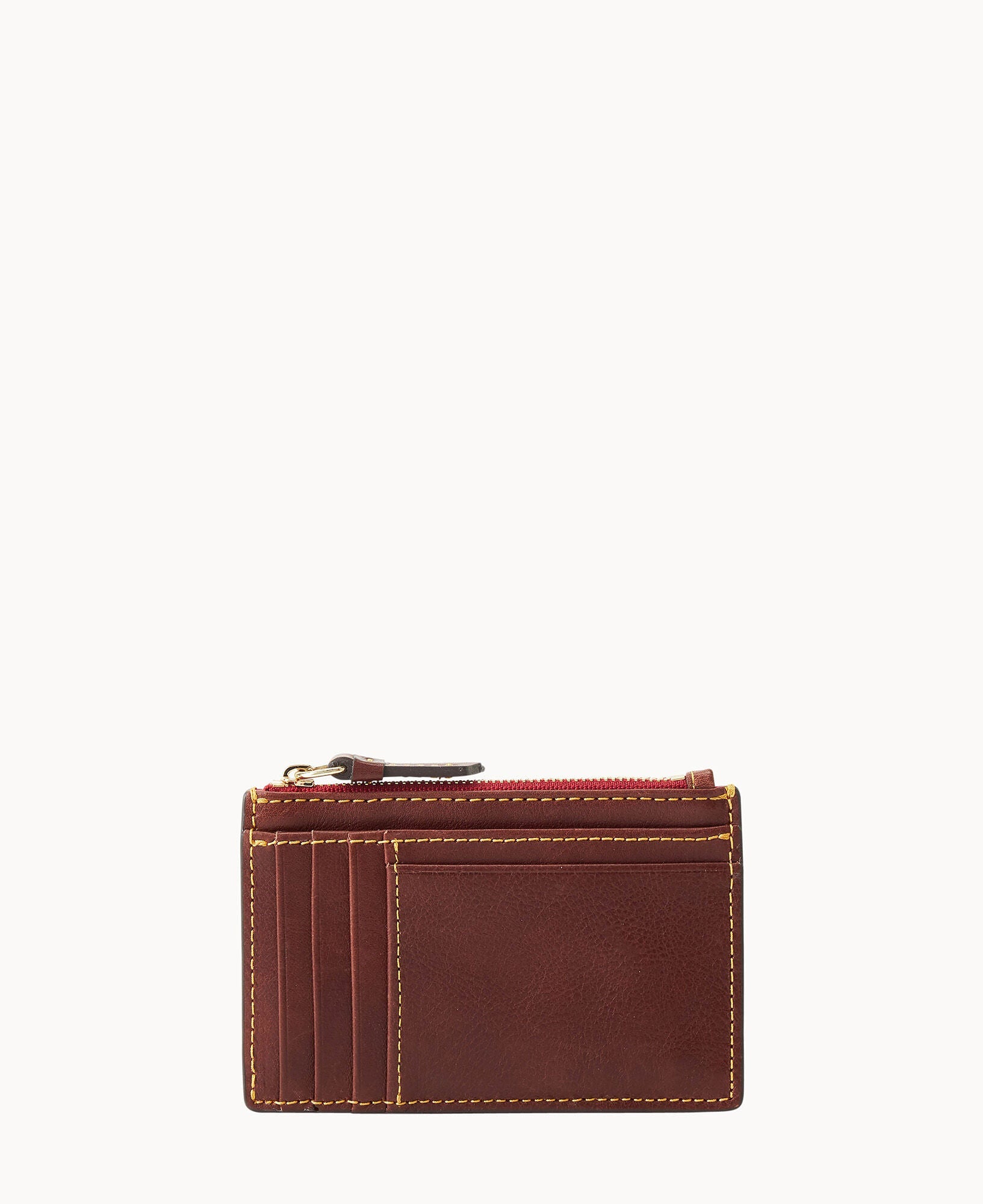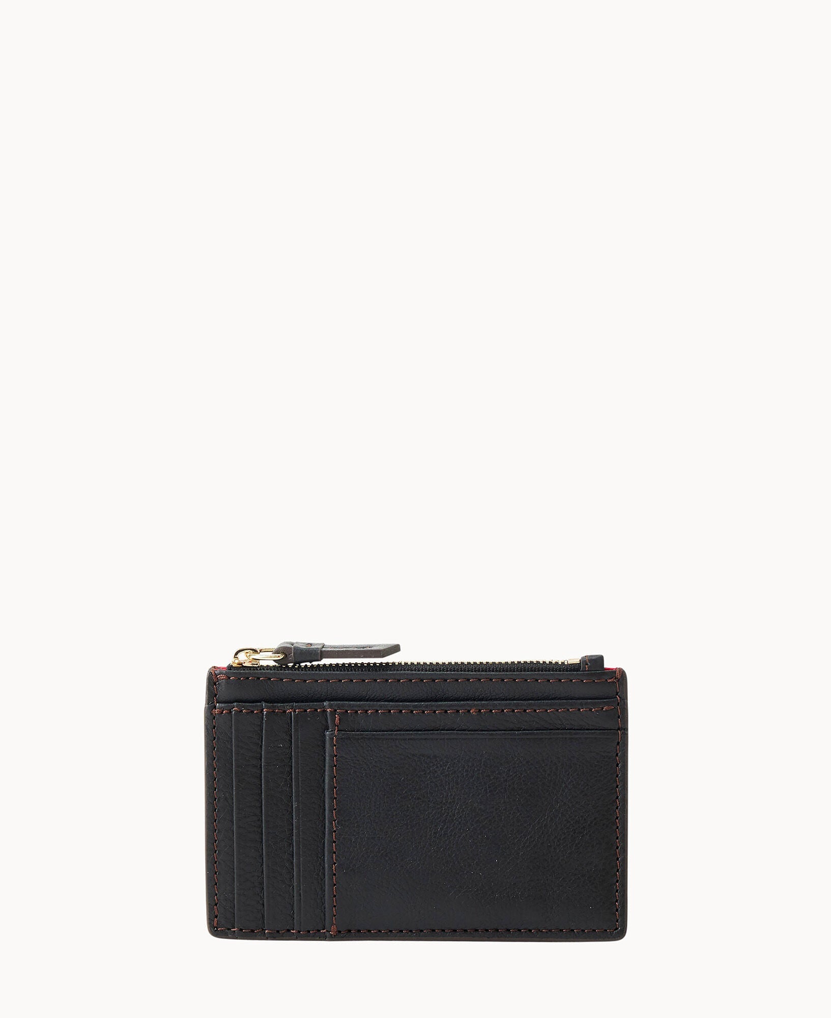 Five credit card slots. One pocket. One zipper pocket. Snap closure.