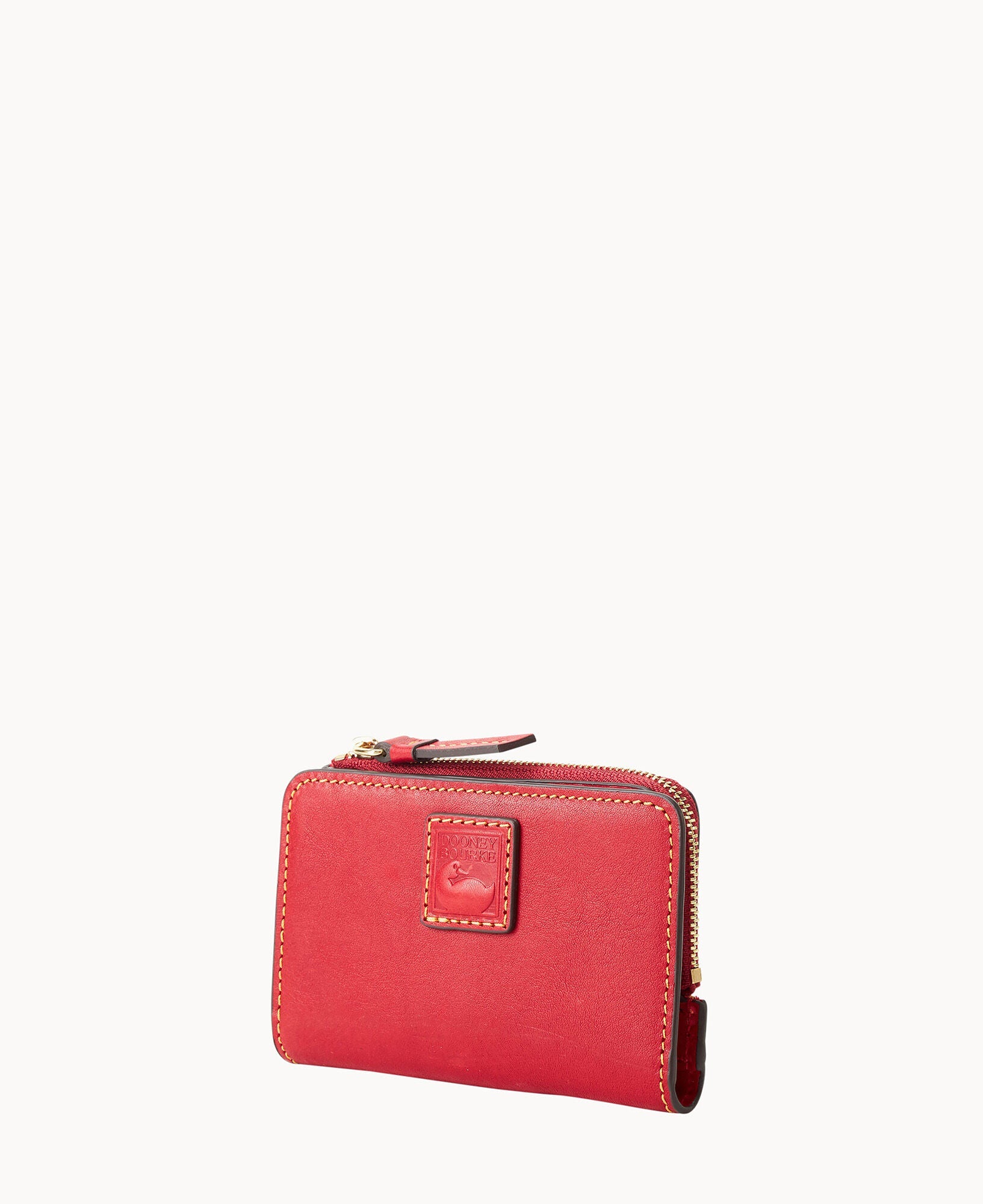 Eight credit card slots. Two pockets. One zipper pocket. Snap closure.