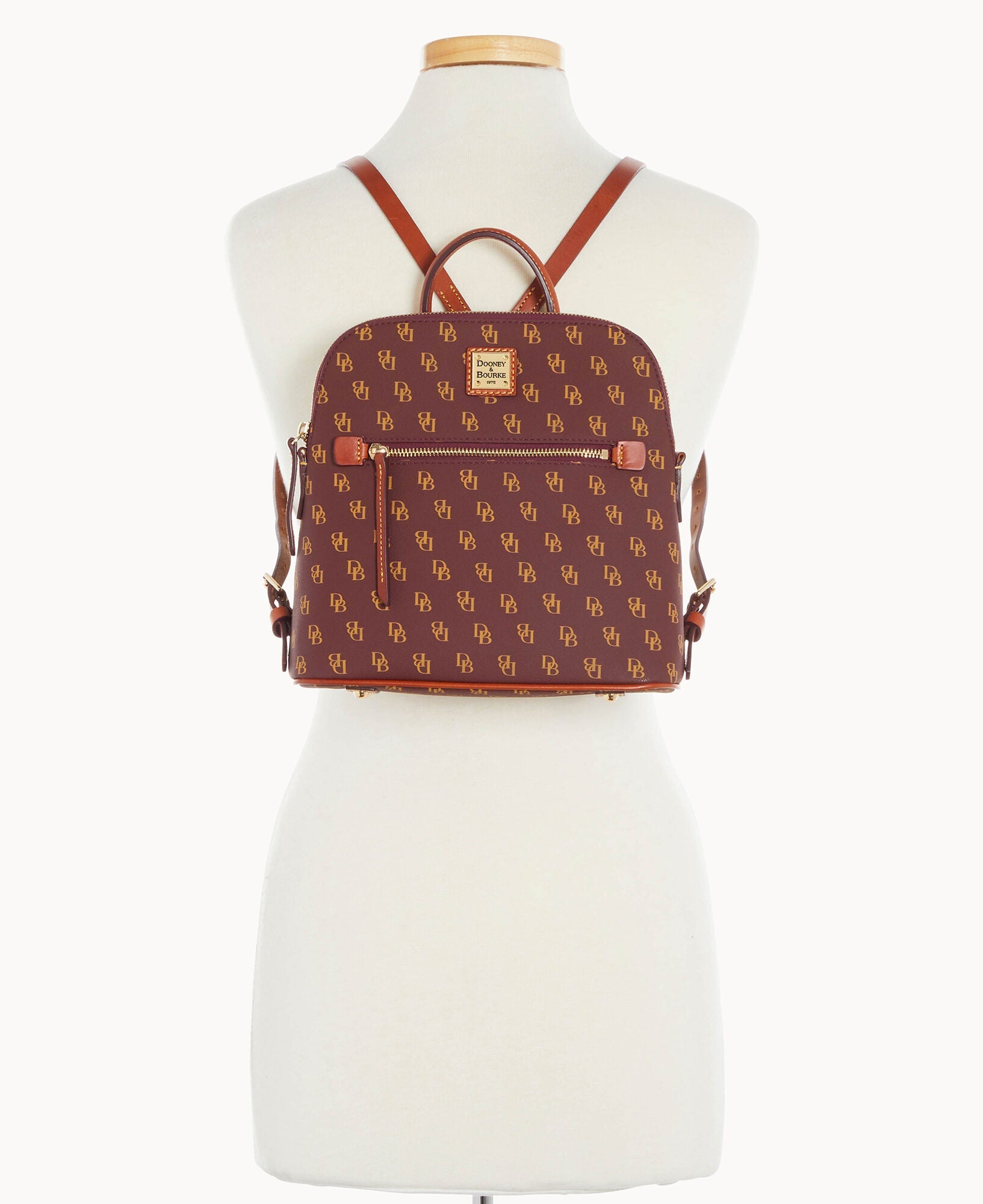 One outside zip pocket. One inside zip pocket. Two inside pockets. Cell phone pocket. Inside key hook. Handle drop length 2". Adjustable shoulder strap. Strap drop length 12". Lined. Feet. Zipper closure.