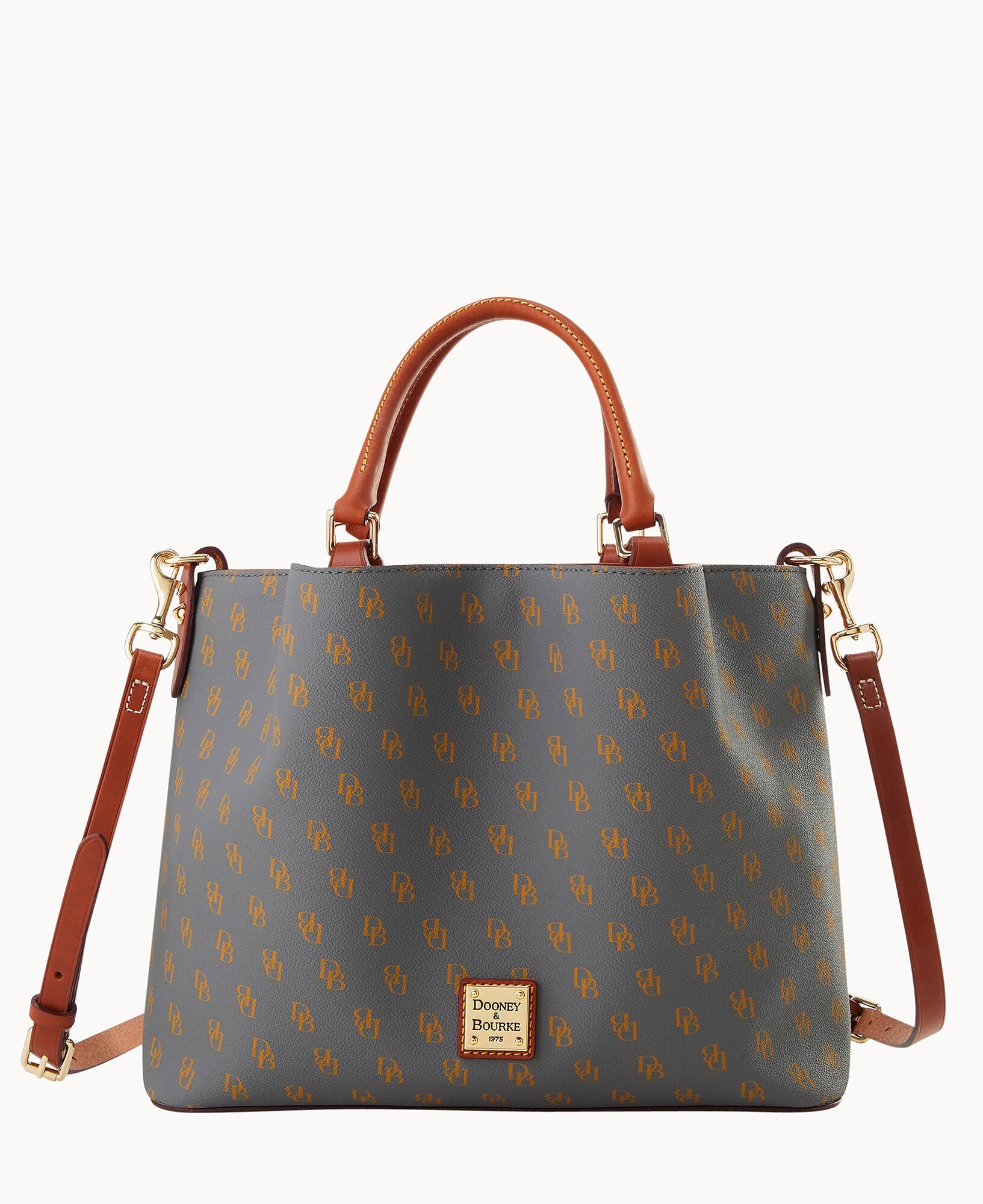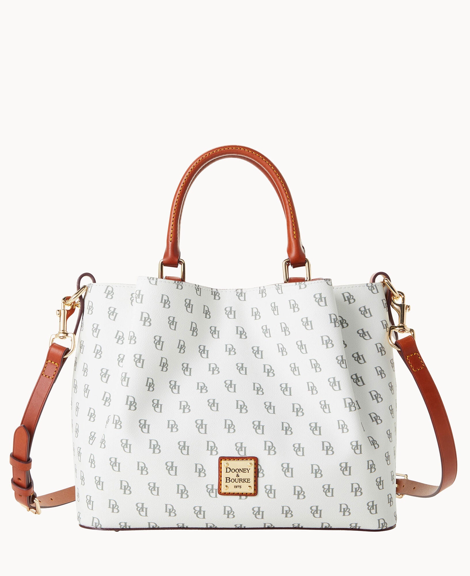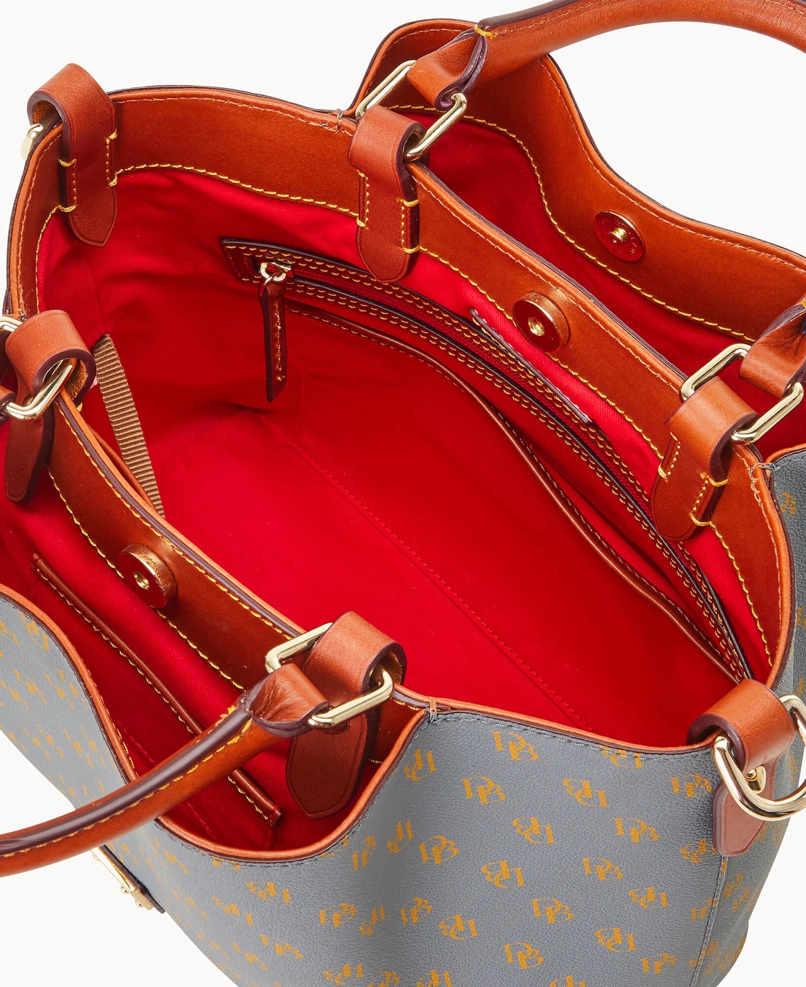 Front and back magnetic snap pockets. One inside zip pocket. Two inside pockets. One credit card slot. Cell phone pocket. Inside key hook. Handle drop length 5". Adjustable, detachable shoulder strap. Strap drop length 26.5". Lined. Feet. Magnetic snap closure.