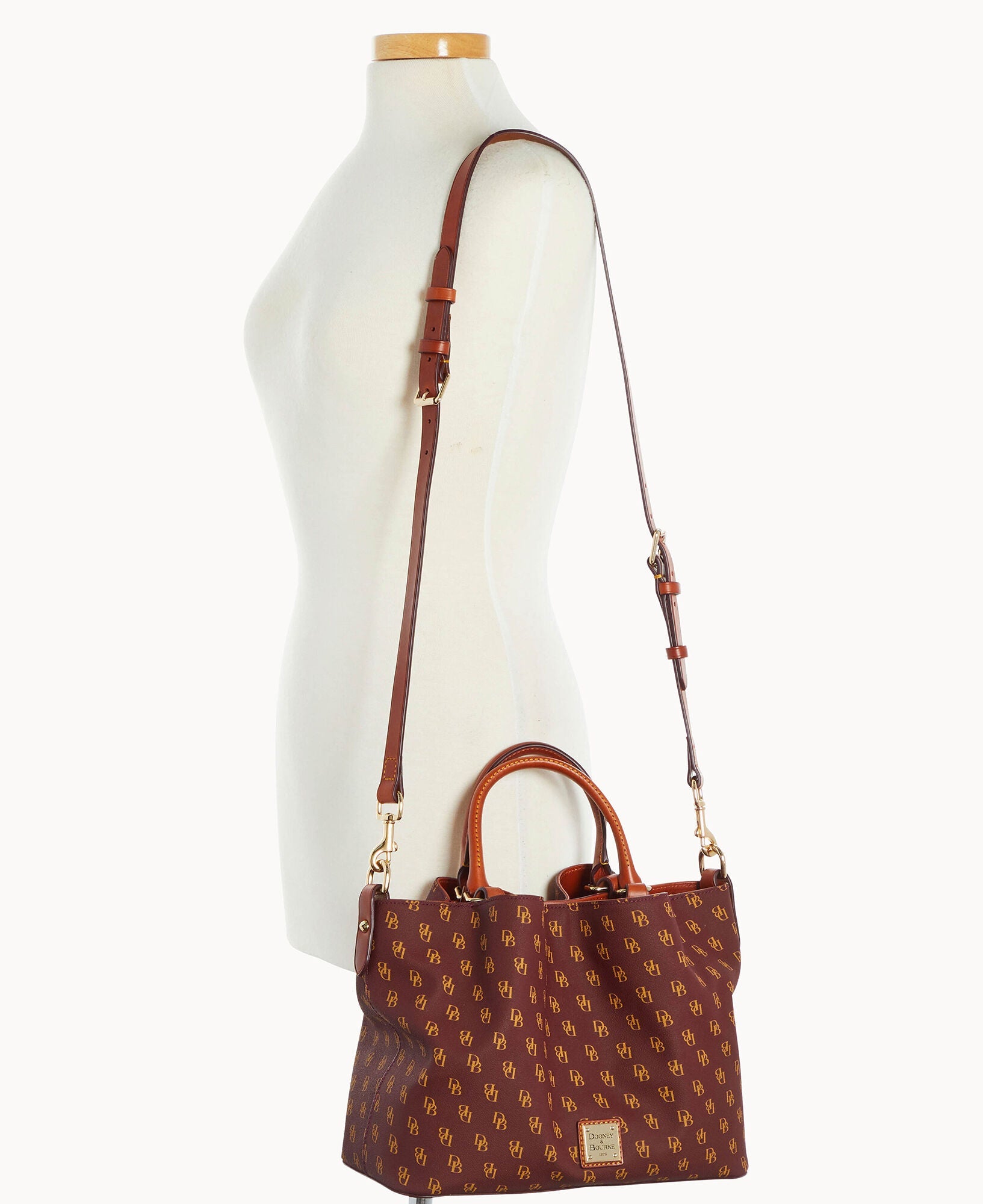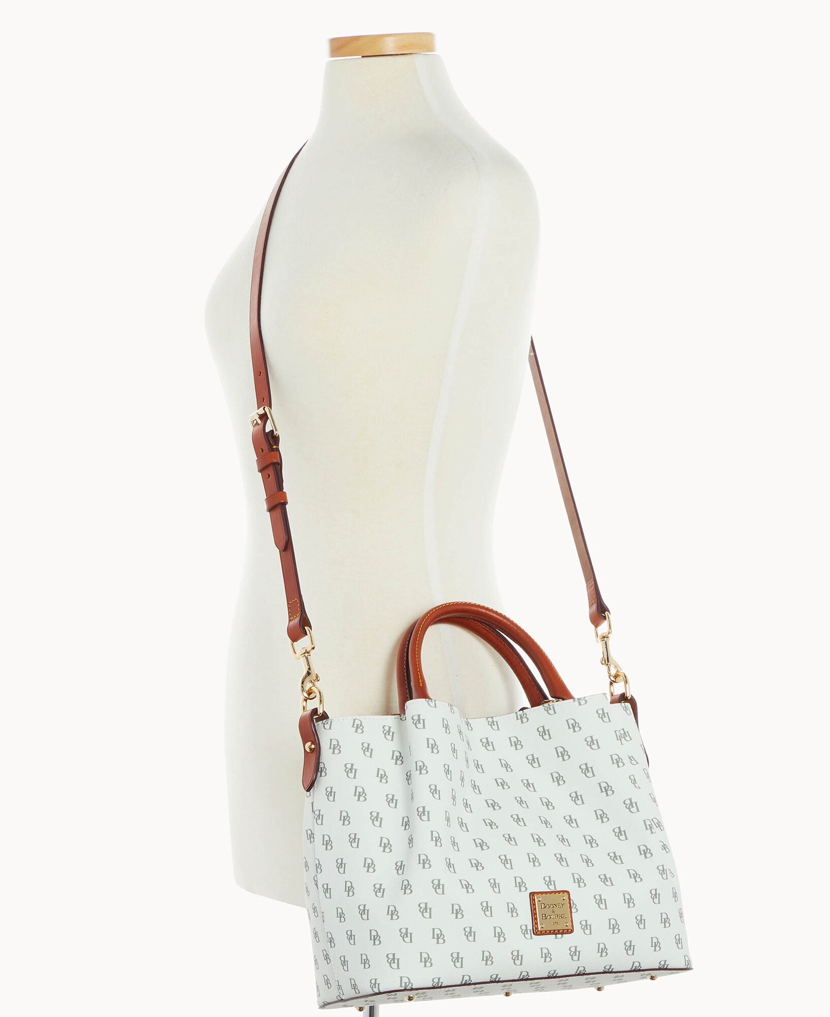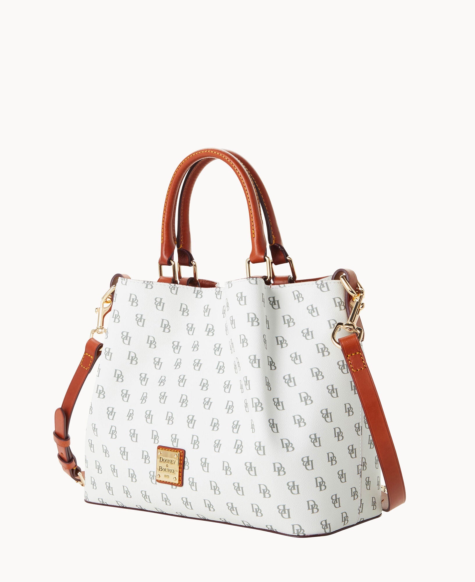 Front and back magnetic snap pockets. One inside zip pocket. Two inside pockets. One credit card slot. Cell phone pocket. Inside key hook. Handle drop length 5". Adjustable, detachable shoulder strap. Strap drop length 26.5". Lined. Feet. Magnetic snap closure.