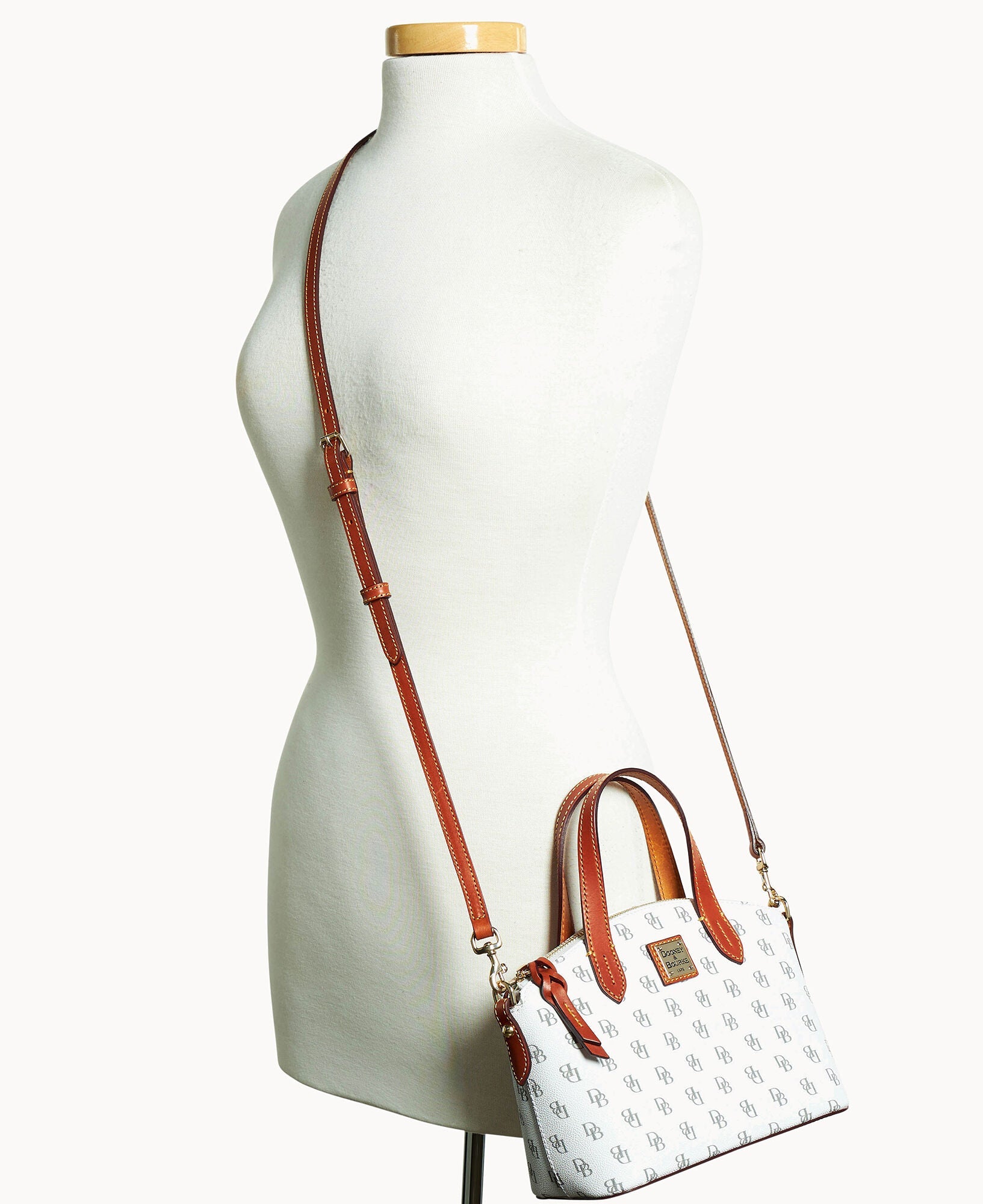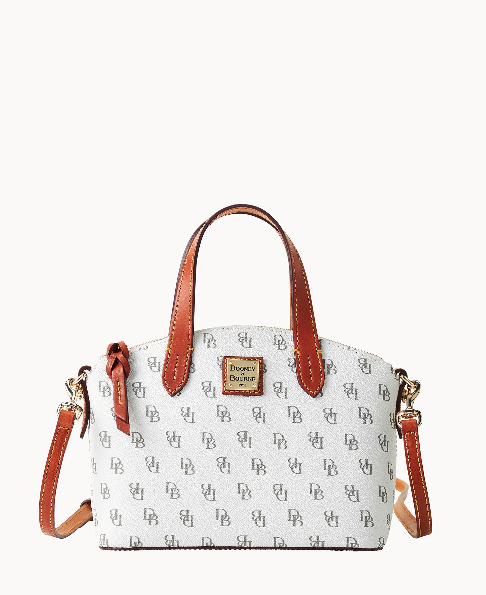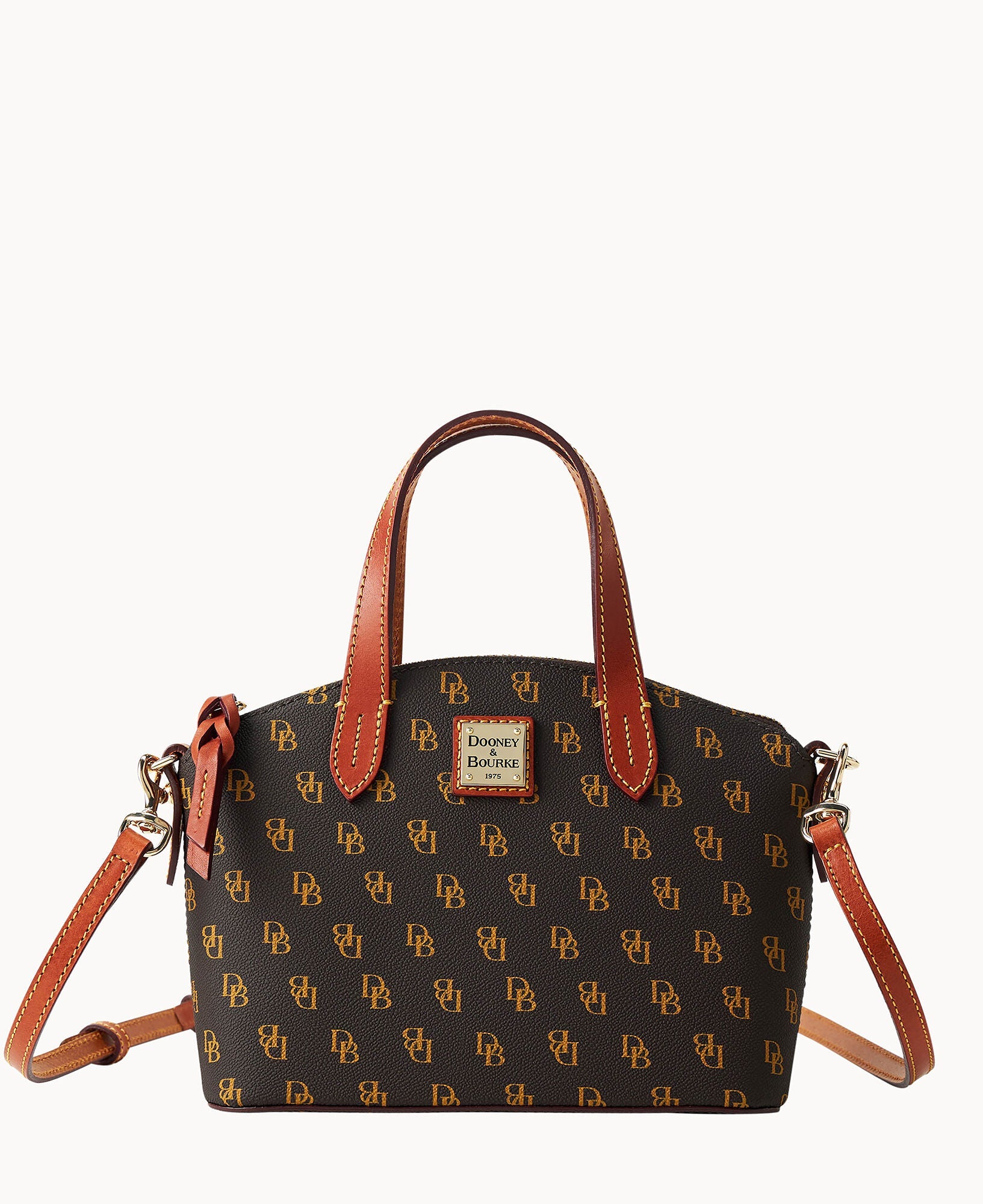 One inside zip pocket. Two inside pockets. Cell phone pocket. Handle drop length 3.5". Strap drop length 25". Lined. Zipper closure.