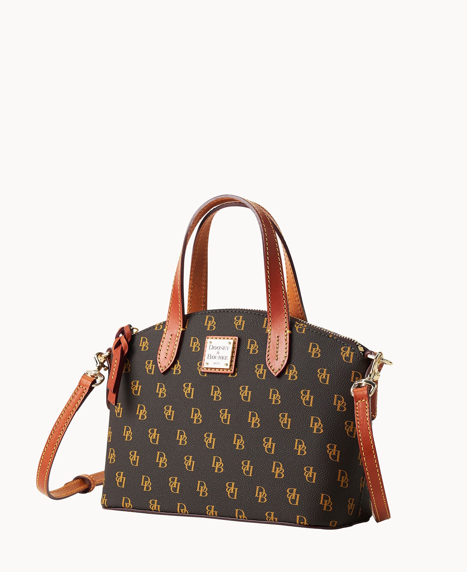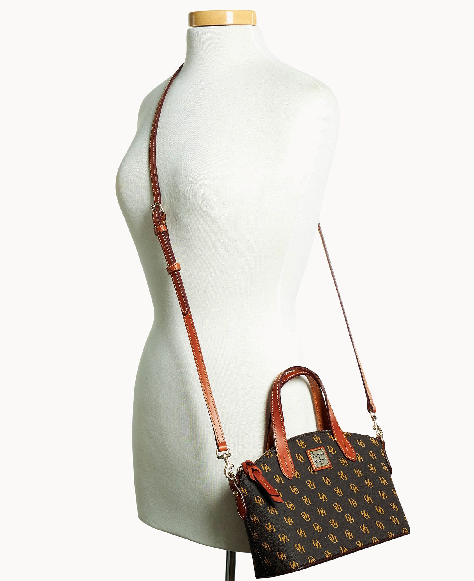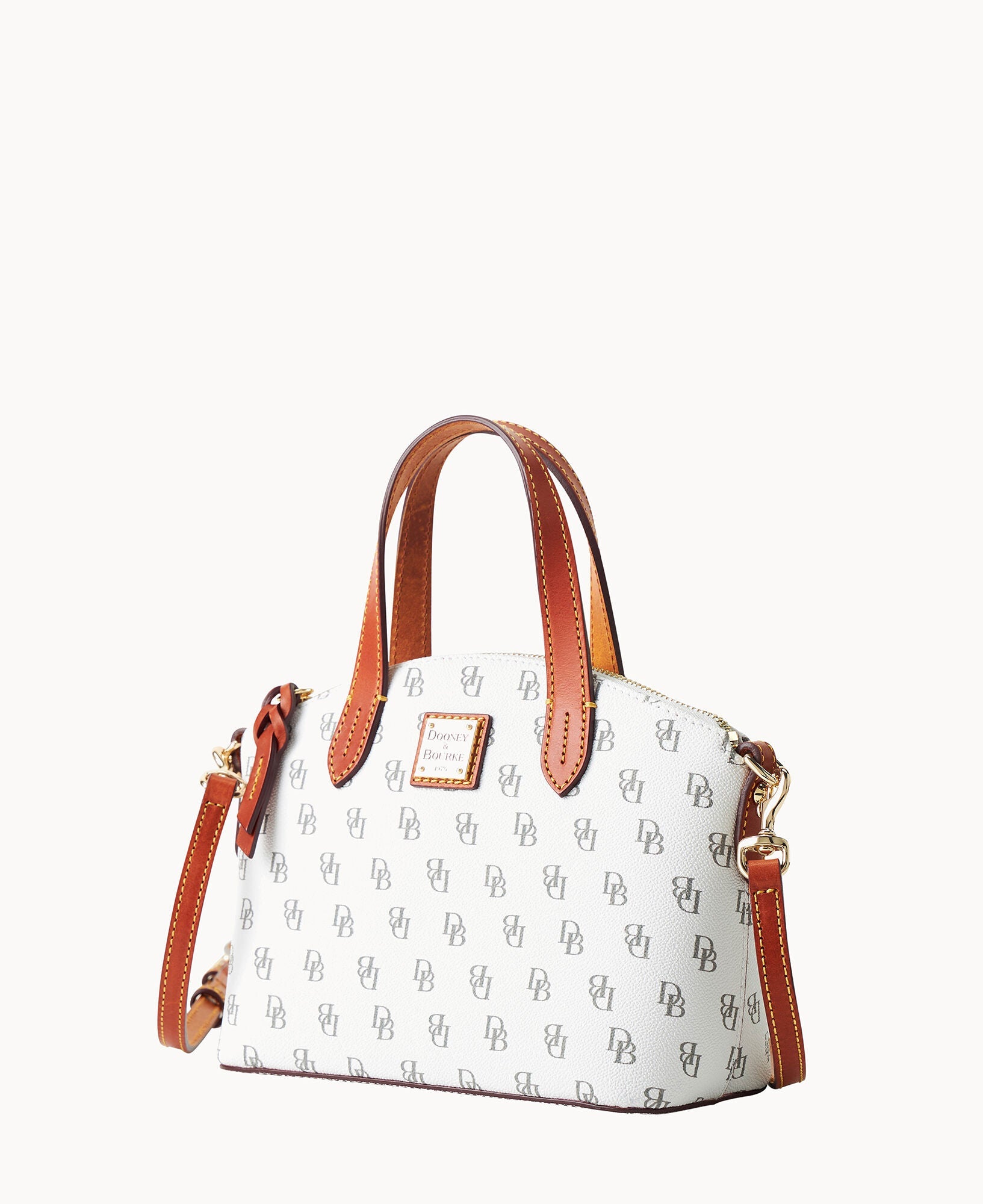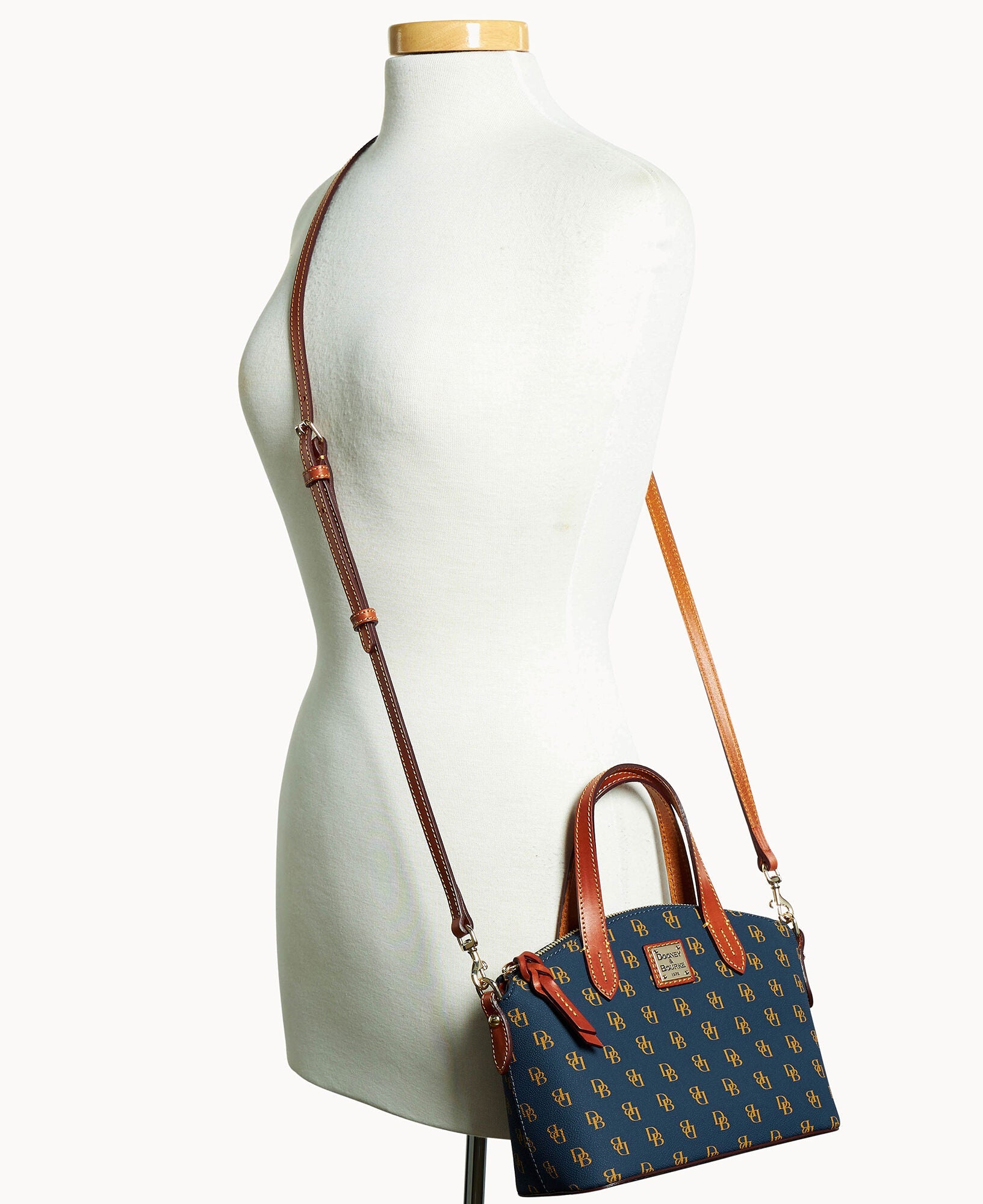 One inside zip pocket. Two inside pockets. Cell phone pocket. Handle drop length 3.5". Strap drop length 25". Lined. Zipper closure.