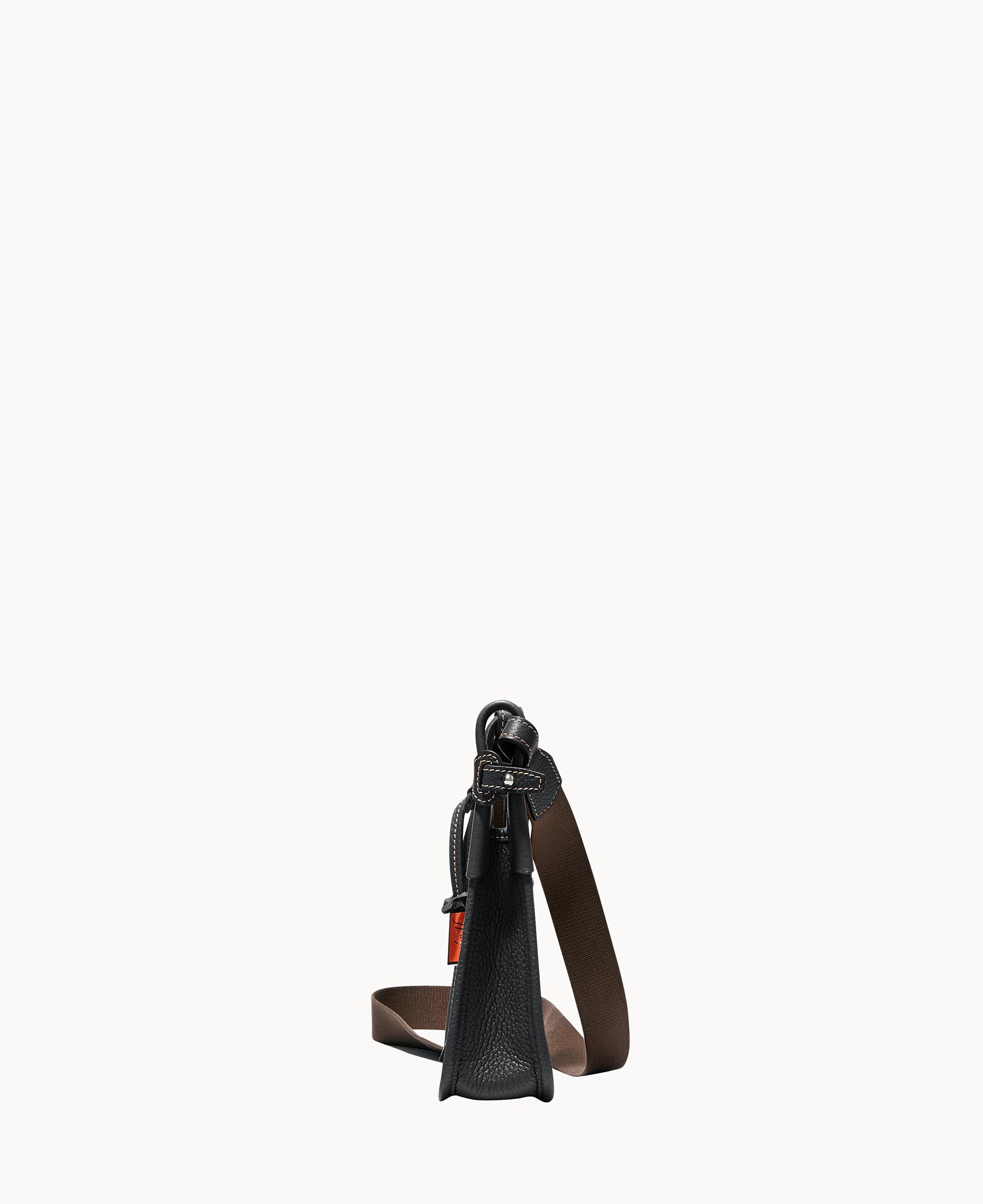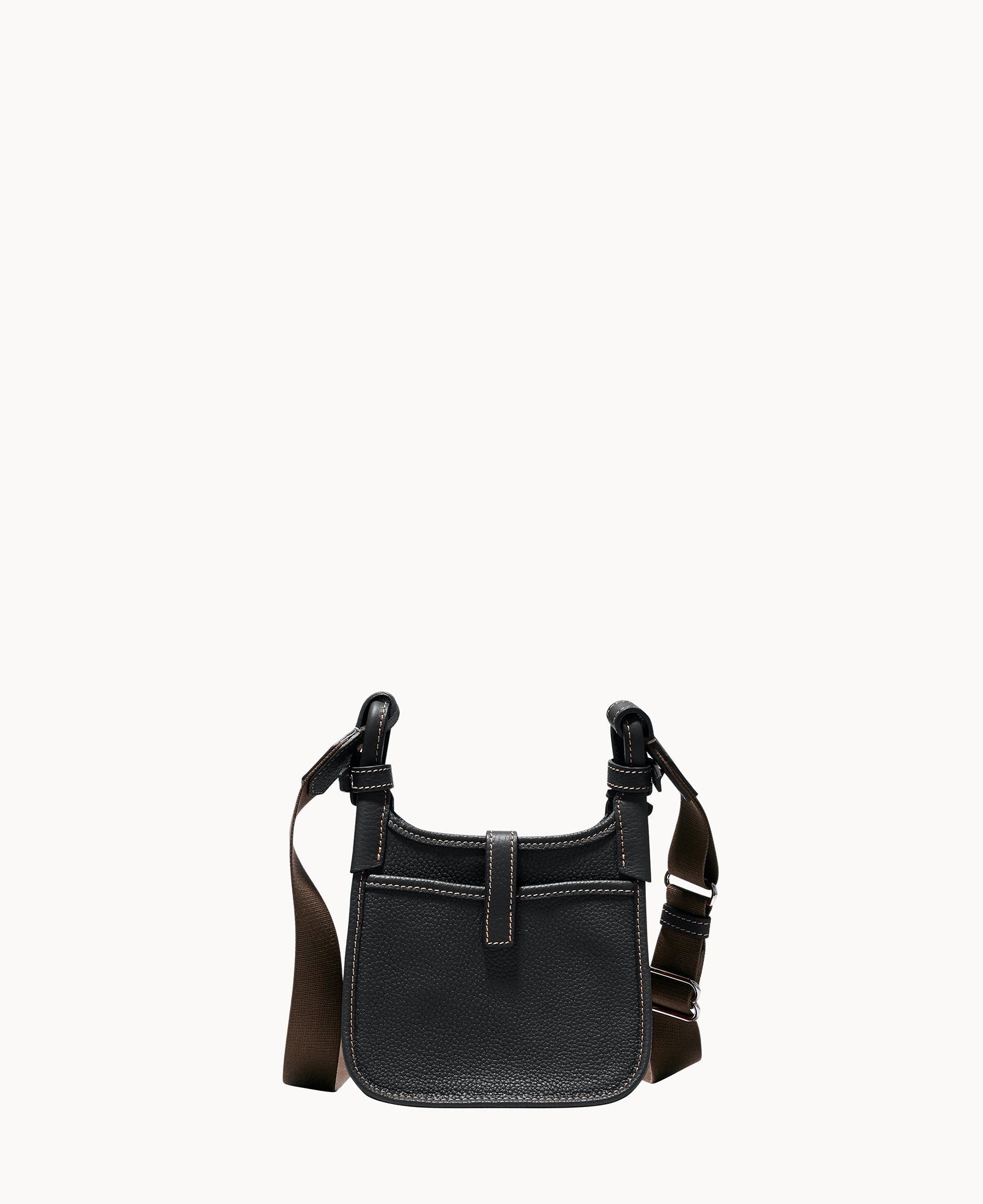 One outside pocket. One inside pocket. Adjustable shoulder strap. Strap drop length from 18" to 28". Patented tongue and loop closure.