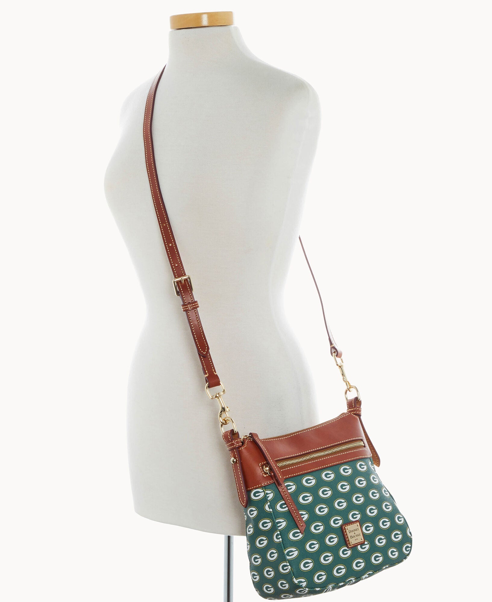 One outside zip pocket. One inside zip pocket. Two inside pockets. Adjustable, detachable shoulder strap. Strap drop length 27". Inside key hook. Lined. Zipper closure.