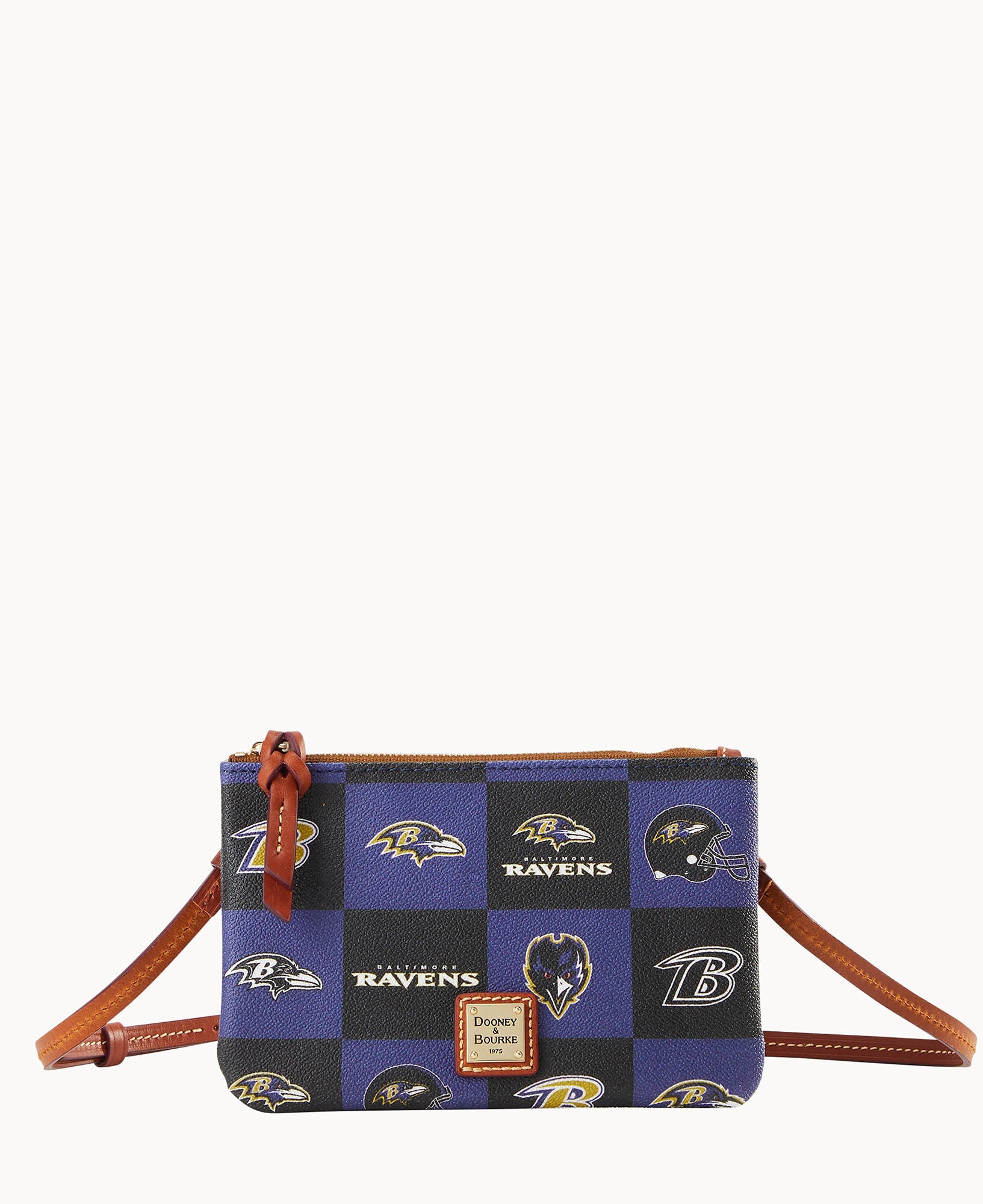 One inside zip pocket. Two inside pockets. Cell phone pocket. Inside key hook. Strap drop length 21". Lined. Feet. Zipper closure.