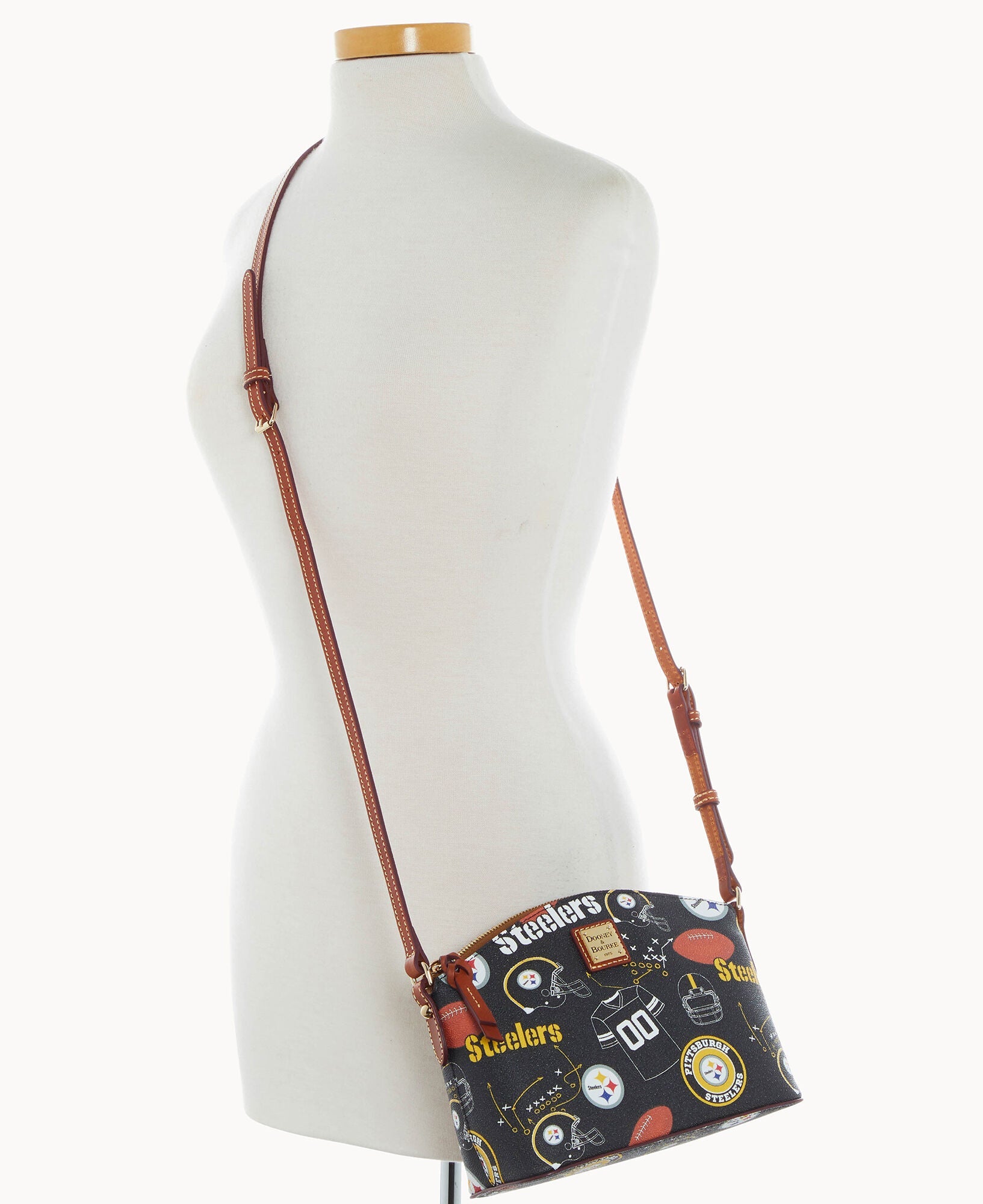 Outside back pocket. One inside zip pocket. Two inside pockets. Cell phone pocket. Inside key hook. Handle drop length 7". Adjustable shoulder strap. Strap drop length 25". Lined. Zipper closure.