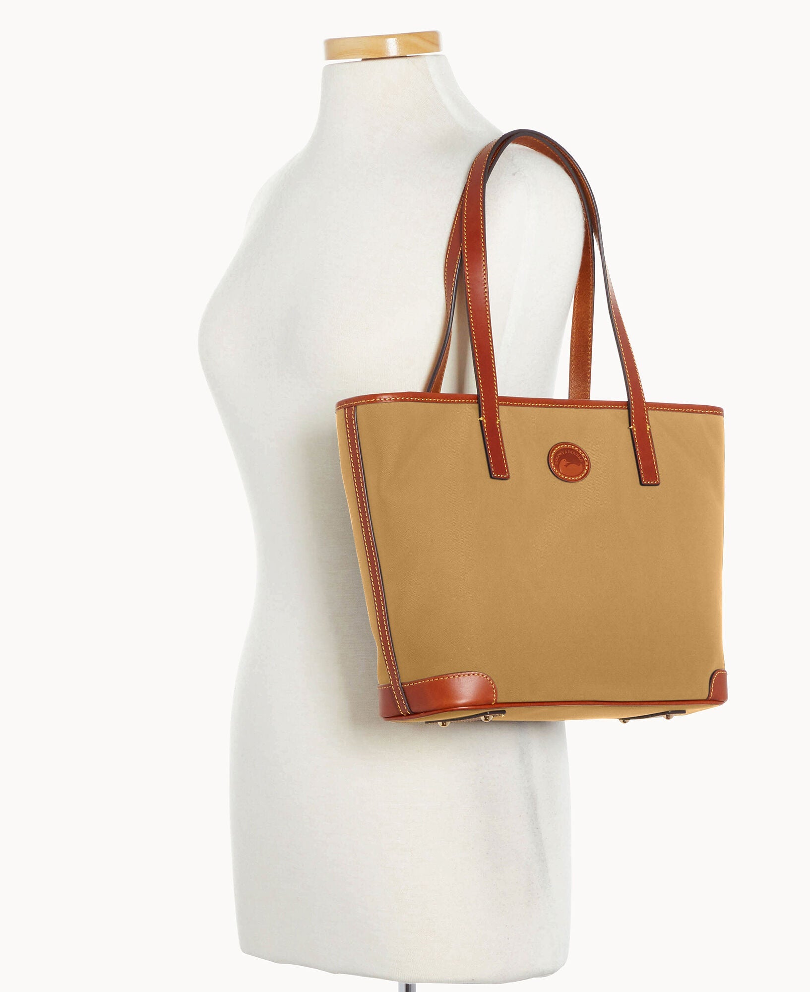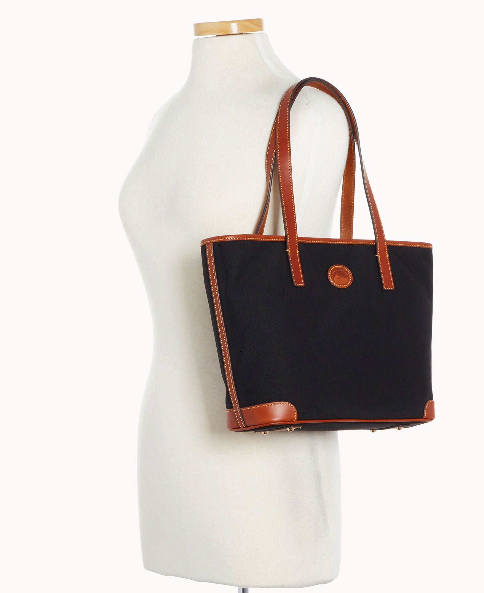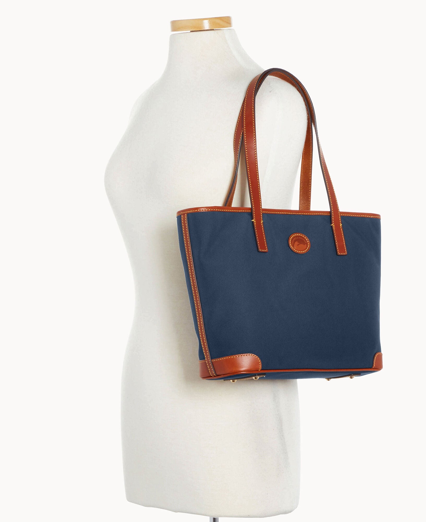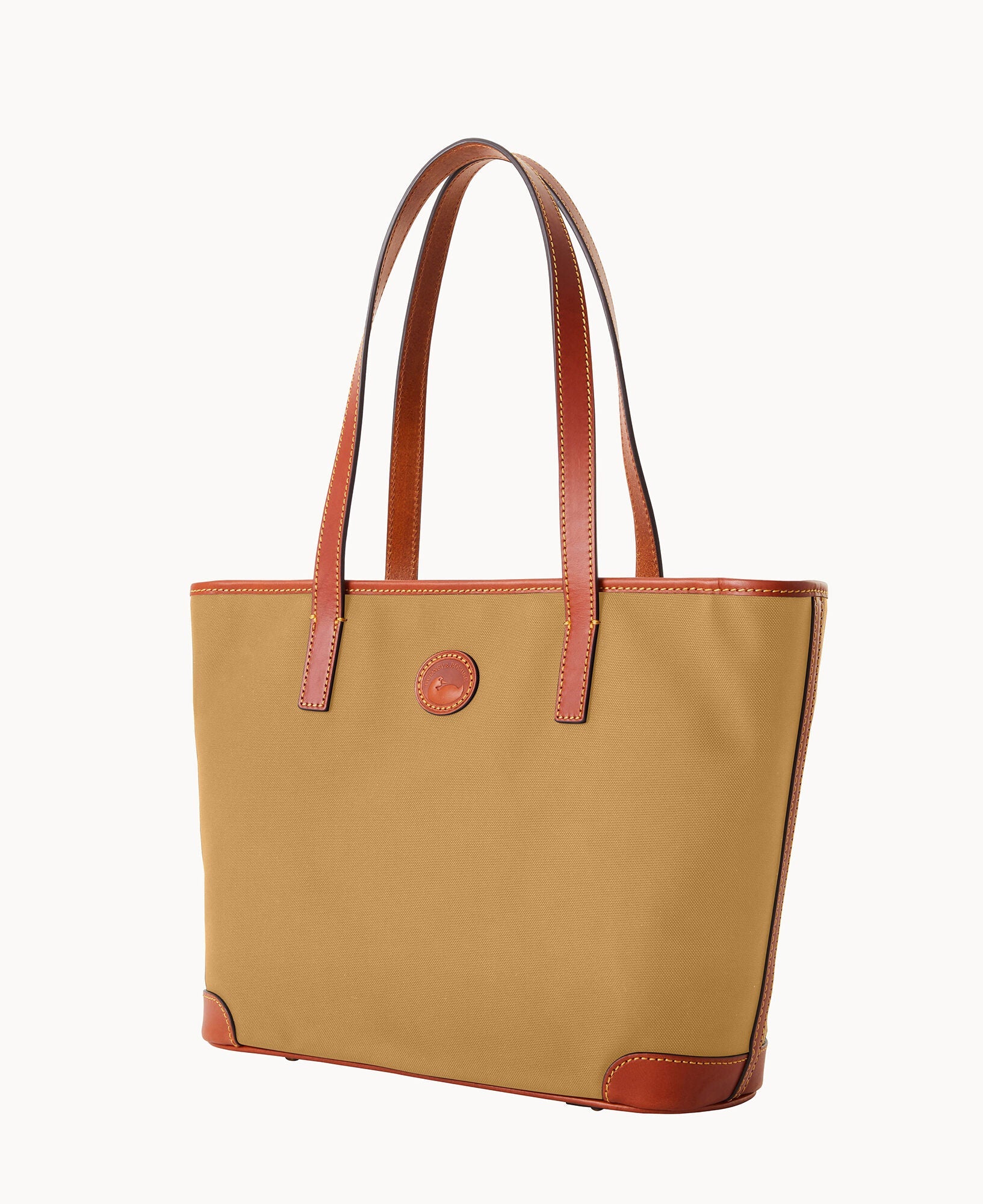 One outside zip pocket. One inside zip pocket. Two inside pockets. Cell phone pocket. Inside key hook. Handle drop length 10.25". Strap drop length 8.5". Lined. Feet. Zipper closure.