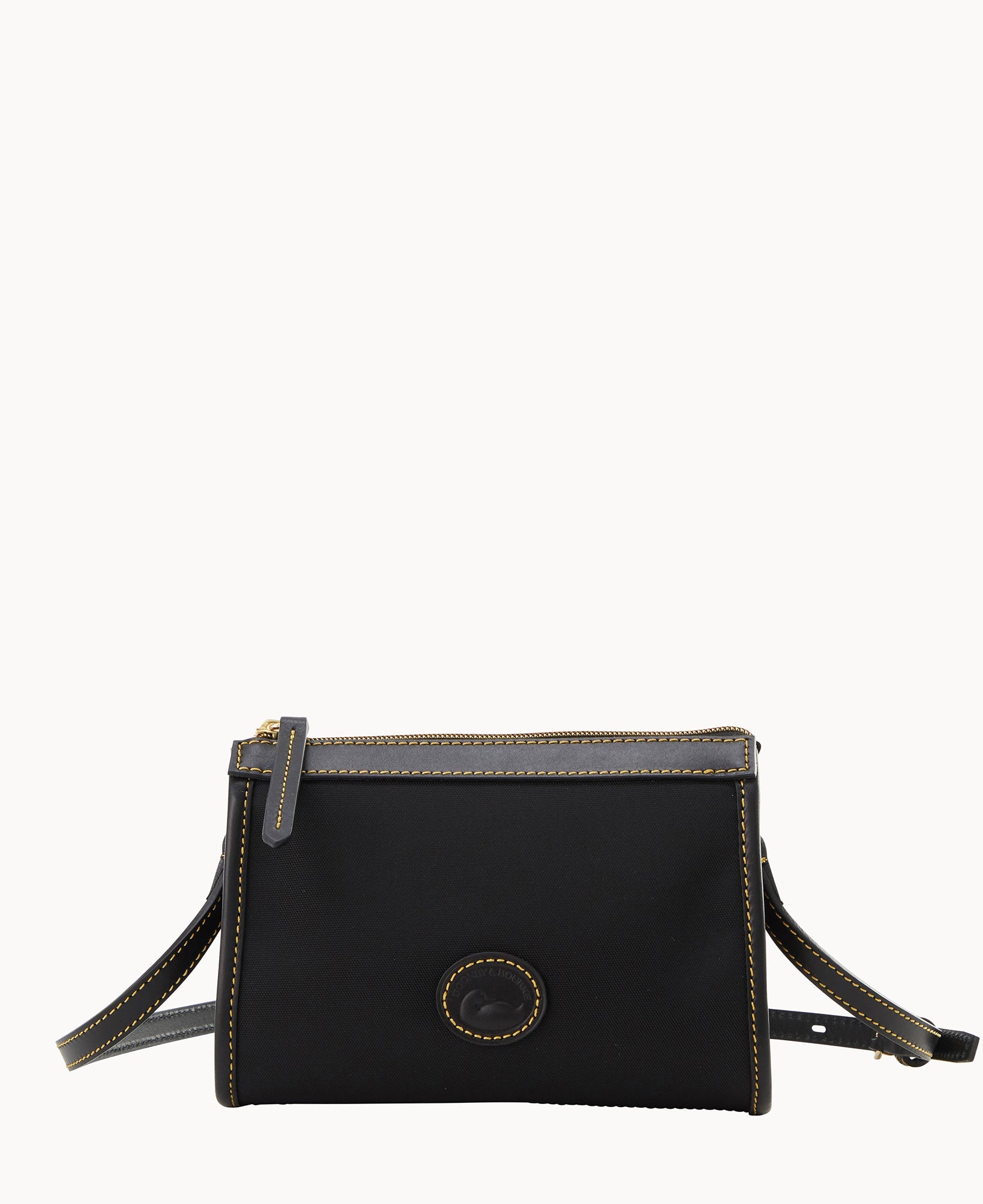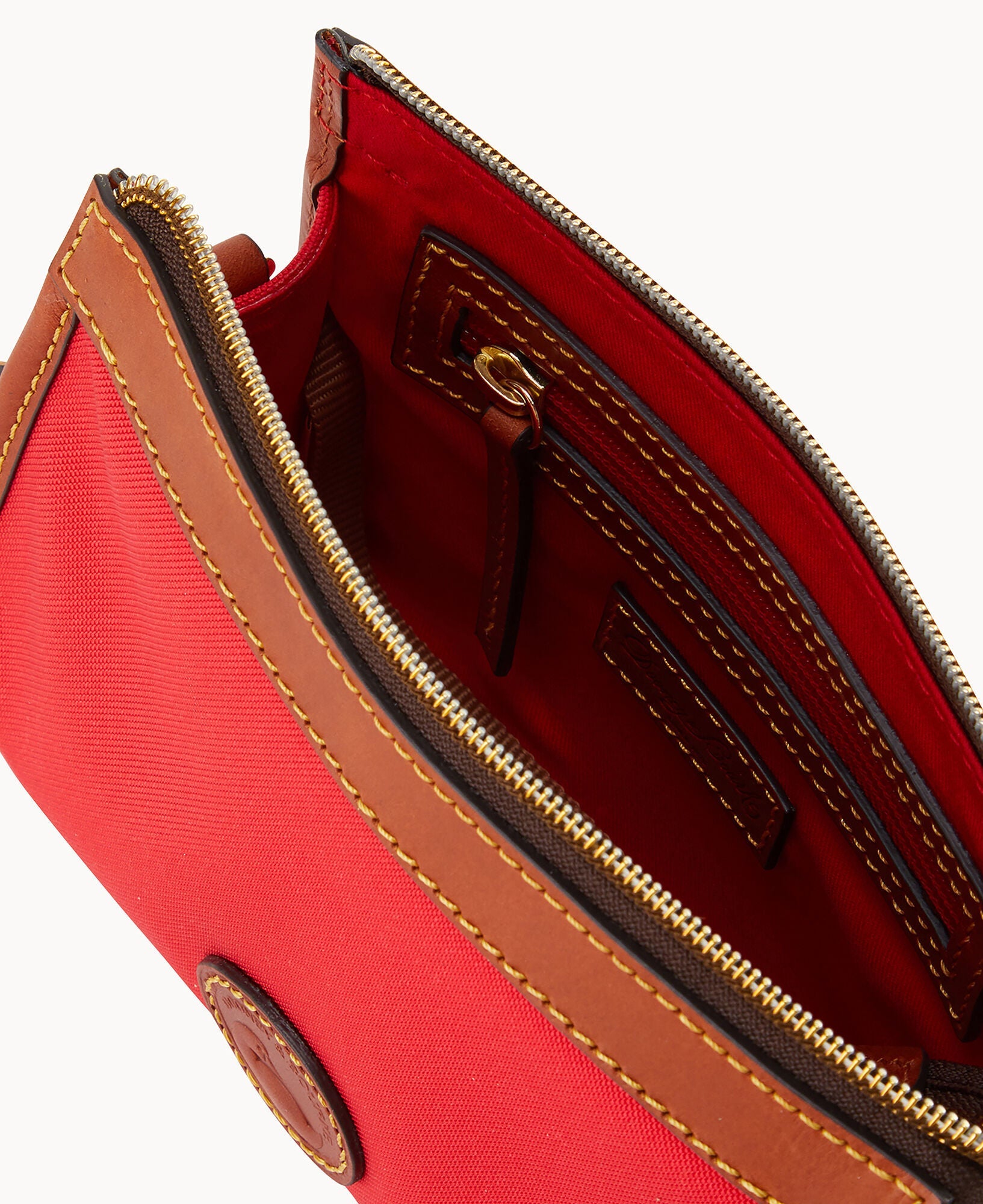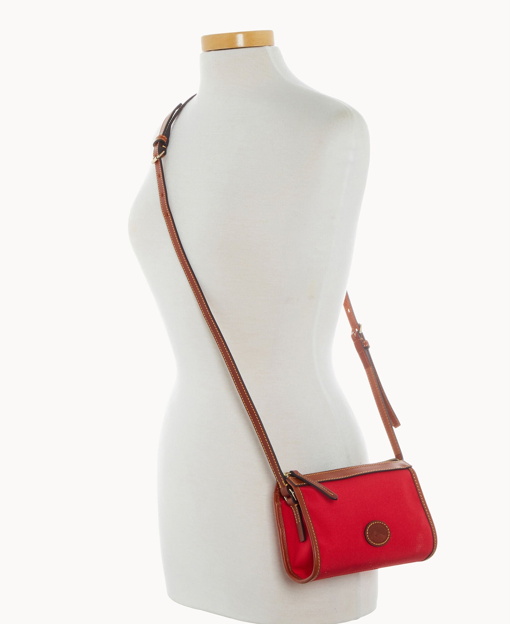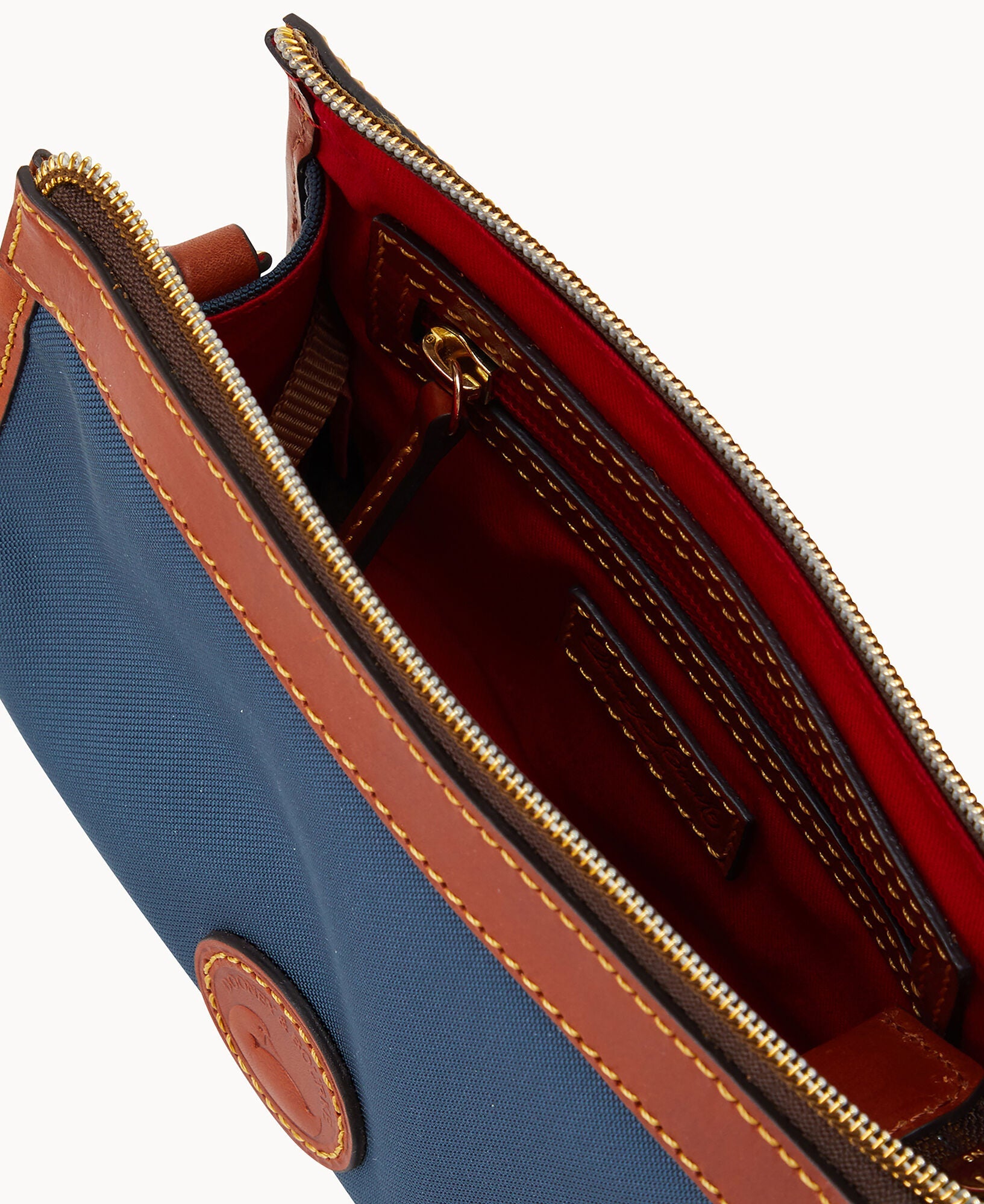 One inside pocket. One inside zip pocket. Inside key hook. Strap drop length 23". Lined. Zipper closure.