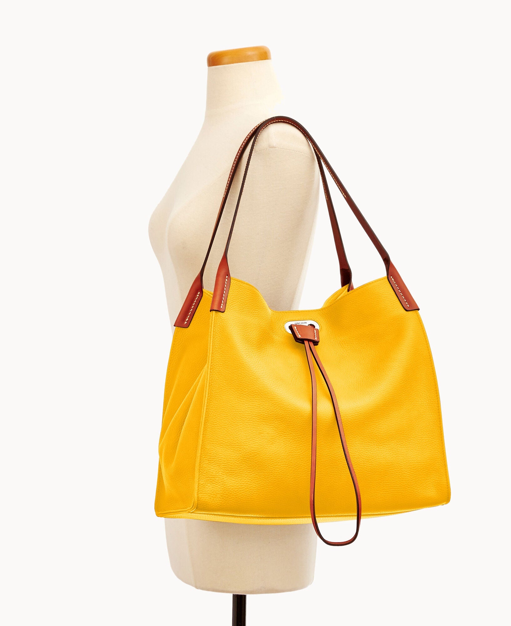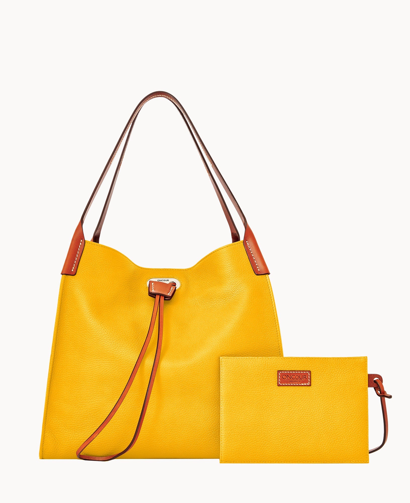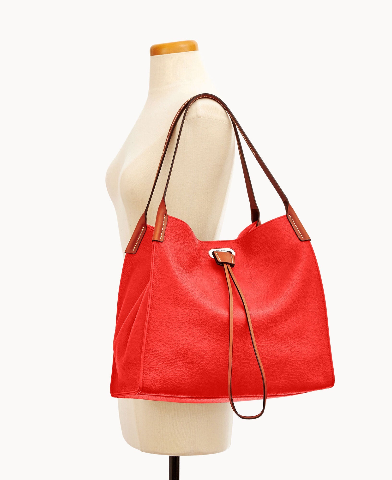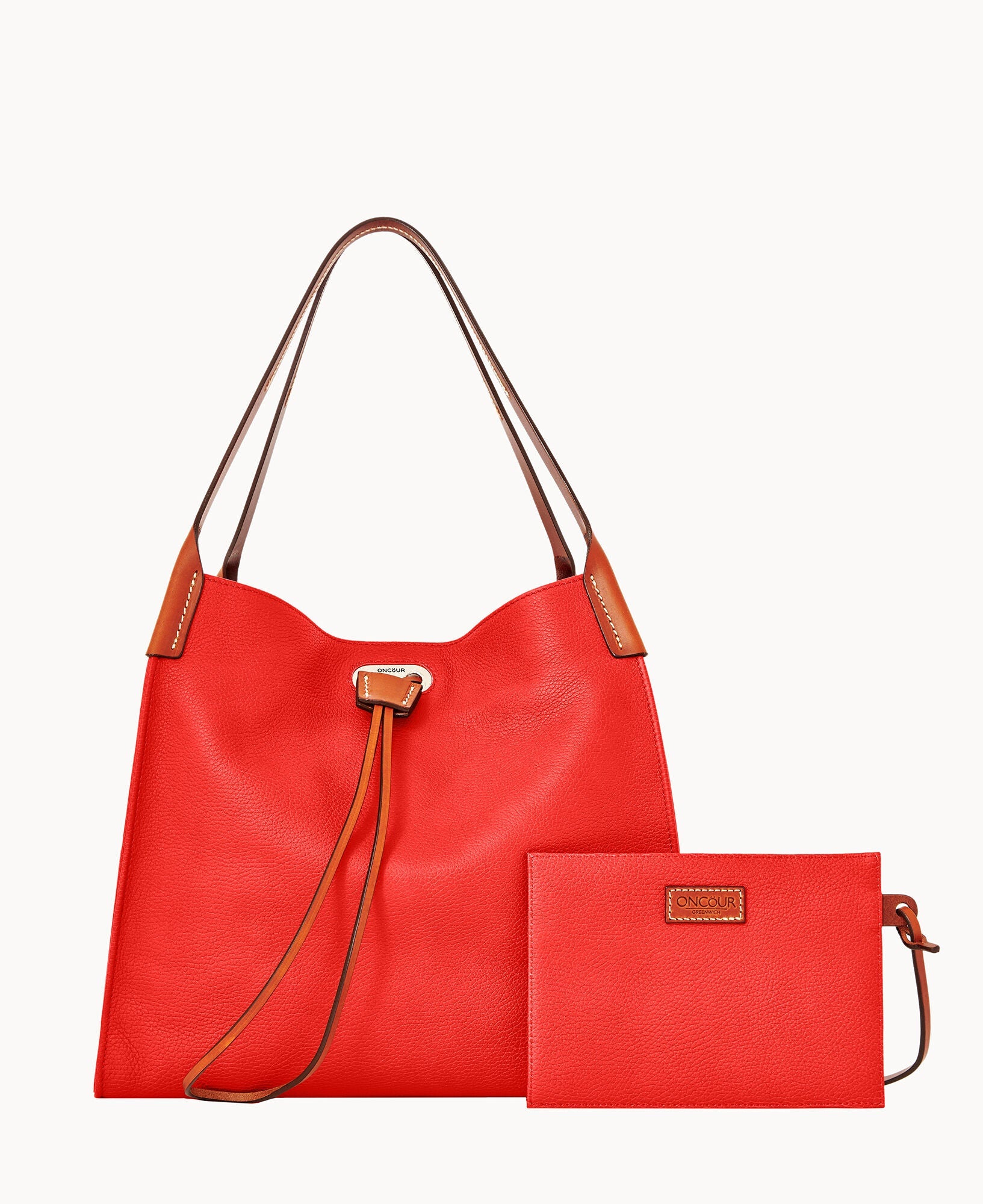 Inside key hook. Strap drop length 11". Drawstring closure.