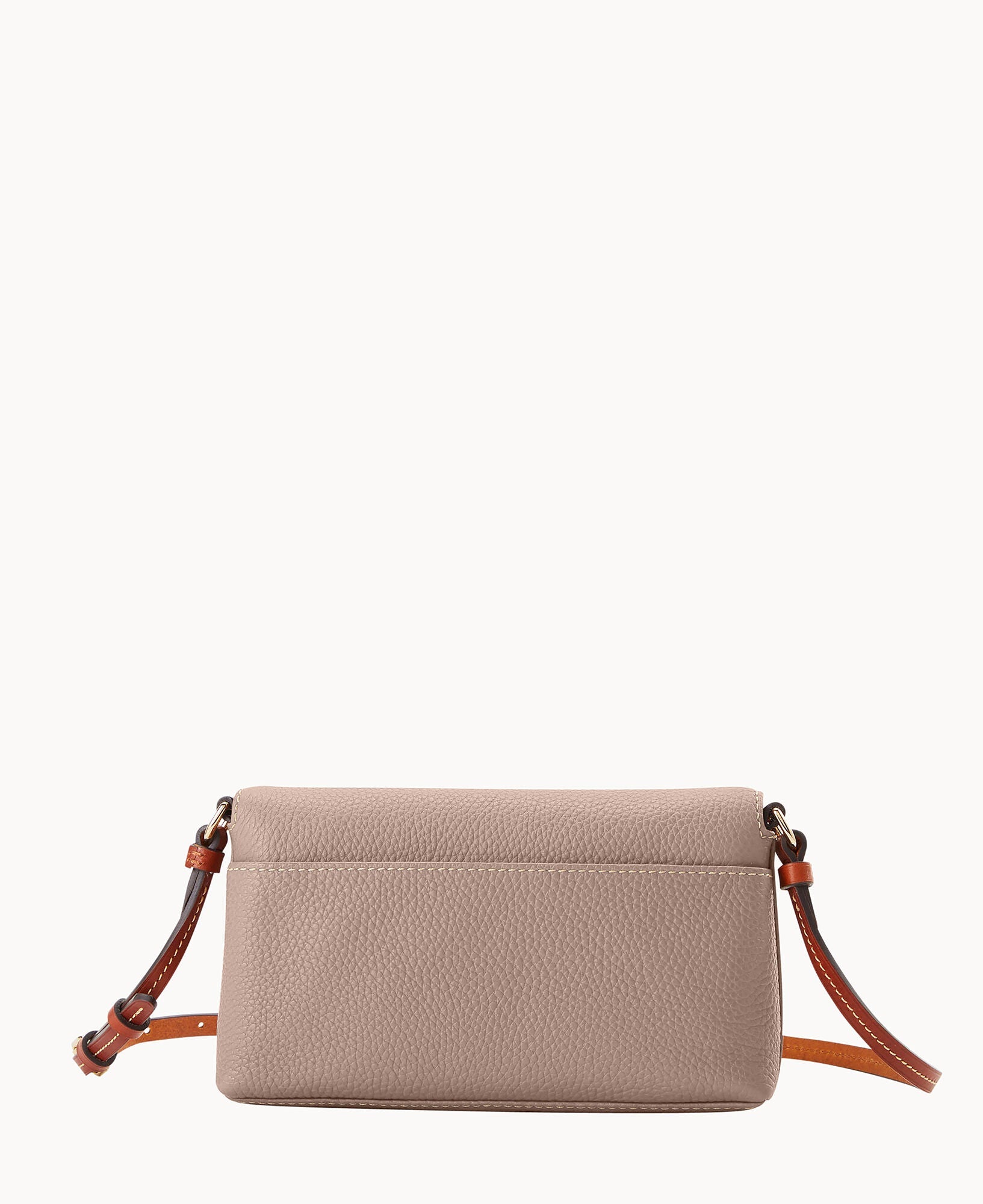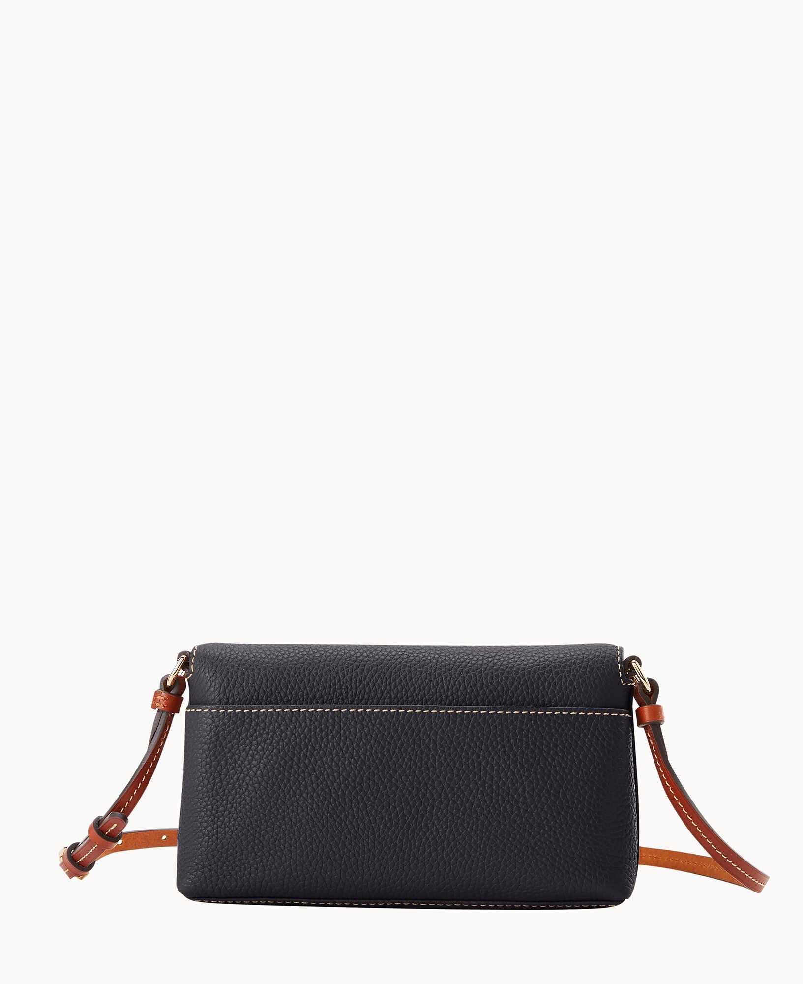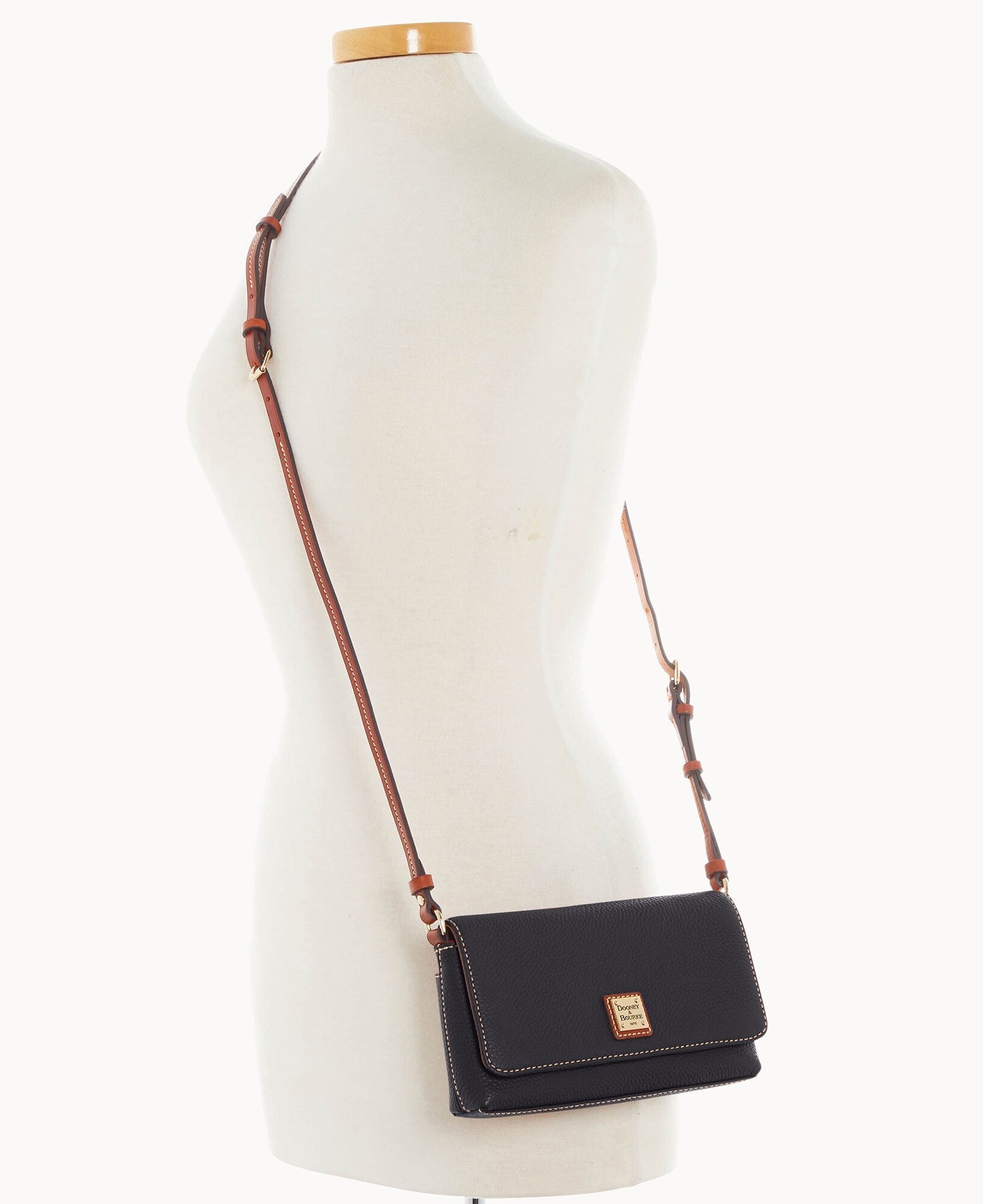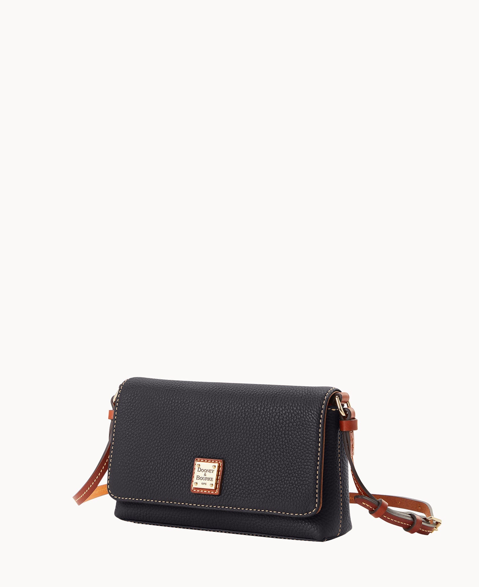 One outside slip pocket. One inside zip pocket. One inside slip pocket. Inside key hook. Adjustable strap. Detachable strap. Strap drop length 25". Lined. Magnetic closure.