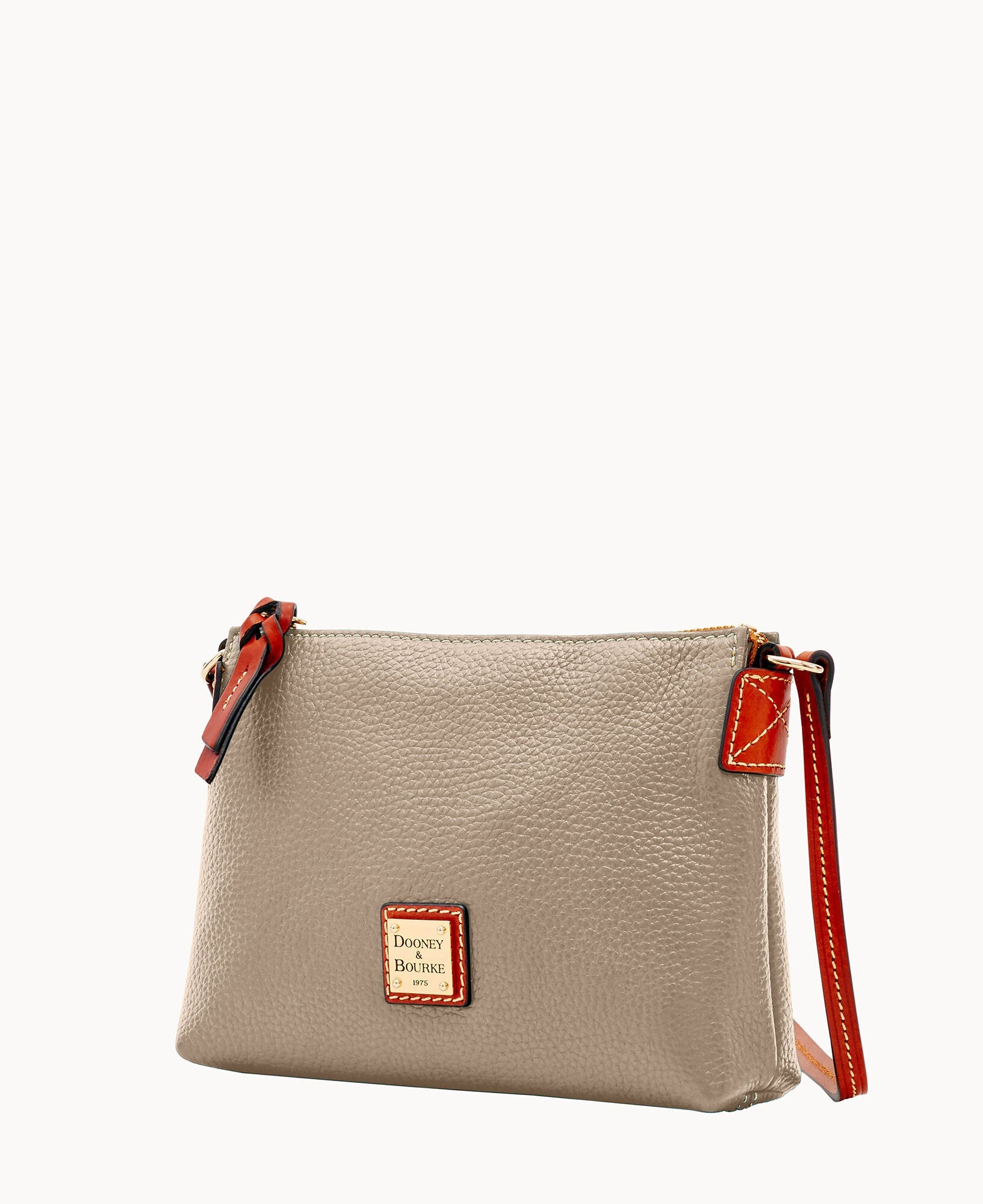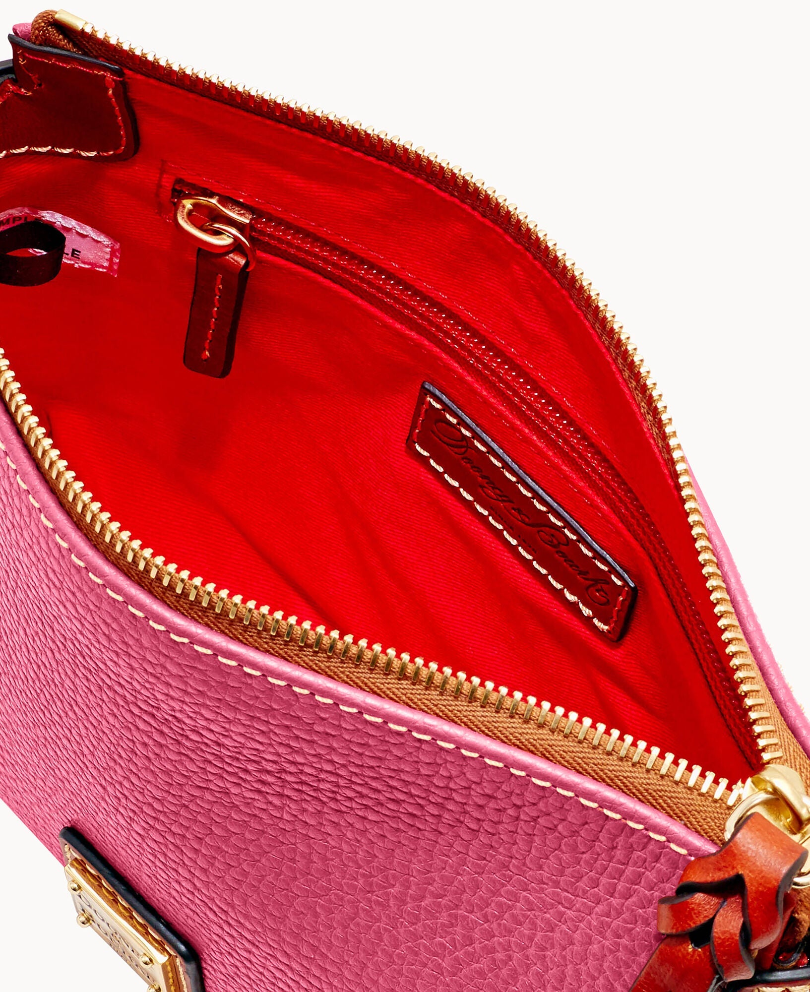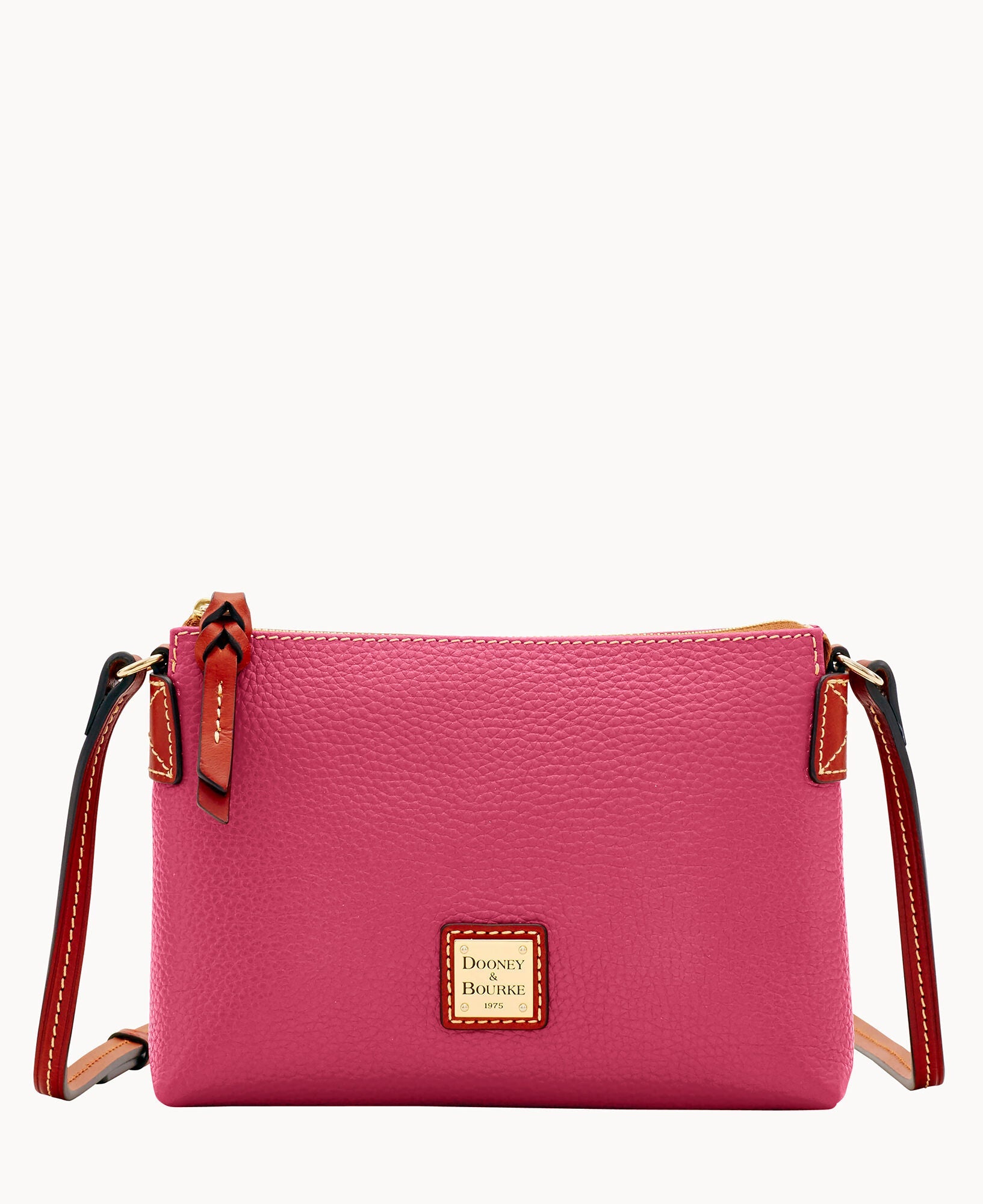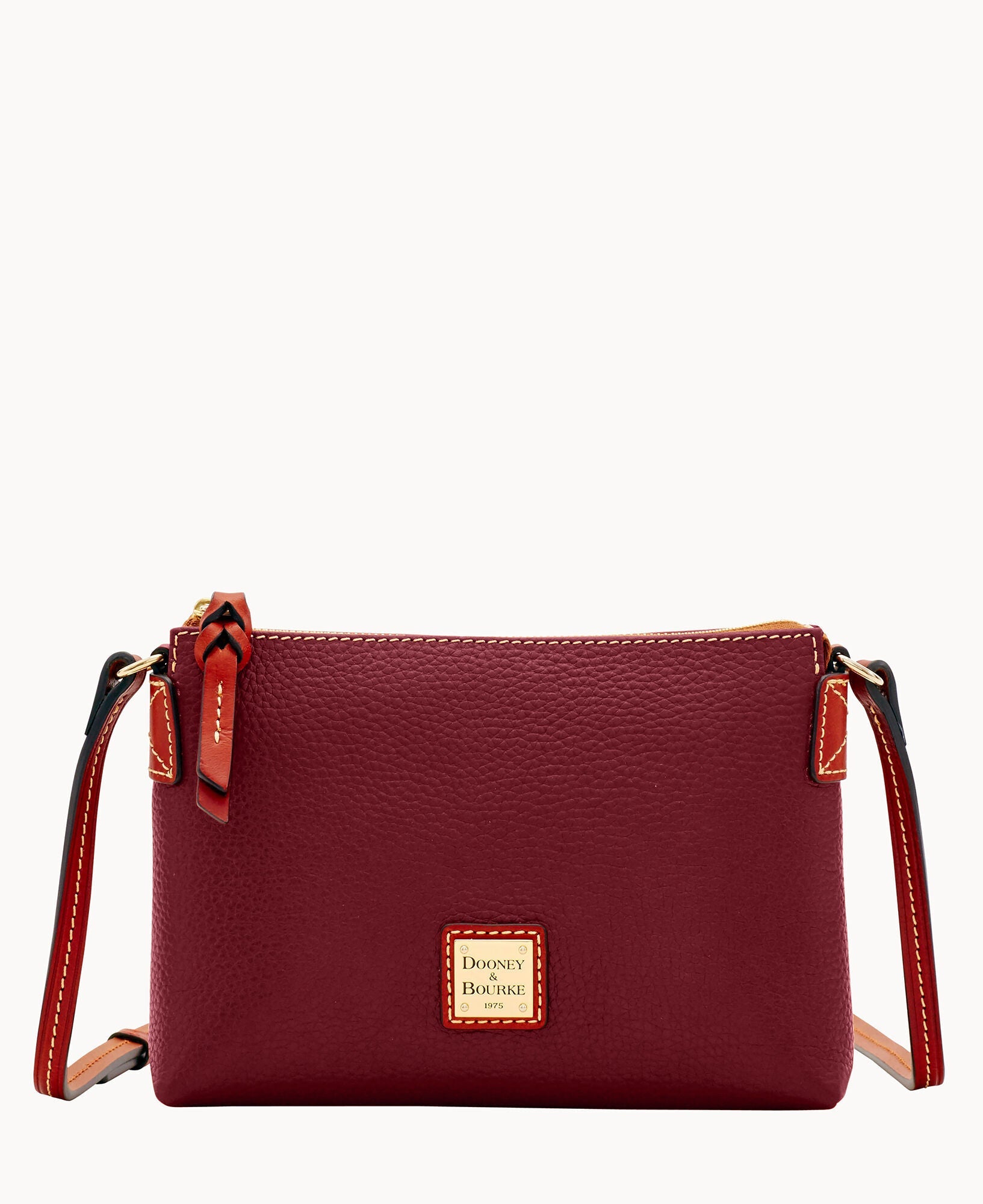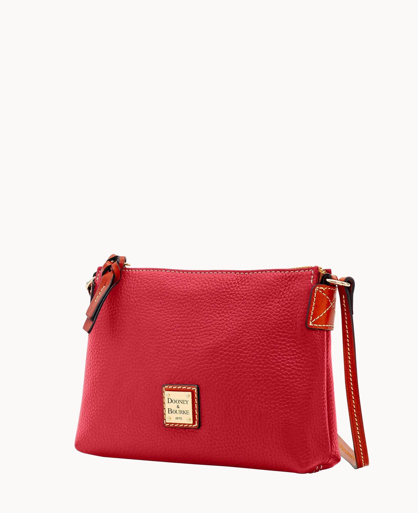One inside zip pocket. Two inside pockets. Cell phone pocket. Adjustable shoulder strap. Strap drop length 25". Lined. Zipper closure.