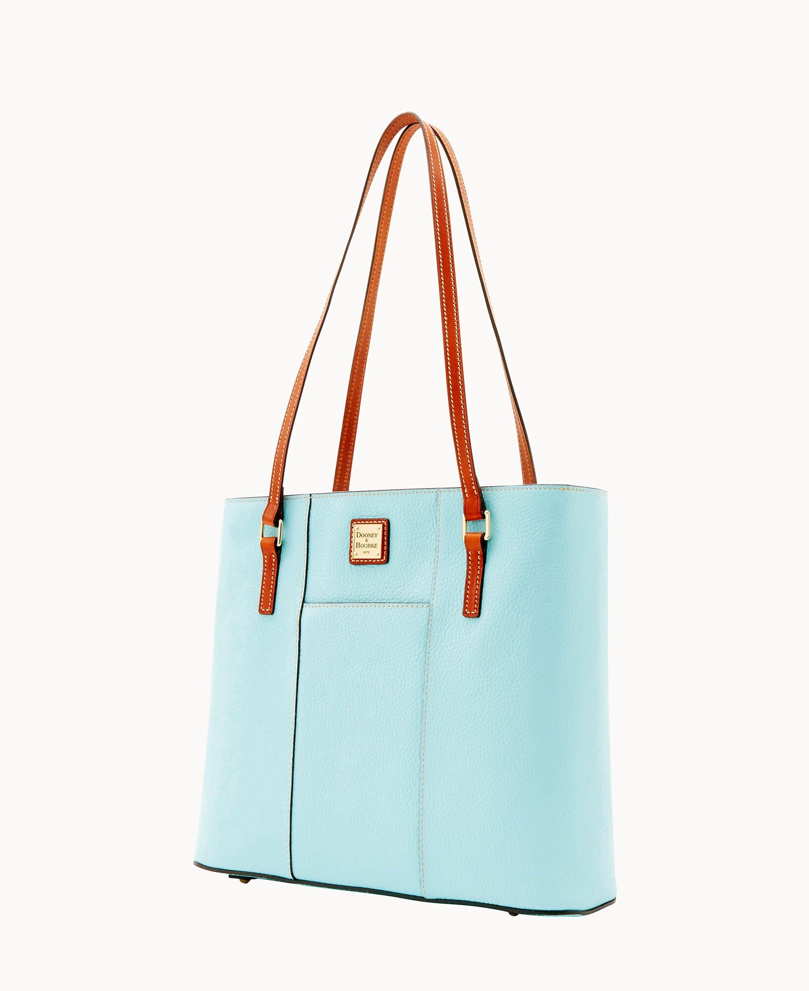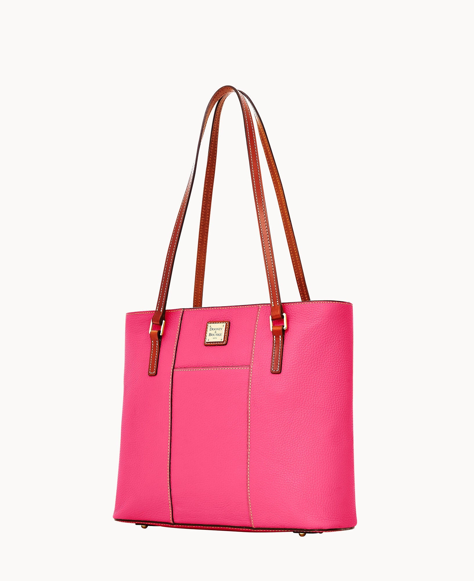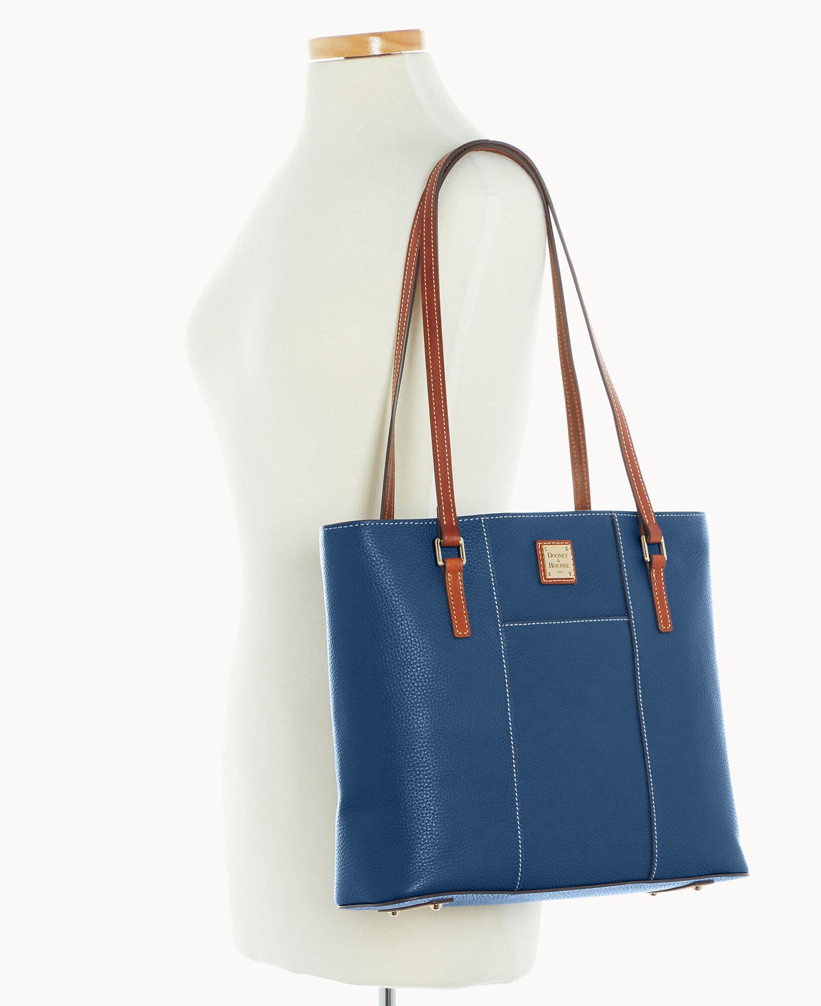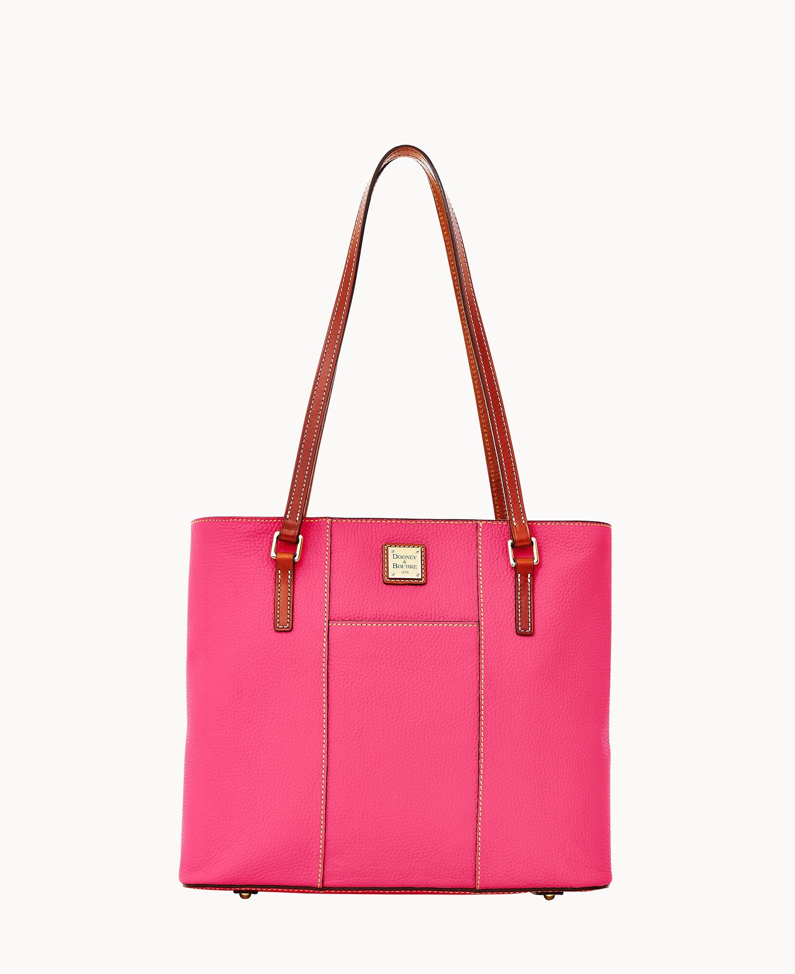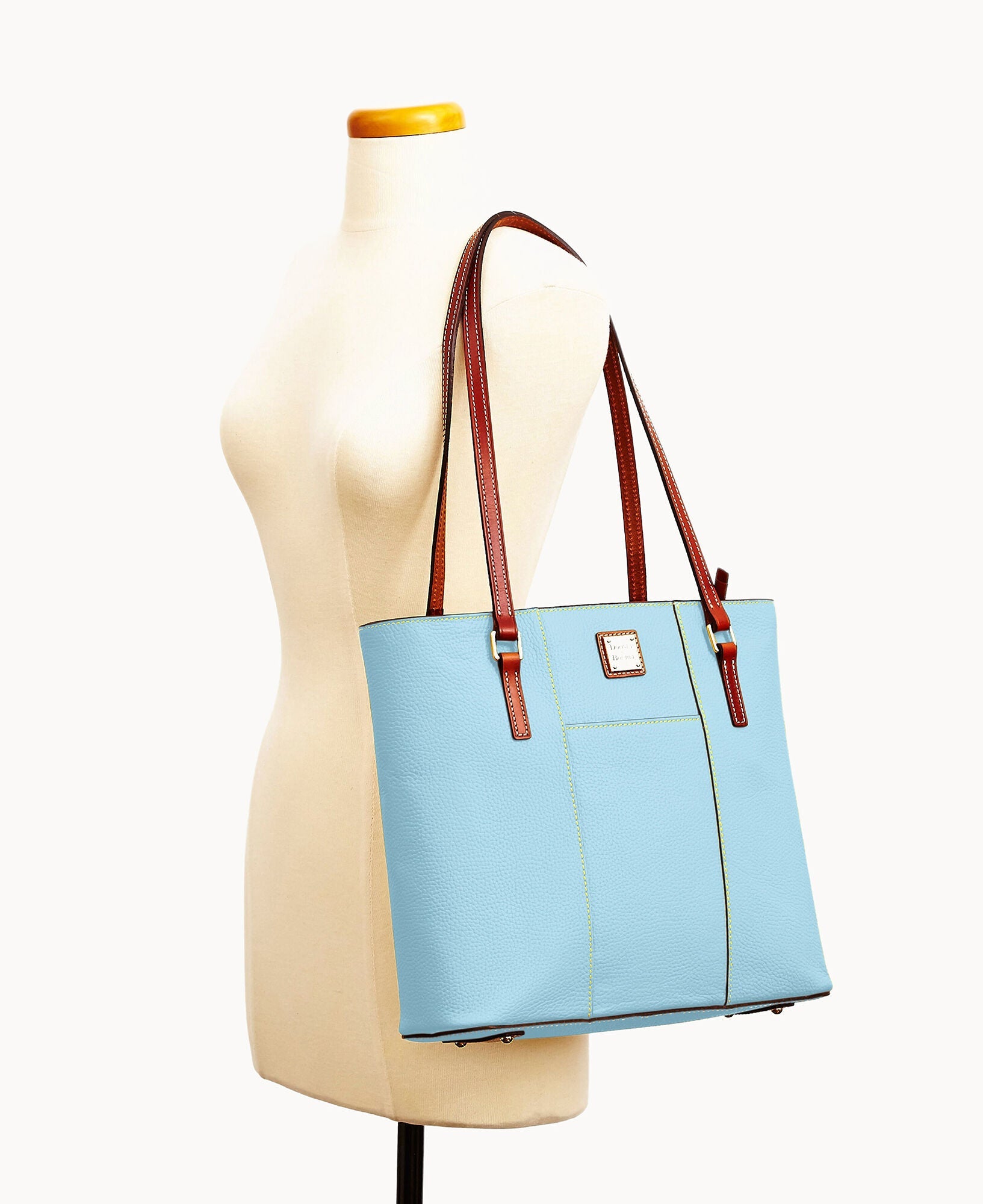 Outside front and back pockets. One inside zip pocket. Two inside pockets. Cell phone pocket. Inside key hook. Handle drop length 12". Strap drop length 12". Lined. Feet. Zipper closure.