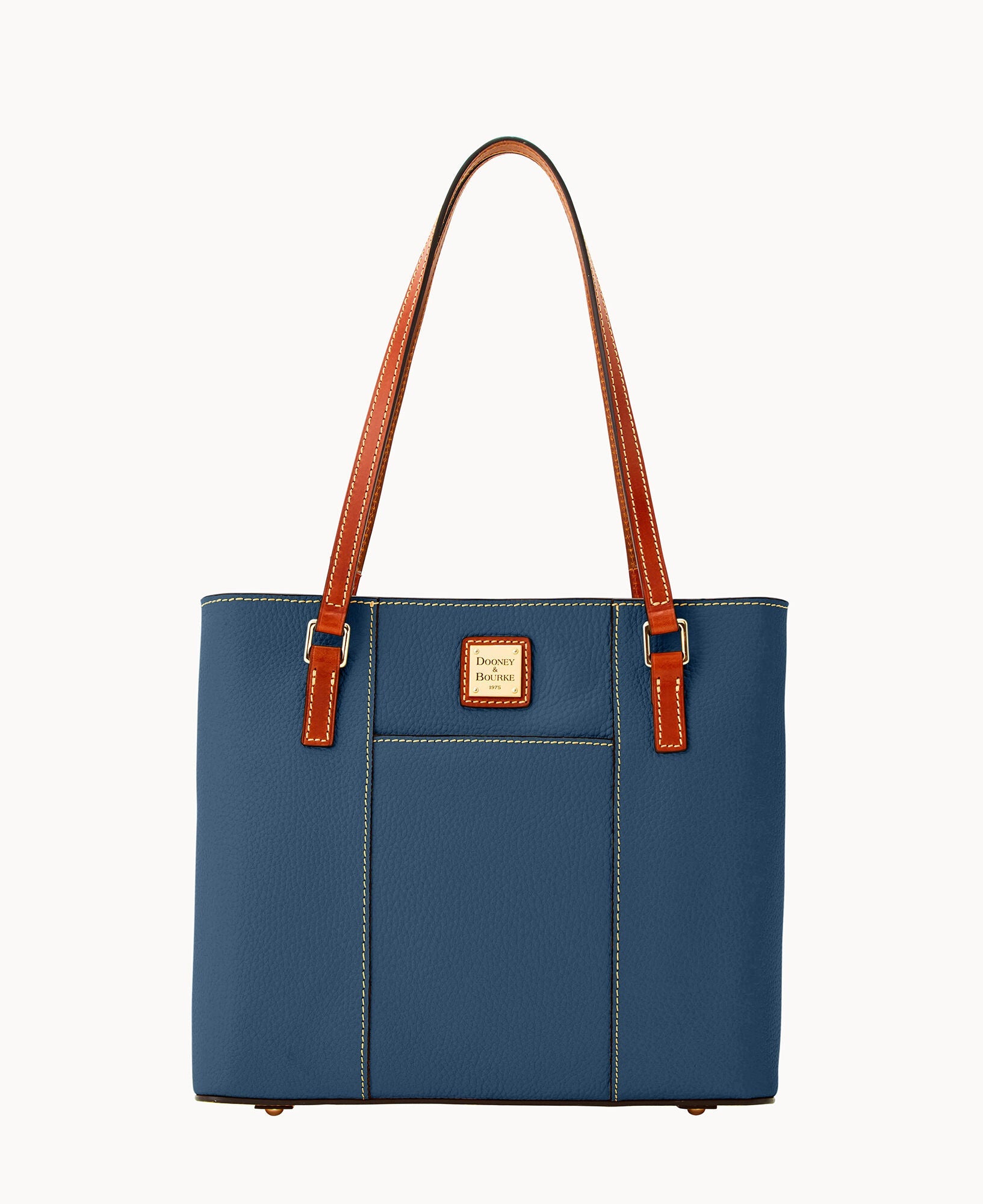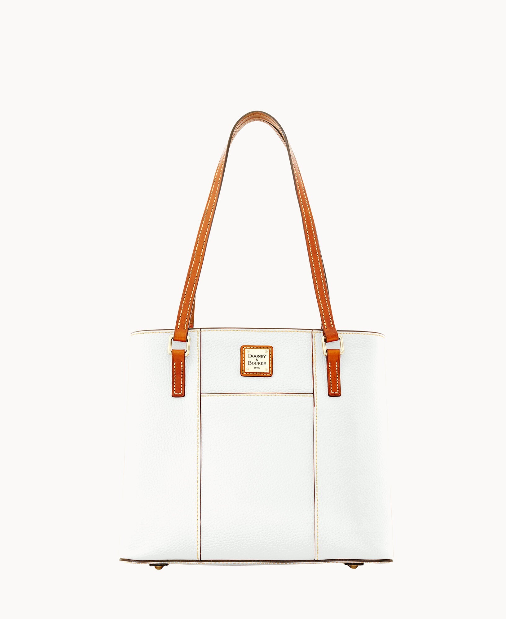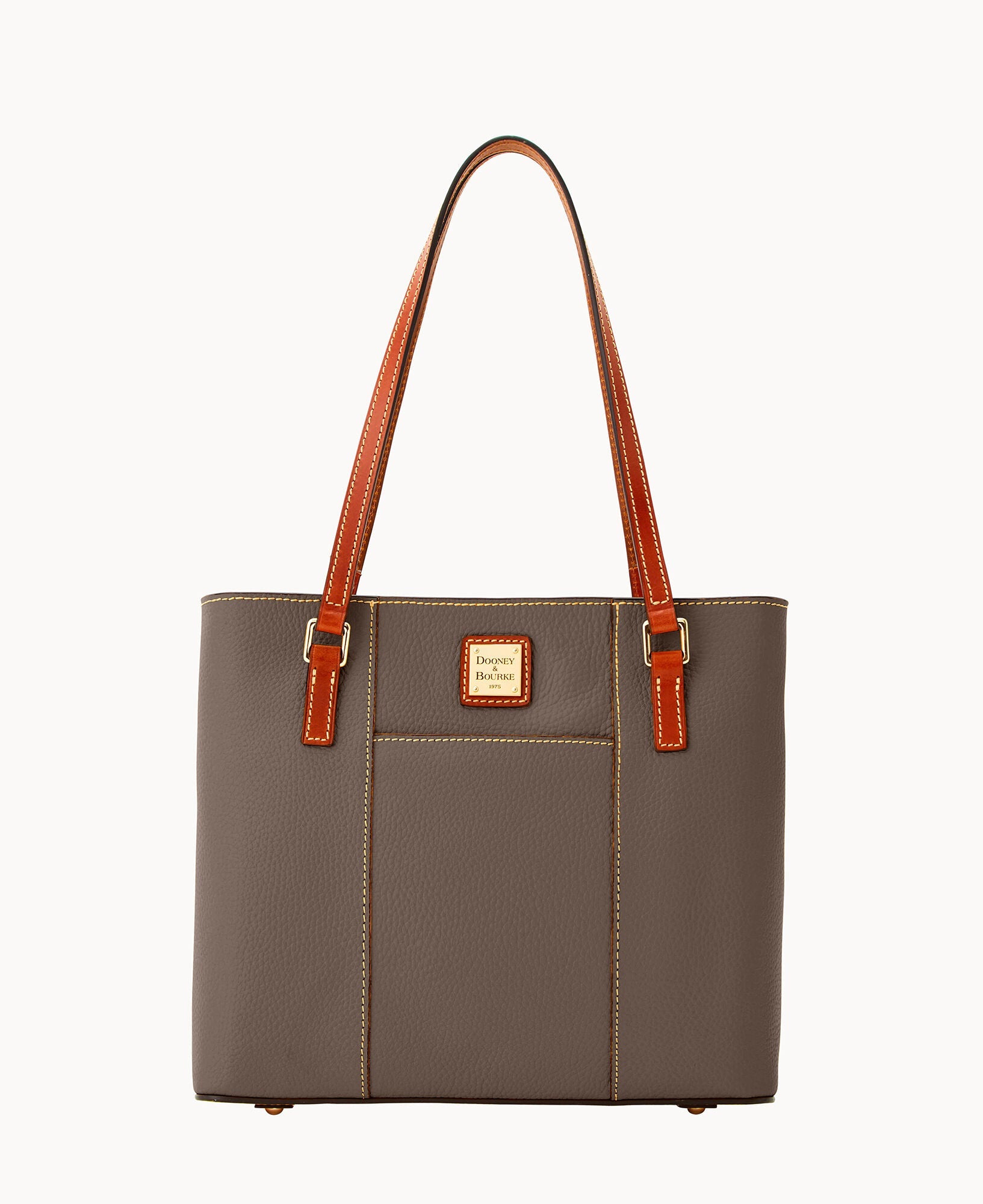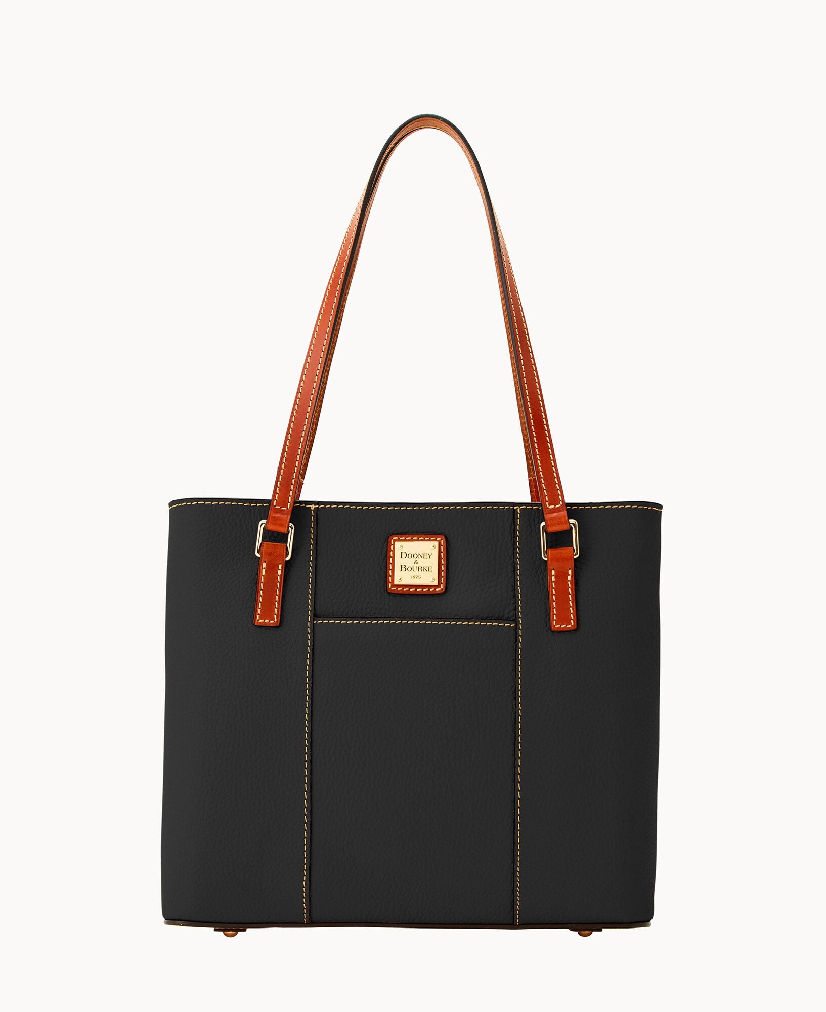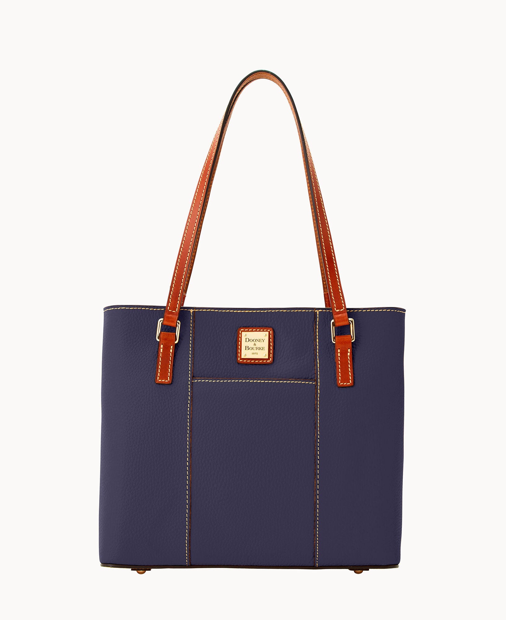 Front and back pockets. One inside zip pocket. Two inside pockets. Cell phone pocket. Inside key hook. Handle drop length 11.5". Strap drop length 11.5". Lined. Feet. Zipper closure.
