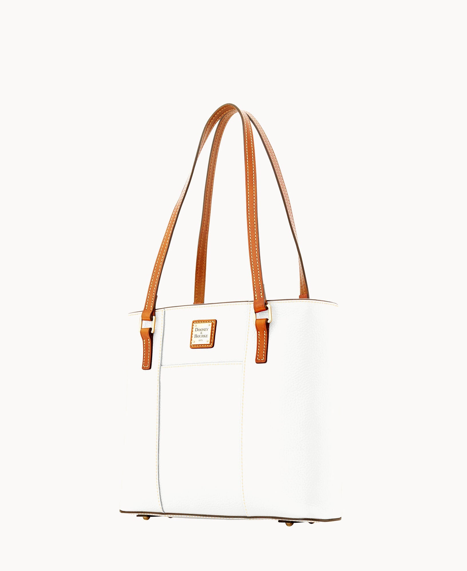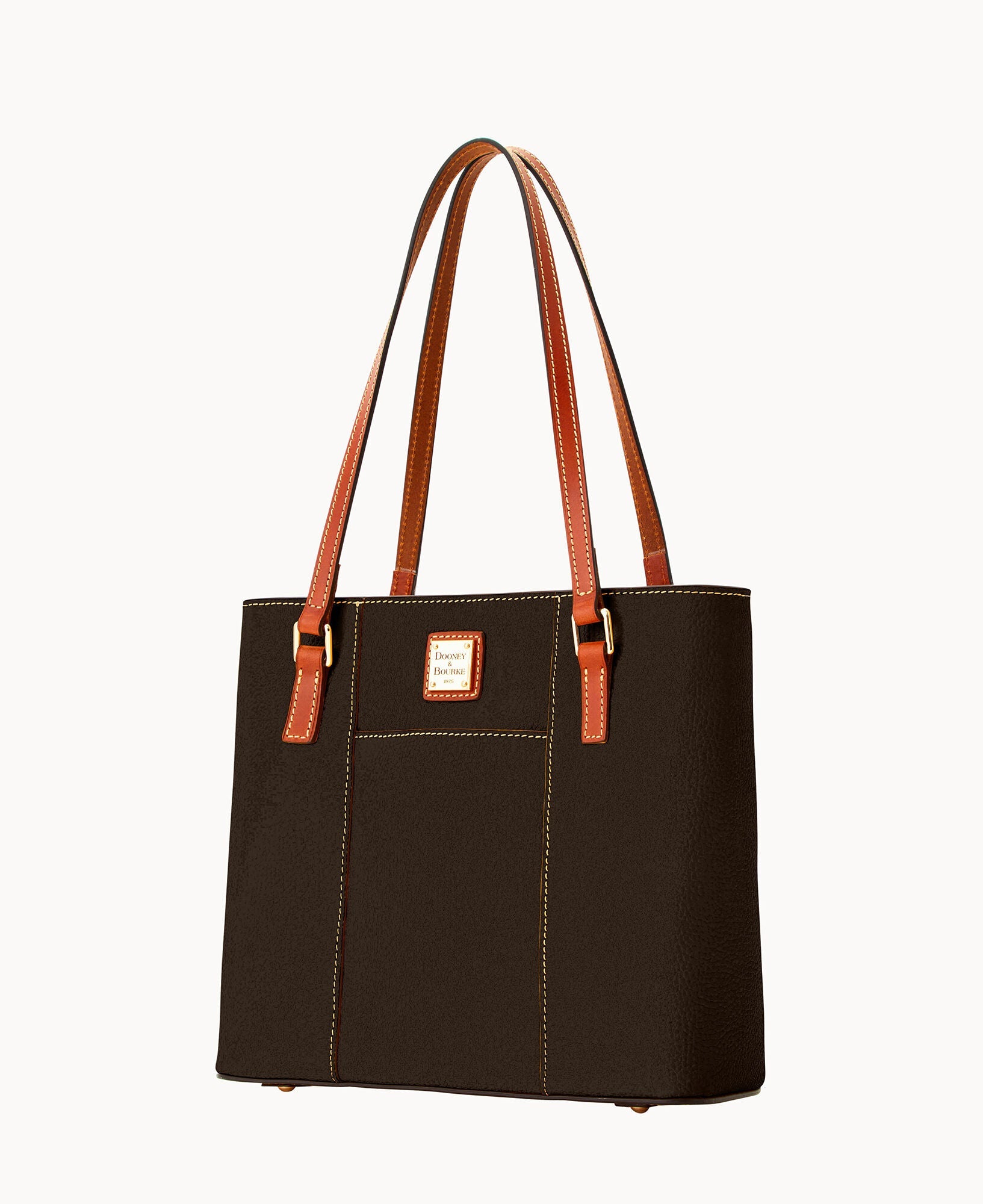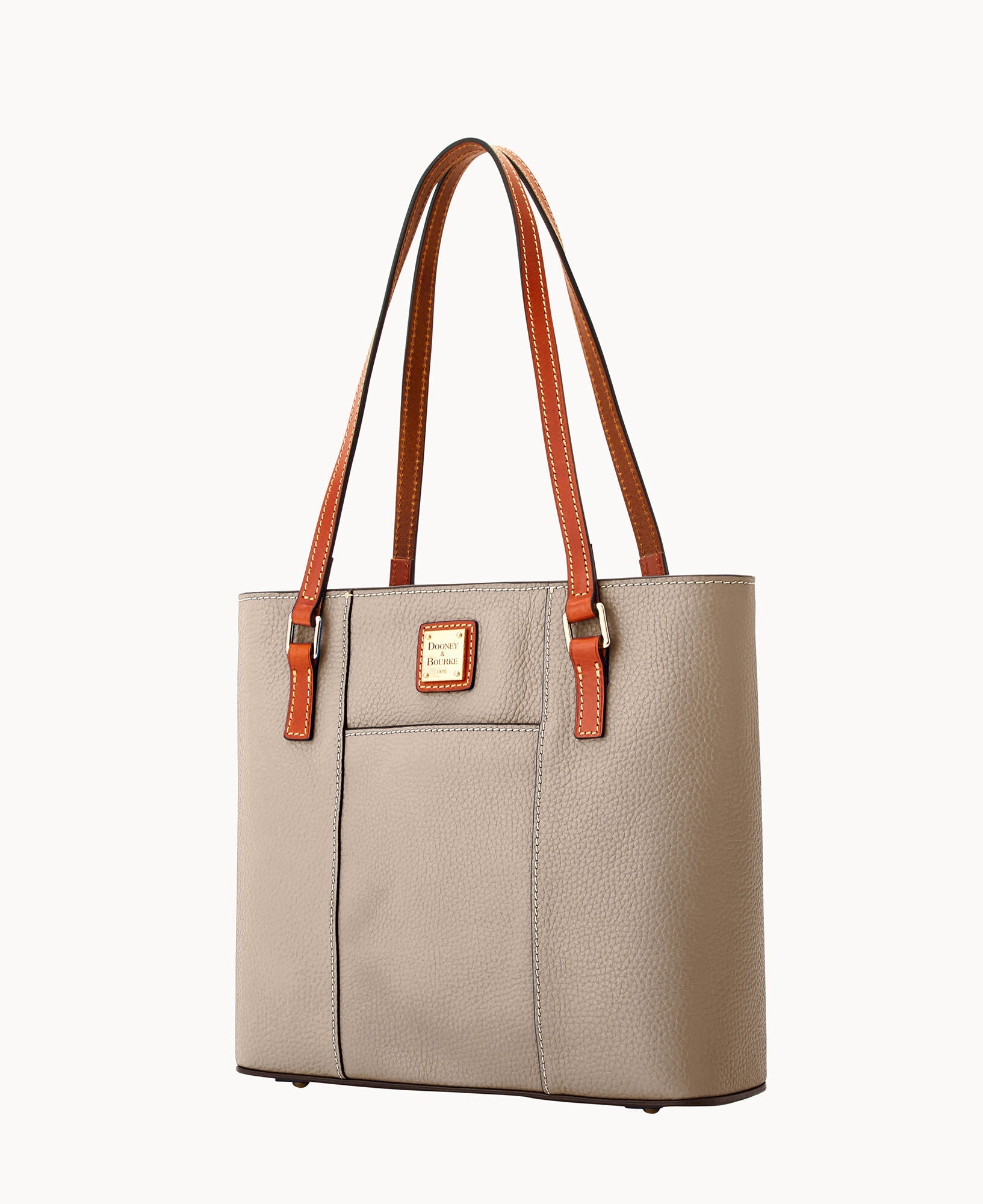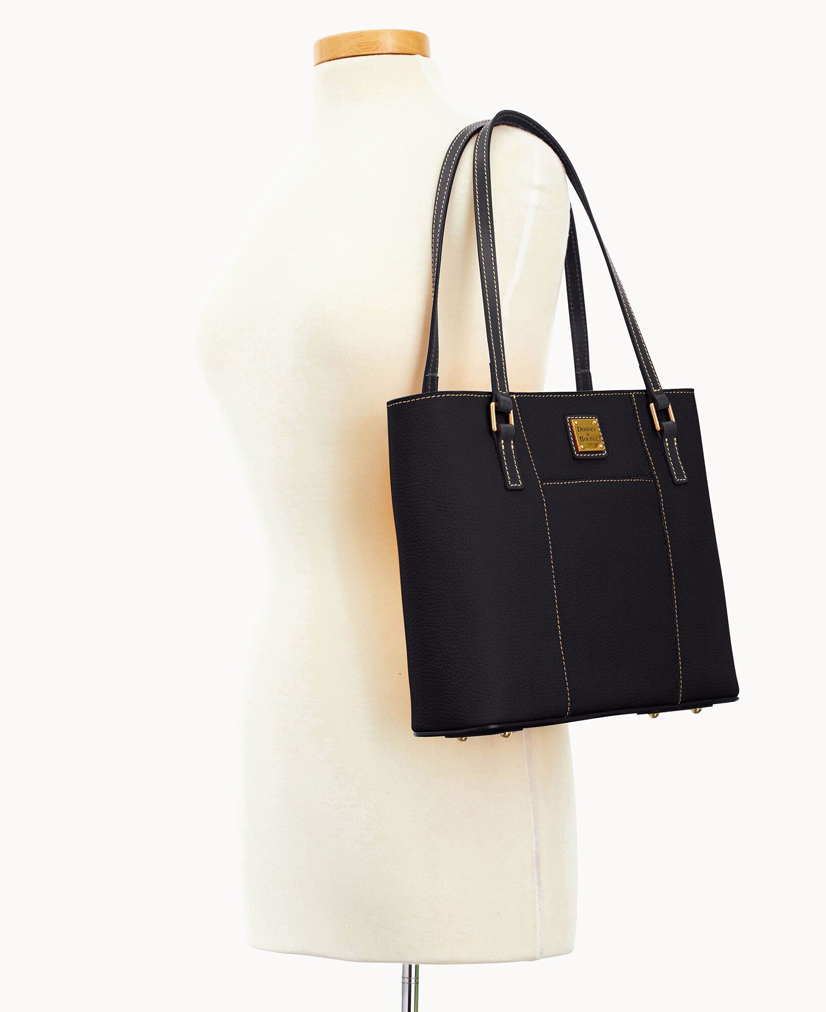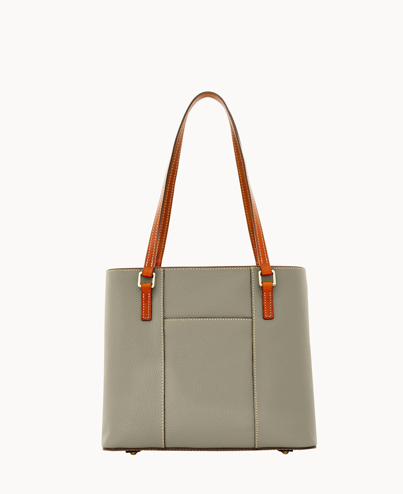 Front and back pockets. One inside zip pocket. Two inside pockets. Cell phone pocket. Inside key hook. Handle drop length 11.5". Strap drop length 11.5". Lined. Feet. Zipper closure.