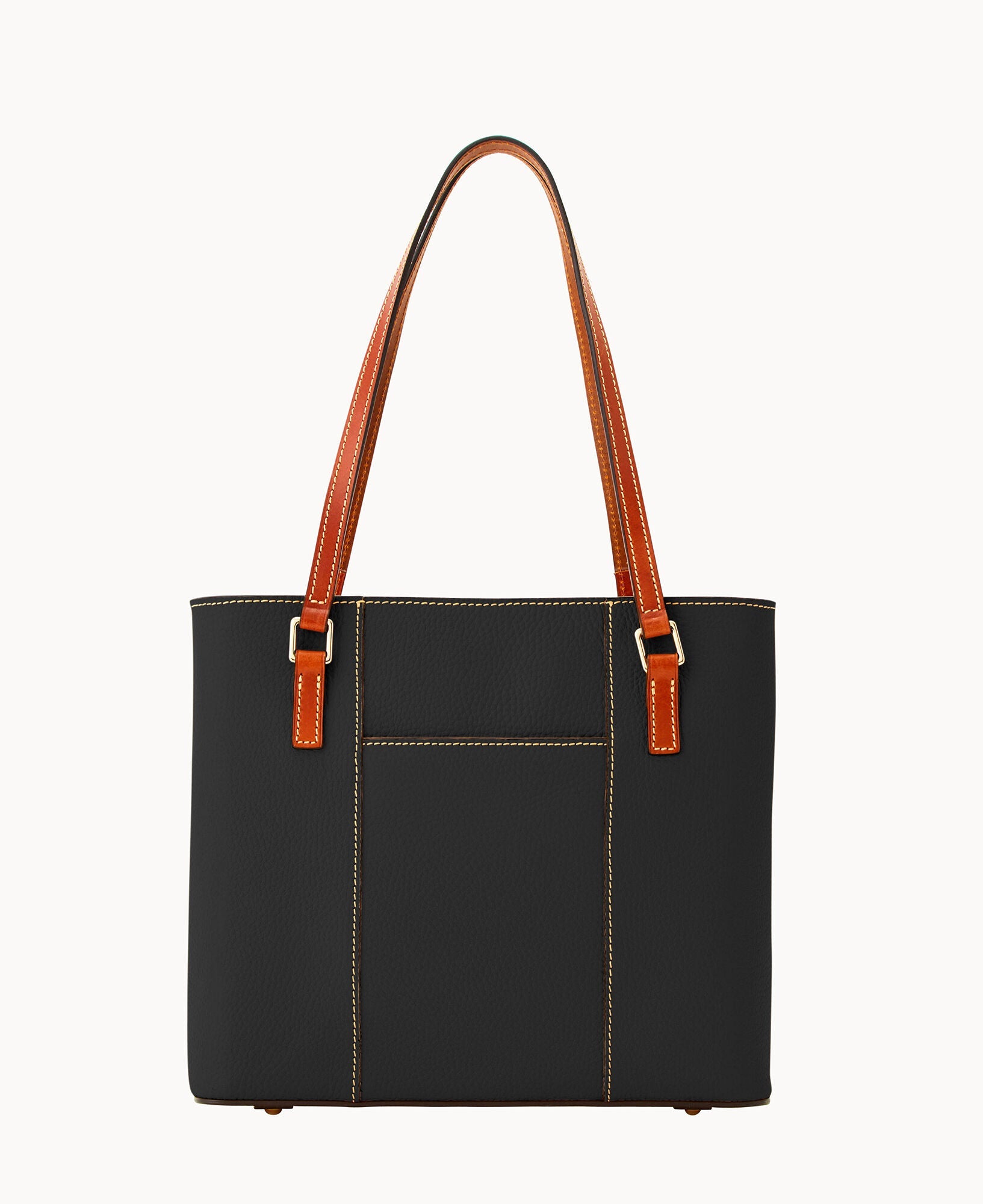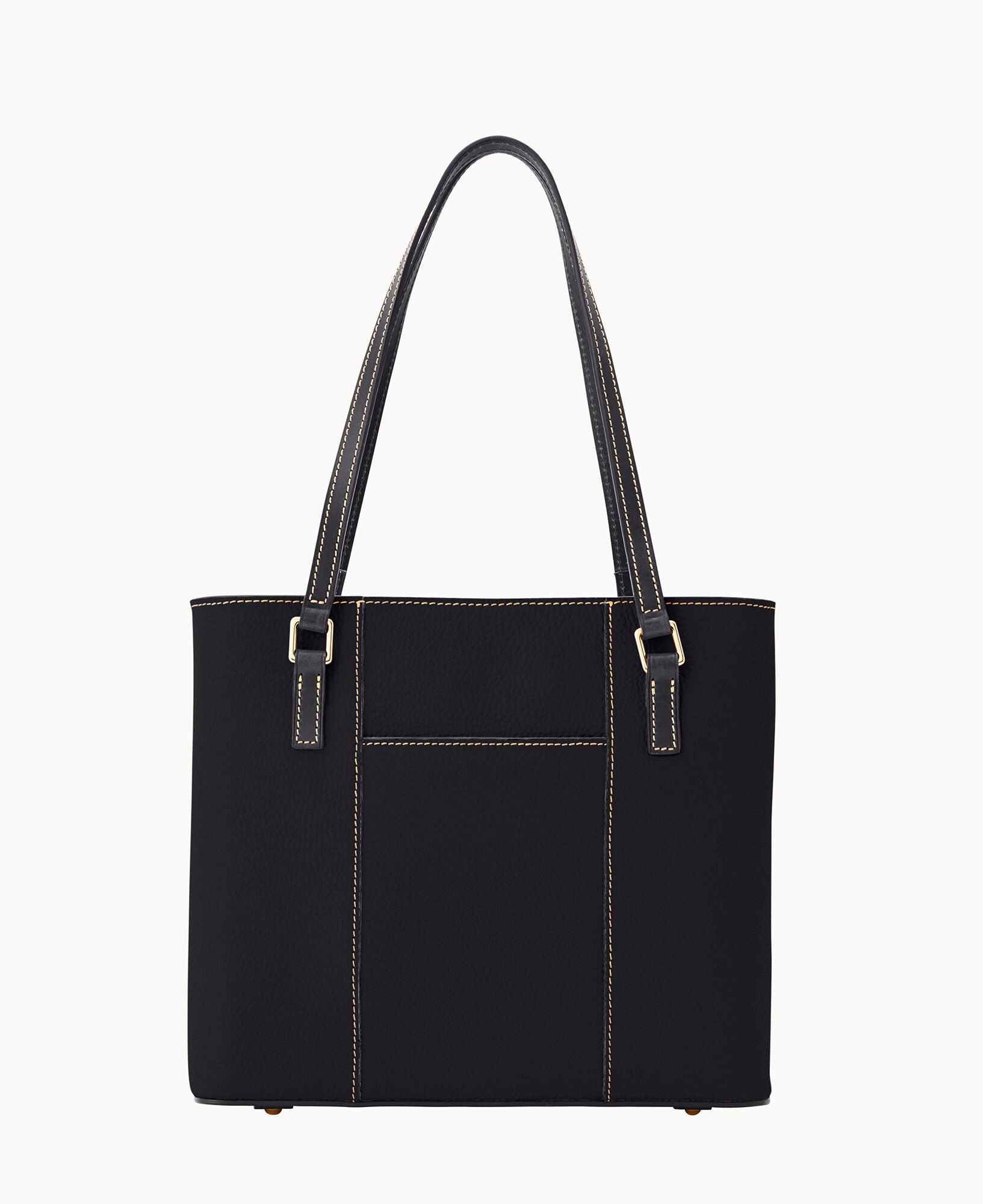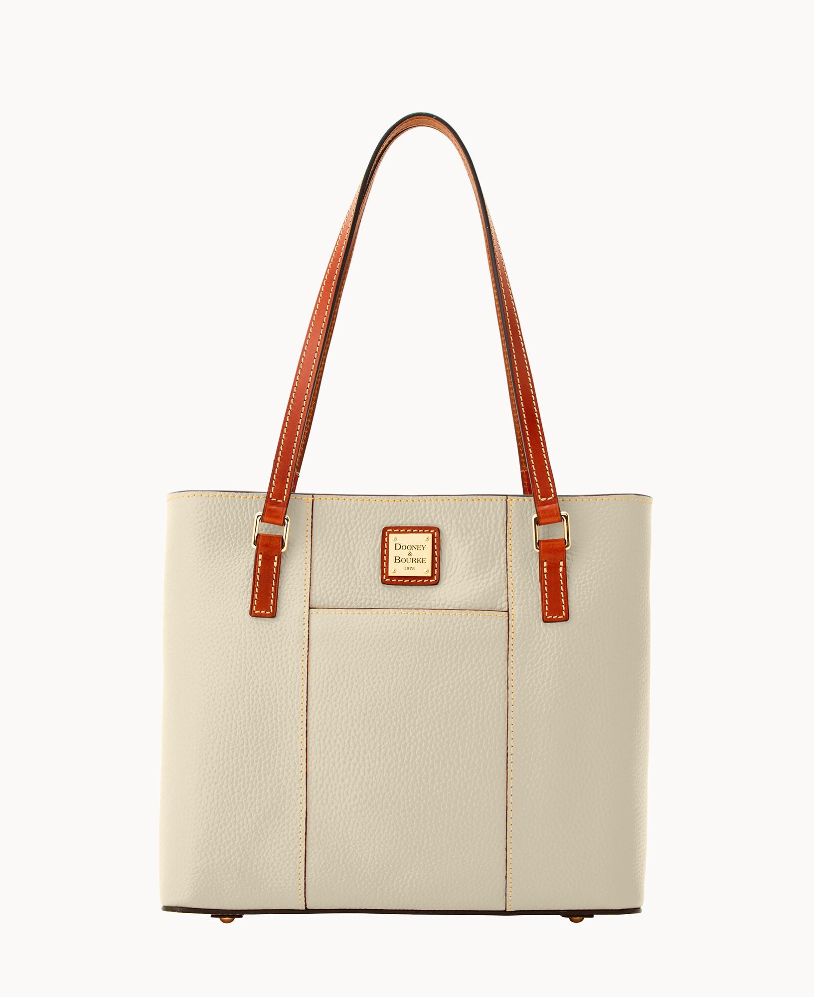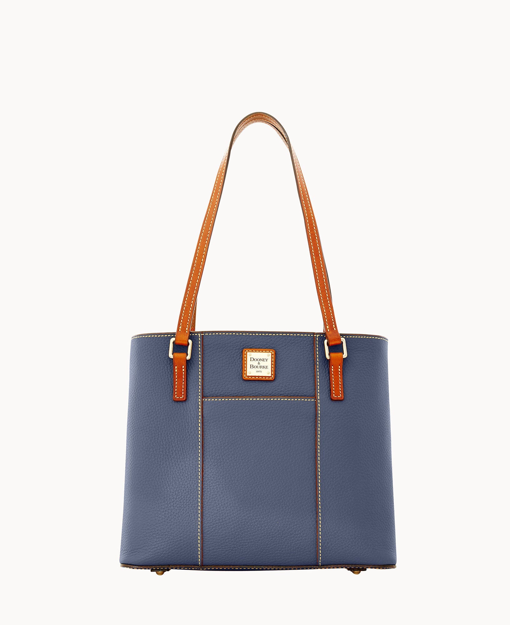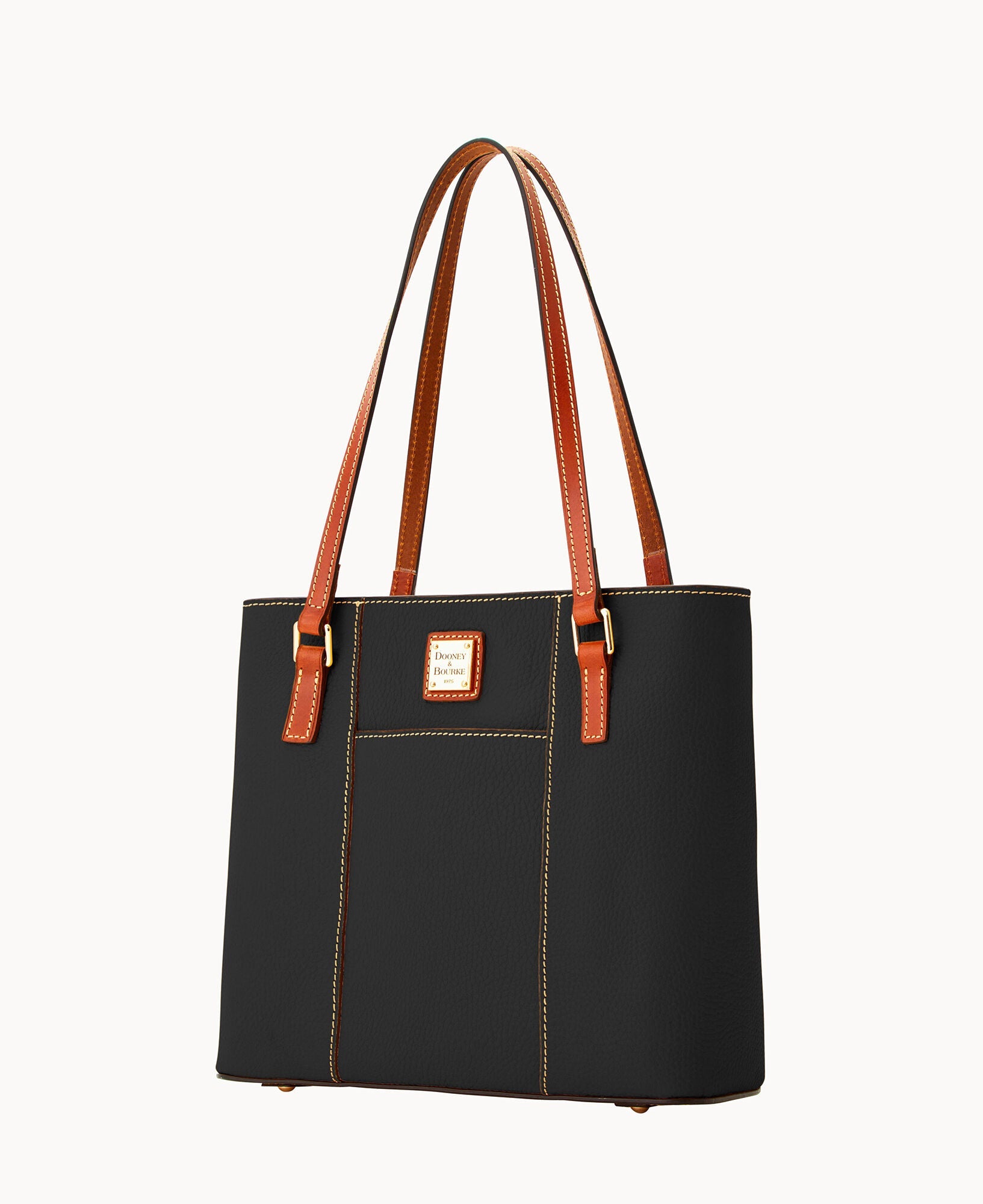 Front and back pockets. One inside zip pocket. Two inside pockets. Cell phone pocket. Inside key hook. Handle drop length 11.5". Strap drop length 11.5". Lined. Feet. Zipper closure.