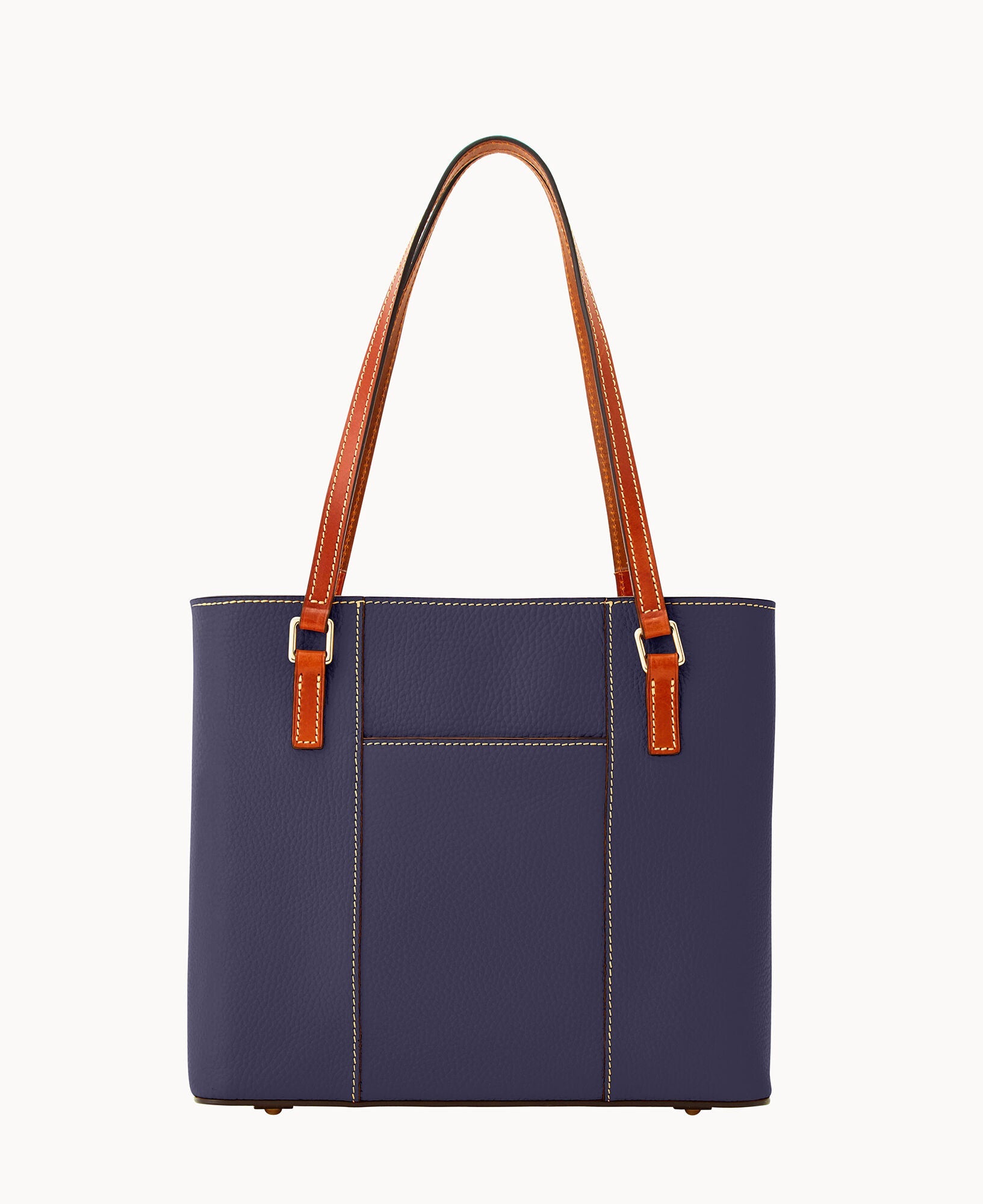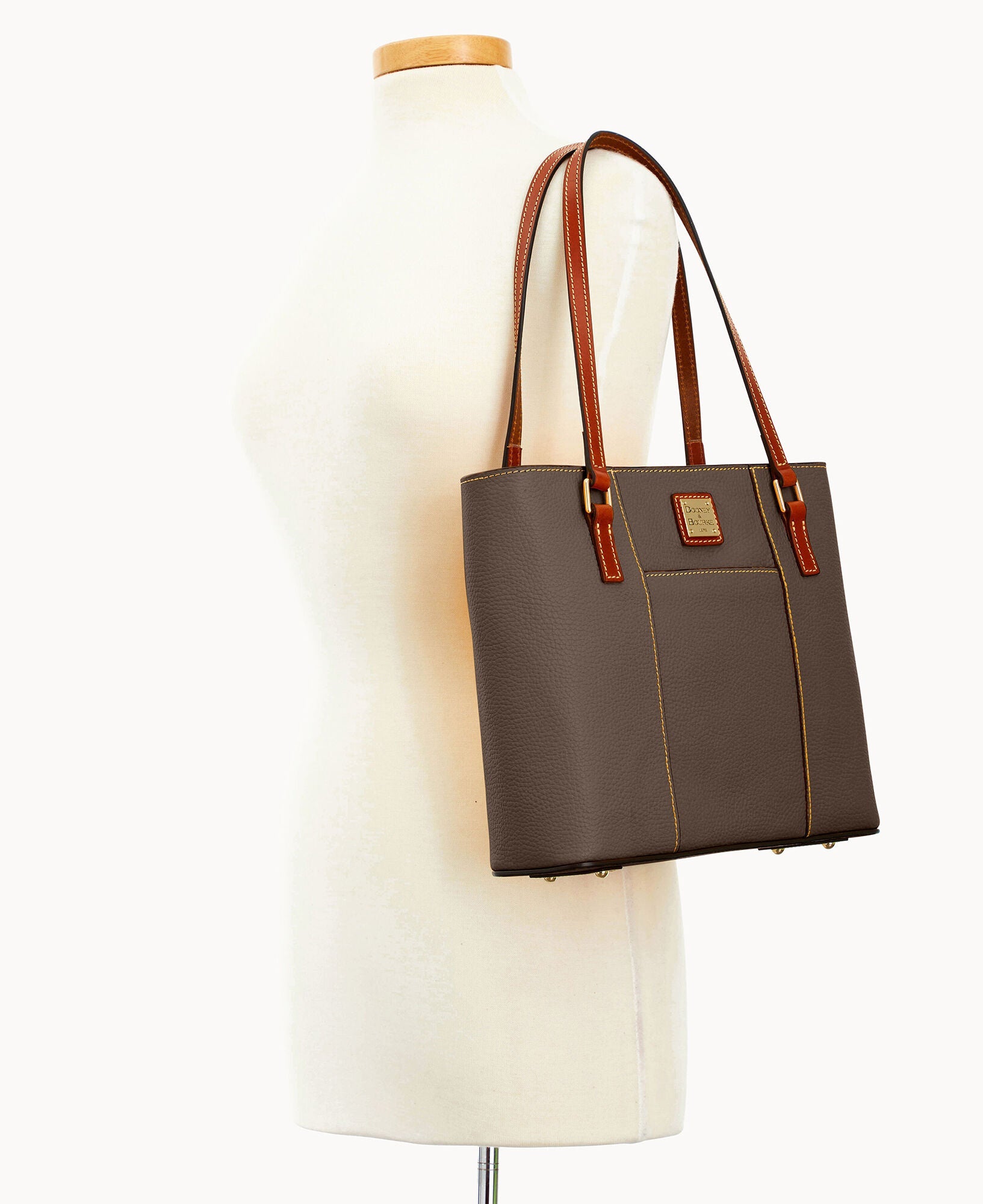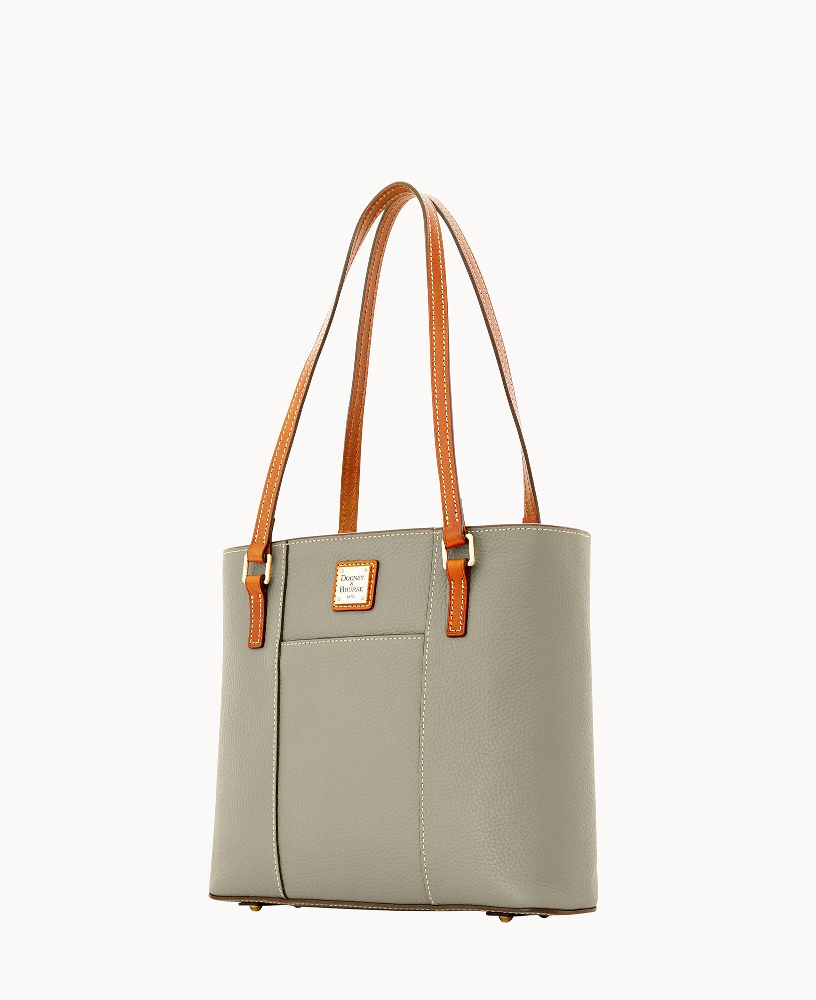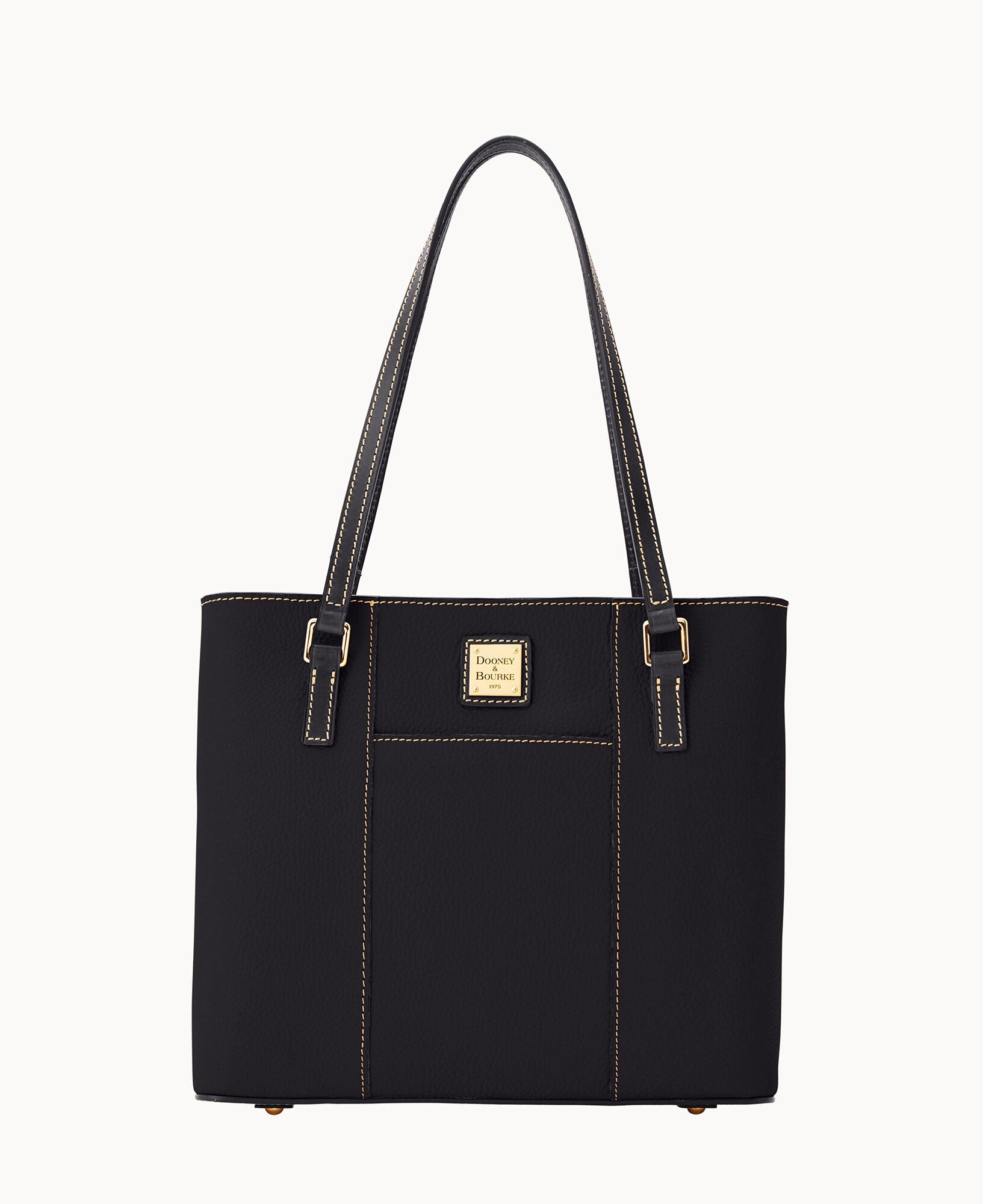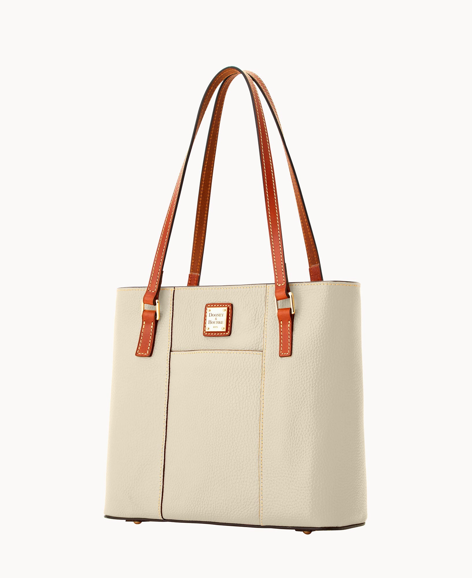 Front and back pockets. One inside zip pocket. Two inside pockets. Cell phone pocket. Inside key hook. Handle drop length 11.5". Strap drop length 11.5". Lined. Feet. Zipper closure.