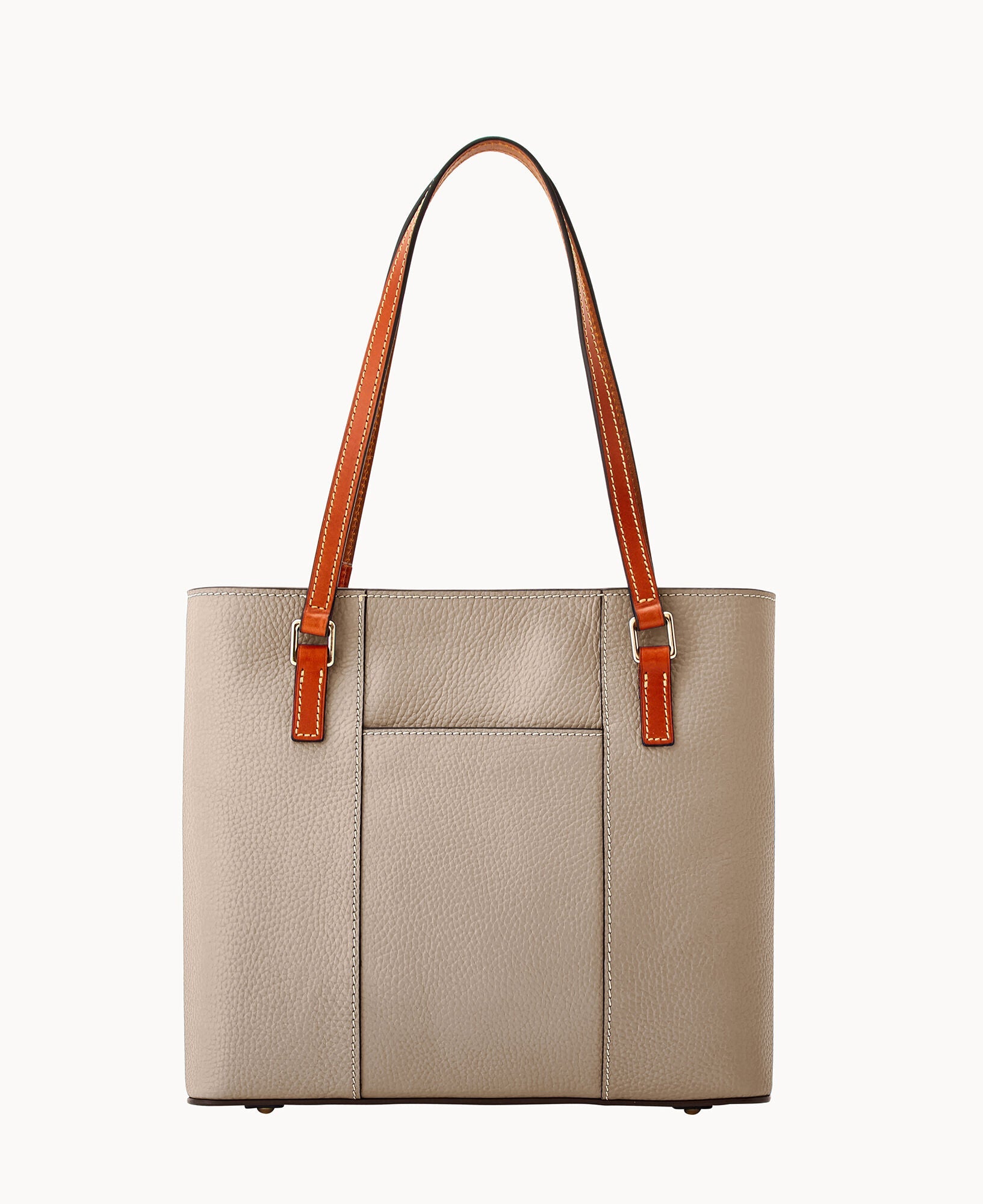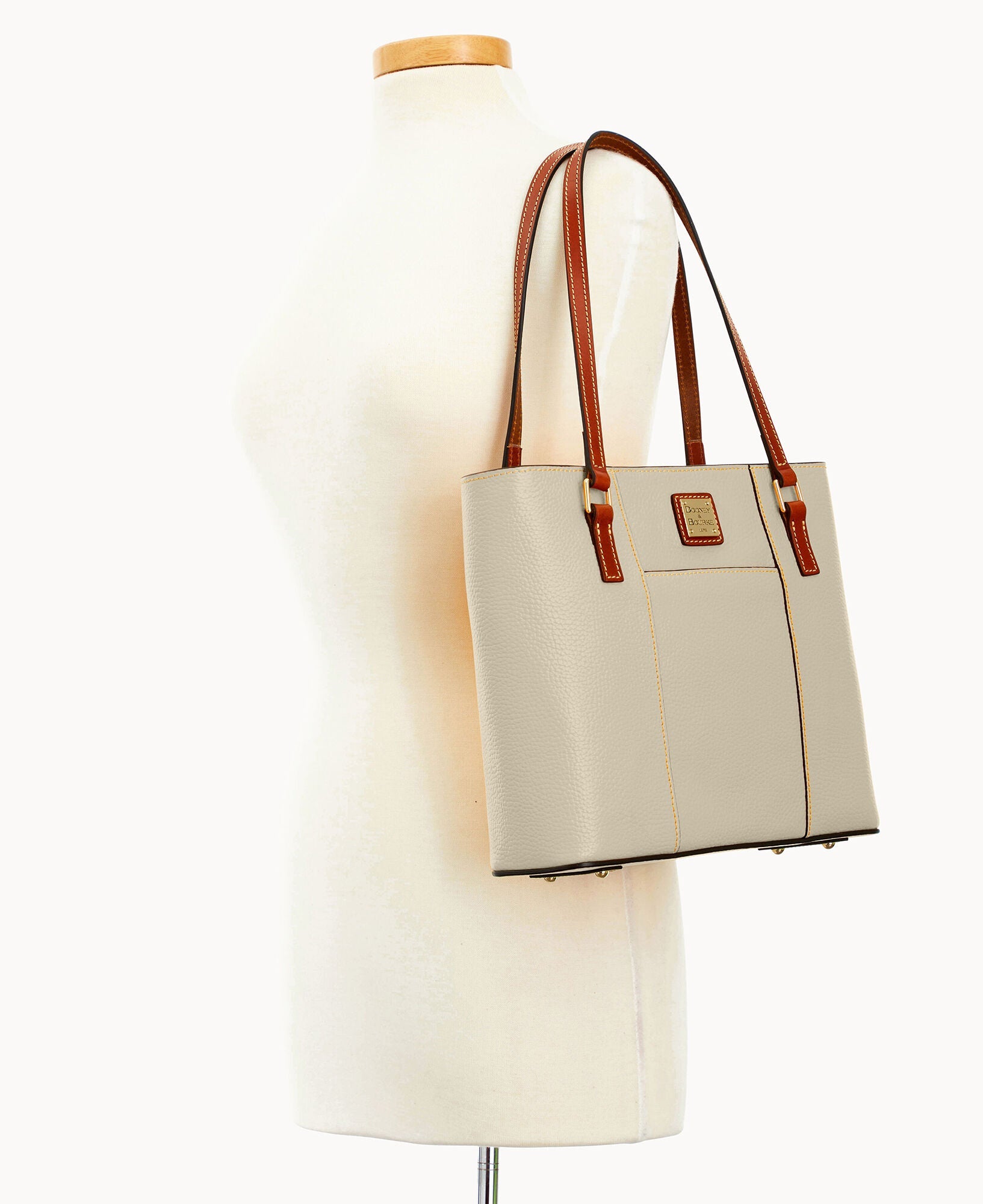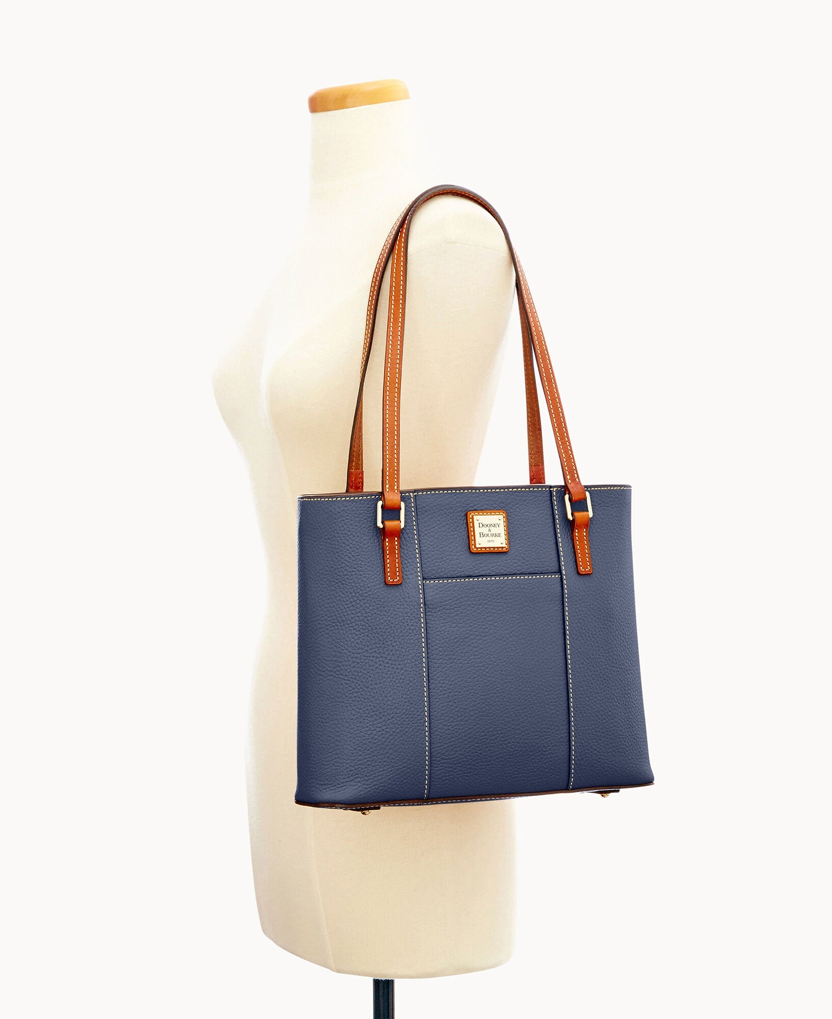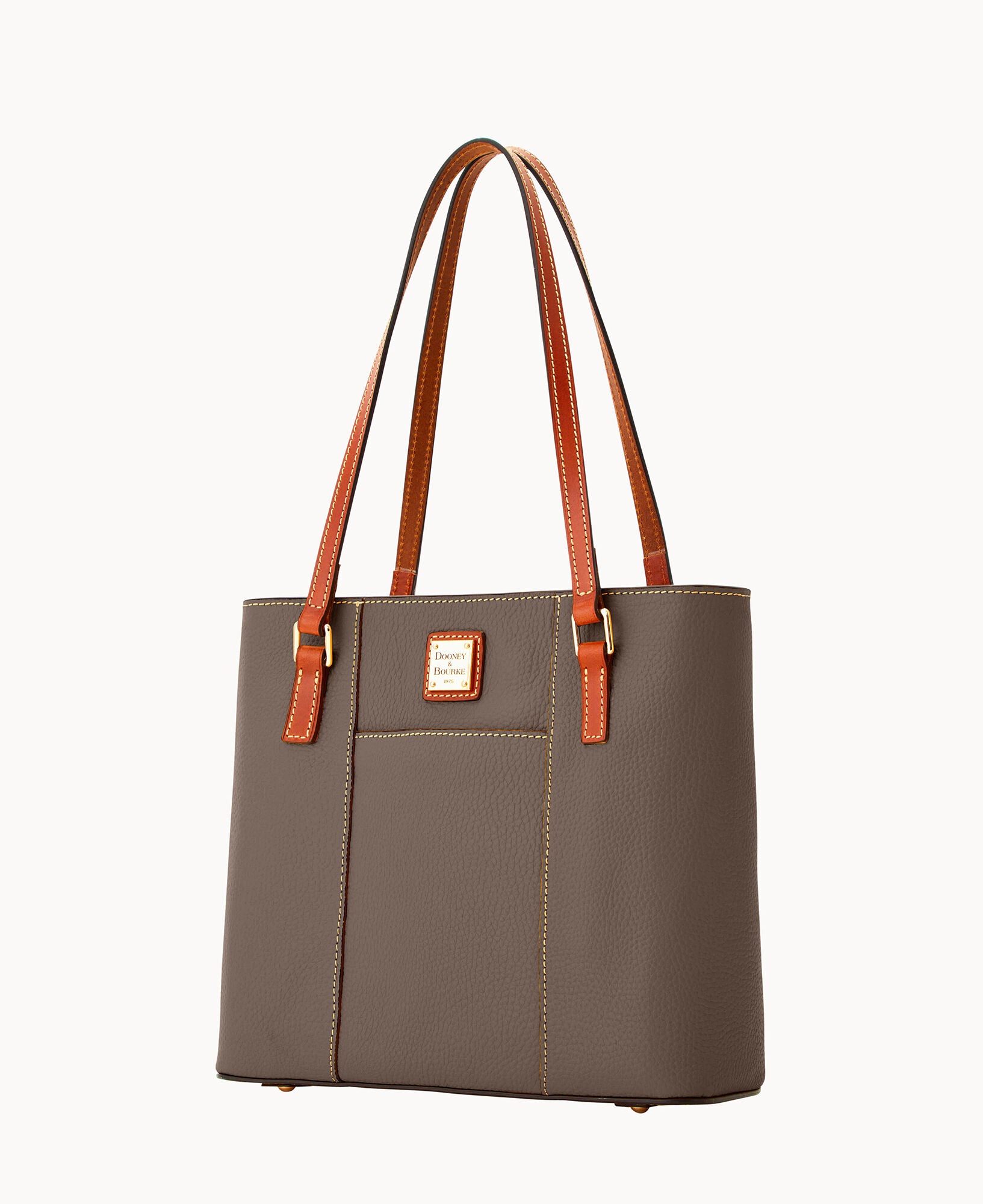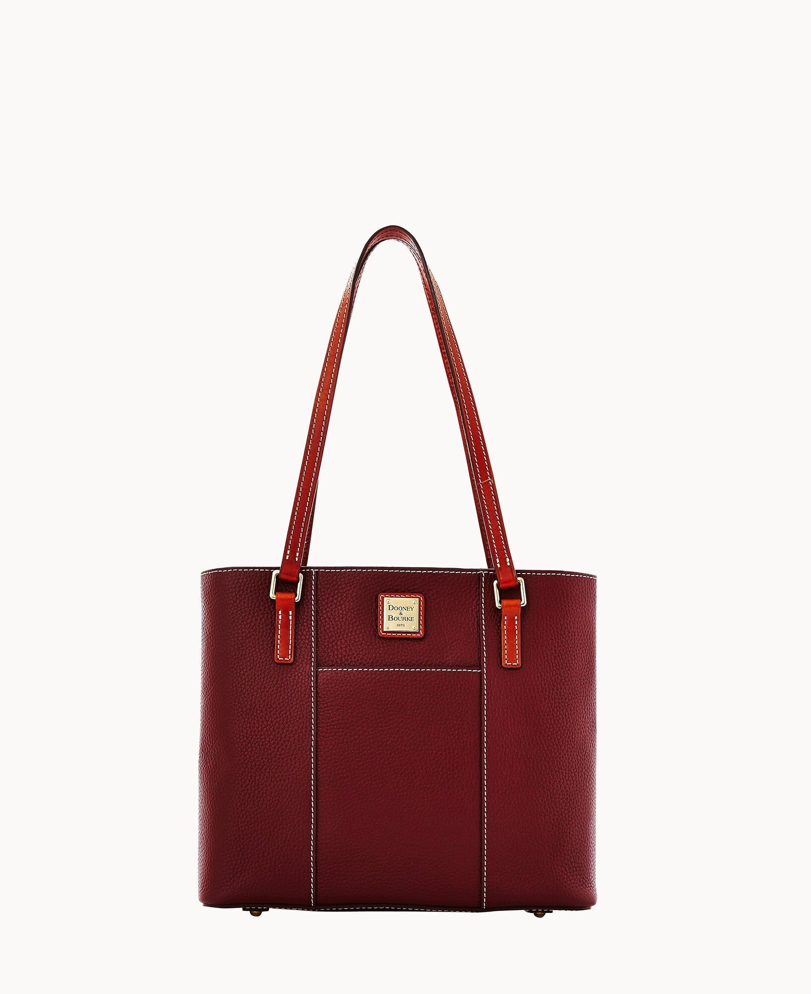Front and back pockets. One inside zip pocket. Two inside pockets. Cell phone pocket. Inside key hook. Handle drop length 11.5". Strap drop length 11.5". Lined. Feet. Zipper closure.