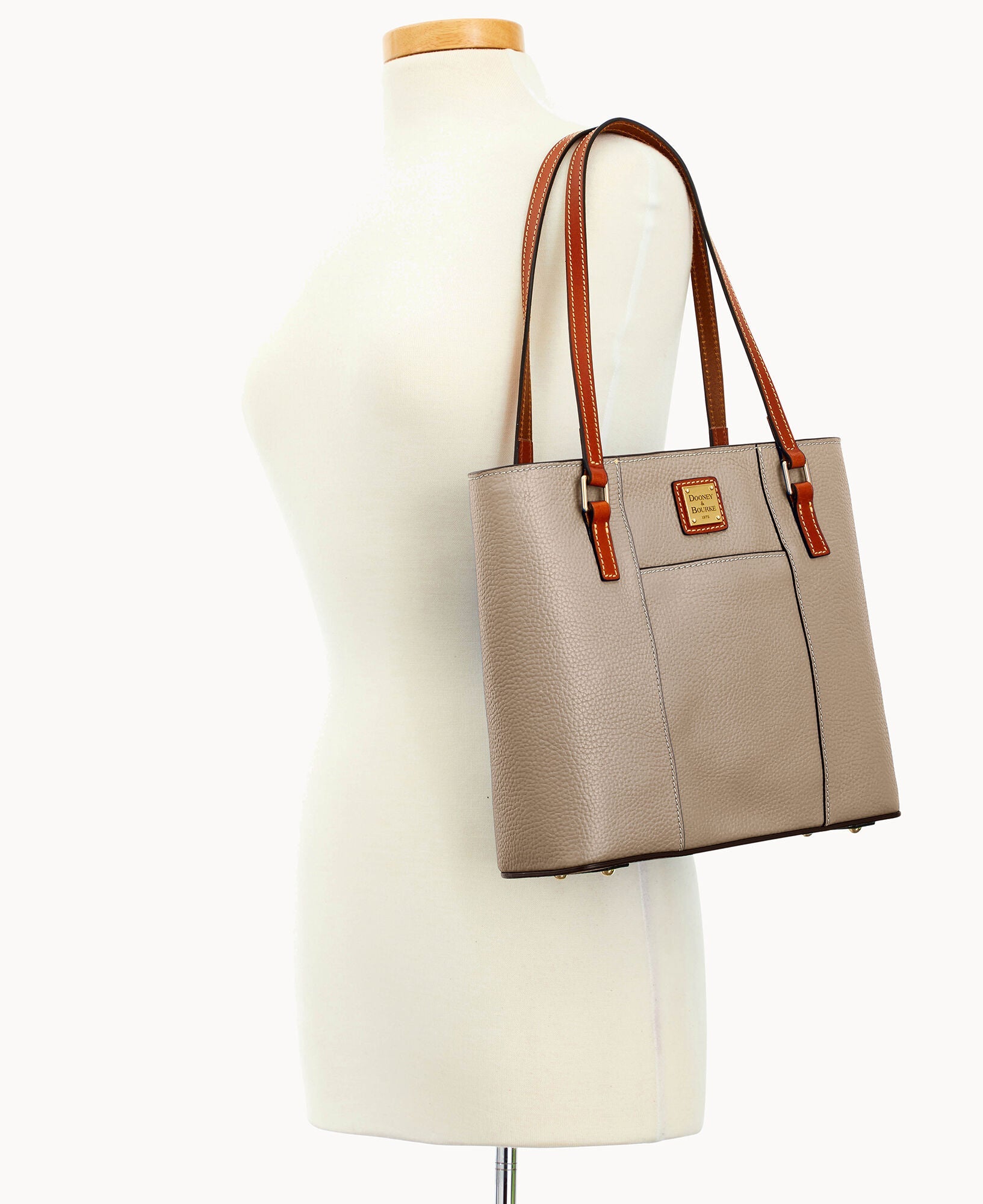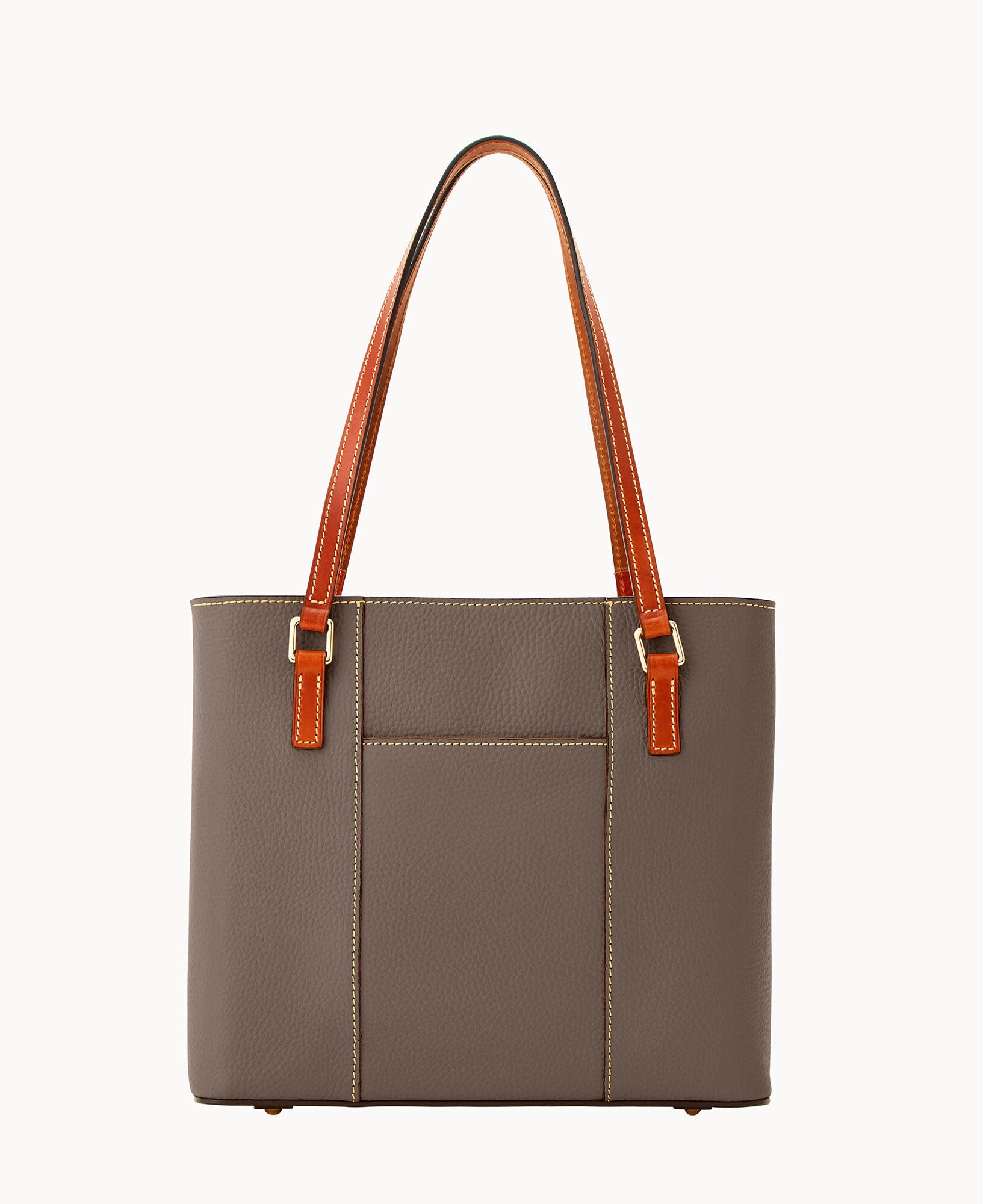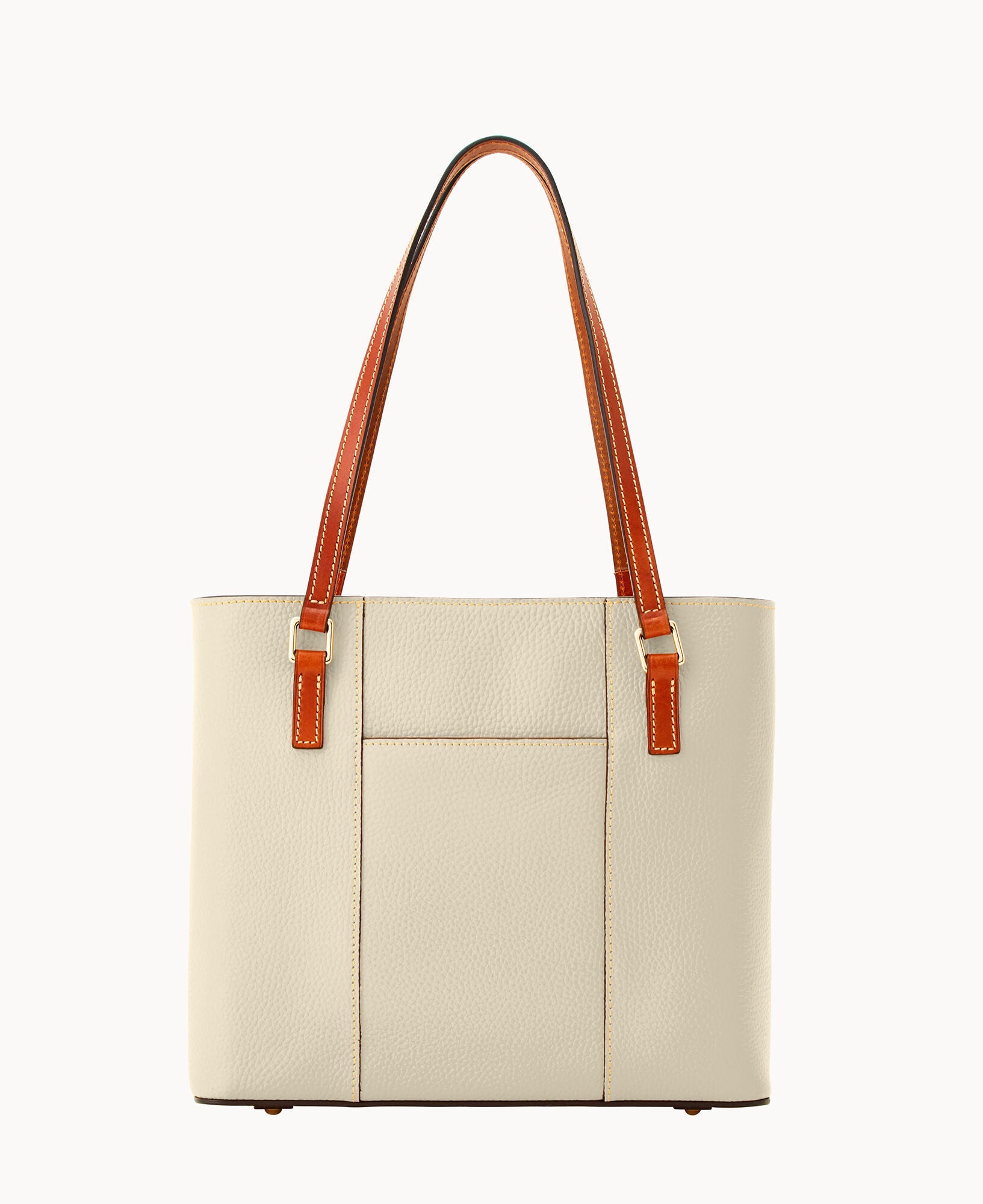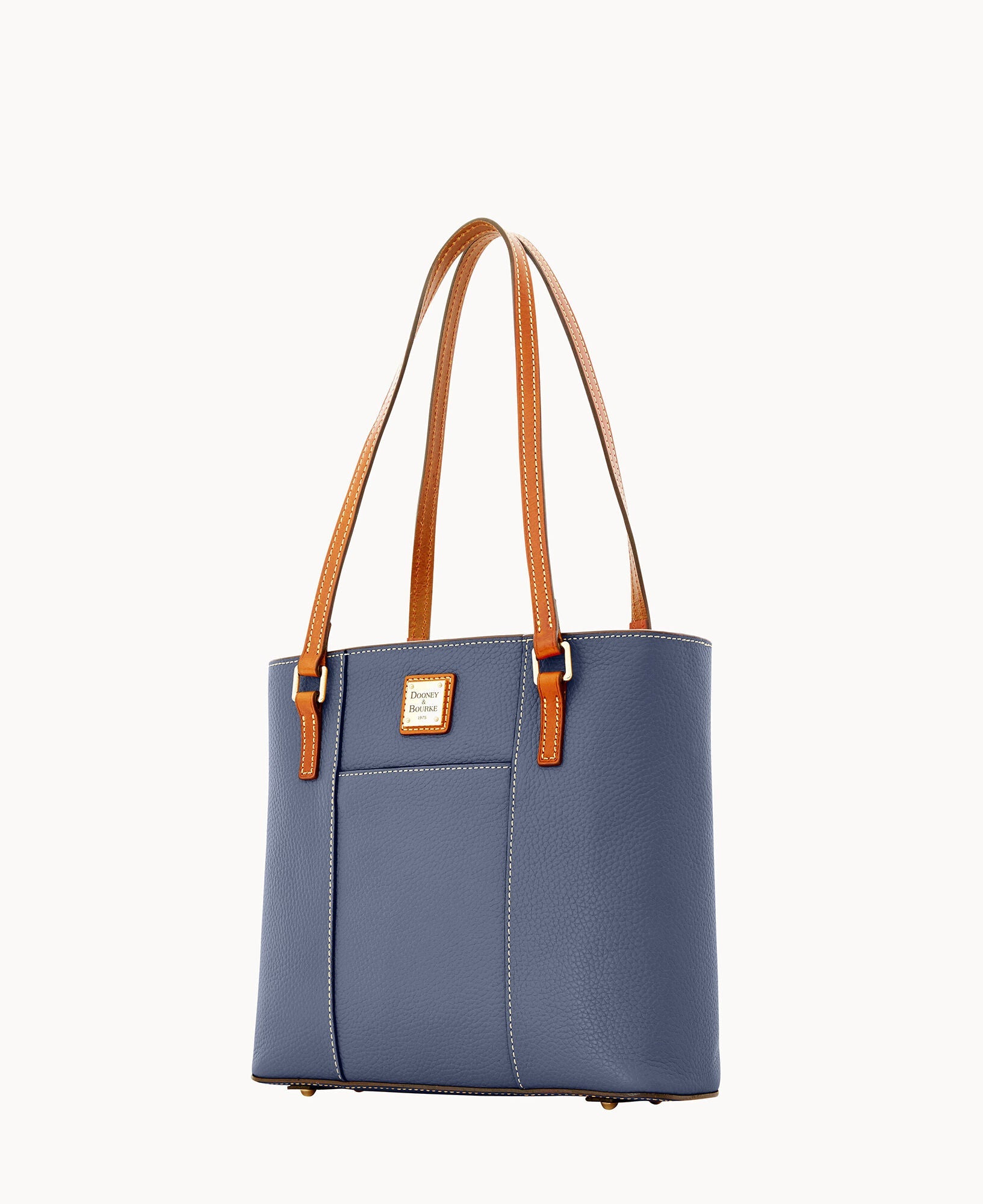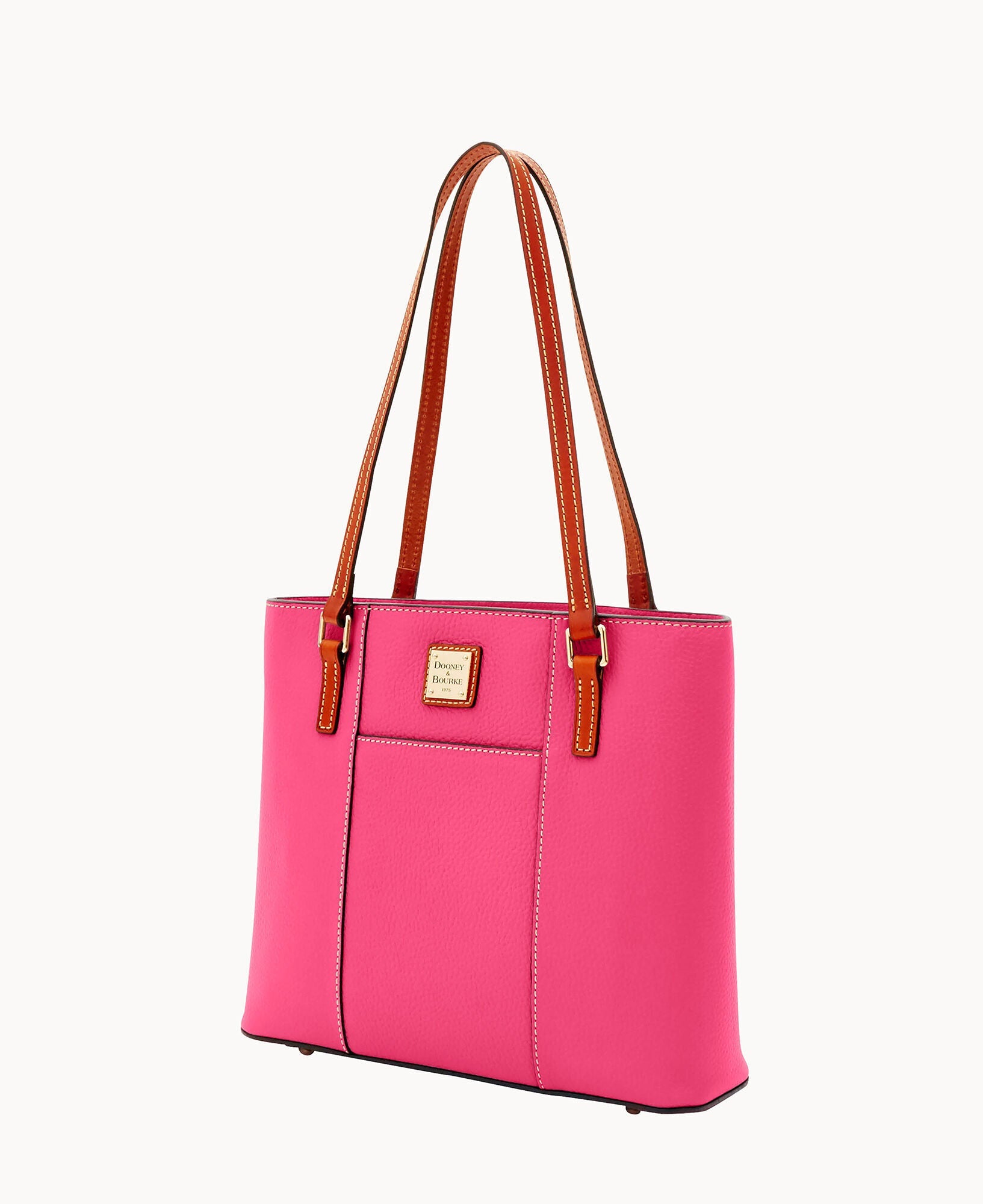 Front and back pockets. One inside zip pocket. Two inside pockets. Cell phone pocket. Inside key hook. Handle drop length 11.5". Strap drop length 11.5". Lined. Feet. Zipper closure.