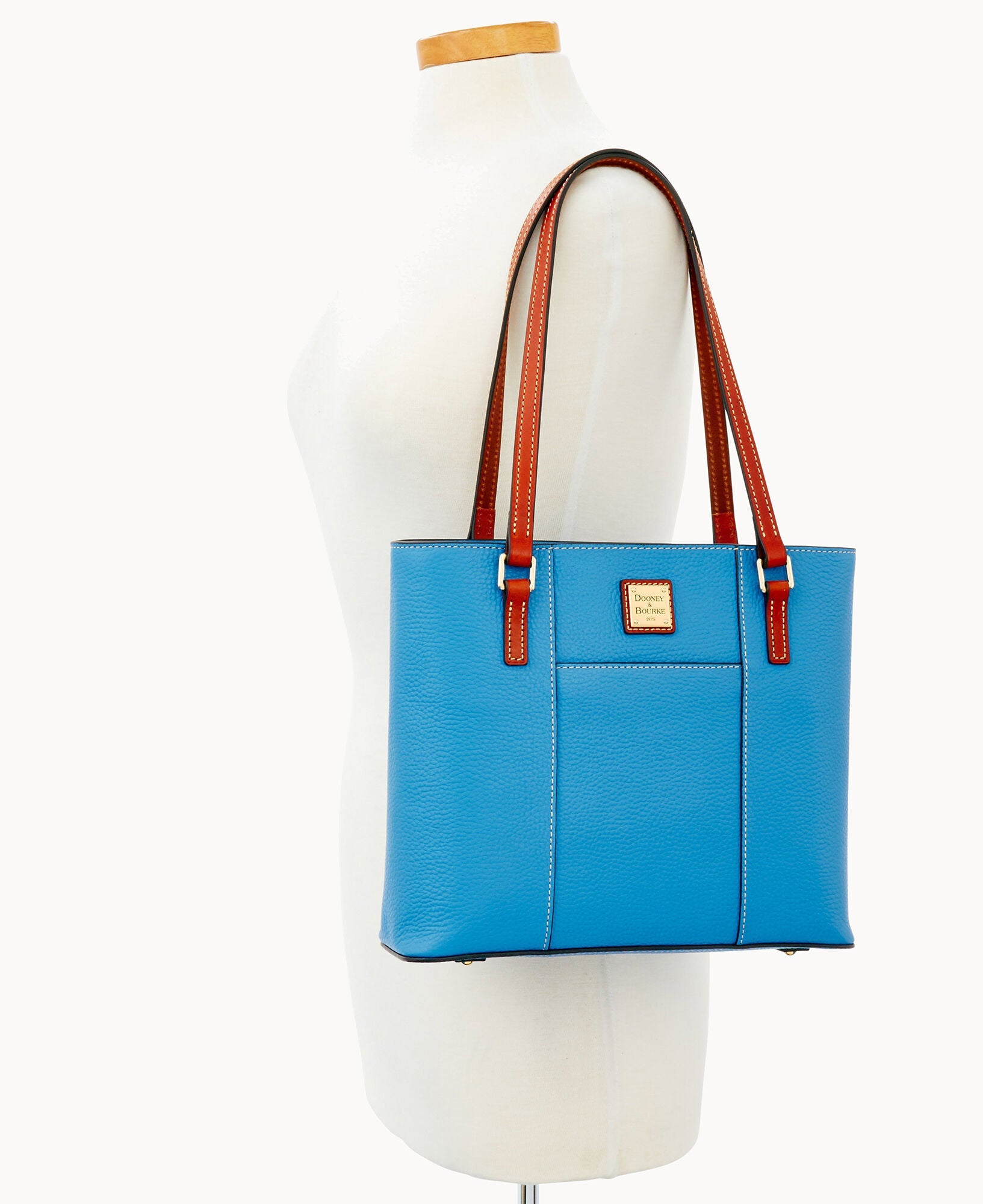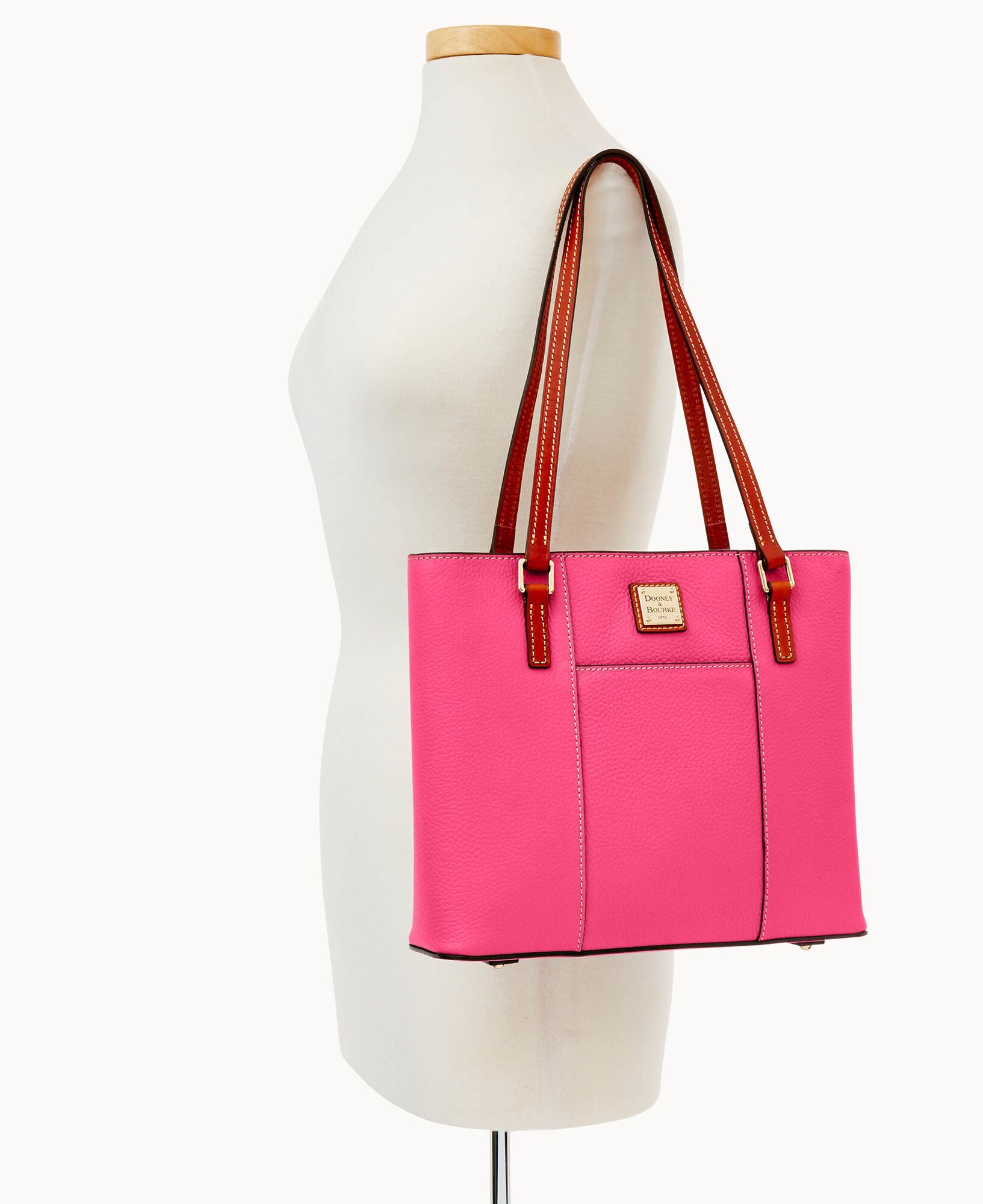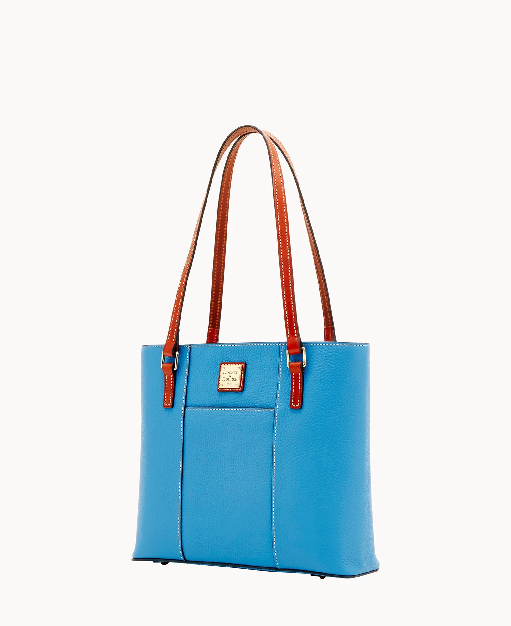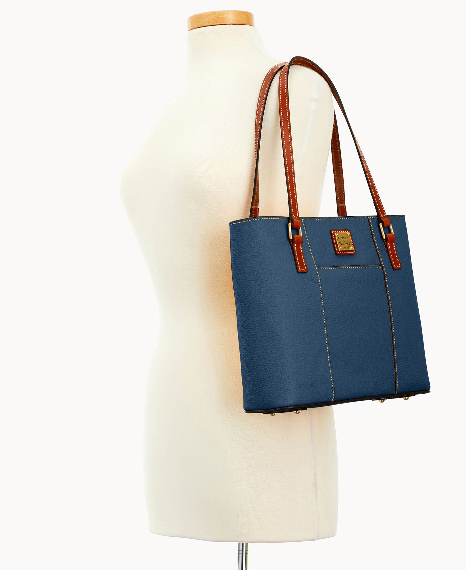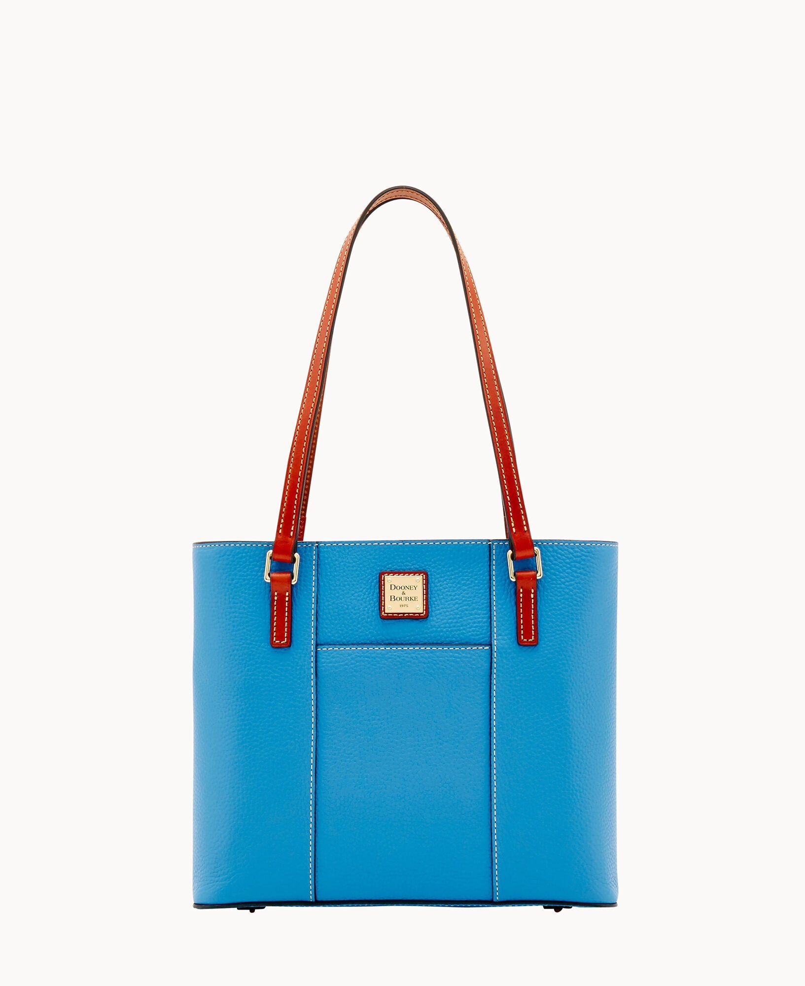 Front and back pockets. One inside zip pocket. Two inside pockets. Cell phone pocket. Inside key hook. Handle drop length 11.5". Strap drop length 11.5". Lined. Feet. Zipper closure.