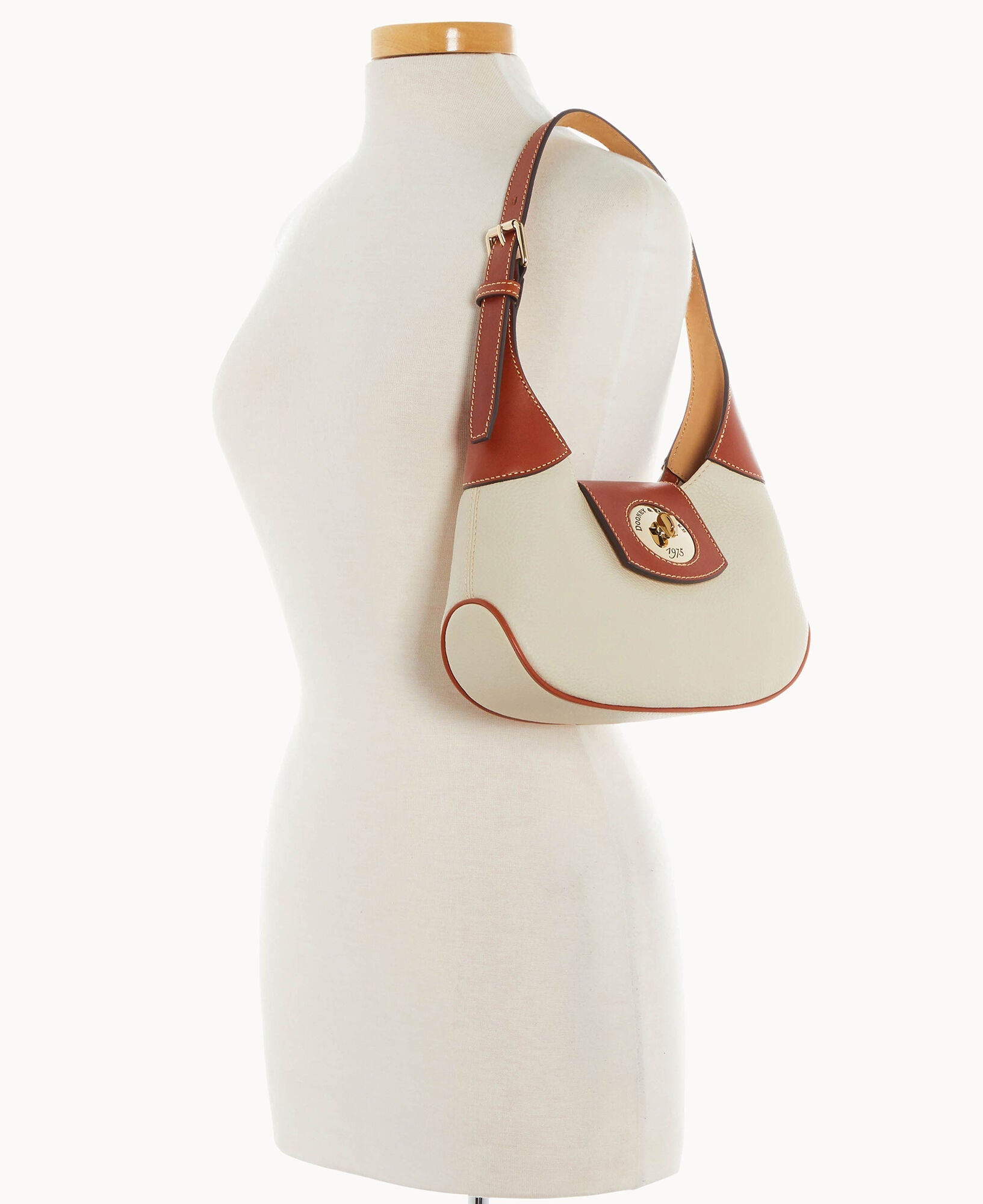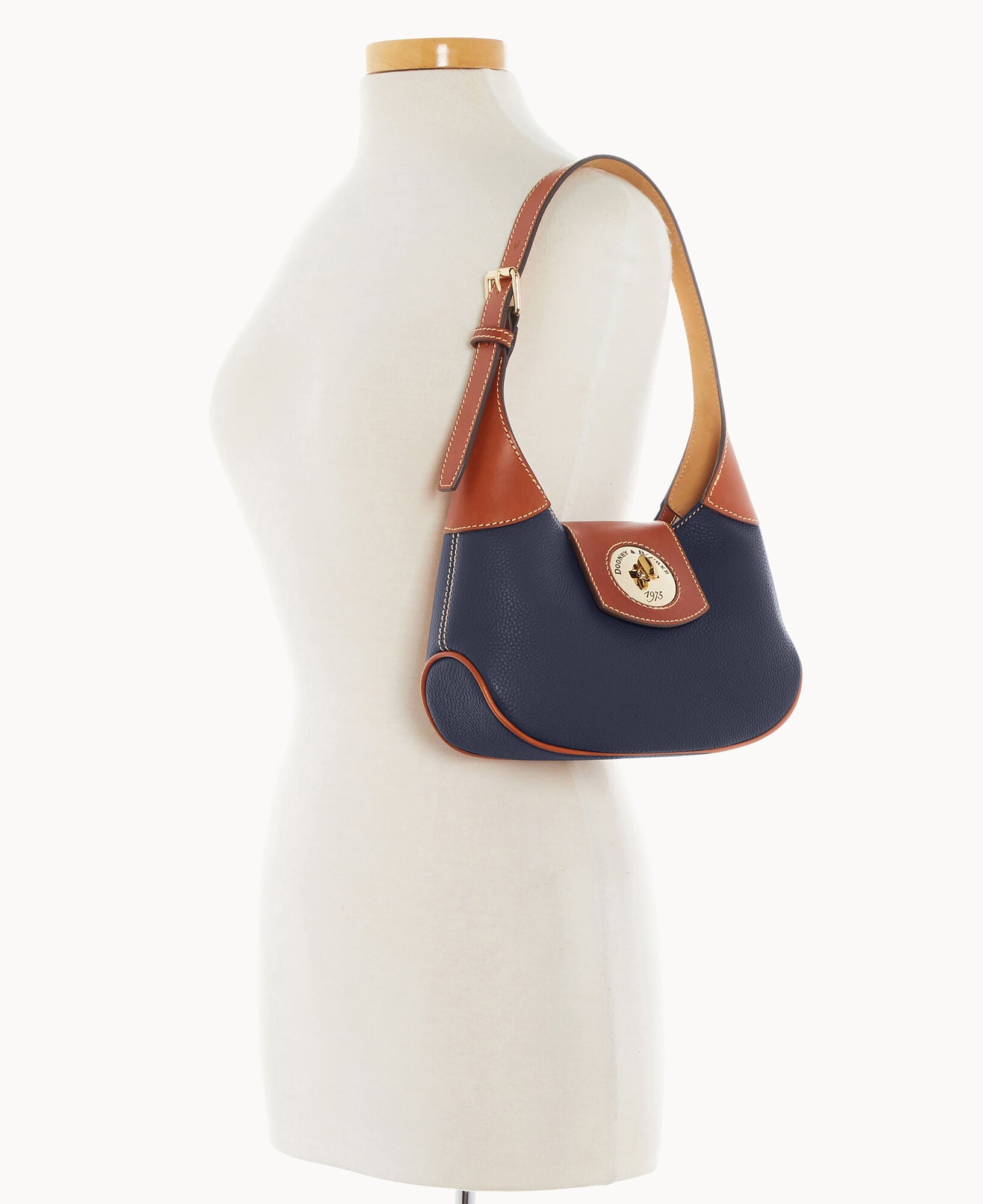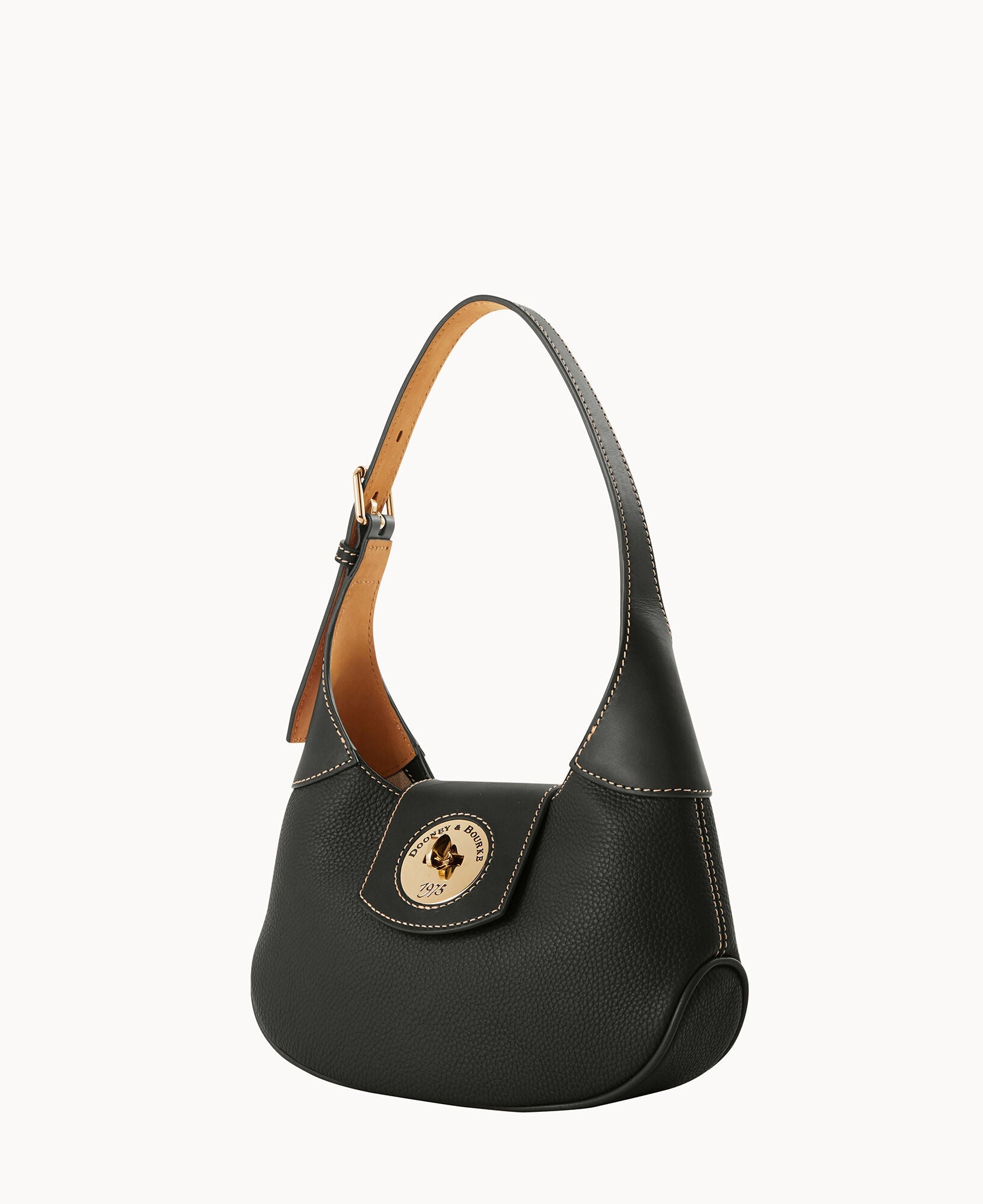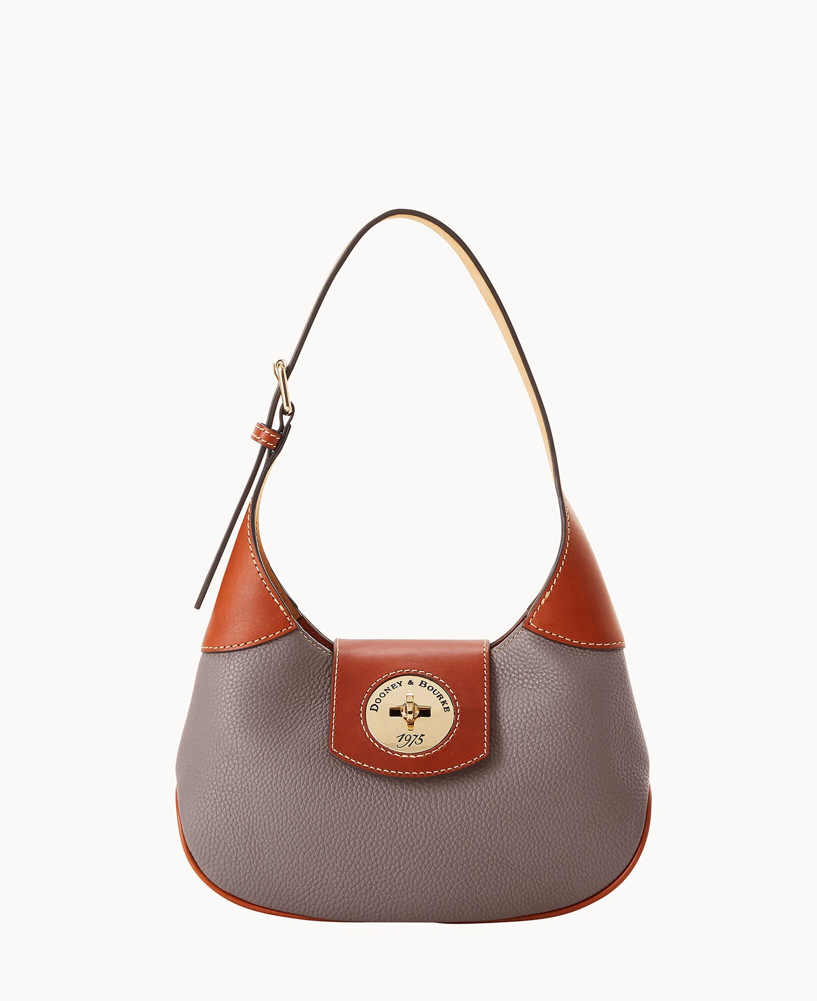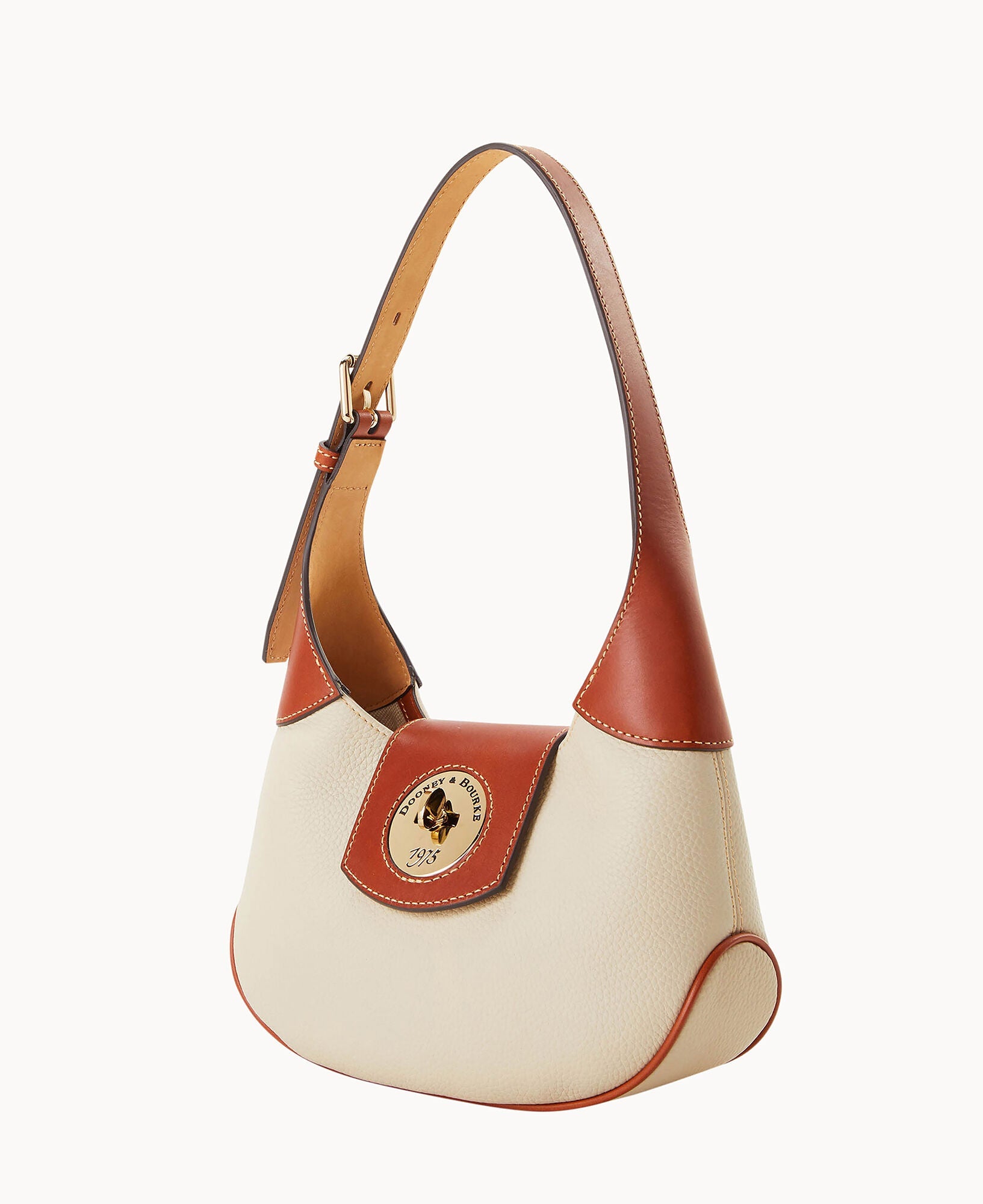 One inside zip pocket. One inside pocket. Inside key hook. Adjustable shoulder strap. Strap drop length 9". Lined. Turnlock closure.