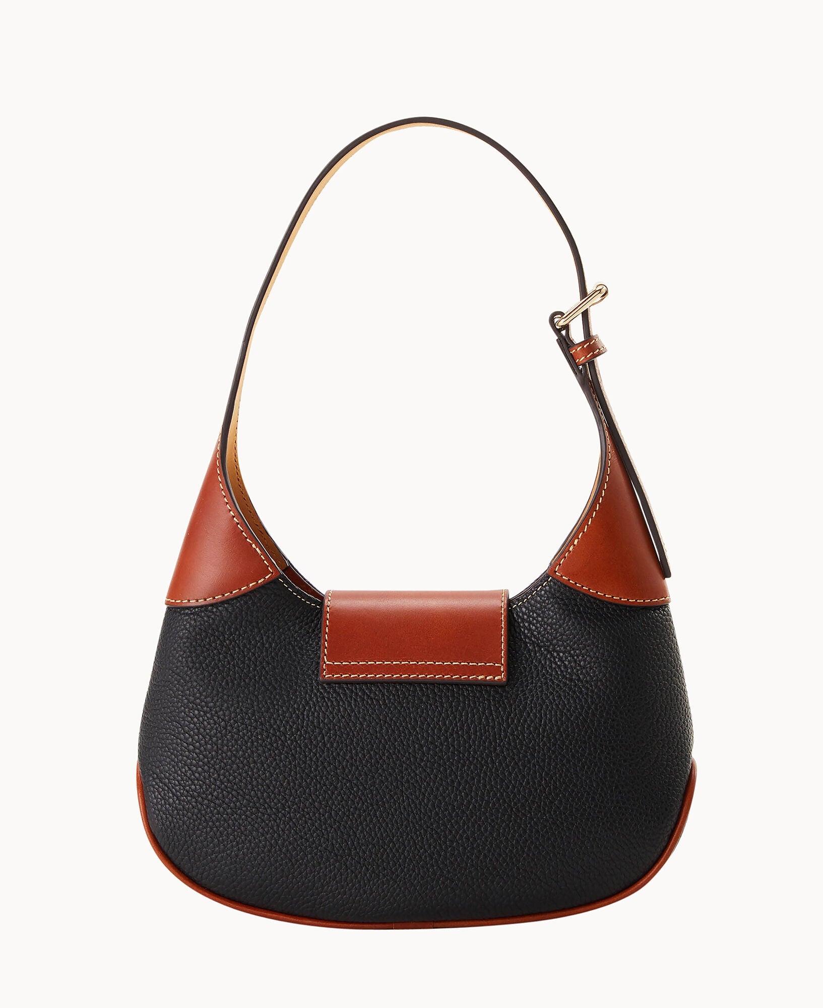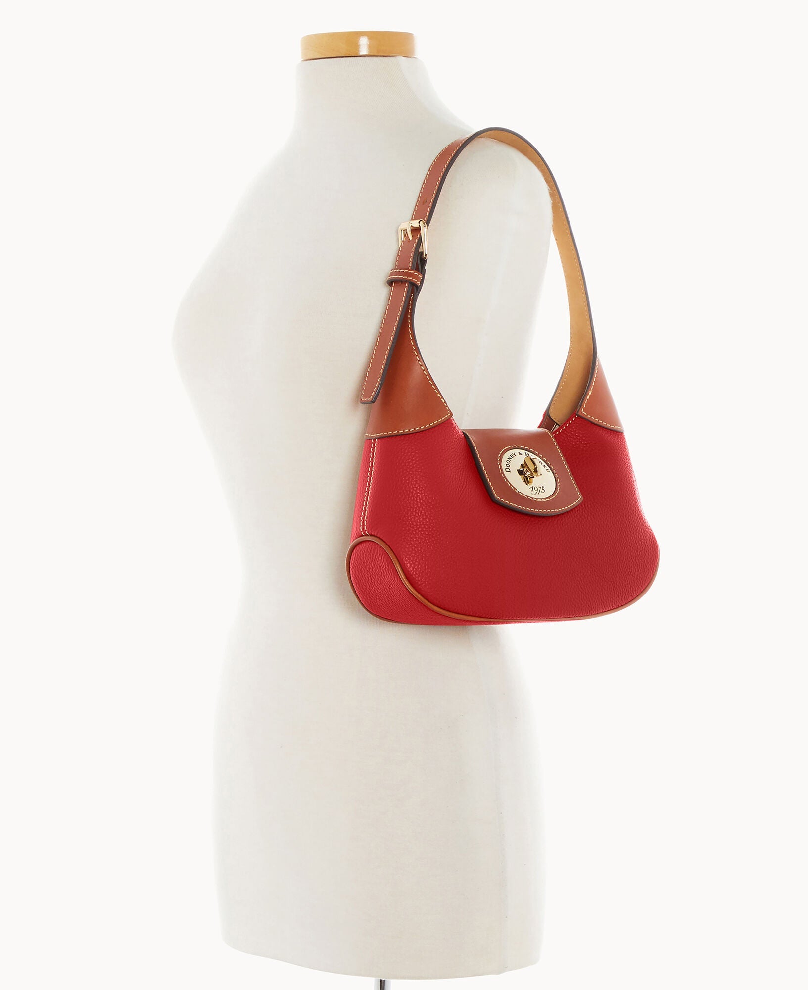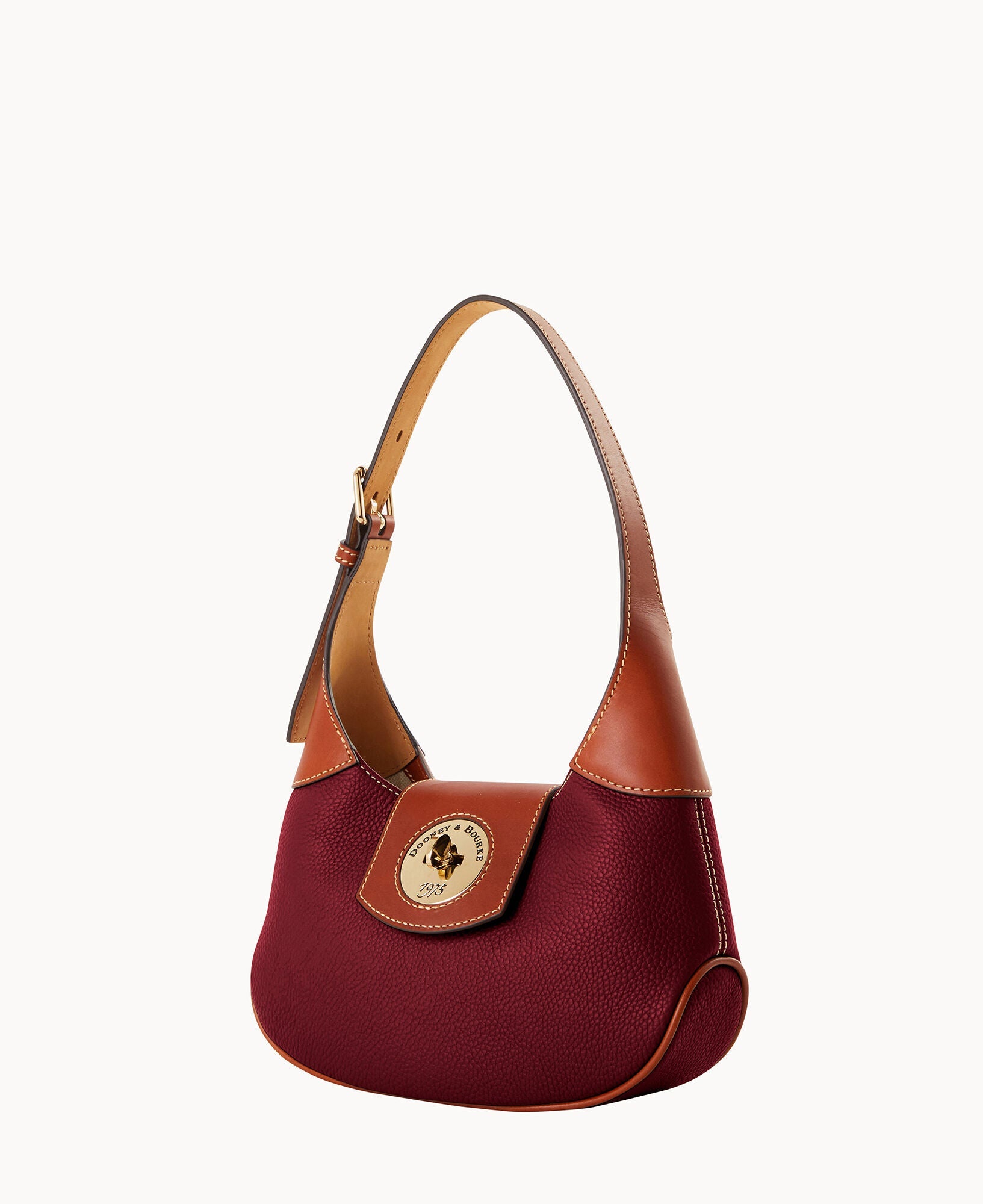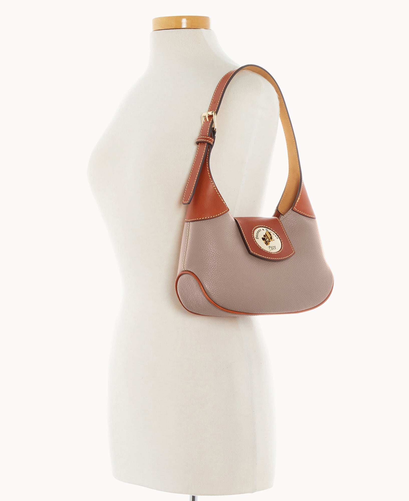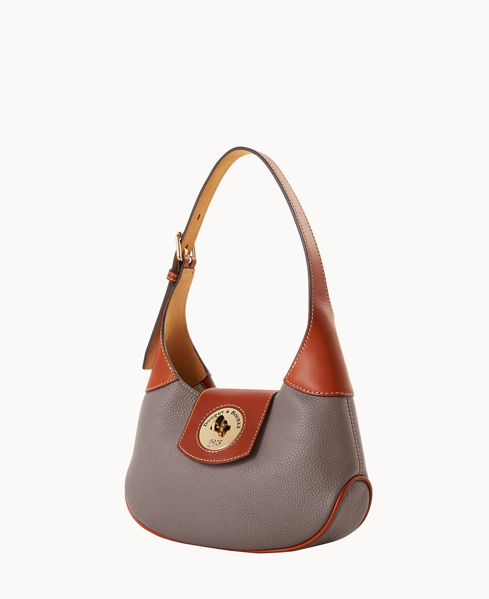 One inside zip pocket. One inside pocket. Inside key hook. Adjustable shoulder strap. Strap drop length 9". Lined. Turnlock closure.