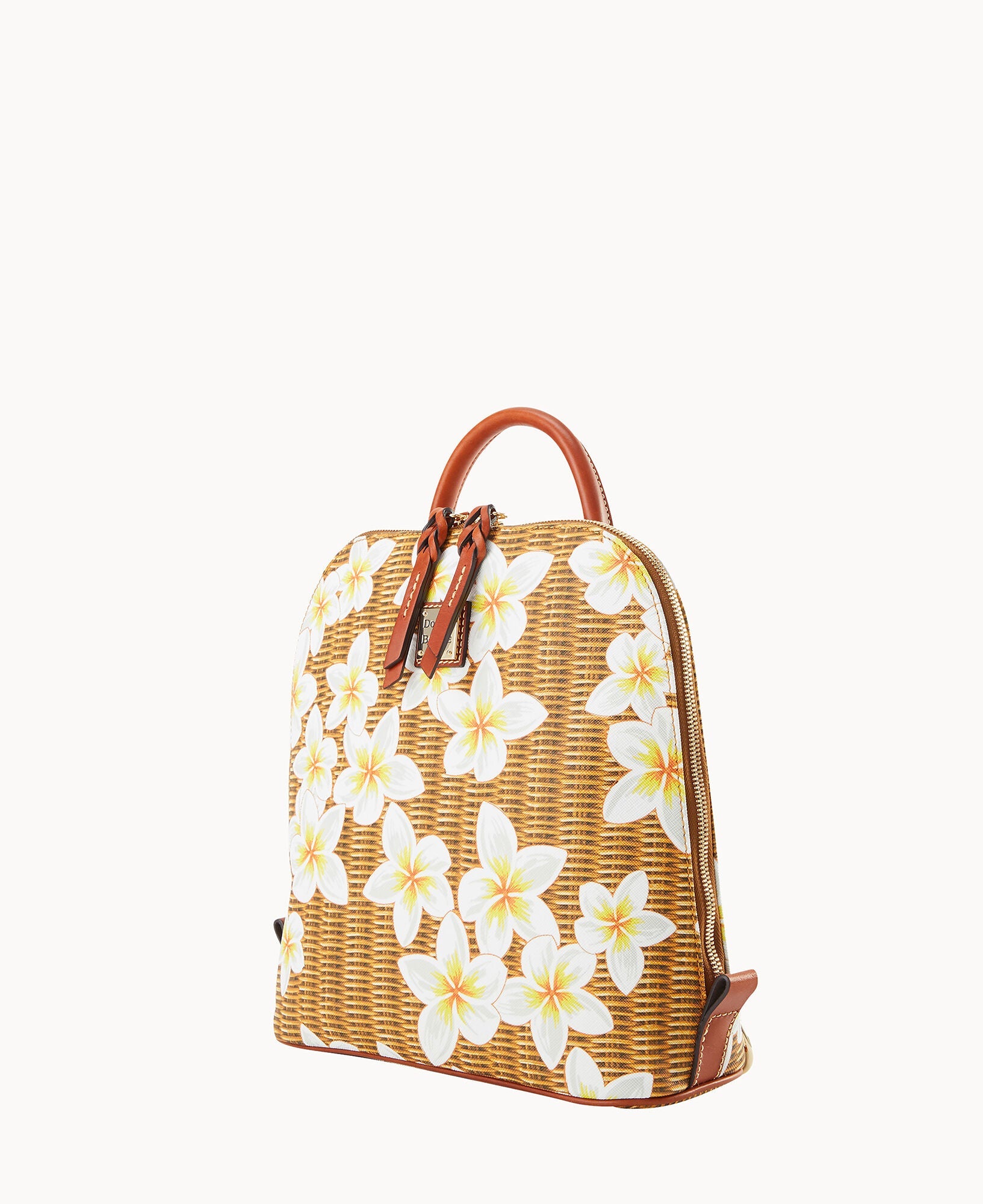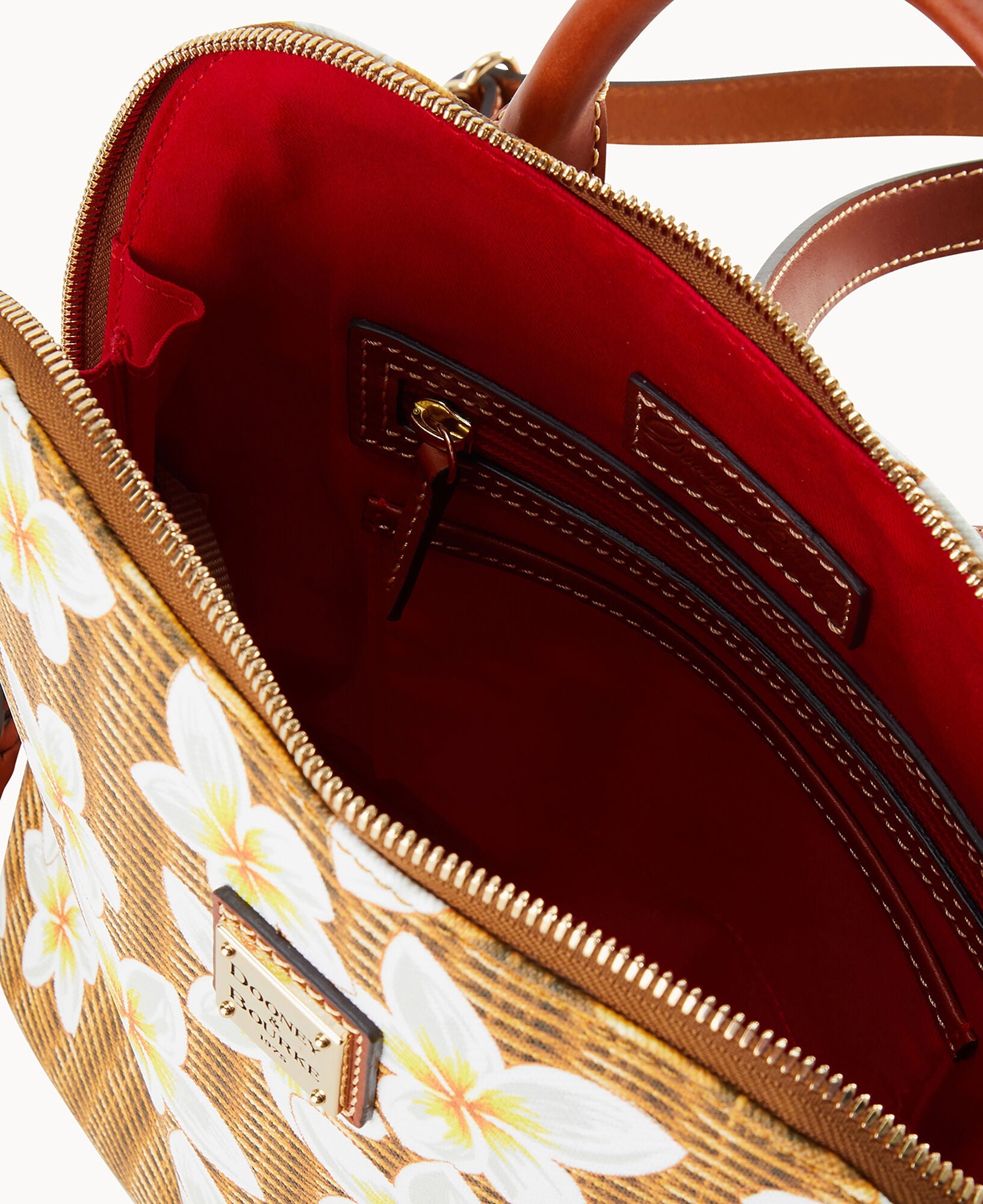 One inside zip pocket. Two inside pockets. Cell phone pocket. Inside key hook. Handle drop length 2". Adjustable shoulder straps. Strap drop length 12". Lined. Feet. Zipper closure.