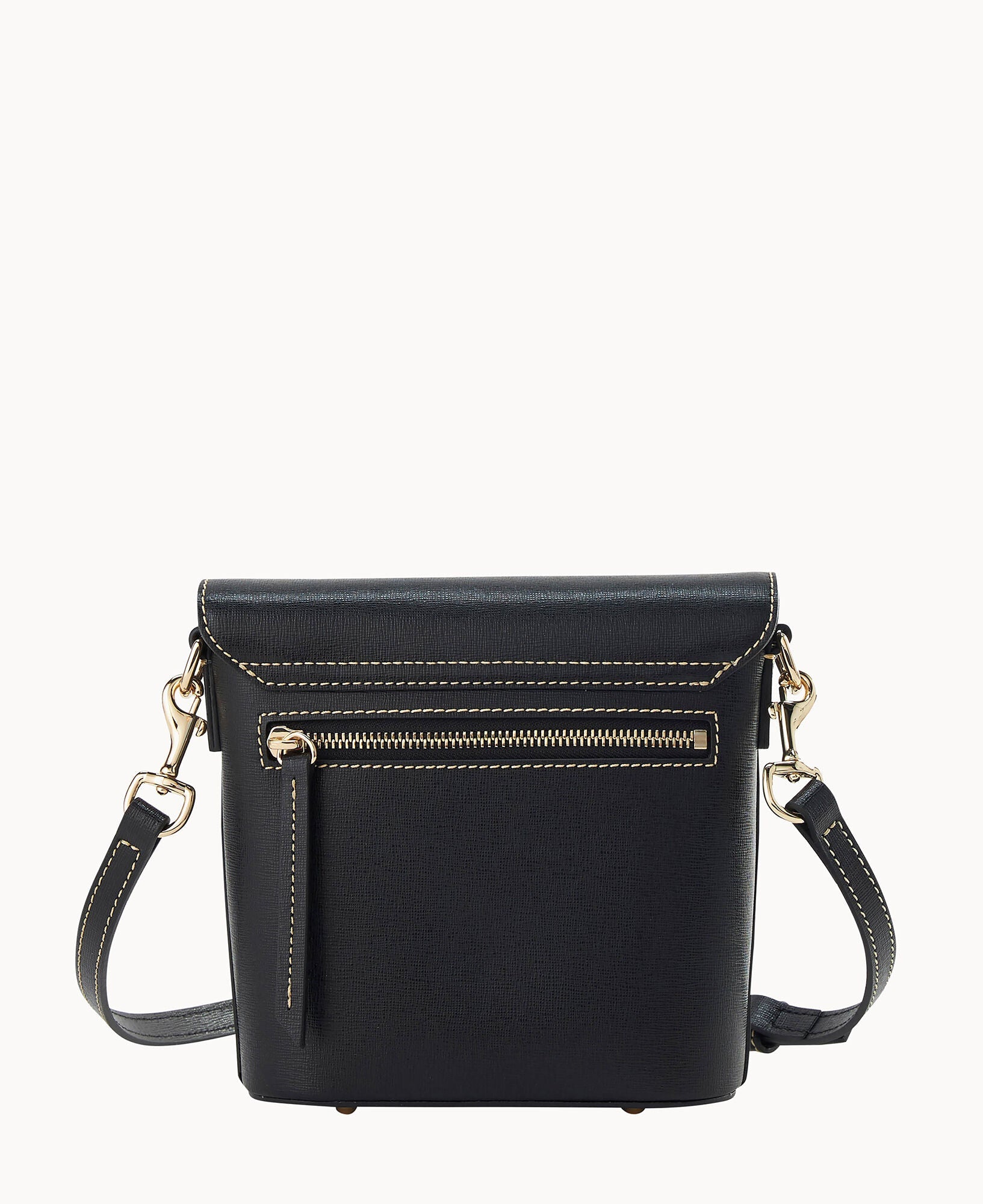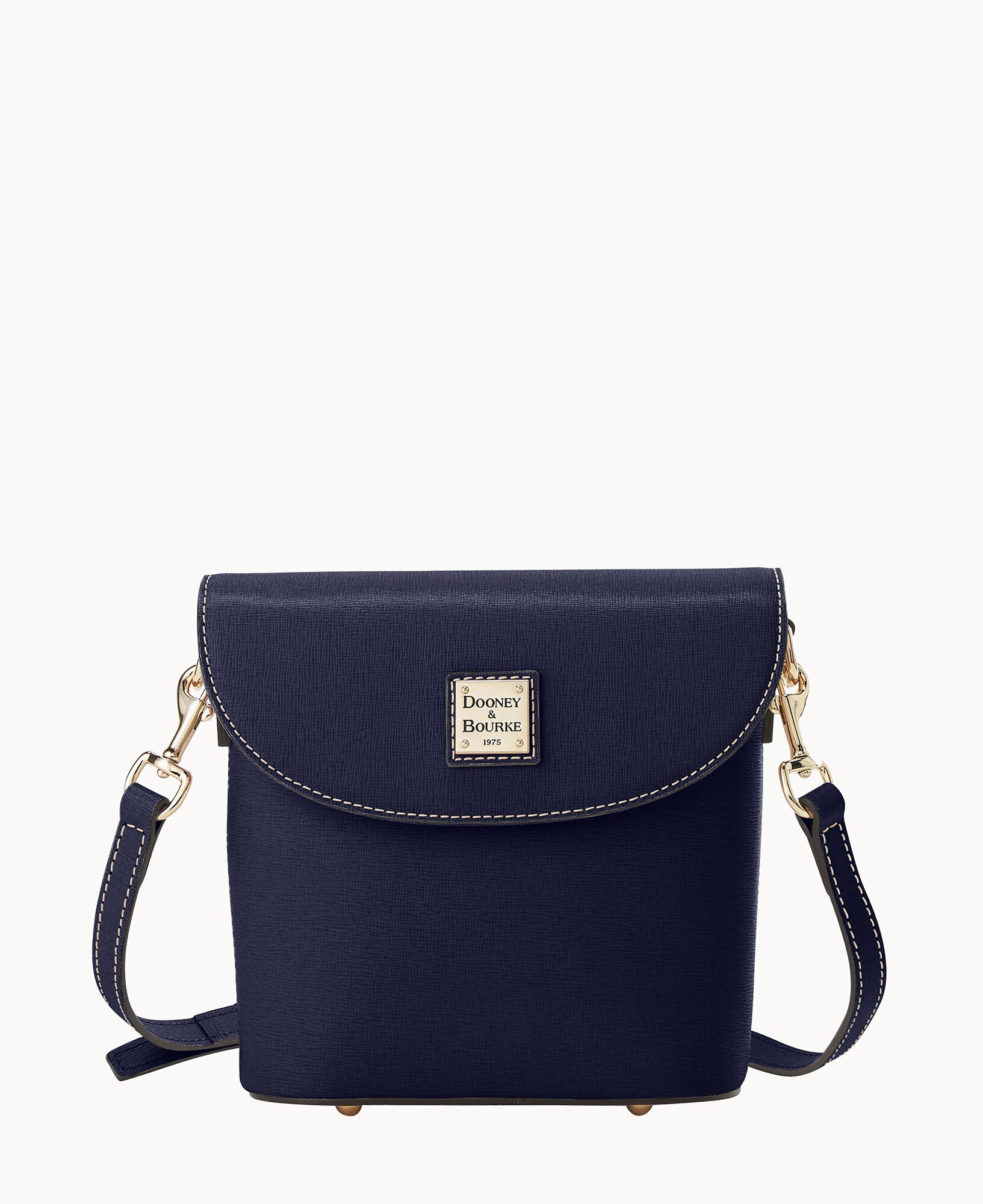 Outside zip pocket. One inside zip pocket. One inside pocket. Inside key hook. Adjustable, detachable shoulder strap. Strap drop length 27". Lined. Feet. Magnetic closure.