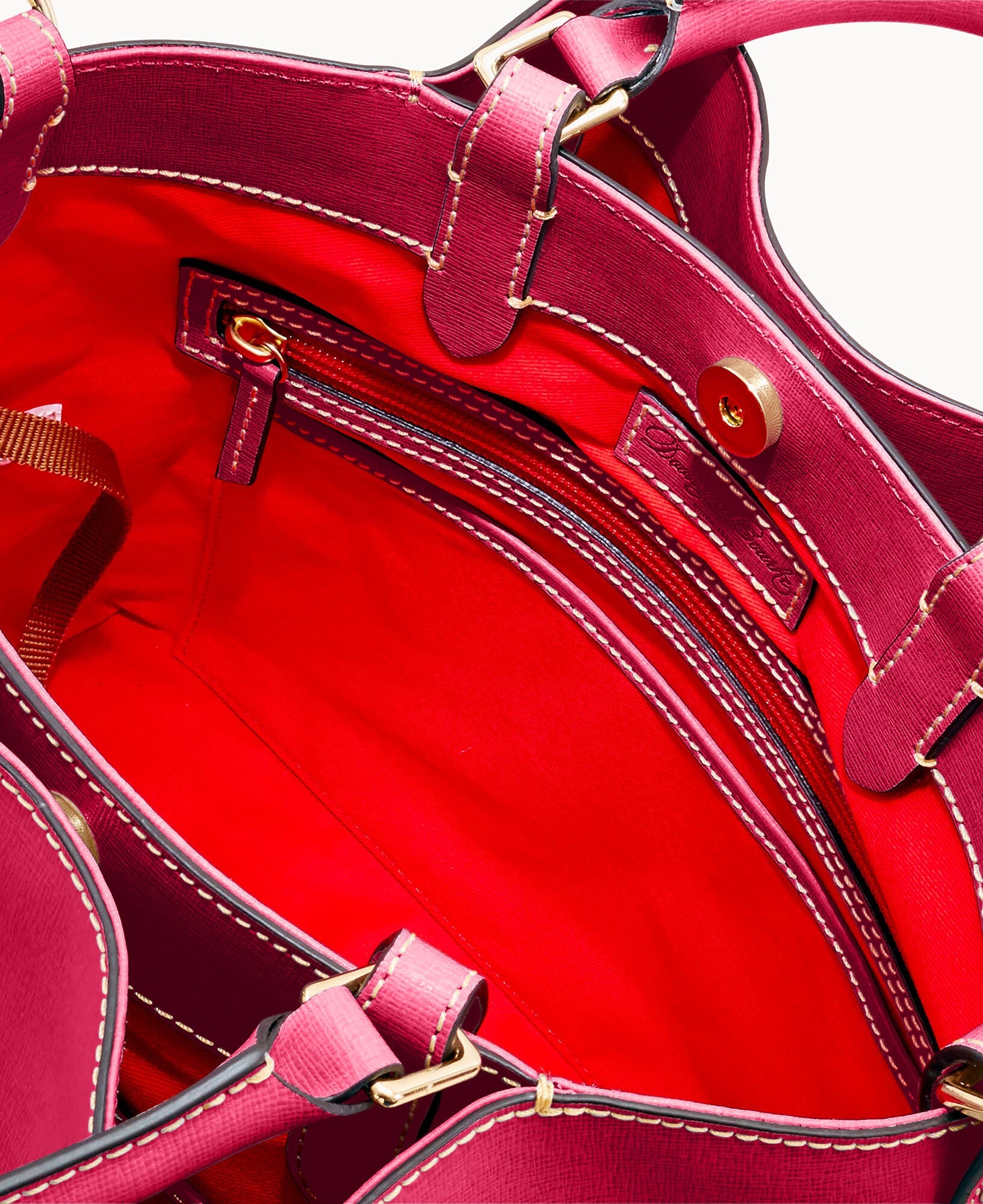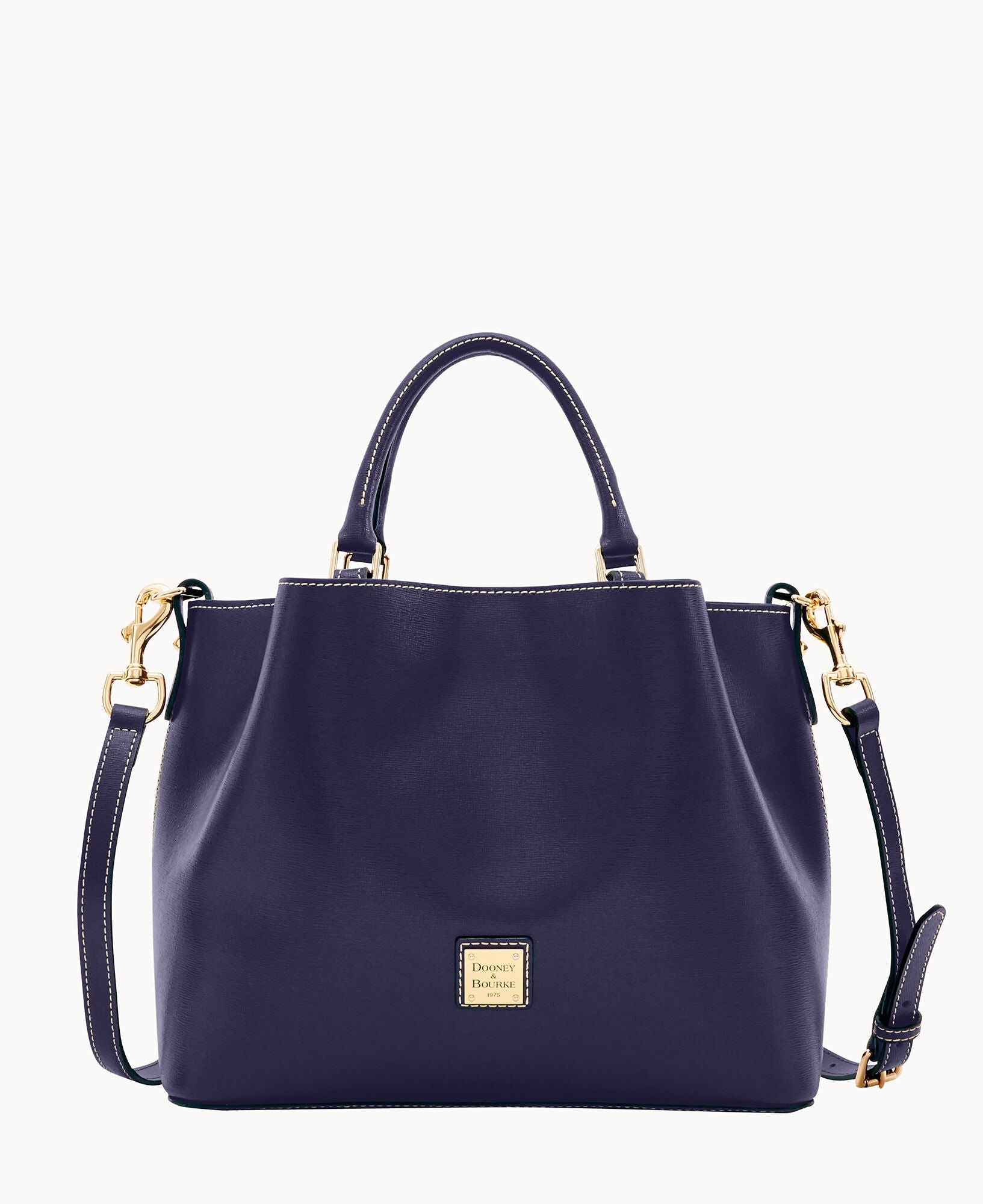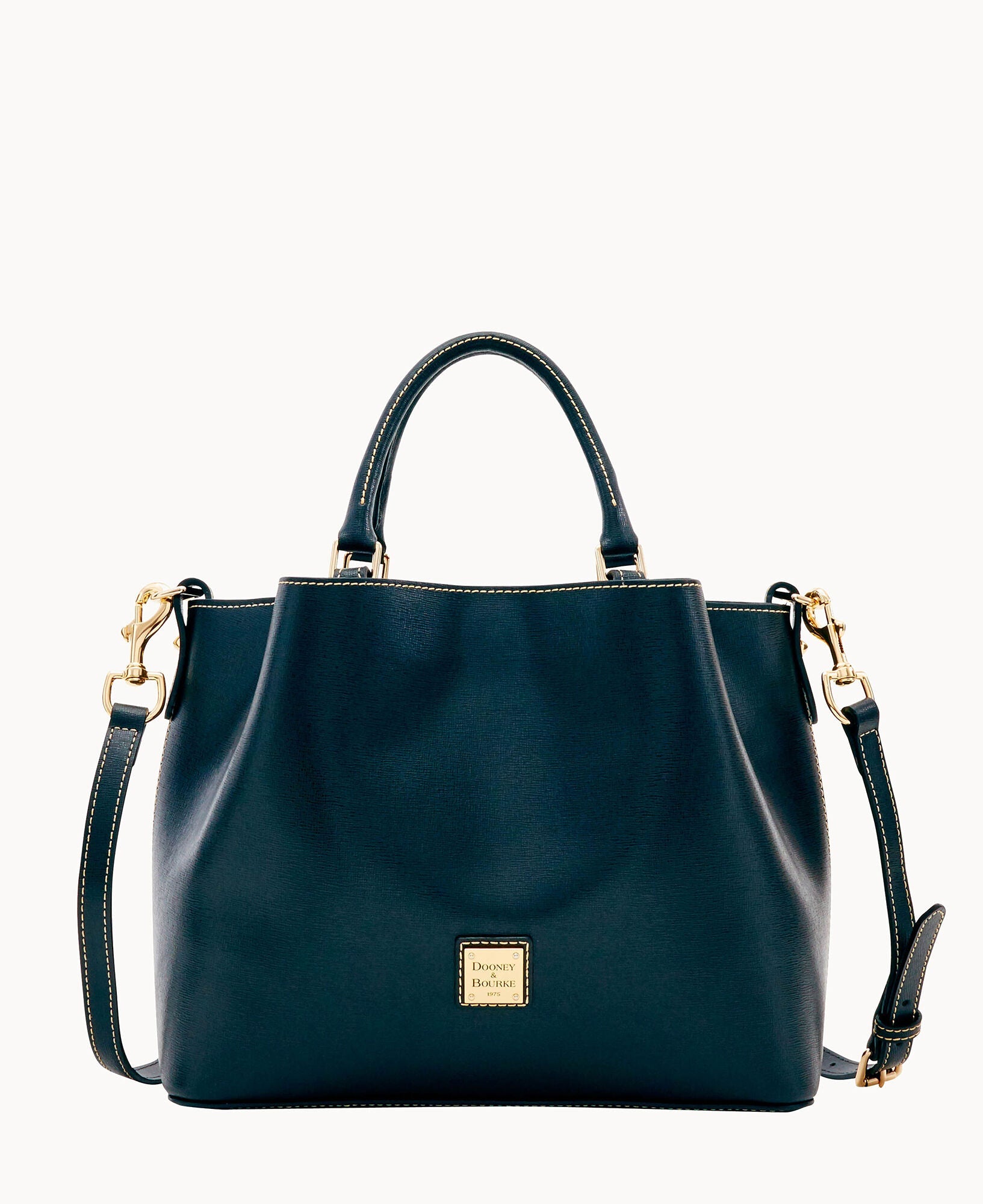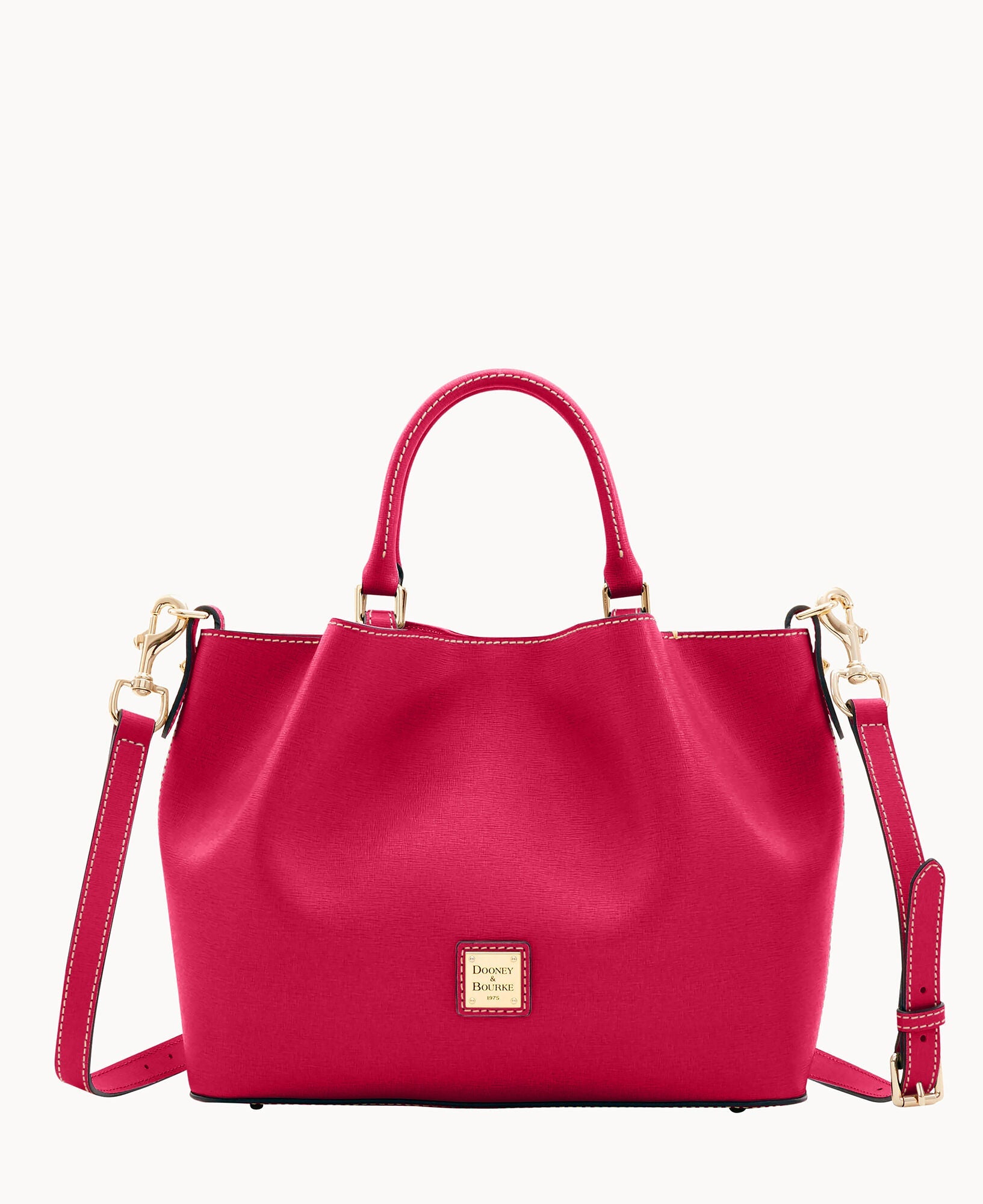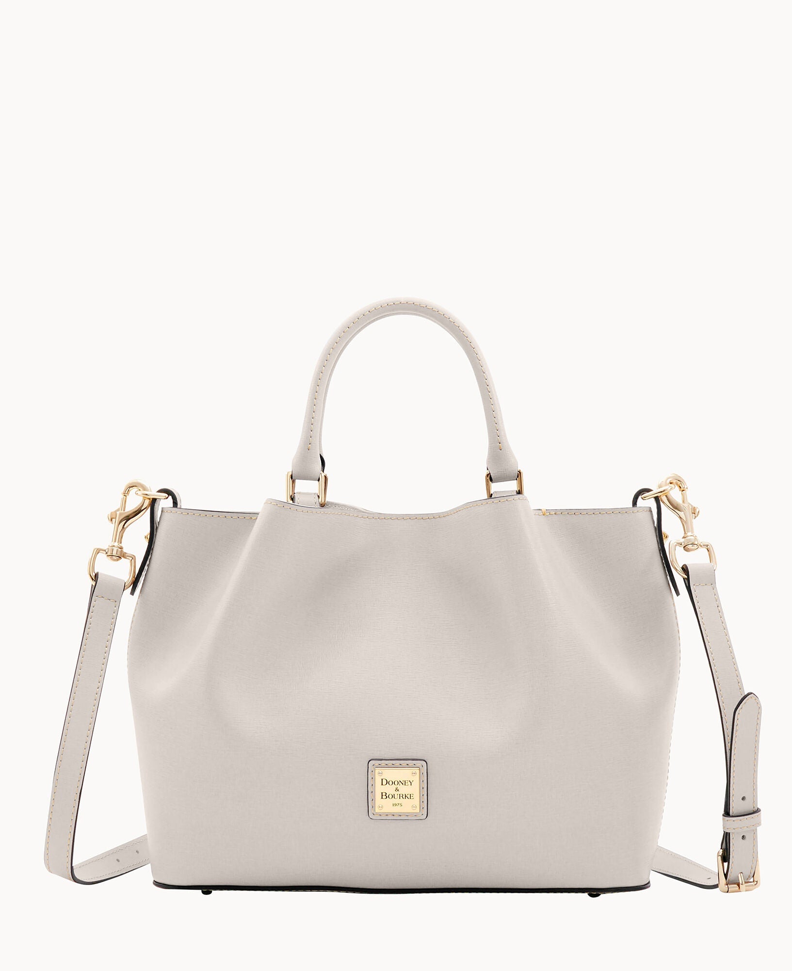 Front and back magnetic snap pockets. One inside zip pocket. Two inside pockets. One credit card slot. Cell phone pocket. Inside key hook. Handle drop length 5". Adjustable, detachable shoulder strap. Strap drop length 26.5". Lined. Feet. Magnetic snap closure.
