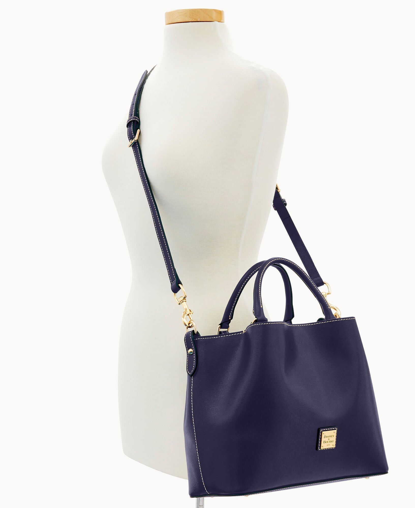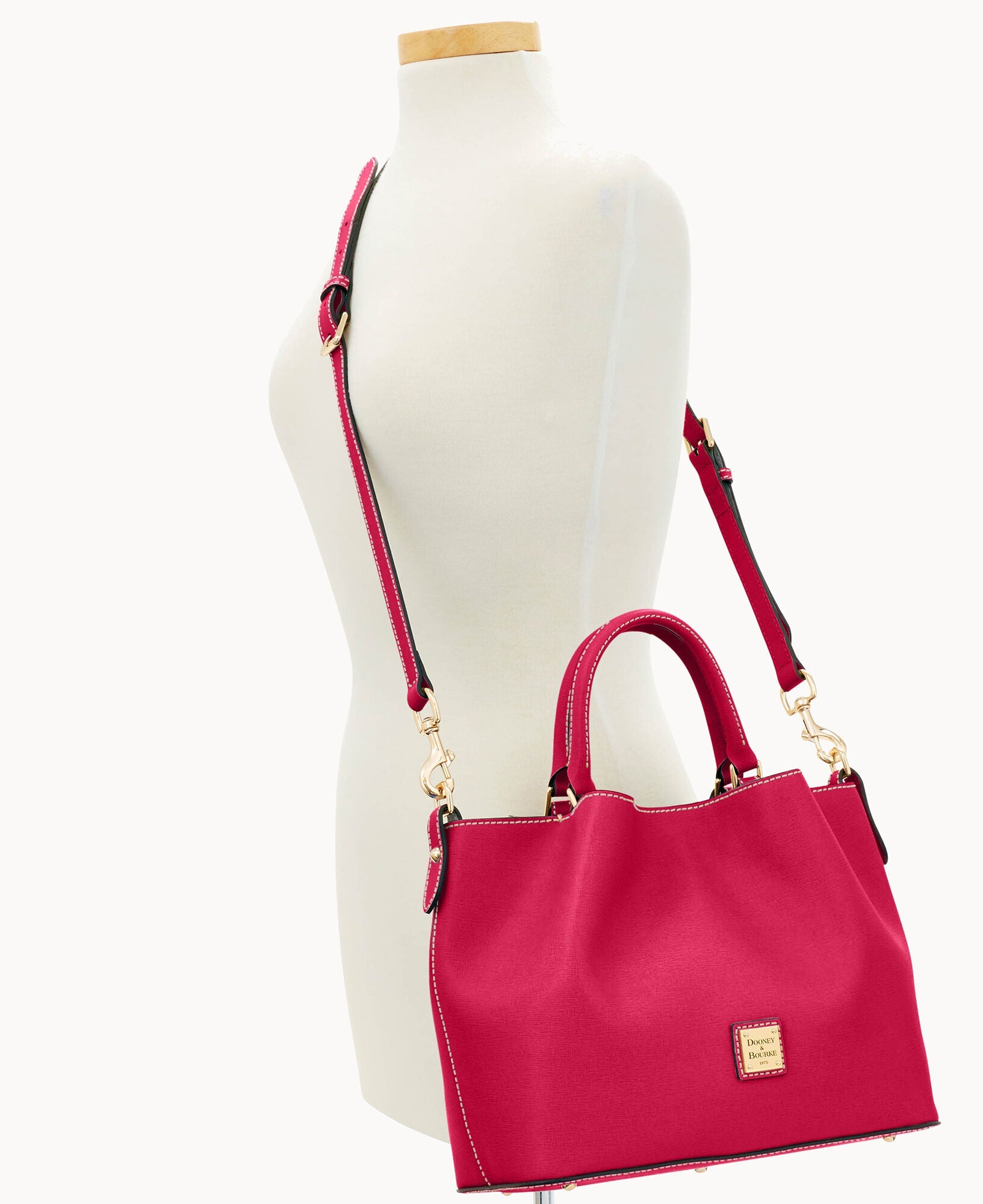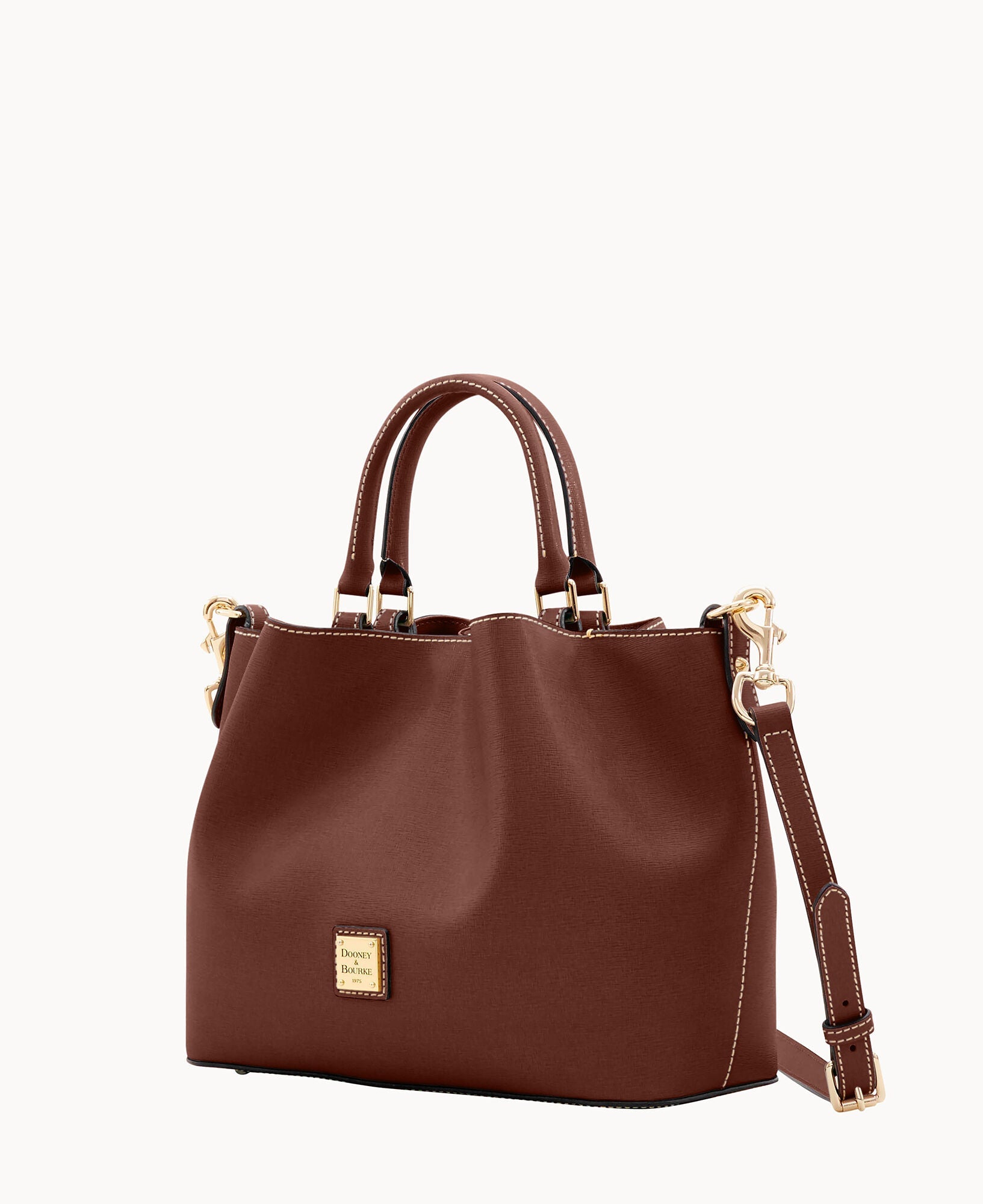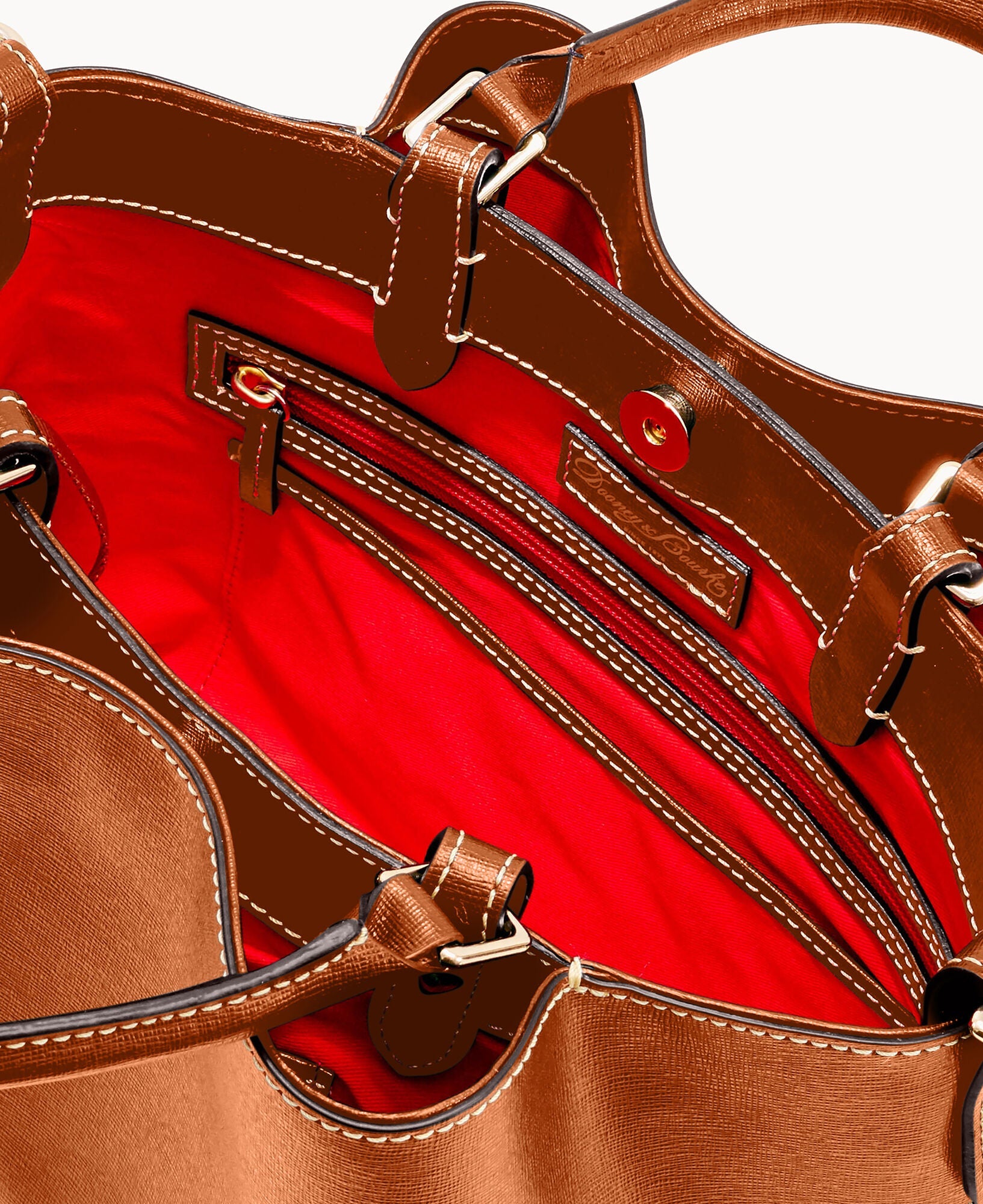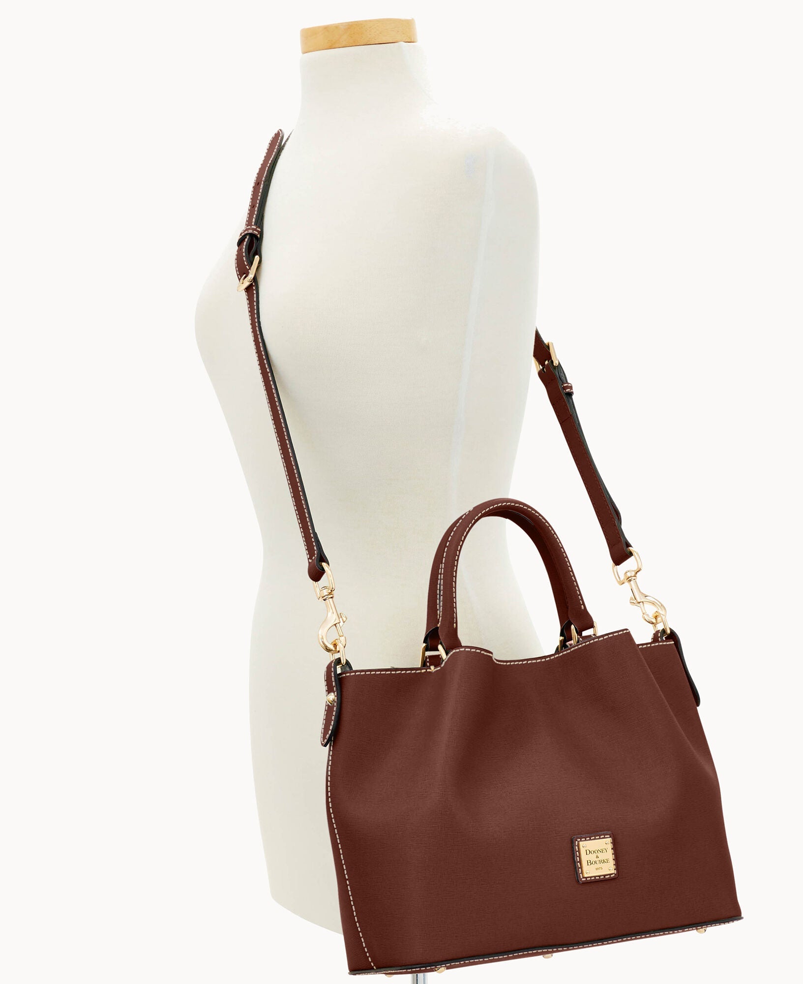 Front and back magnetic snap pockets. One inside zip pocket. Two inside pockets. One credit card slot. Cell phone pocket. Inside key hook. Handle drop length 5". Adjustable, detachable shoulder strap. Strap drop length 26.5". Lined. Feet. Magnetic snap closure.