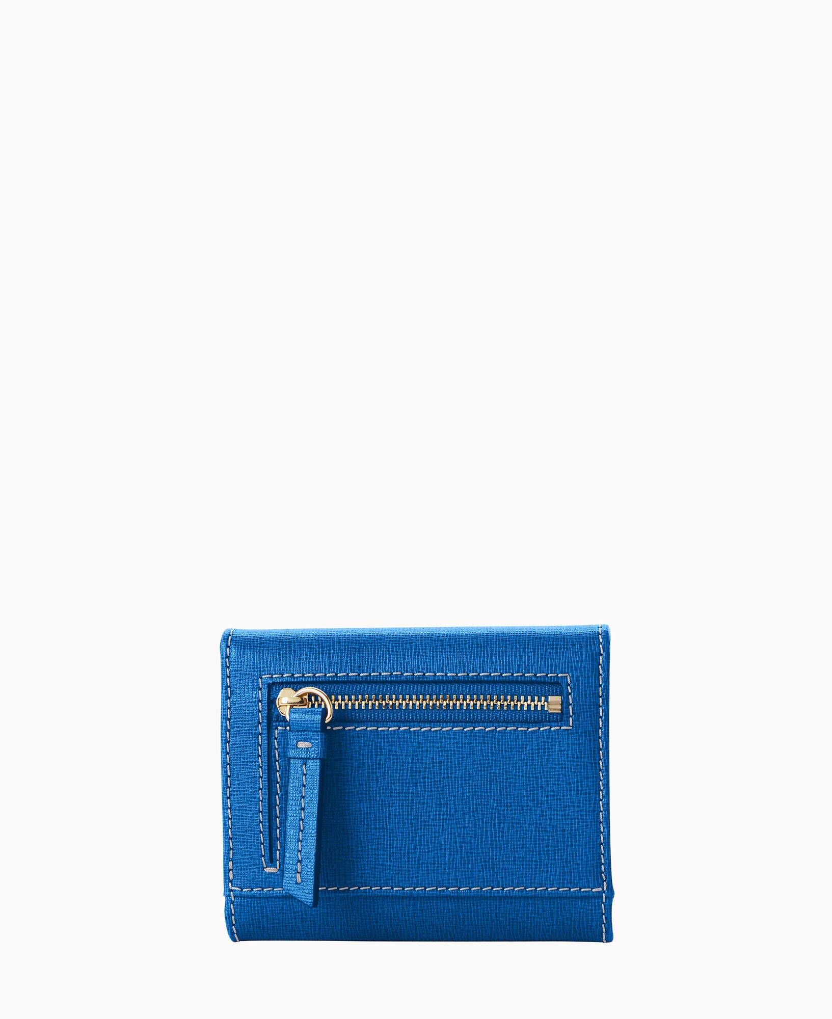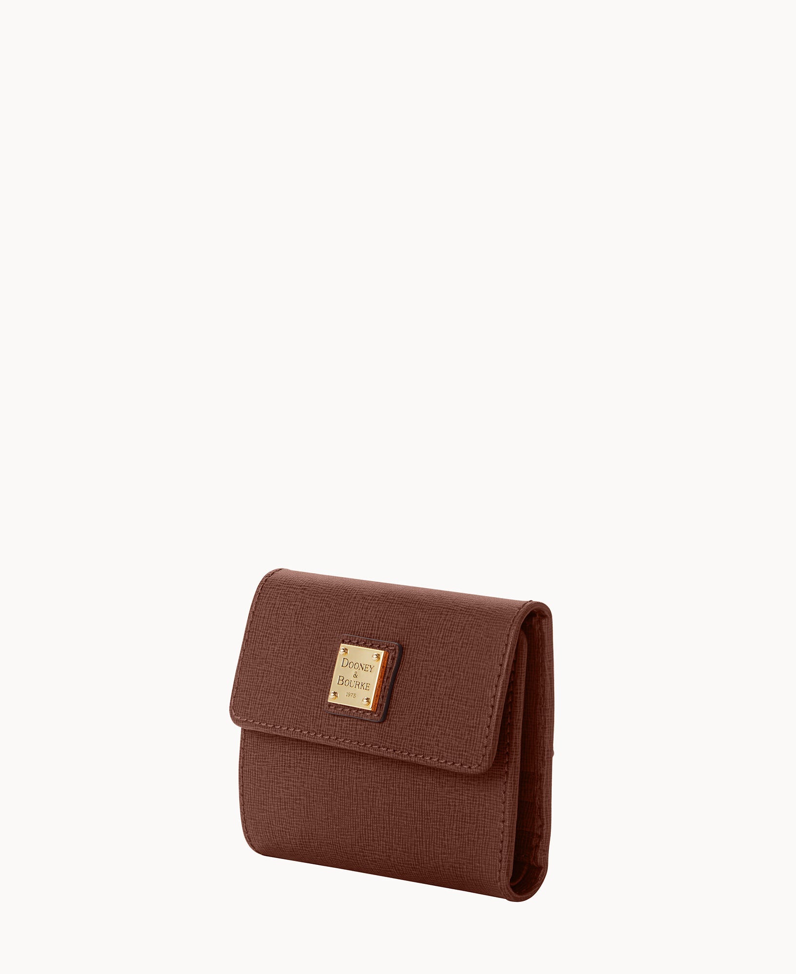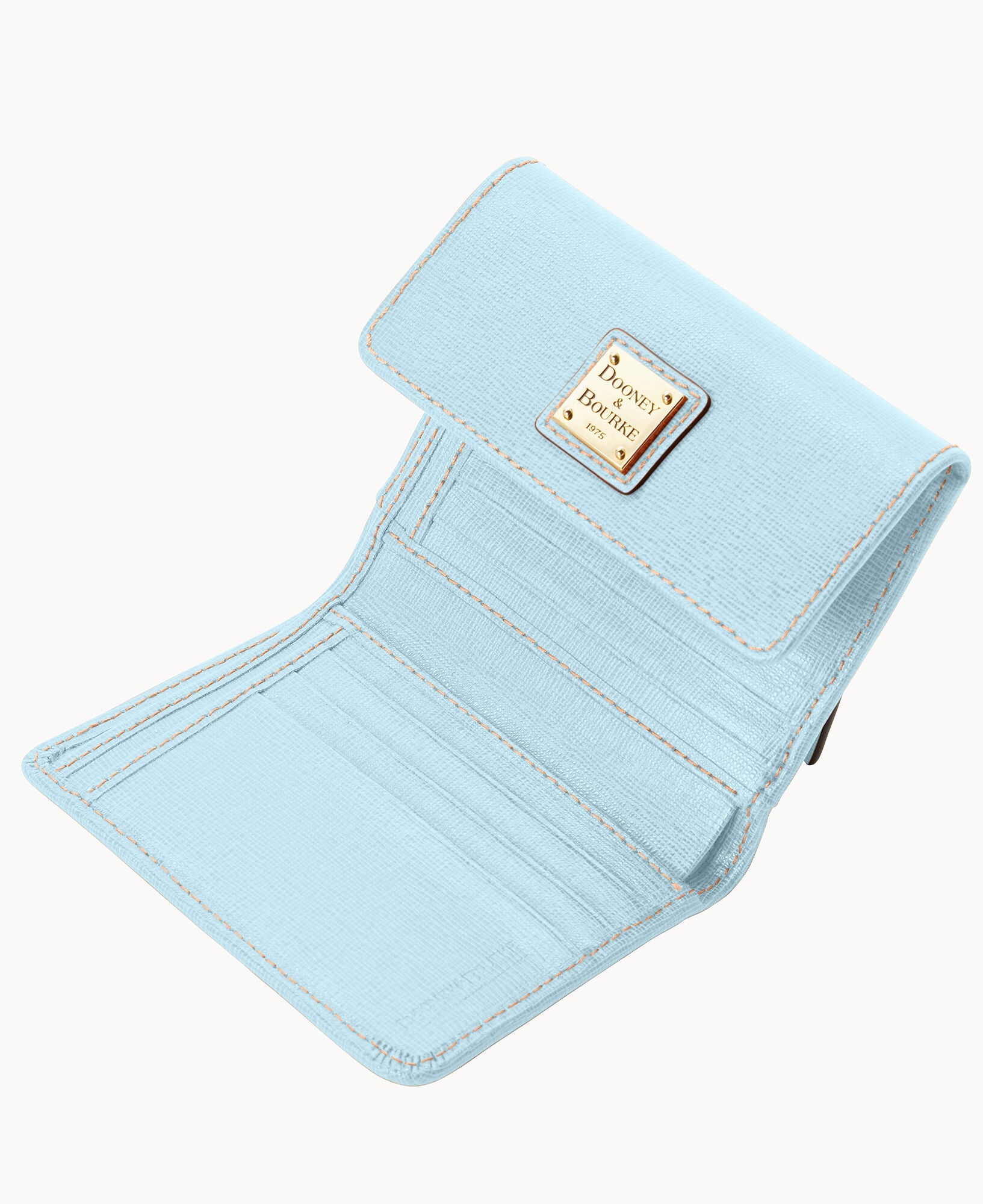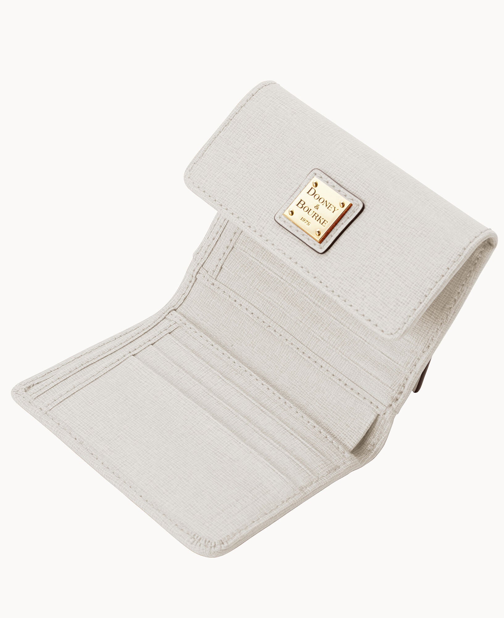 One outside zip pocket. One bill compartment. Four inside pockets. Six credit card slots. Snap closure.