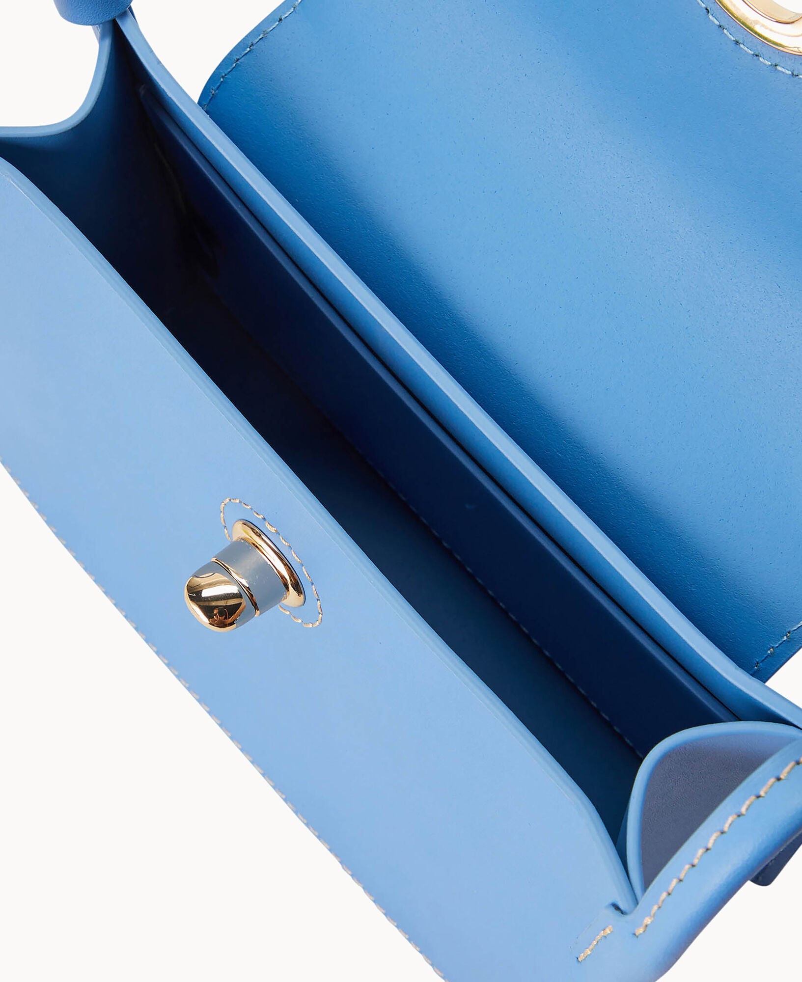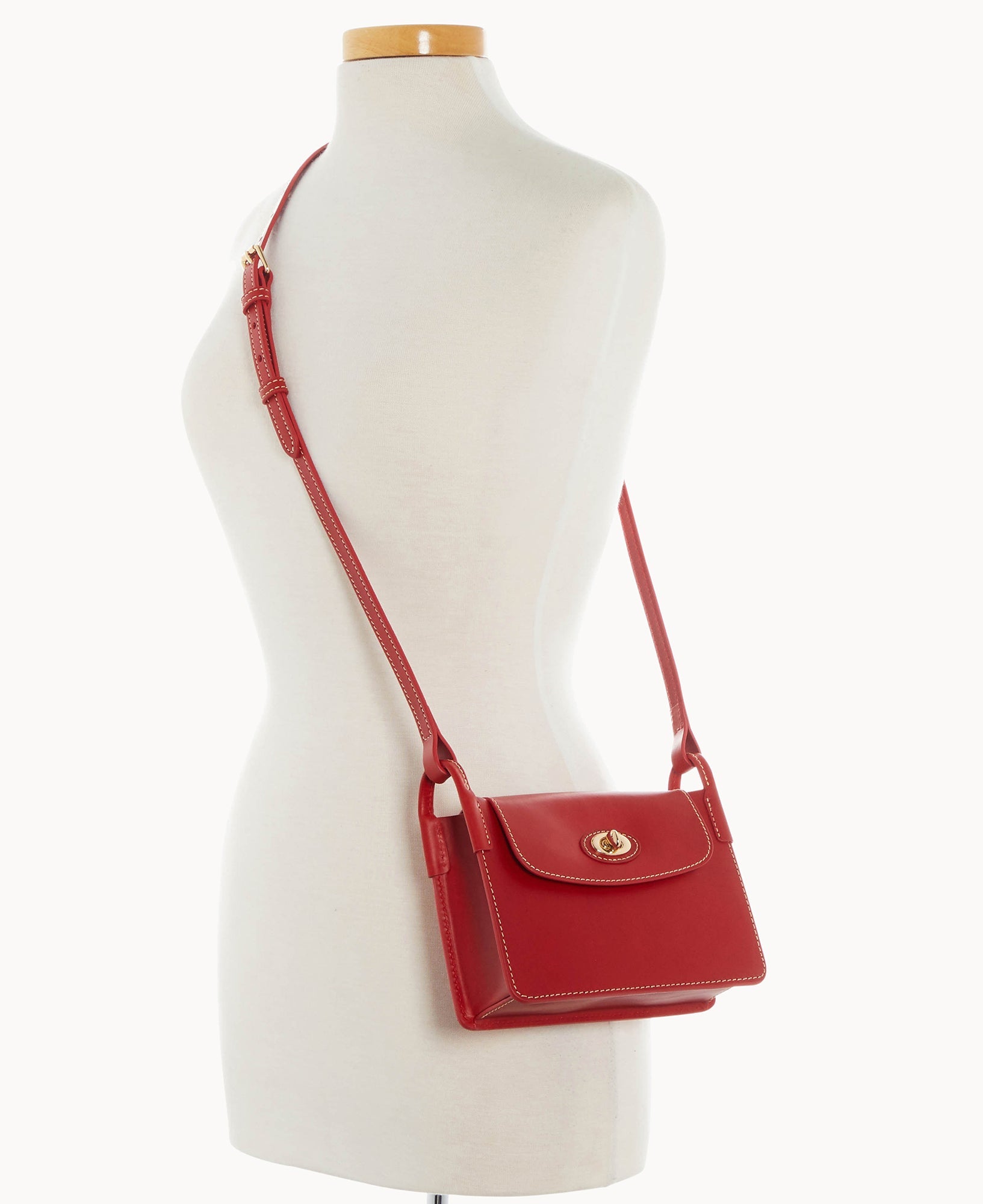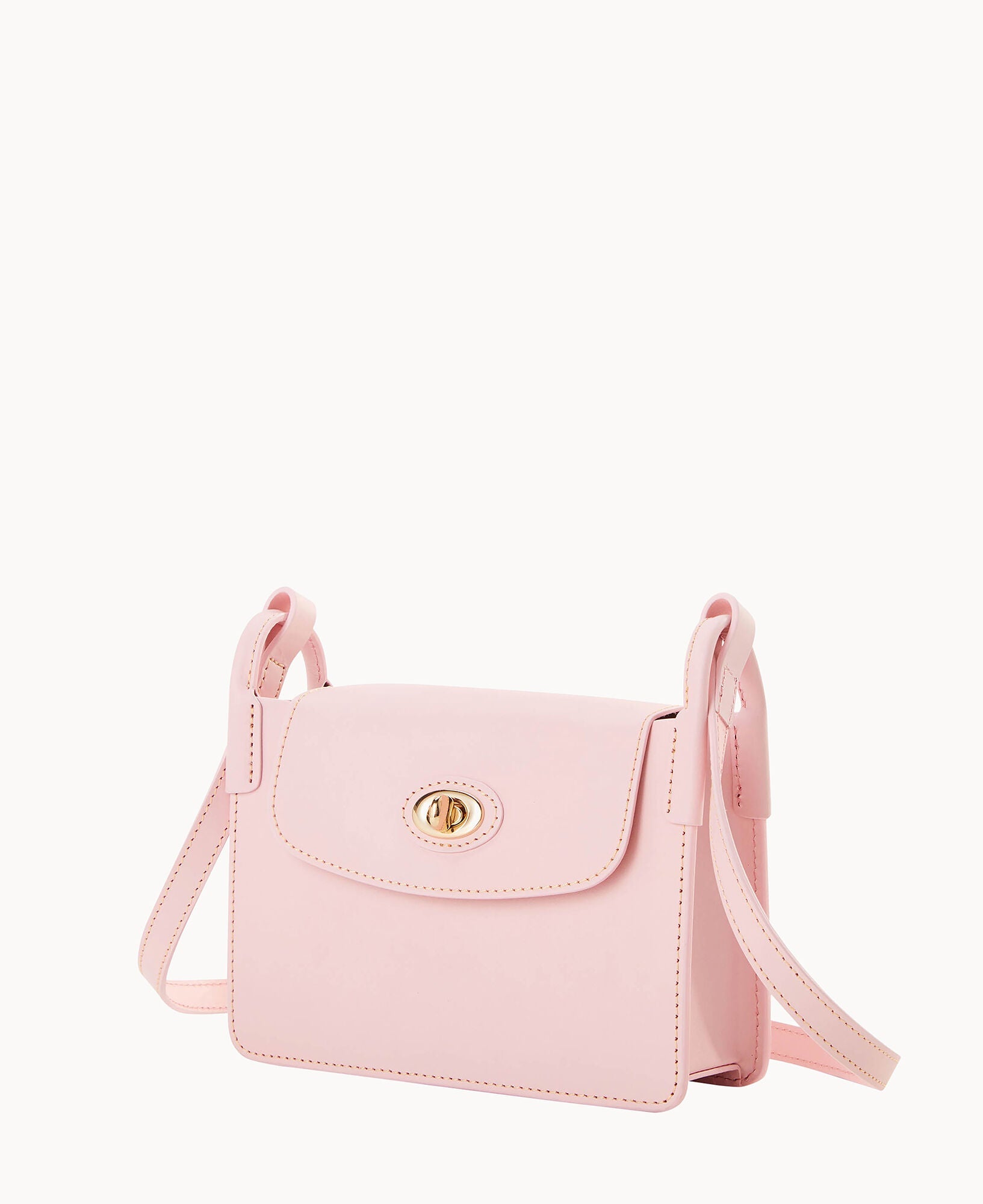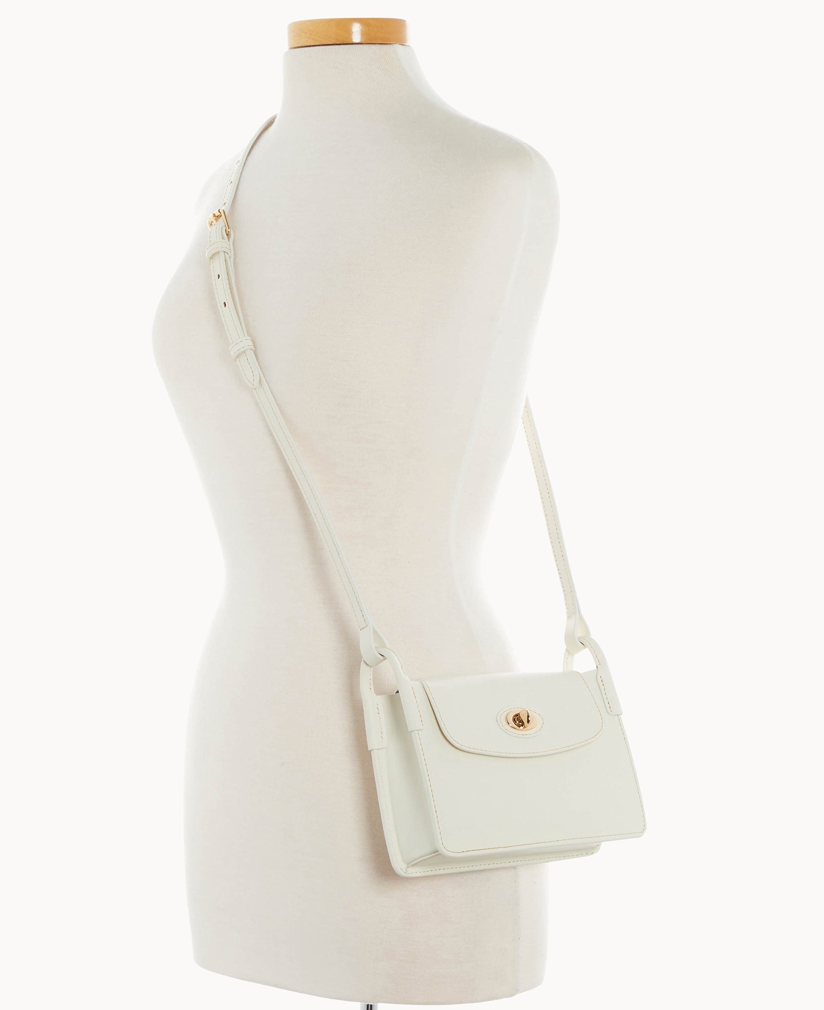 One inside pocket. Adjustable shoulder strap. Strap drop length 23". Turnlock closure.